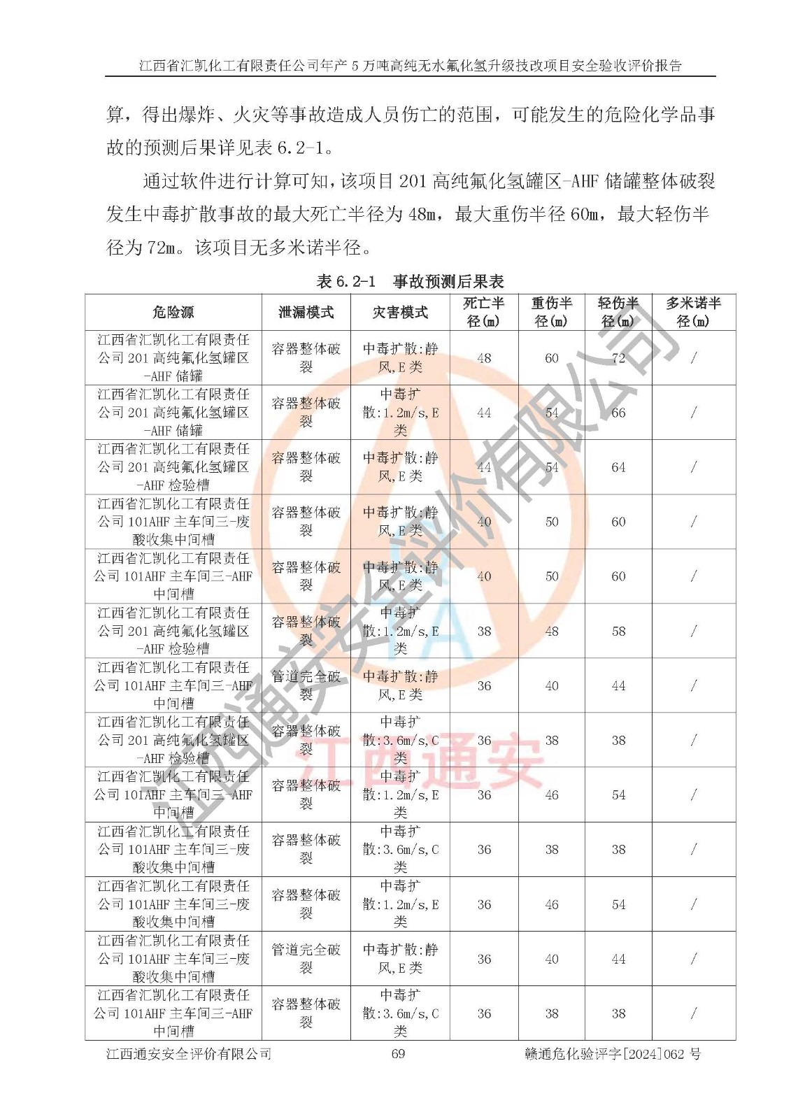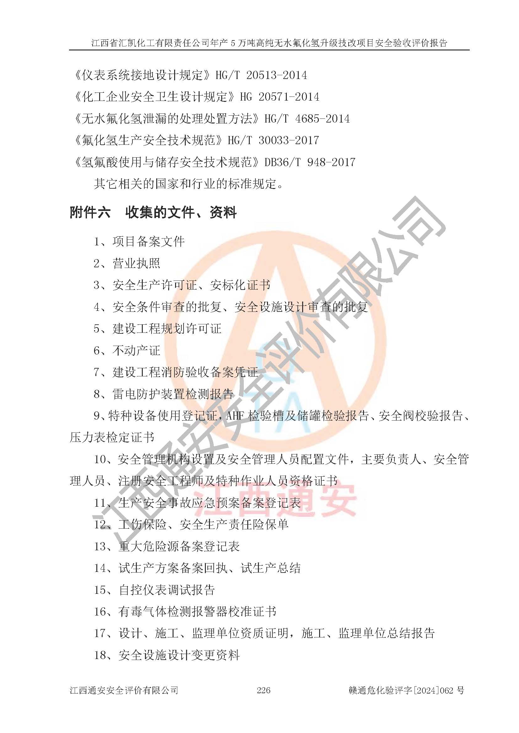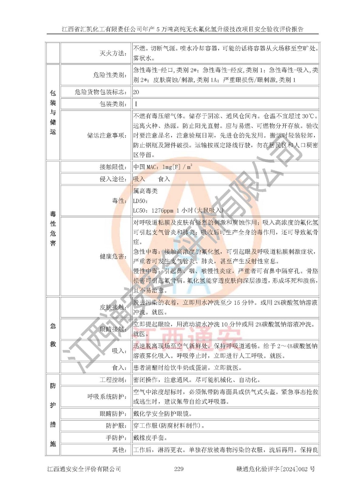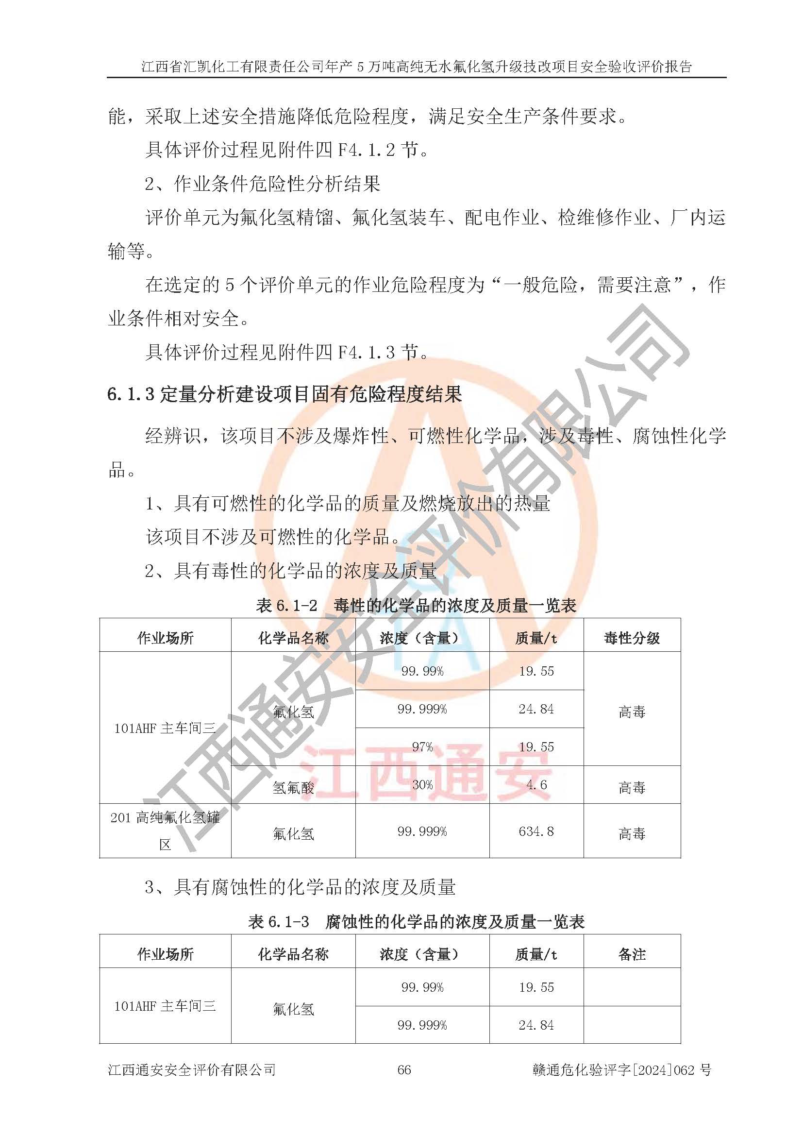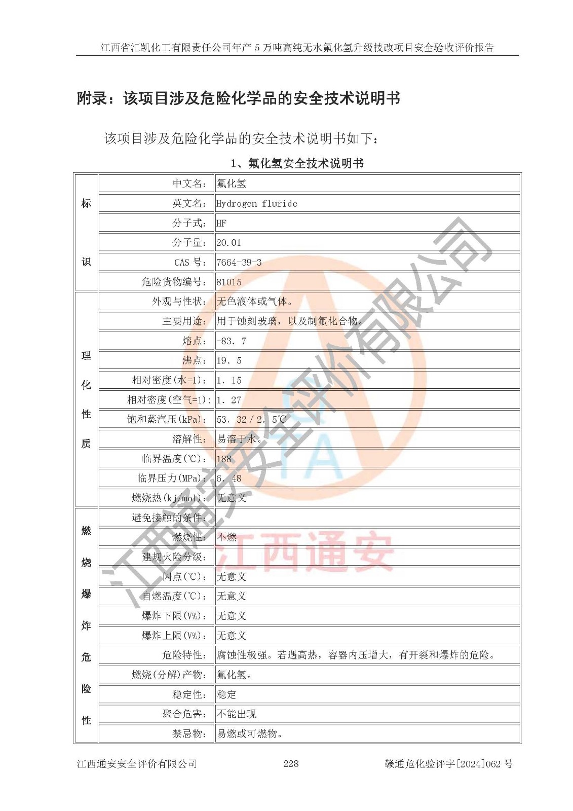 評價報告名稱 | 江西省匯凱化工有限責(zé)任公司年產(chǎn)5萬噸高純無水氟化氫升級技改項目安全驗收評價報告 | ||||||