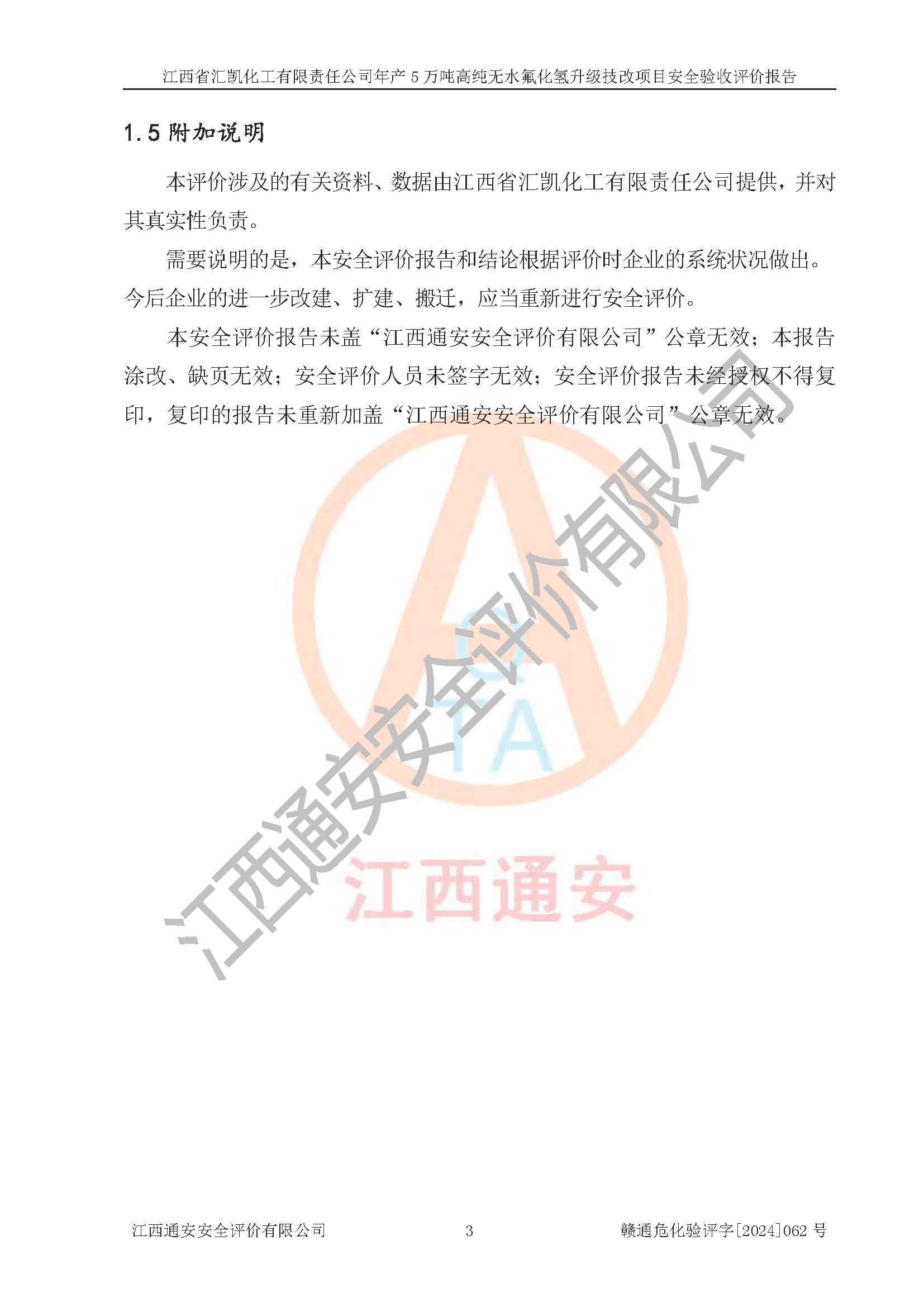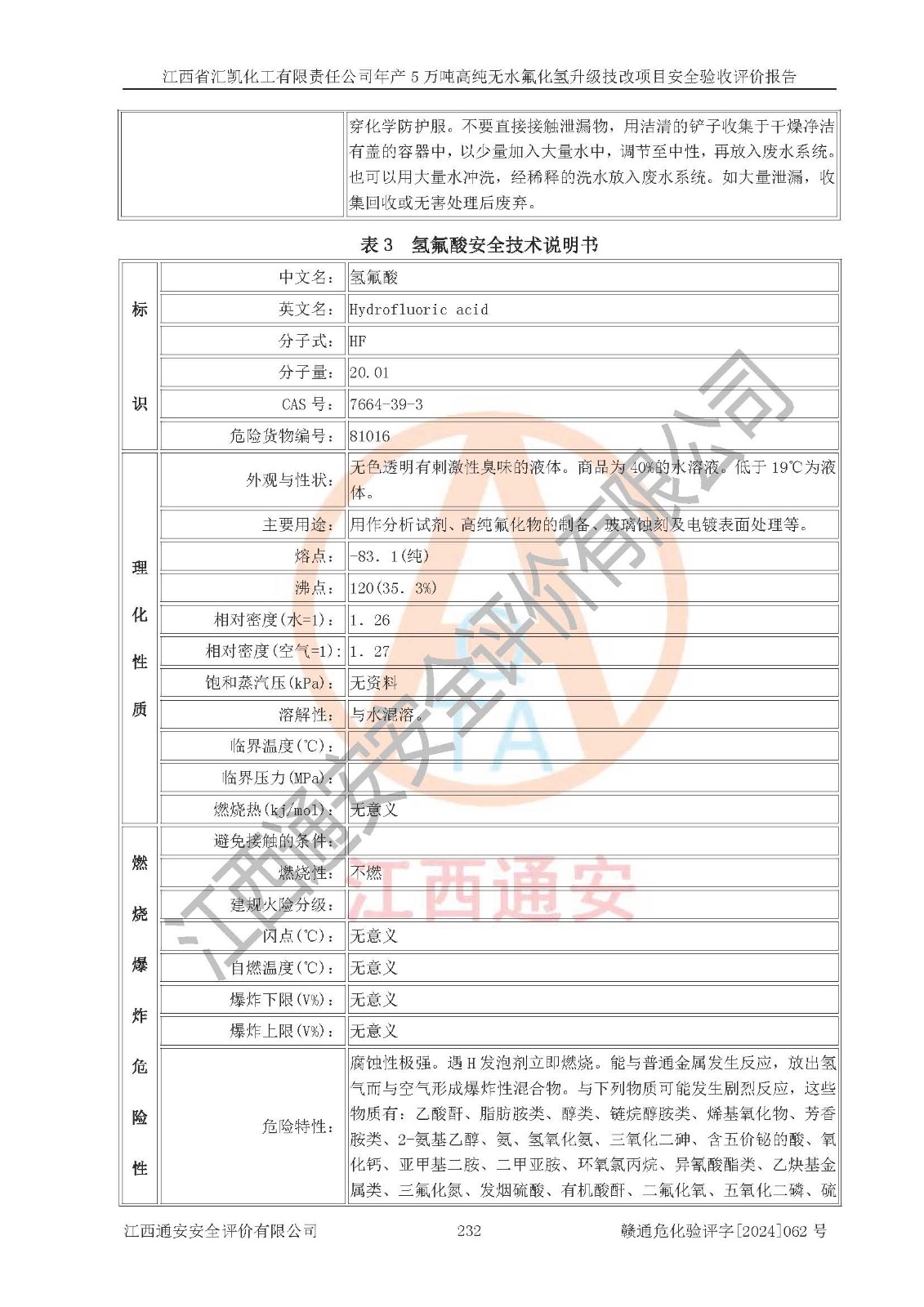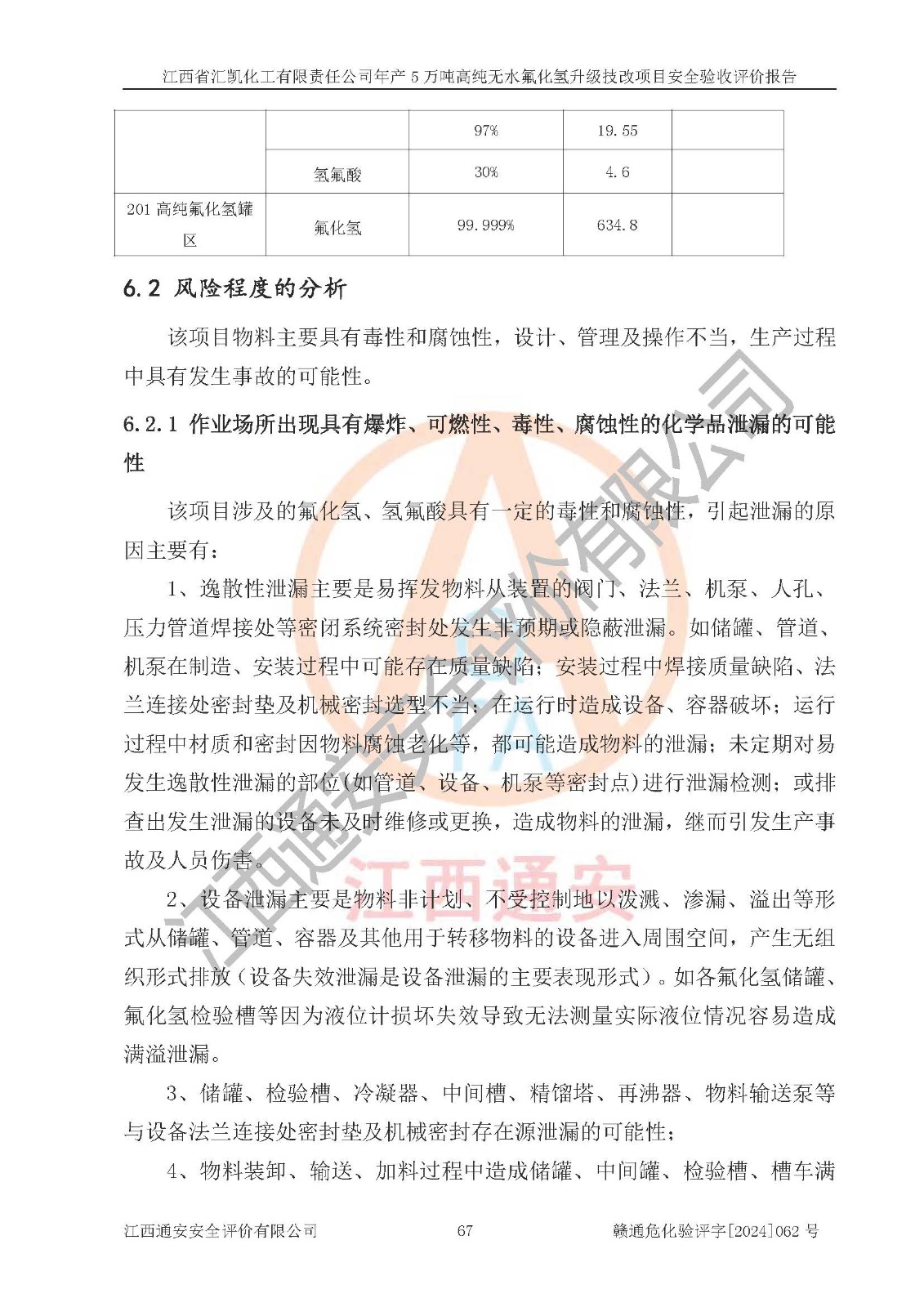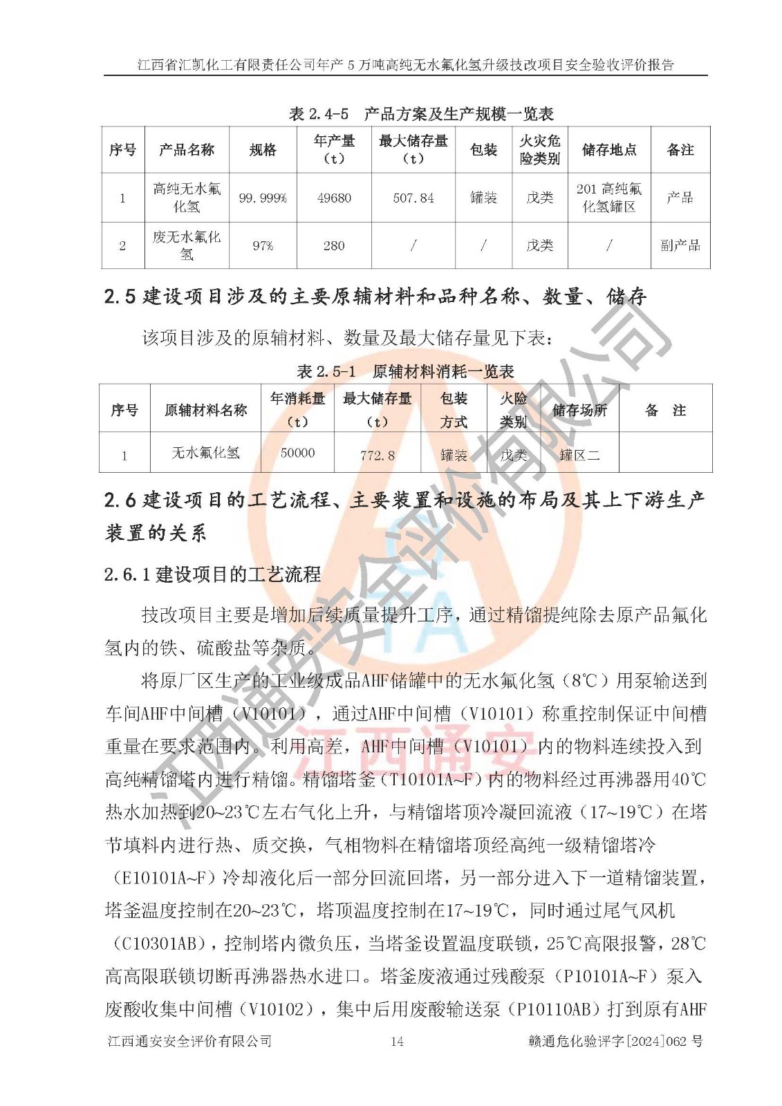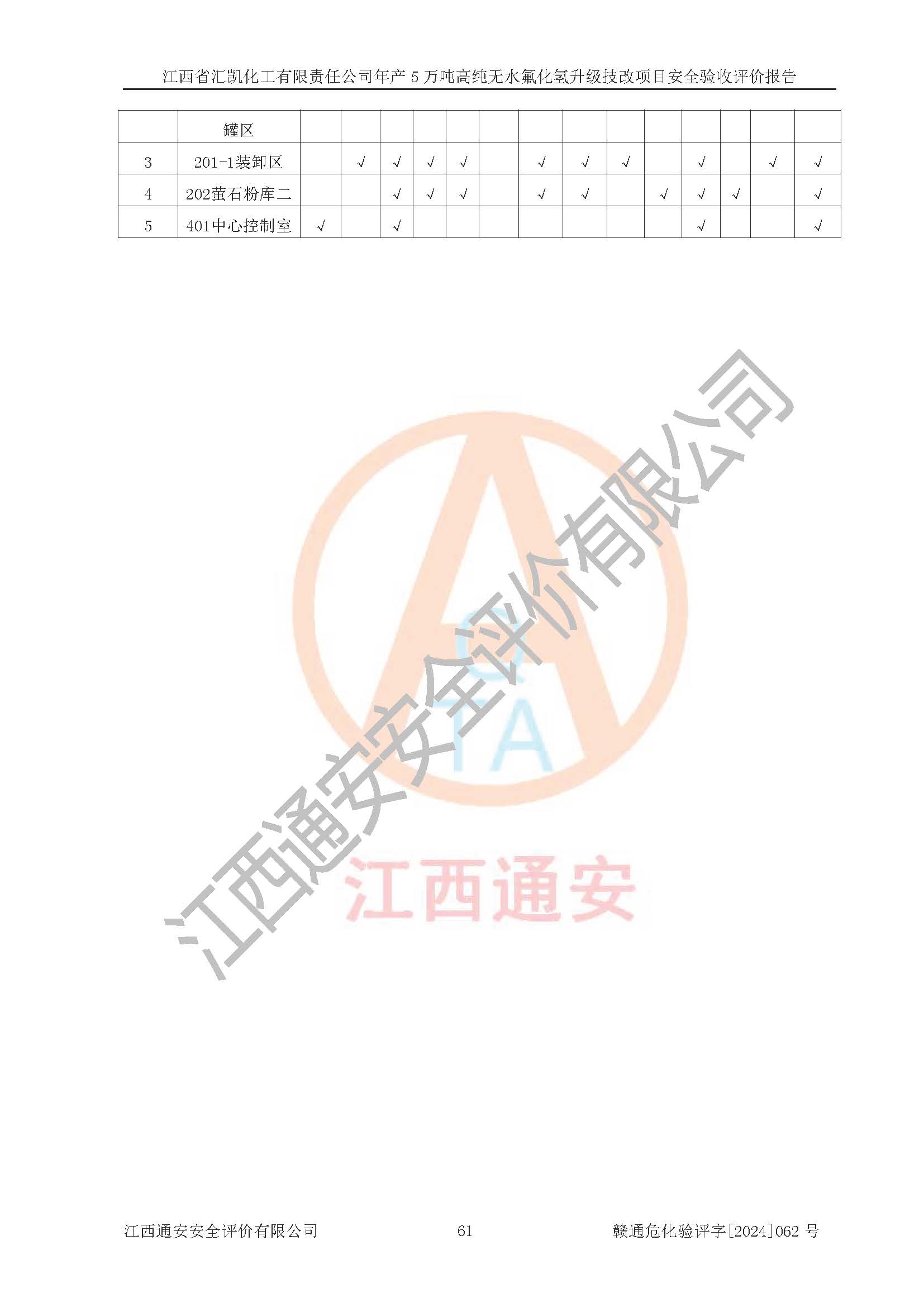 評價報告名稱 | 江西省匯凱化工有限責(zé)任公司年產(chǎn)5萬噸高純無水氟化氫升級技改項目安全驗收評價報告 | ||||||
