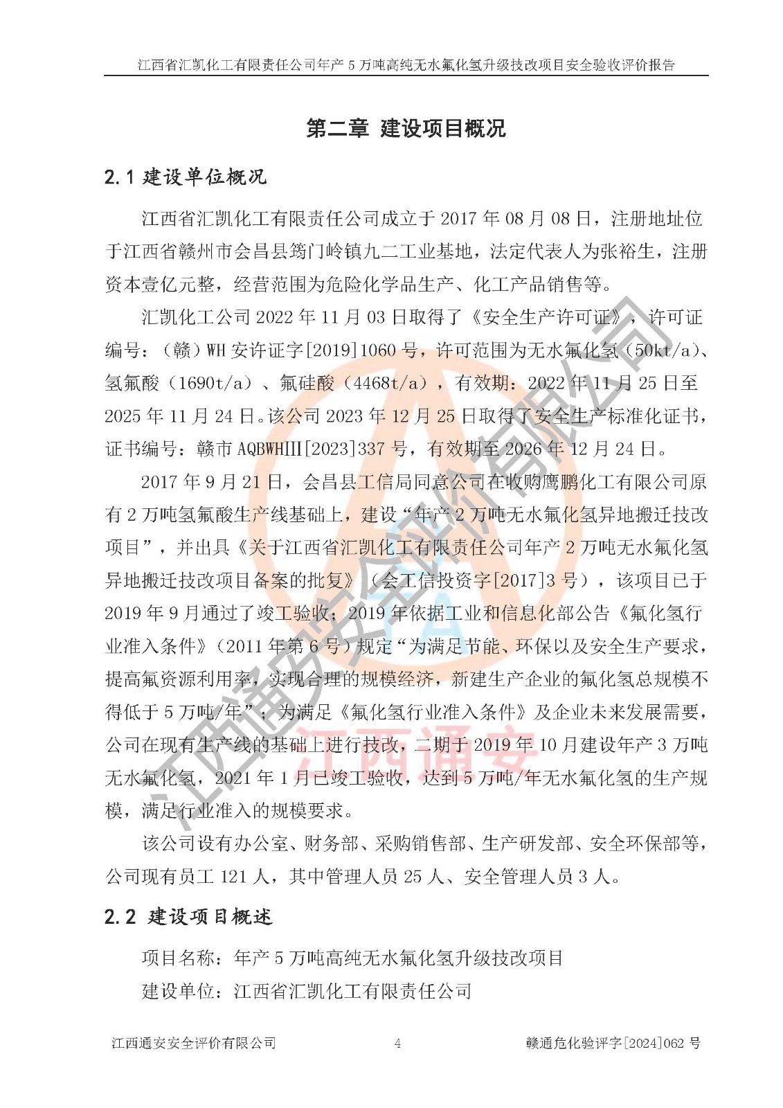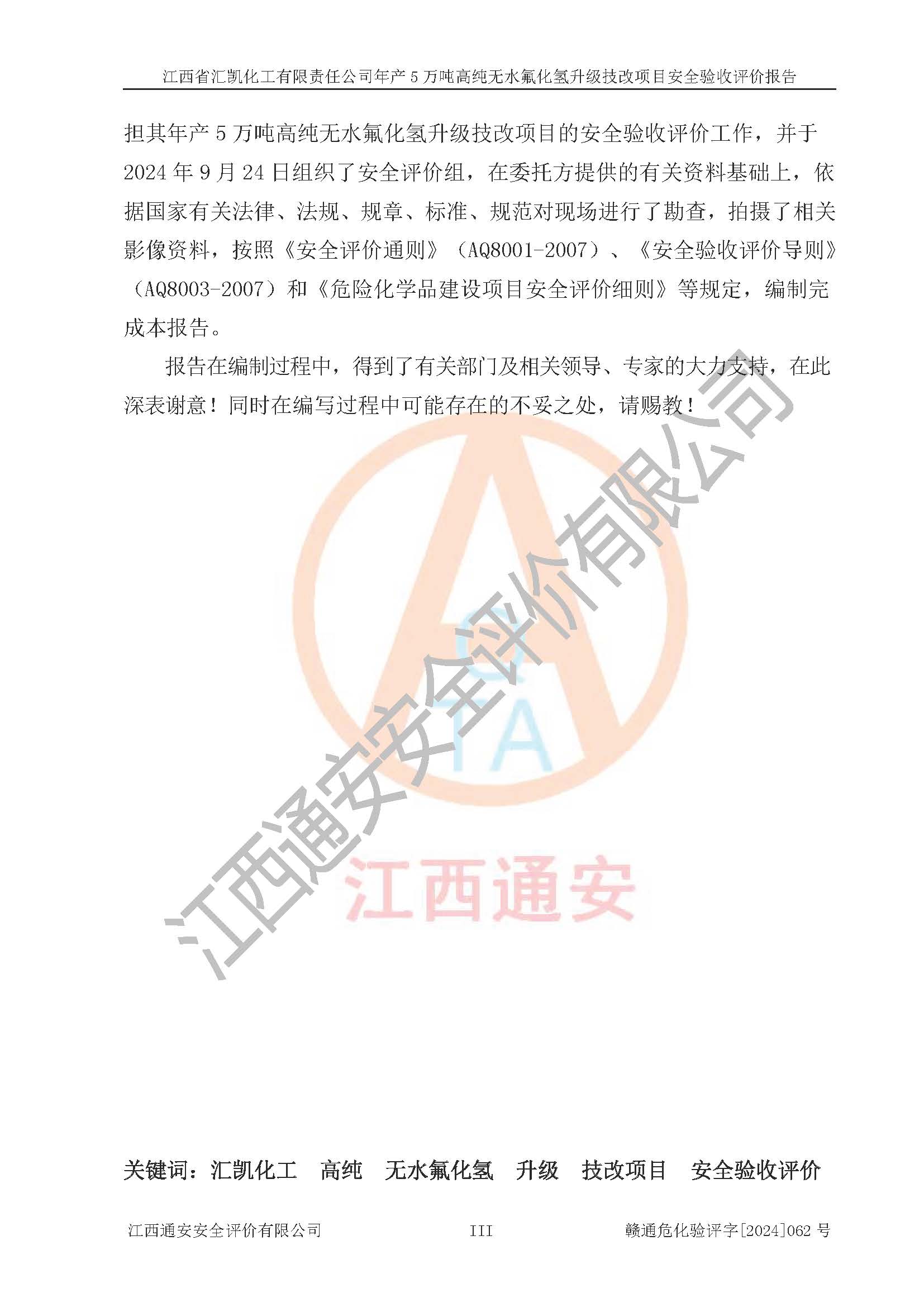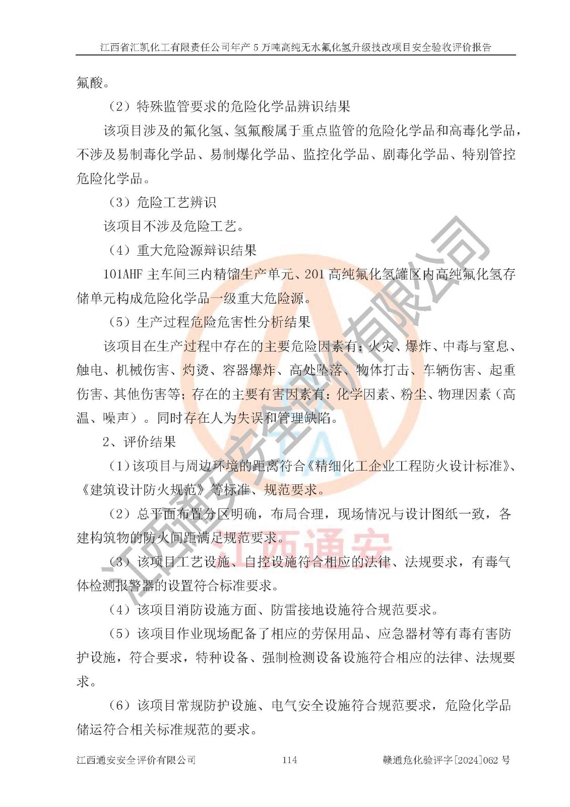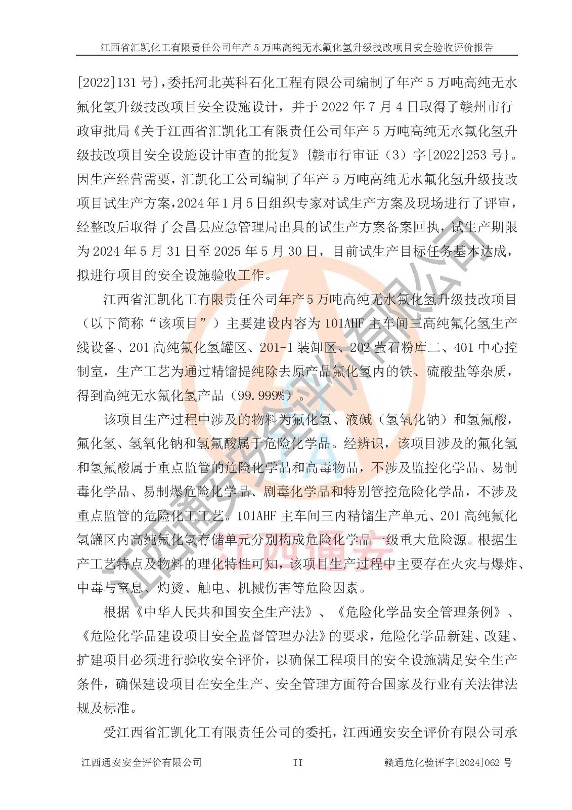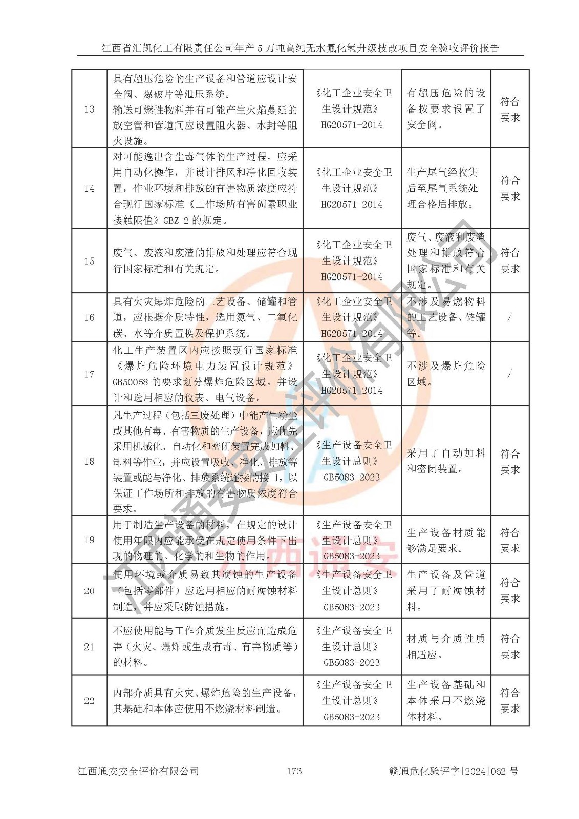 評價報告名稱 | 江西省匯凱化工有限責(zé)任公司年產(chǎn)5萬噸高純無水氟化氫升級技改項目安全驗收評價報告 | ||||||