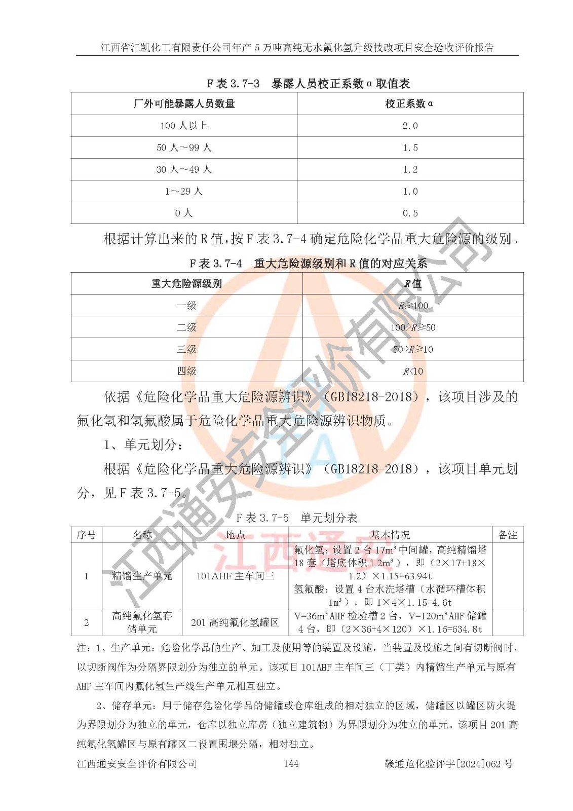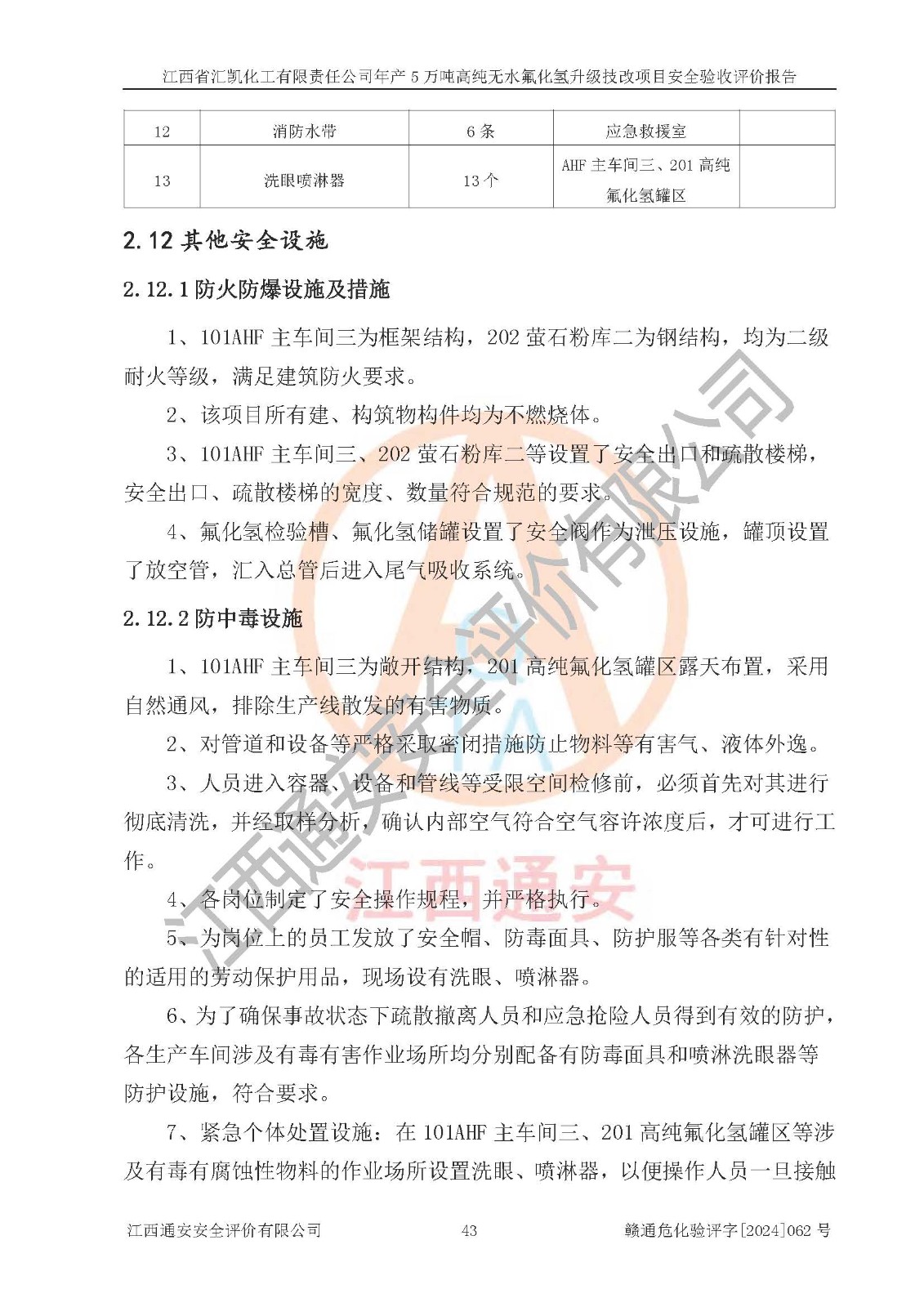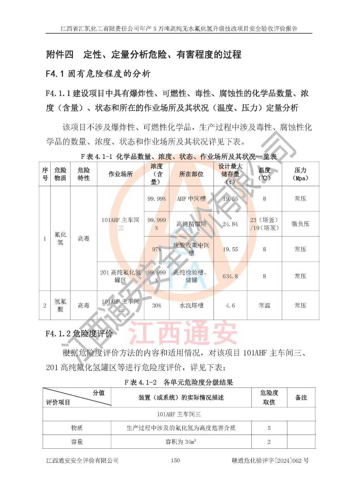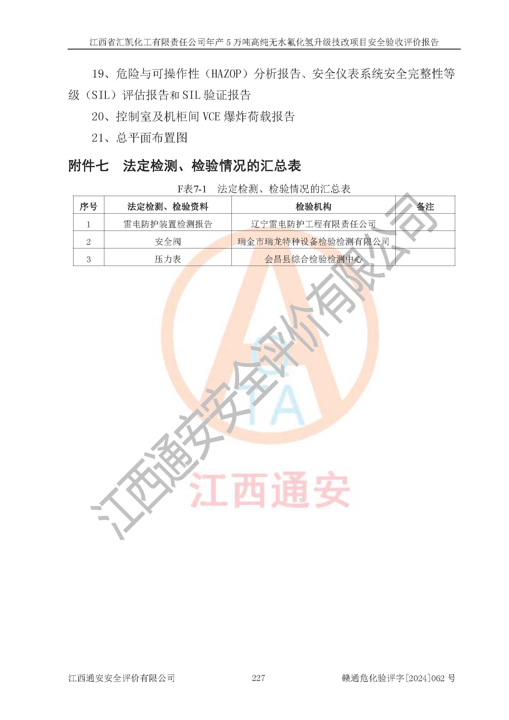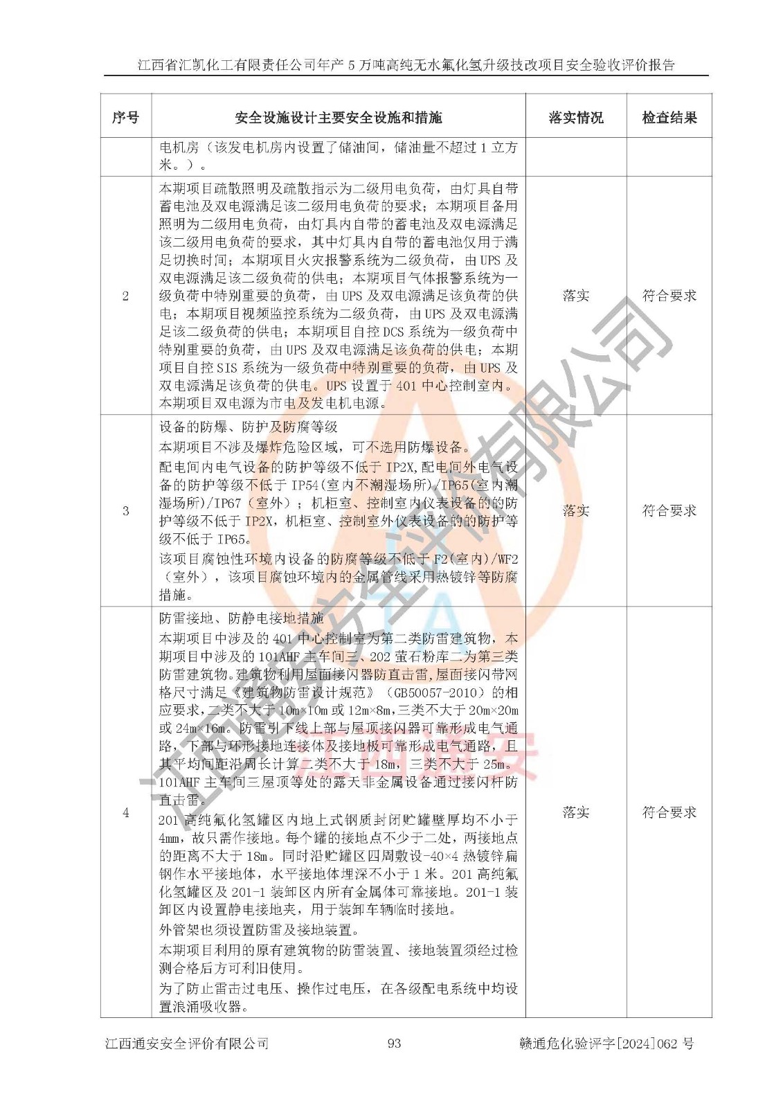 評價報告名稱 | 江西省匯凱化工有限責(zé)任公司年產(chǎn)5萬噸高純無水氟化氫升級技改項目安全驗收評價報告 | ||||||