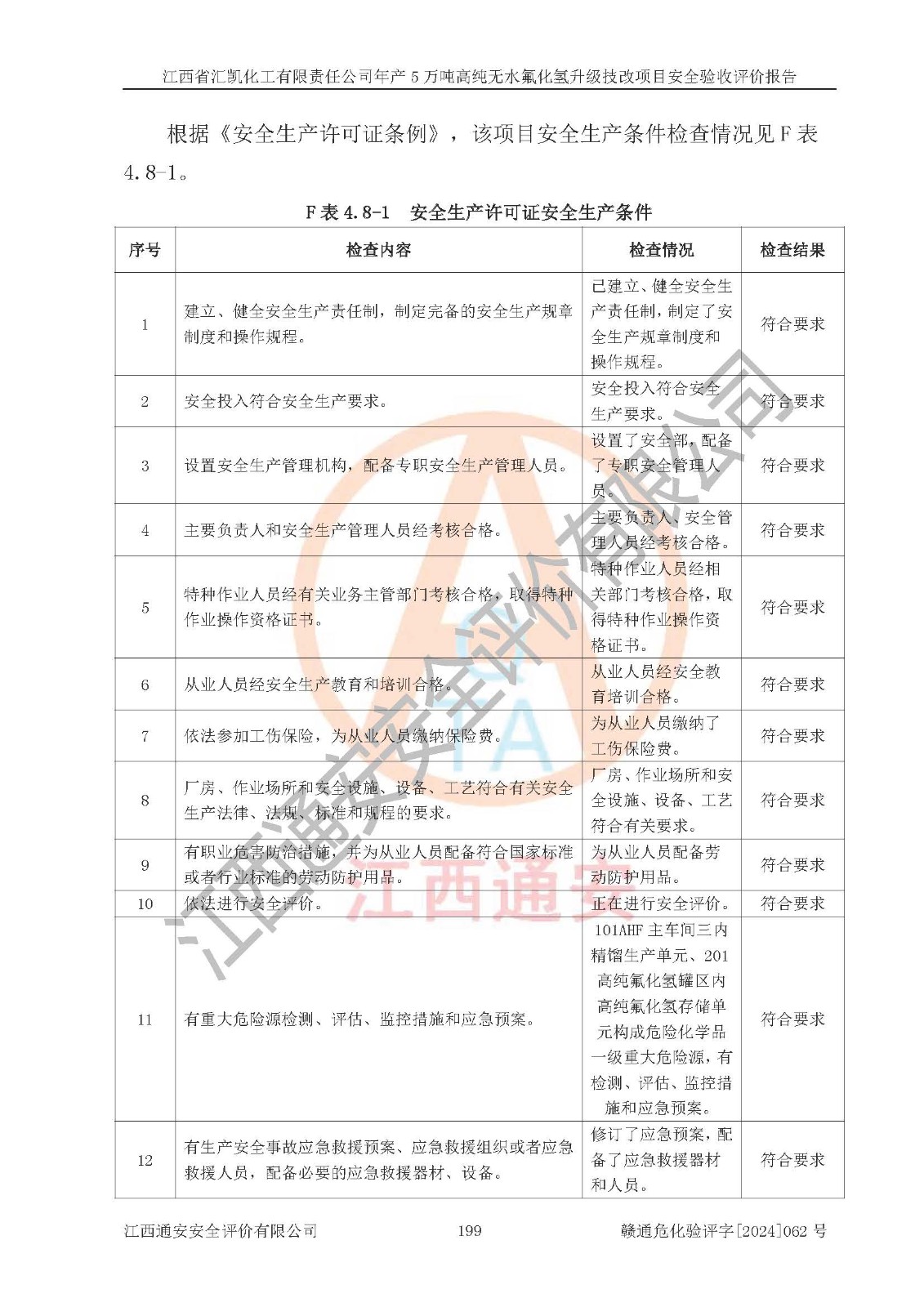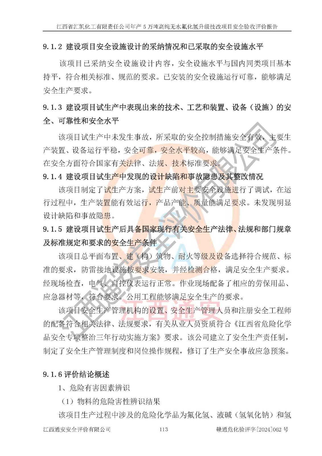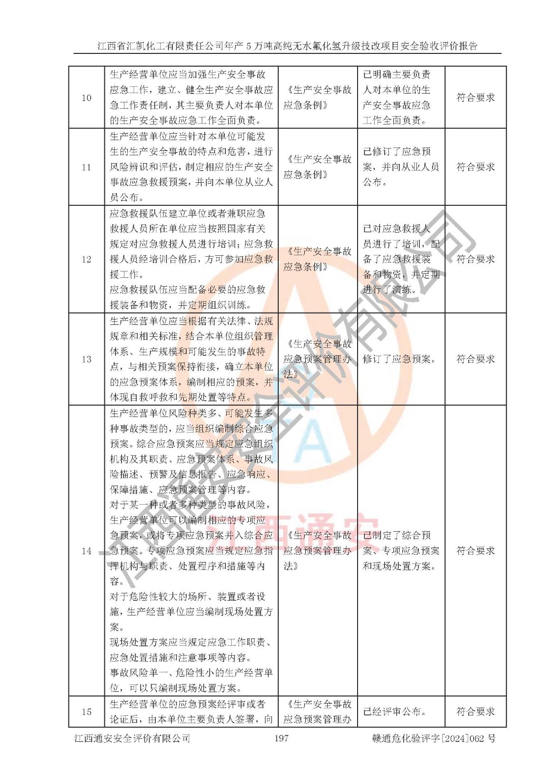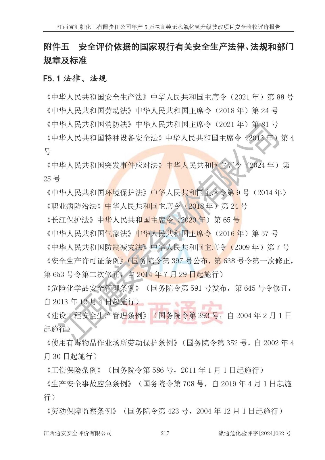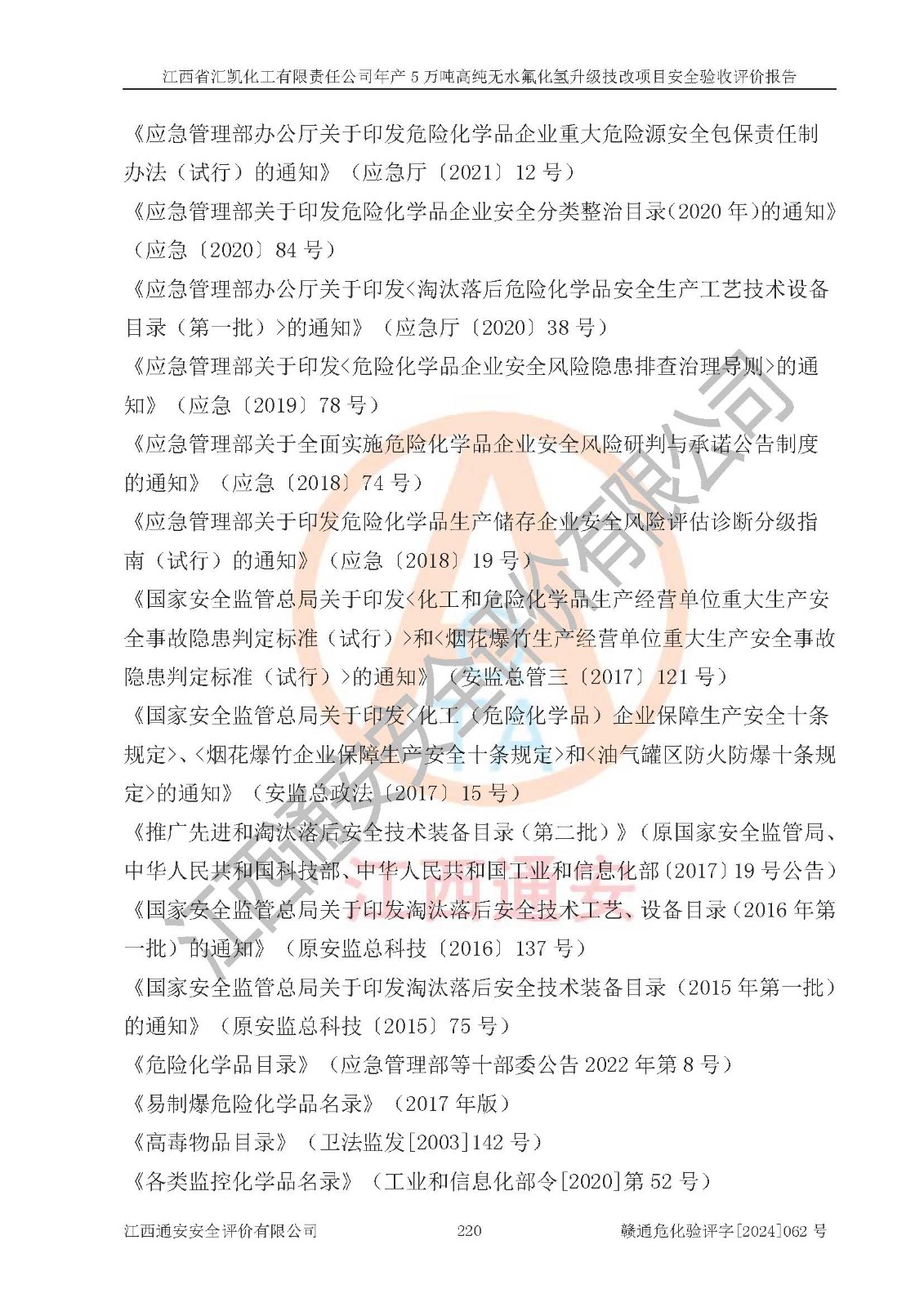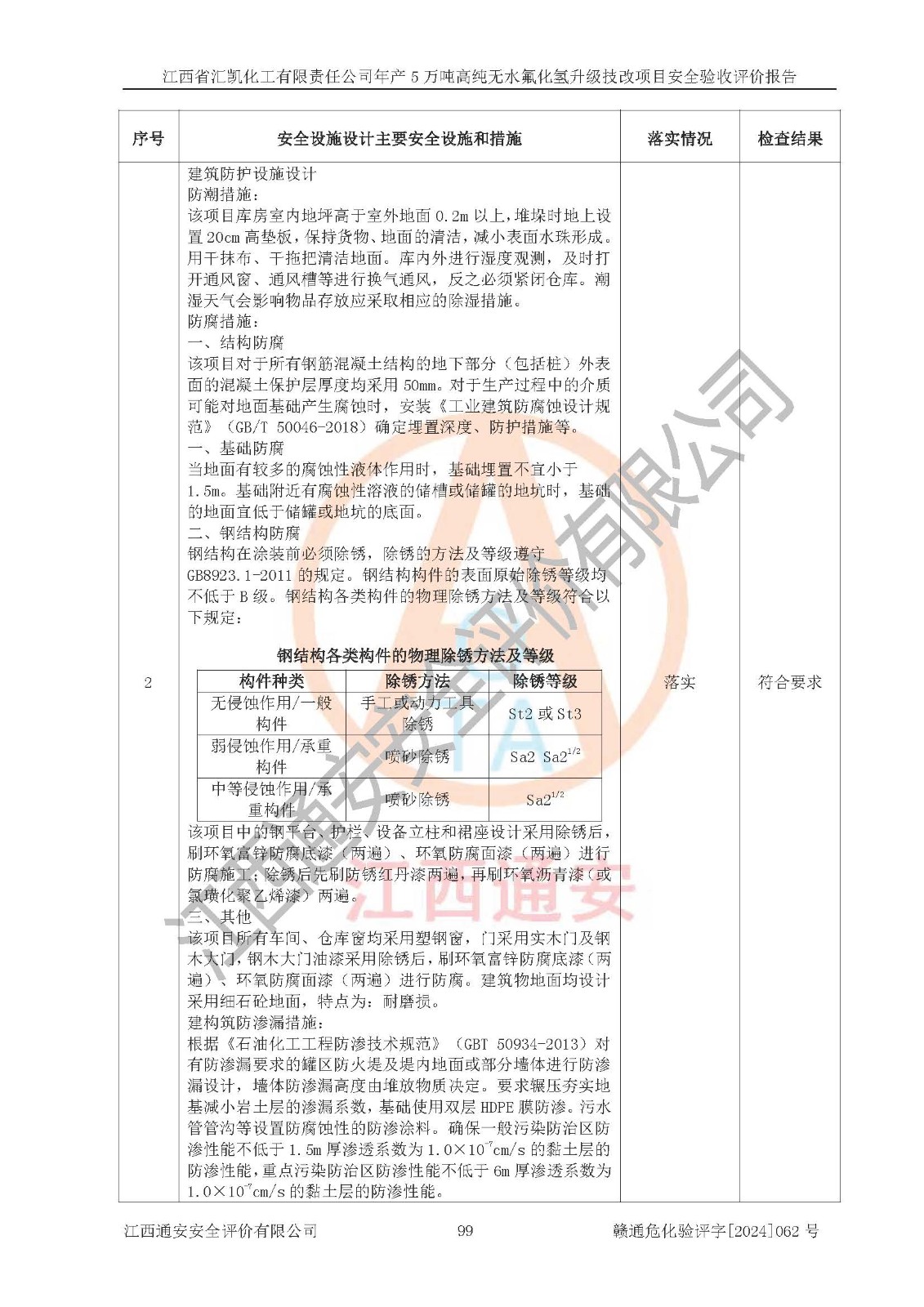 評價報告名稱 | 江西省匯凱化工有限責(zé)任公司年產(chǎn)5萬噸高純無水氟化氫升級技改項目安全驗收評價報告 | ||||||