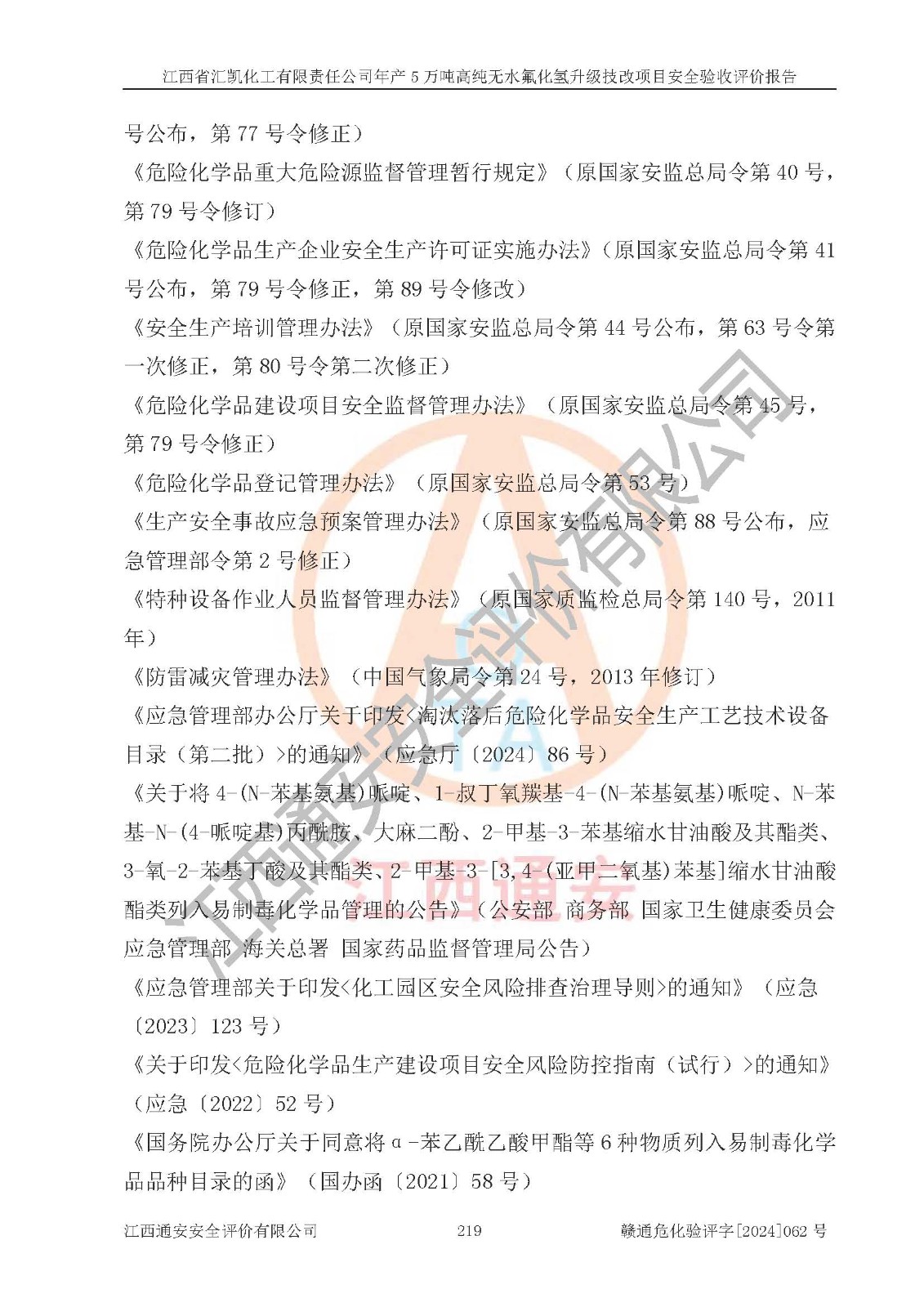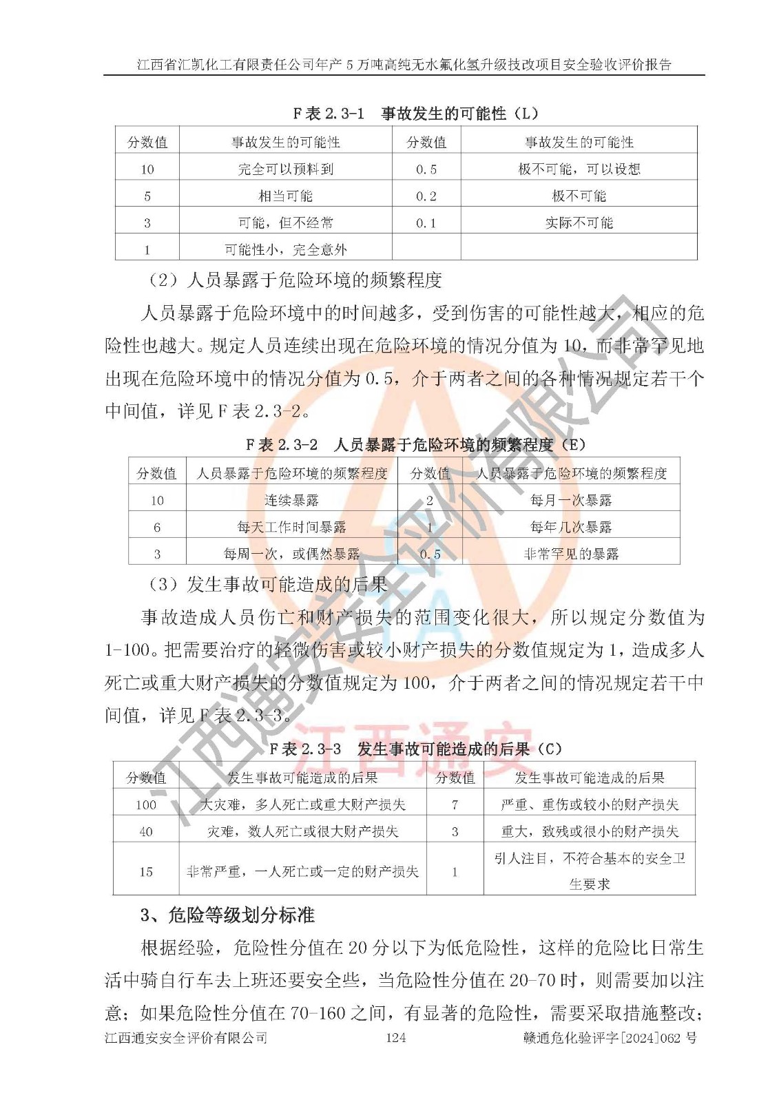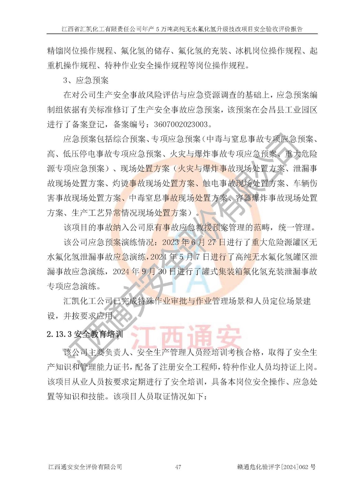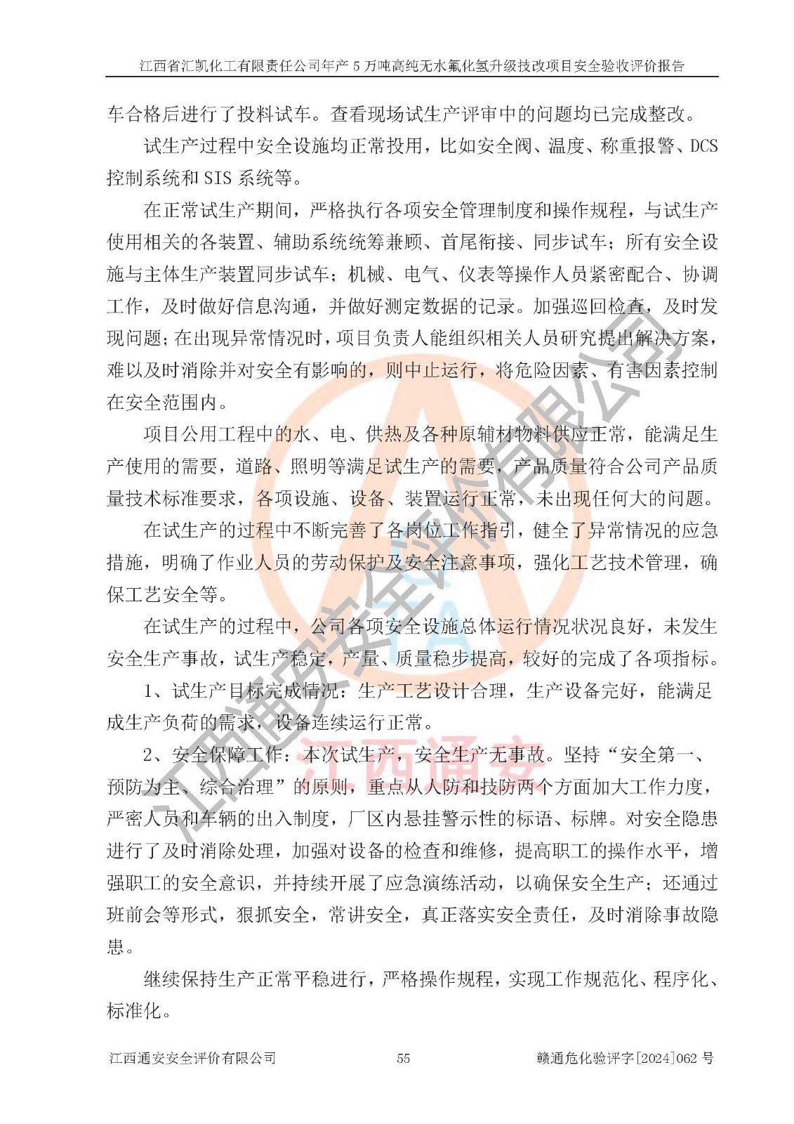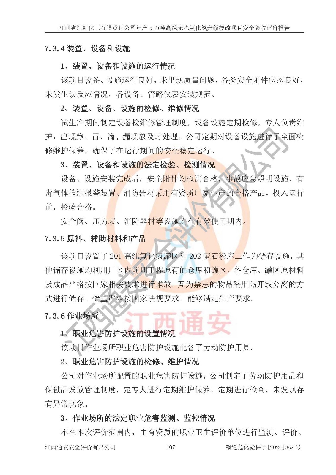 評價報告名稱 | 江西省匯凱化工有限責(zé)任公司年產(chǎn)5萬噸高純無水氟化氫升級技改項目安全驗收評價報告 | ||||||