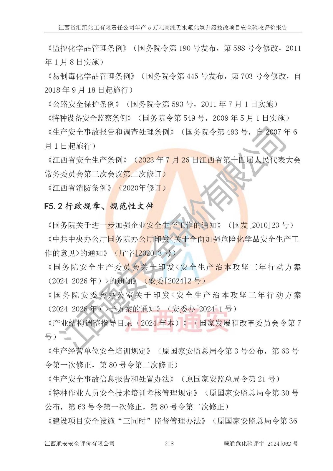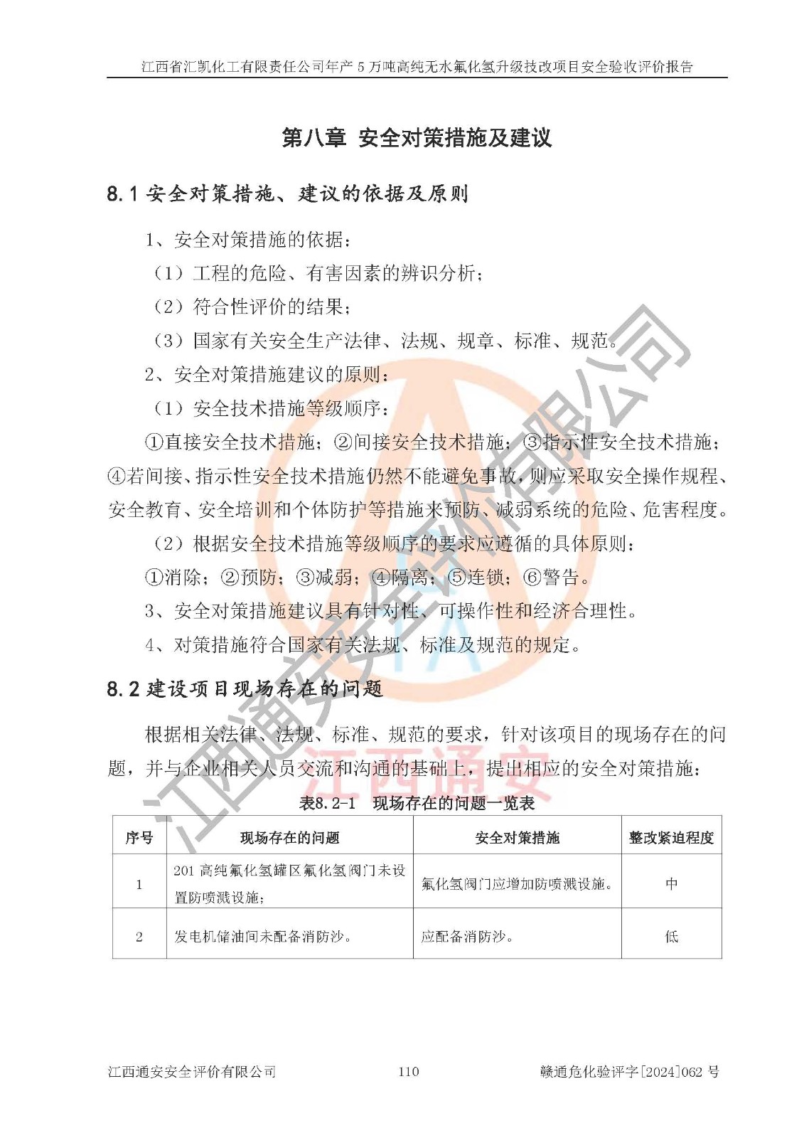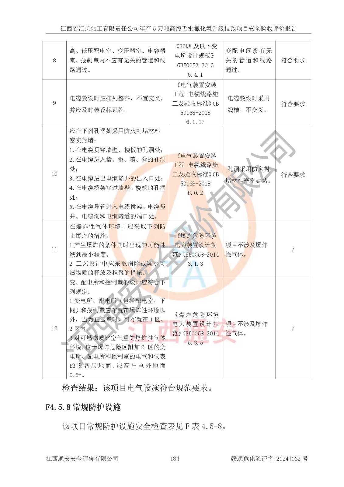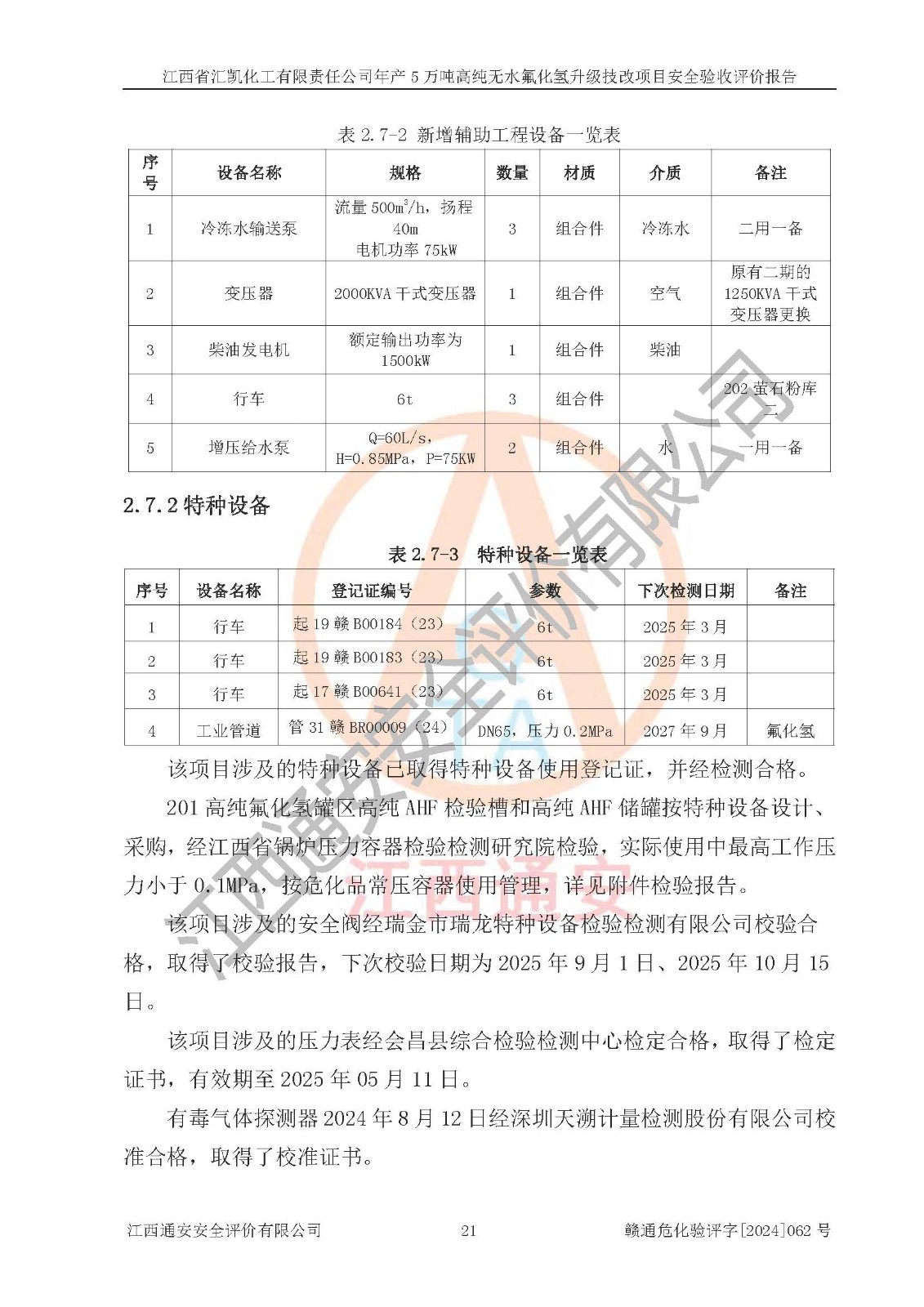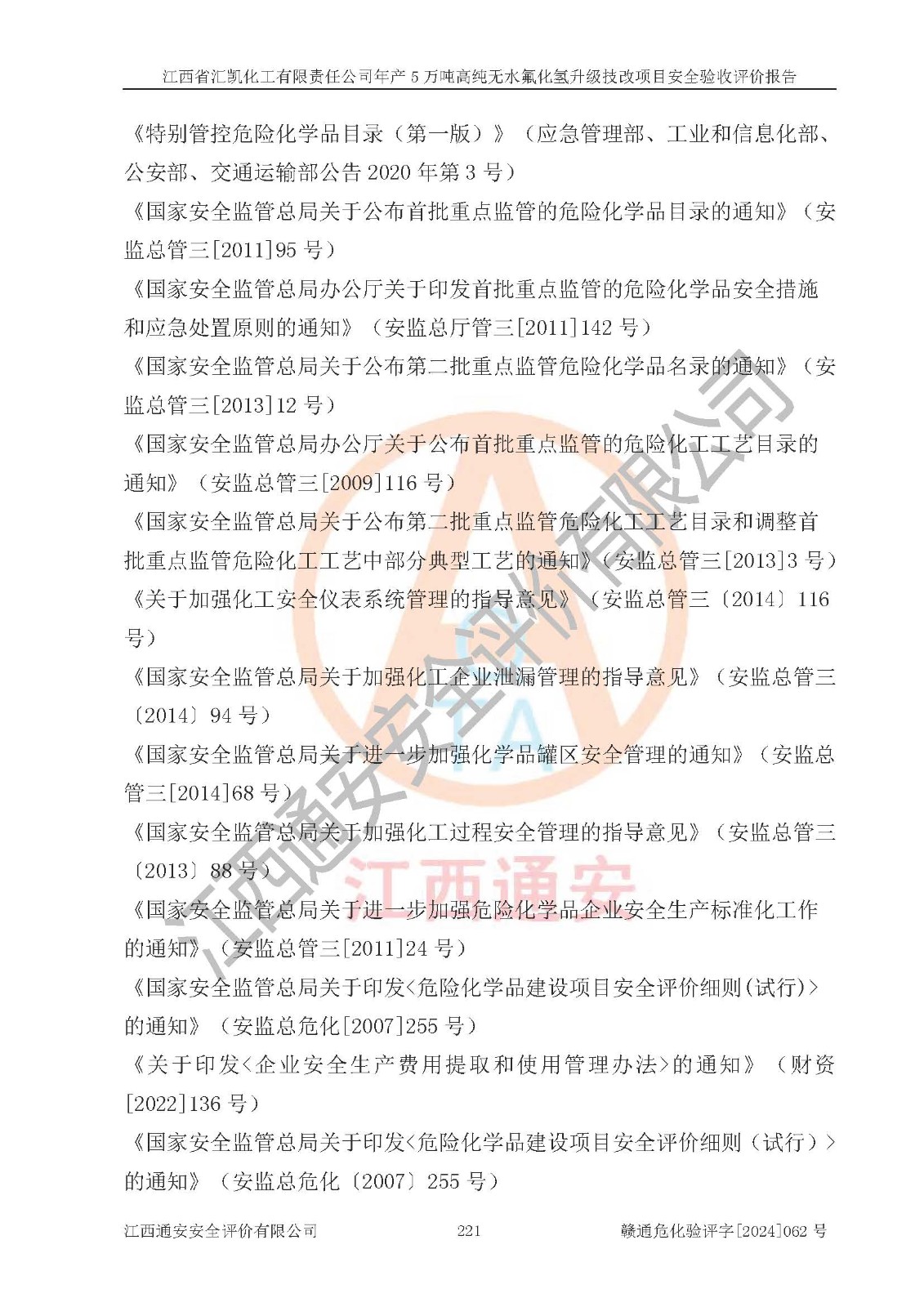 評價報告名稱 | 江西省匯凱化工有限責(zé)任公司年產(chǎn)5萬噸高純無水氟化氫升級技改項目安全驗收評價報告 | ||||||