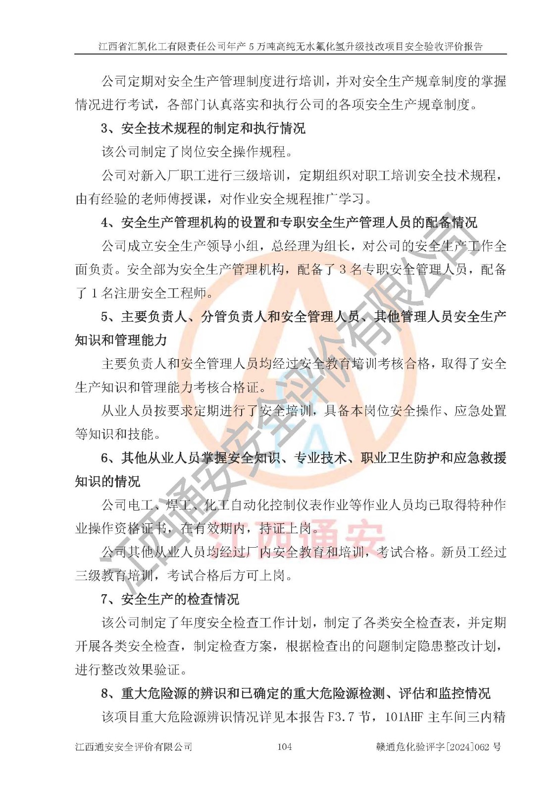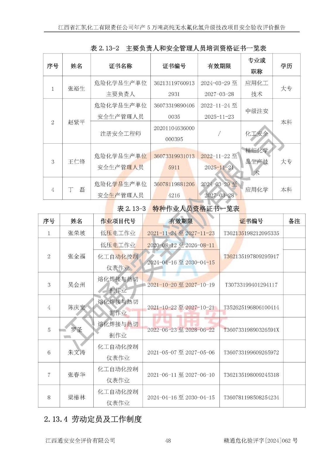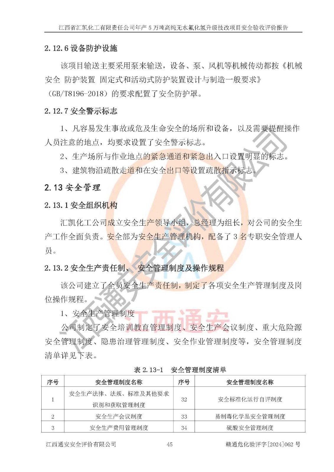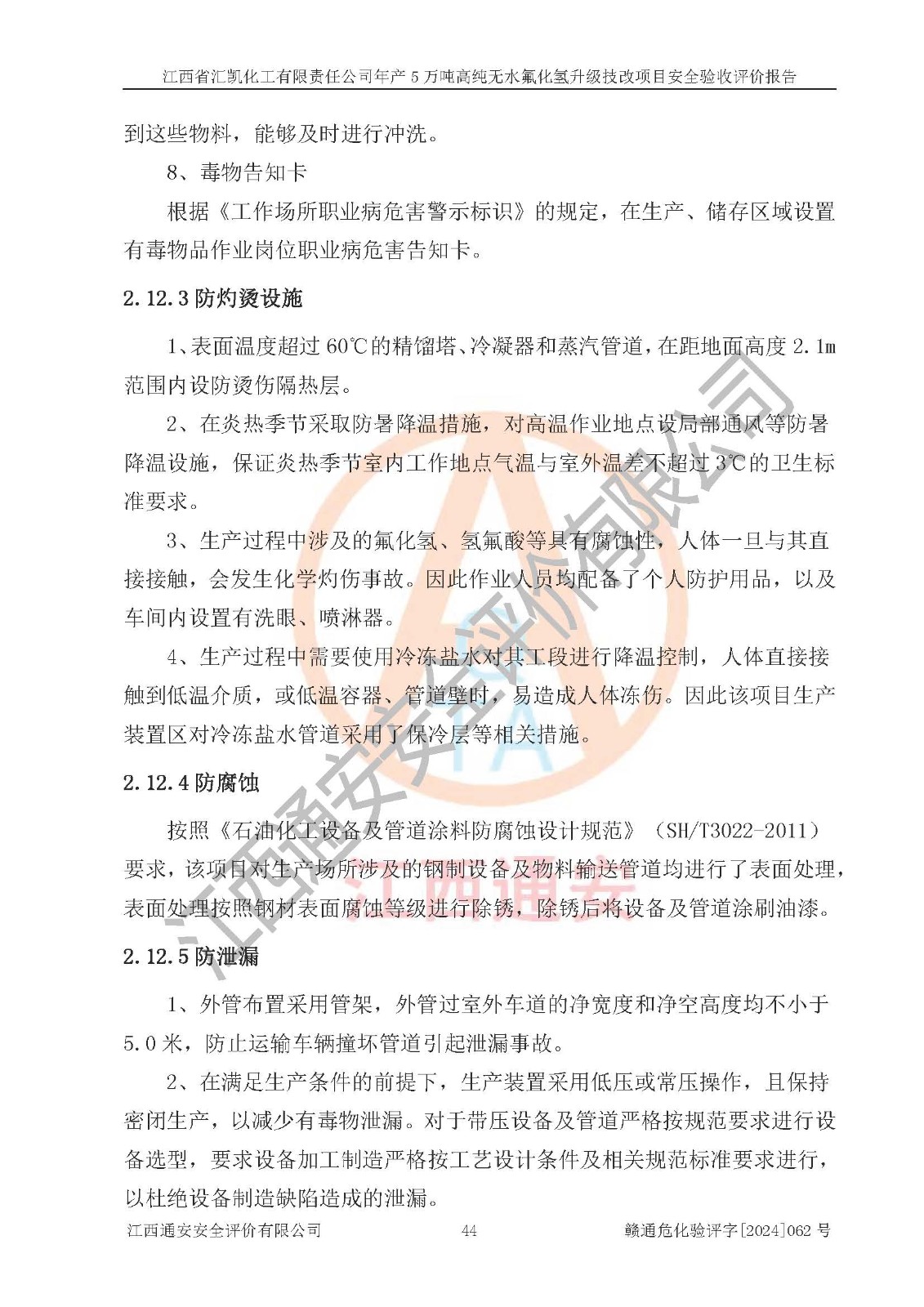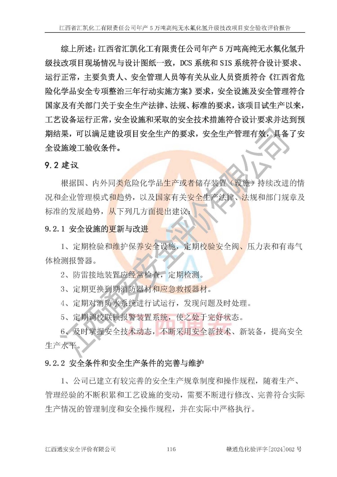 評價報告名稱 | 江西省匯凱化工有限責(zé)任公司年產(chǎn)5萬噸高純無水氟化氫升級技改項目安全驗收評價報告 | ||||||
