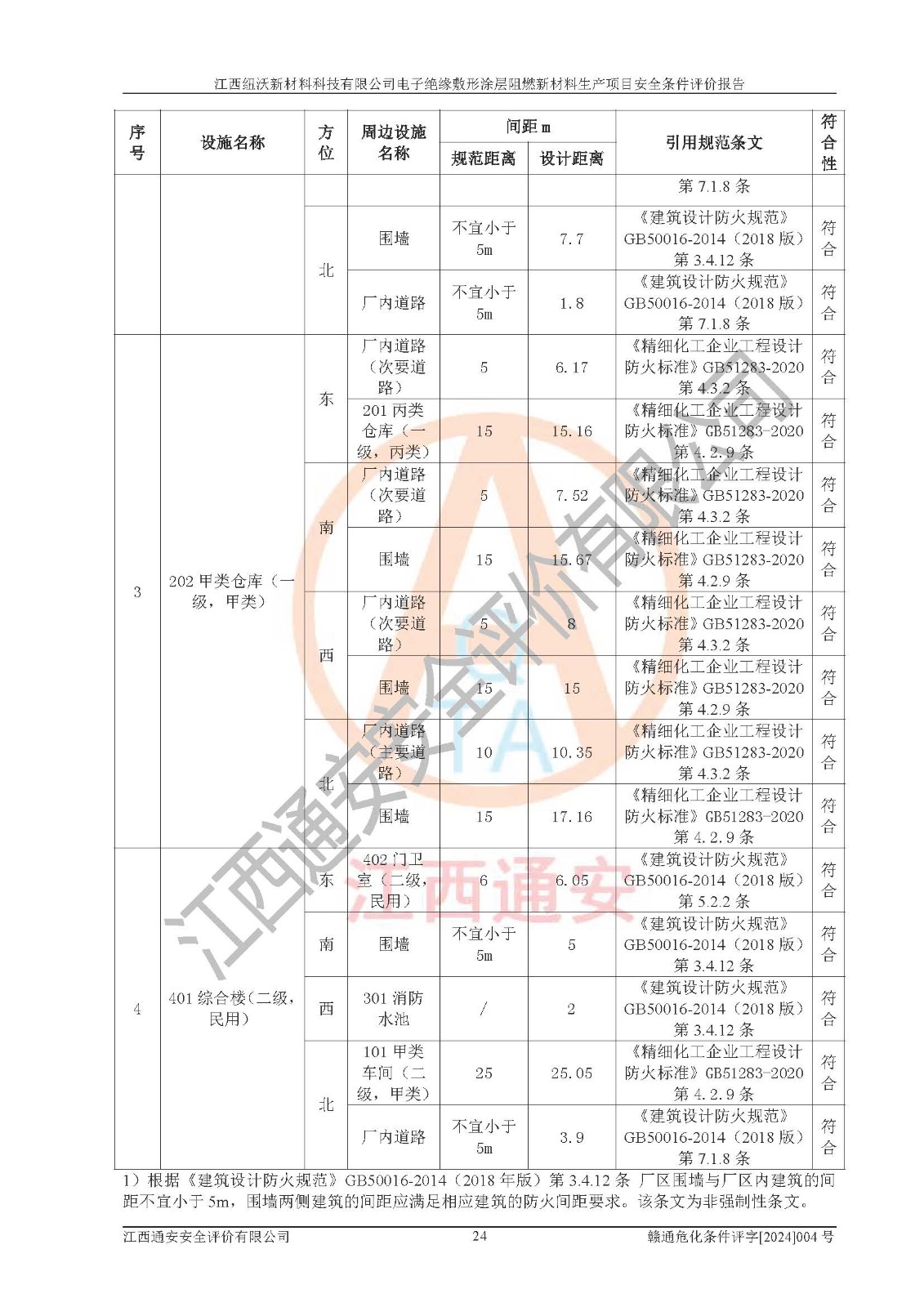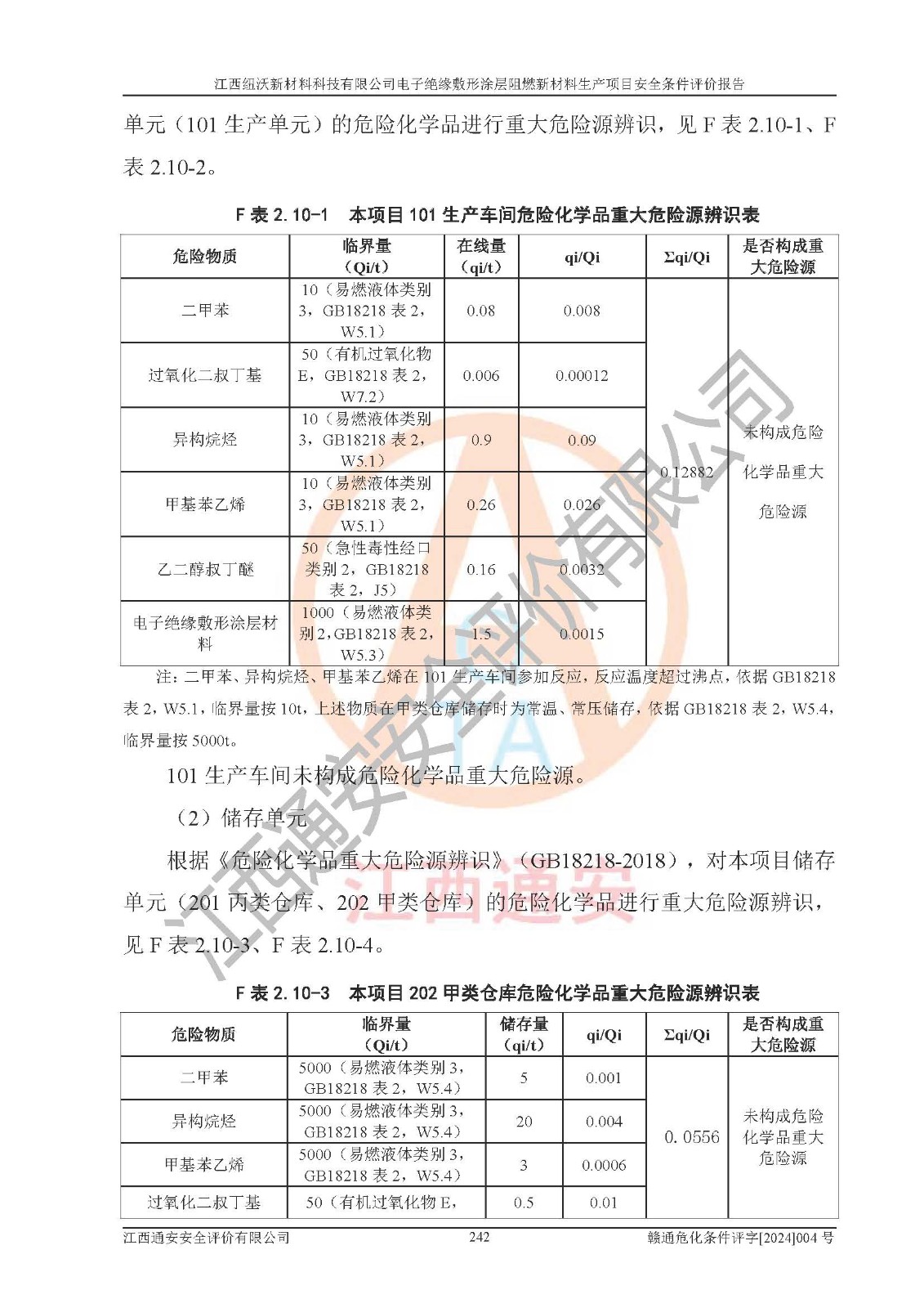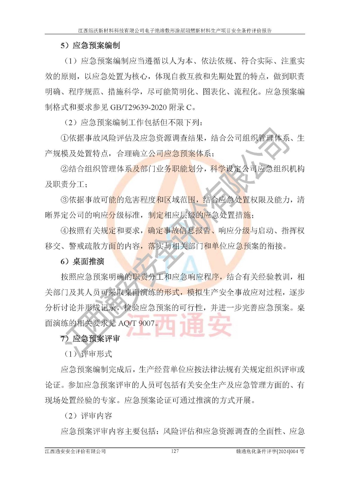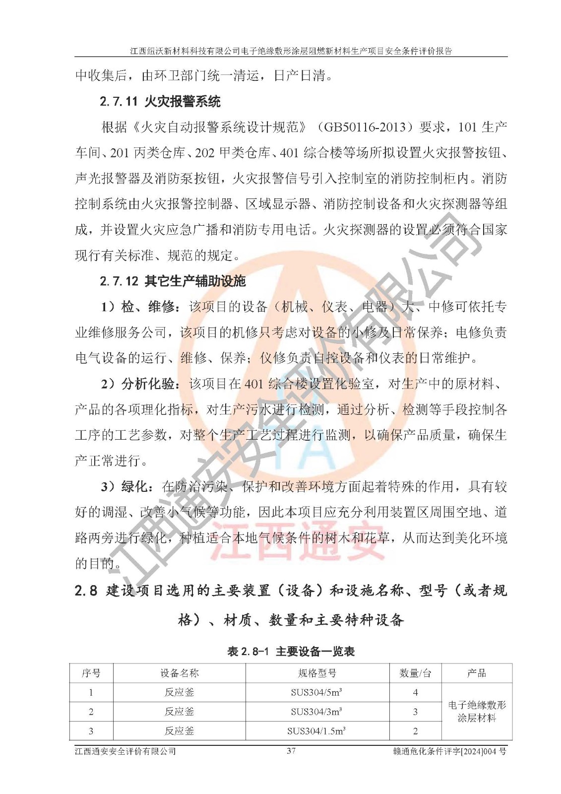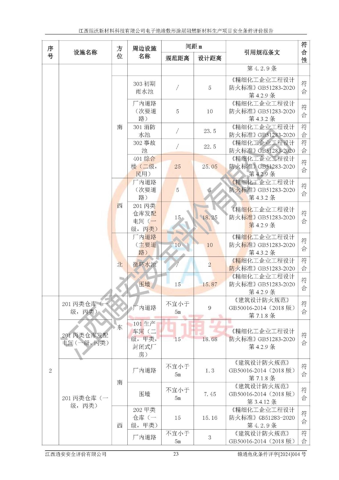 1)本項(xiàng)目依法取得了《江西省企業(yè)投資項(xiàng)目備案通知書》、《建設(shè)用地規(guī)劃許可證》,符合地方產(chǎn)業(yè)發(fā)展規(guī)劃的要求。 2)根據(jù)《**安全監(jiān)管總局關(guān)于公布首批重點(diǎn)監(jiān)管的危險(xiǎn)化工工藝目錄的通知》(安監(jiān)總管三[2009]116號)和《**安全監(jiān)管總局關(guān)于公布第二批重點(diǎn)監(jiān)管危險(xiǎn)化工工藝目錄和調(diào)整首批重點(diǎn)監(jiān)管危險(xiǎn)化工工藝中部分典型工藝的通知》(安監(jiān)總管三[2013]3號),該項(xiàng)目未涉及重點(diǎn)監(jiān)管危險(xiǎn)化工工藝。 3)根據(jù)《危險(xiǎn)化學(xué)品重大危險(xiǎn)源辨識》(GB18218-2018),該項(xiàng)目未構(gòu)成危險(xiǎn)化學(xué)品重大危險(xiǎn)源。 4)項(xiàng)目存在的主要危險(xiǎn)因素有:火災(zāi)爆炸、容器爆炸、中毒窒息、灼燙、觸電、**傷害、機(jī)械傷害、高處墜落、物體打擊、淹溺等,存在的主要危害因素有:噪聲與振動、高溫、有害化學(xué)物質(zhì)等;引起事故的原因有人的不安全行為、物的不安全狀態(tài)、管理缺陷和環(huán)境不良。其中*主要的危險(xiǎn)有害因素是火災(zāi)爆炸。 5)采用預(yù)先危險(xiǎn)性分析法評價(jià),結(jié)果為: (1)通過預(yù)先危險(xiǎn)(PHA)分析可知,項(xiàng)目廠址及總體布局單元存在周邊環(huán)境相互影響,發(fā)生異常情況,可對周邊企業(yè)生產(chǎn)經(jīng)營活動、人員活動產(chǎn)生影響;存在自然條件影響,可因雷擊、暴雨等引起事故;存在**傷害、建筑物危害,其固有的危險(xiǎn)性等級為Ⅱ級,屬于“臨界的”,應(yīng)予以排除、采取控制措施因素。 (2)生產(chǎn)作業(yè)存在的危險(xiǎn)因素包括火災(zāi)爆炸、觸電、灼燙、中毒窒息固有的危險(xiǎn)等級為Ⅲ級,屬于“危險(xiǎn)的”,可能導(dǎo)致人員傷亡和系統(tǒng)損壞的因素,需要采取防范和對策措施的因素;其它危險(xiǎn)因素固有的危險(xiǎn)等級為Ⅱ級,屬于“臨界的”,應(yīng)予以排除、采取控制措施因素。 (3)生產(chǎn)作業(yè)存在的噪聲、粉塵、高溫、有害化學(xué)物質(zhì)的危險(xiǎn)有害因素等級為Ⅱ級,屬于“臨界的”,應(yīng)予以排除、采取控制措施因素。 6)危險(xiǎn)度評價(jià)分析,結(jié)果為: 生產(chǎn)裝置危險(xiǎn)度評價(jià)分析:101生產(chǎn)車間為**危險(xiǎn)(Ⅰ級)。 儲存單元危險(xiǎn)度評價(jià)分析:202甲類倉庫為**危險(xiǎn)(Ⅰ級),201丙類倉庫為低度危險(xiǎn)(Ⅲ級)。 7)作業(yè)條件危險(xiǎn)性評價(jià)結(jié)果:在選定的評價(jià)單元中,其危險(xiǎn)分值均在70以下,危險(xiǎn)程度基本屬于“可能危險(xiǎn)”、“稍有危險(xiǎn)”范圍,作業(yè)條件相對安全。企業(yè)經(jīng)營過程中首先應(yīng)重點(diǎn)加強(qiáng)對甲類車間、甲類倉庫的危險(xiǎn)因素的嚴(yán)格控制,注重日常安全管理;其次要建立健全完善的安全生產(chǎn)責(zé)任制、安全管理制度、安全技術(shù)操作規(guī)程并**其貫徹落實(shí);第三要認(rèn)真抓好操作人員、管理人員的安全知識和操作技能的培訓(xùn),**人員具有與工程技術(shù)水平相適應(yīng)的技術(shù)素質(zhì)和安全素質(zhì),**安全作業(yè)。 8)項(xiàng)目建設(shè)場地符合當(dāng)?shù)匾?guī)劃要求,建設(shè)場地通過合理規(guī)劃,其選址、周邊環(huán)境、總平面布置、交通運(yùn)輸?shù)饶芊稀吨腥A人民共和國安全生產(chǎn)法》、《危險(xiǎn)化學(xué)品安全管理?xiàng)l例》、《建筑設(shè)計(jì)防火規(guī)范》、《精細(xì)化工企業(yè)工程設(shè)計(jì)防火標(biāo)準(zhǔn)》等法規(guī)、標(biāo)準(zhǔn)、規(guī)范要求。 廠址地區(qū)地震活動相對較弱,災(zāi)害性天氣出現(xiàn)頻率稍高,自然災(zāi)害對項(xiàng)目建設(shè)具有**影響,通過采取相應(yīng)的防護(hù)措施,自然條件適宜建設(shè)。 9)建設(shè)項(xiàng)目符合**產(chǎn)業(yè)政策的要求;選擇工藝為現(xiàn)行成熟工藝,其安全可靠性可得到**。 10)本報(bào)告已根據(jù)有關(guān)安全生產(chǎn)法律、法規(guī)、規(guī)章和**標(biāo)準(zhǔn)、行業(yè)標(biāo)準(zhǔn),并嚴(yán)格執(zhí)行省委辦公廳省**辦公廳《關(guān)于全面加強(qiáng)危險(xiǎn)化學(xué)品安全生產(chǎn)工作的實(shí)施意見》(贛辦發(fā)[2020]32號)及鄱陽湖生態(tài)經(jīng)濟(jì)區(qū)、長江經(jīng)濟(jì)帶、“五河一湖”相關(guān)政策規(guī)定,客觀、公正、科學(xué)地進(jìn)行安全評價(jià),項(xiàng)目符合《江西省應(yīng)急管理廳關(guān)于印發(fā)《江西省危險(xiǎn)化學(xué)品建設(shè)項(xiàng)目安全監(jiān)督管理實(shí)施細(xì)則》(試行)的通知》(贛應(yīng)急字[2021]100號)的要求。 11)本報(bào)告結(jié)合工藝特征,提出應(yīng)采取的對應(yīng)的自動化控制系統(tǒng)及自動化實(shí)施方案,滿足《江西省應(yīng)急管理廳關(guān)于印發(fā)《江西省化工企業(yè)自動化提升實(shí)施方案》(試行)的通知》(贛應(yīng)急字[2021]190號)的要求。 綜上所述:江西紐沃新材料科技有限公司電子*緣敷形涂層阻燃新材料生產(chǎn)項(xiàng)目的產(chǎn)業(yè)政策、安全條件、廠址、總體布局、主要技術(shù)和工藝、裝置、設(shè)施、配套和輔助工程、安全管理等均滿足安全生產(chǎn)相關(guān)法