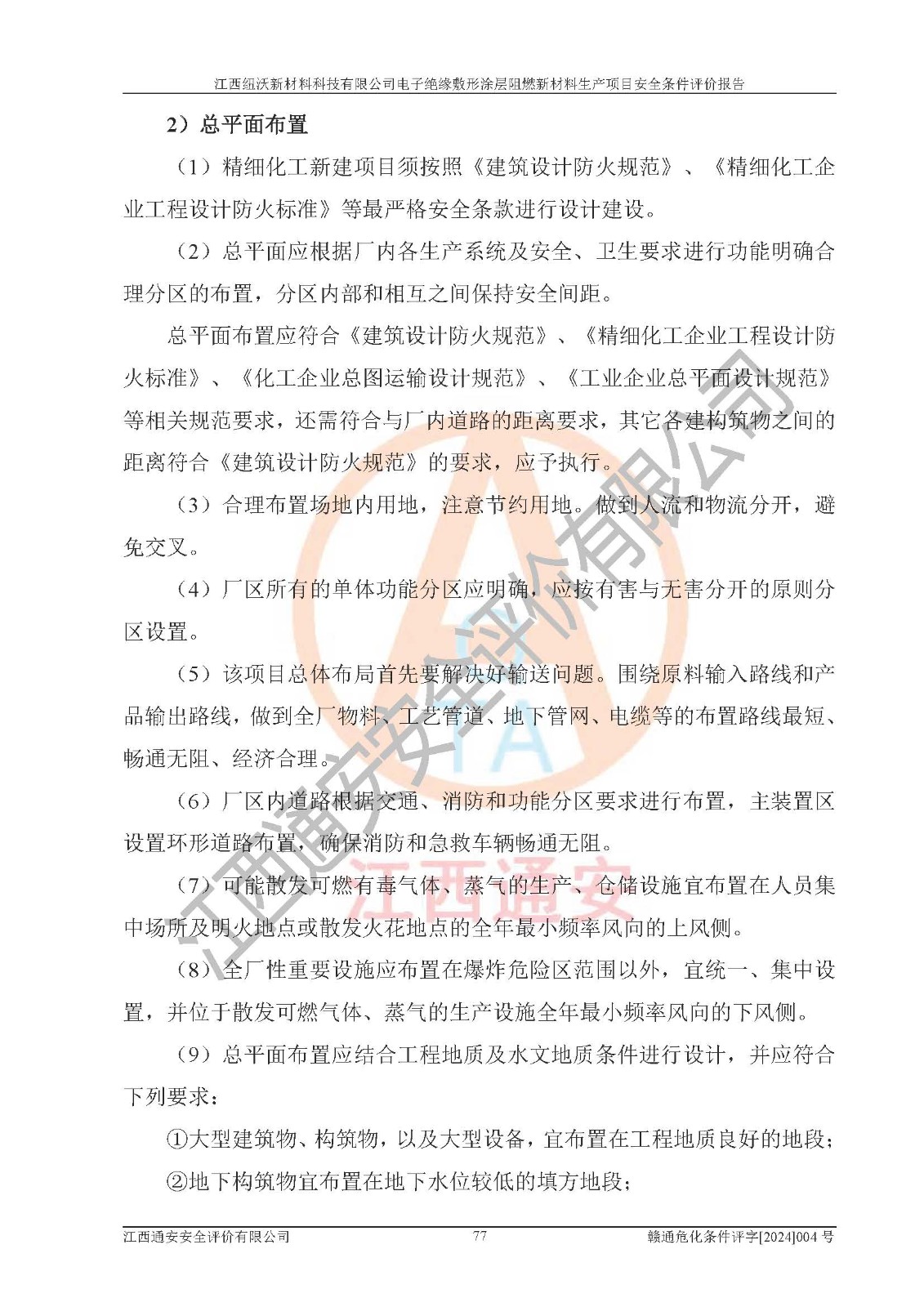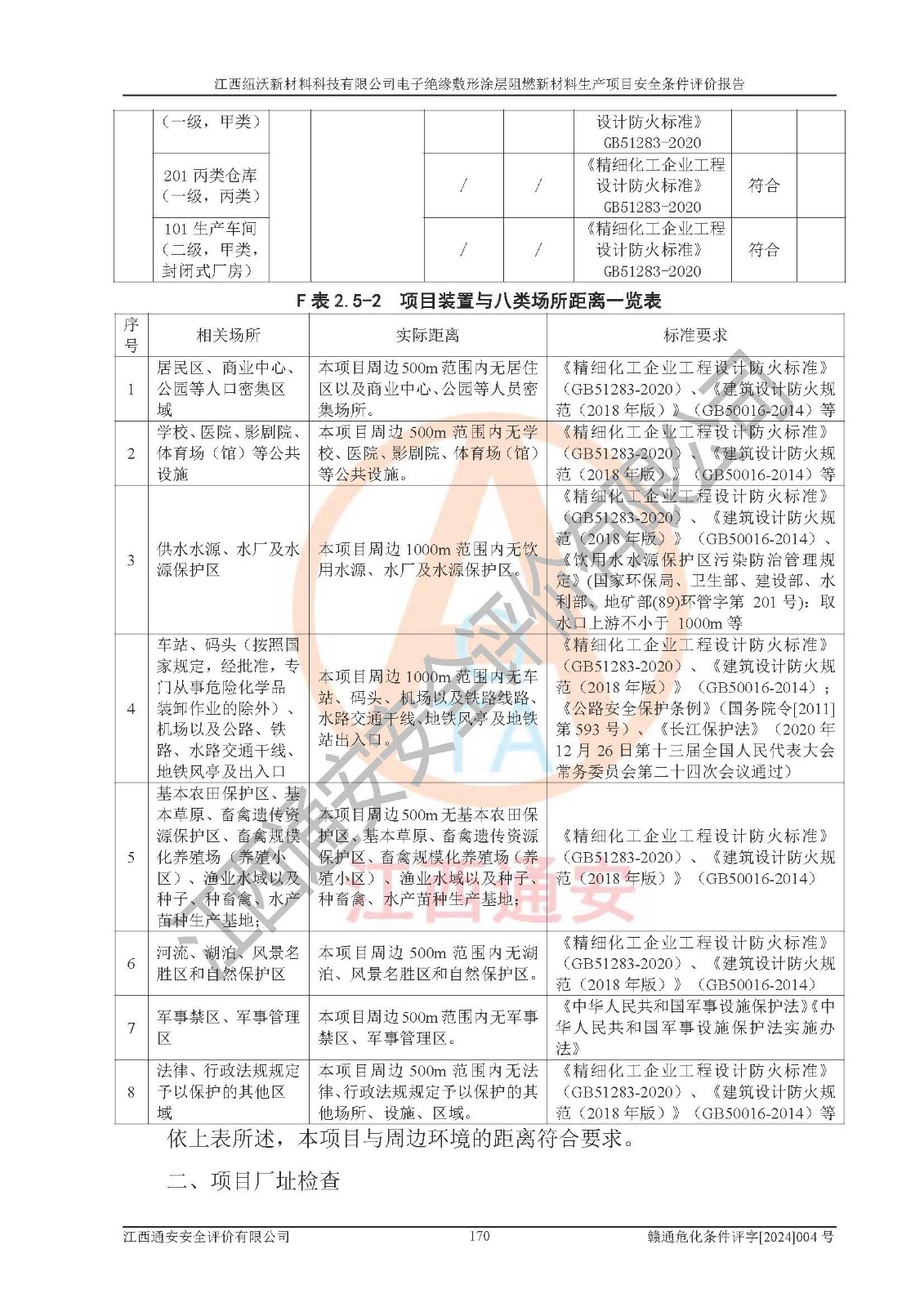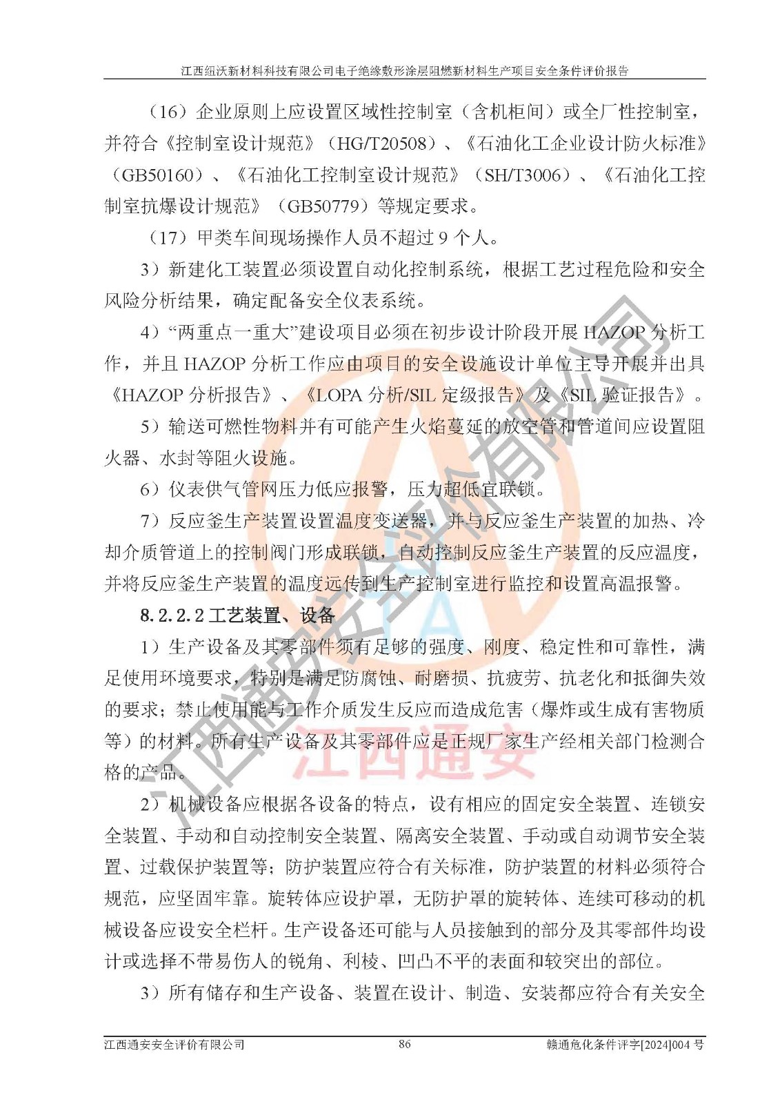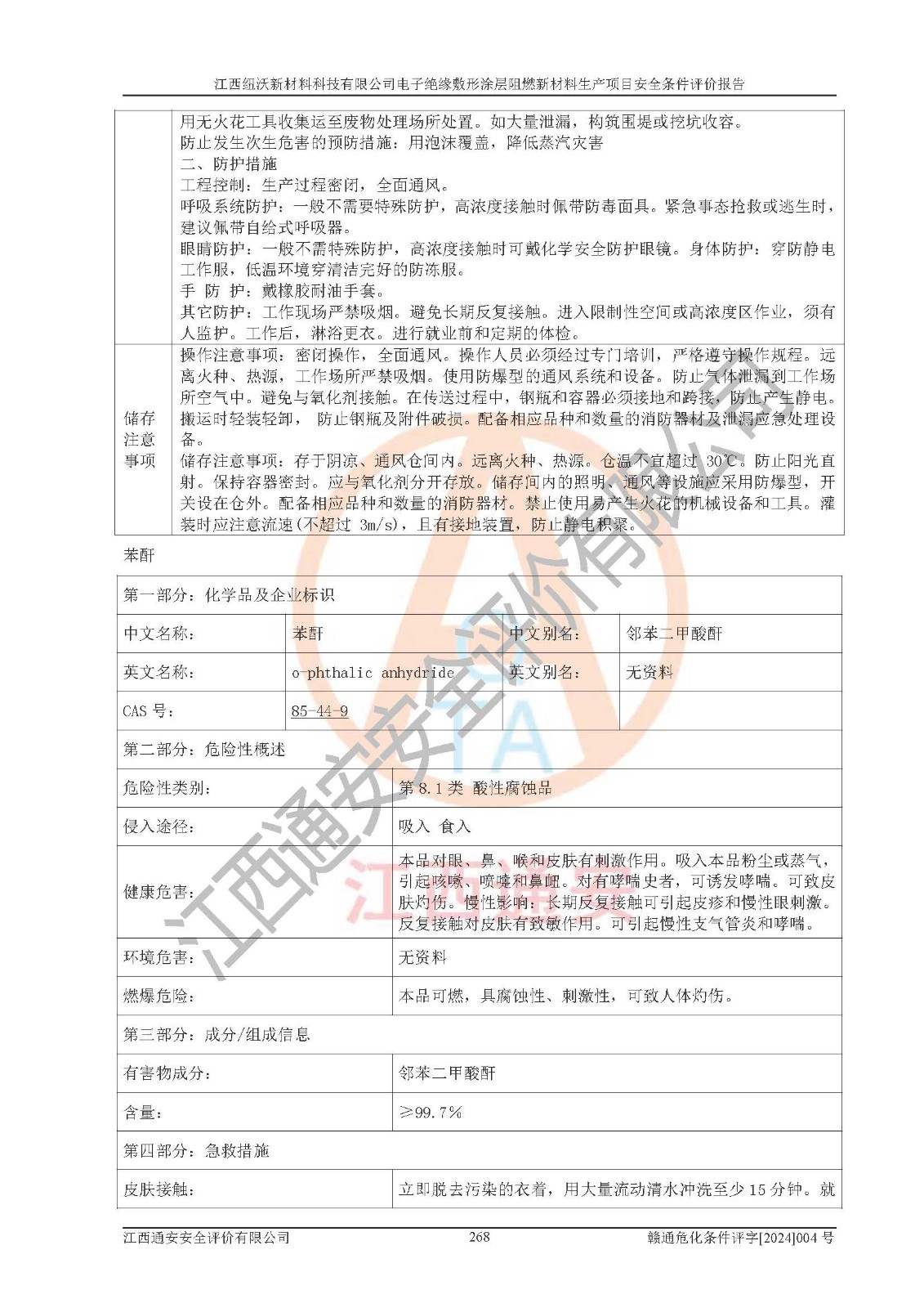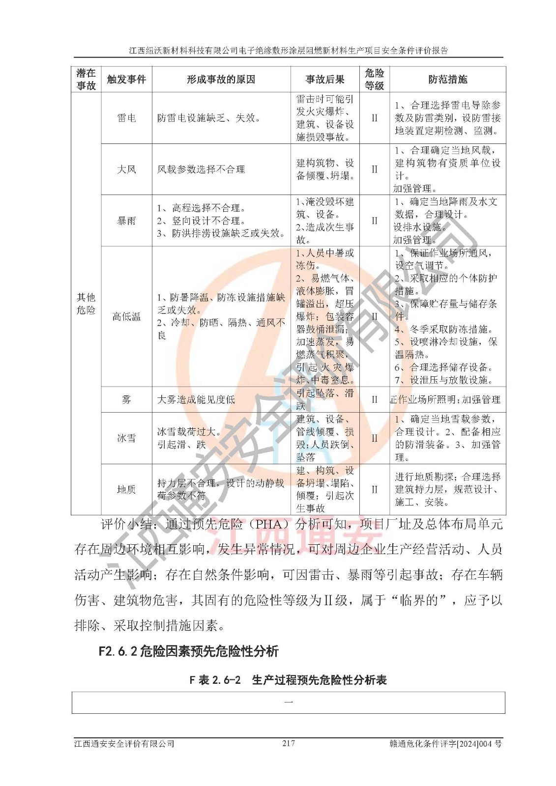 1)本項(xiàng)目依法取得了《江西省企業(yè)投資項(xiàng)目備案通知書》、《建設(shè)用地規(guī)劃許可證》,符合地方產(chǎn)業(yè)發(fā)展規(guī)劃的要求。 2)根據(jù)《**安全監(jiān)管總局關(guān)于公布首批重點(diǎn)監(jiān)管的危險(xiǎn)化工工藝目錄的通知》(安監(jiān)總管三[2009]116號)和《**安全監(jiān)管總局關(guān)于公布第二批重點(diǎn)監(jiān)管危險(xiǎn)化工工藝目錄和調(diào)整首批重點(diǎn)監(jiān)管危險(xiǎn)化工工藝中部分典型工藝的通知》(安監(jiān)總管三[2013]3號),該項(xiàng)目未涉及重點(diǎn)監(jiān)管危險(xiǎn)化工工藝。 3)根據(jù)《危險(xiǎn)化學(xué)品重大危險(xiǎn)源辨識》(GB18218-2018),該項(xiàng)目未構(gòu)成危險(xiǎn)化學(xué)品重大危險(xiǎn)源。 4)項(xiàng)目存在的主要危險(xiǎn)因素有:火災(zāi)爆炸、容器爆炸、中毒窒息、灼燙、觸電、**傷害、機(jī)械傷害、高處墜落、物體打擊、淹溺等,存在的主要危害因素有:噪聲與振動、高溫、有害化學(xué)物質(zhì)等;引起事故的原因有人的不安全行為、物的不安全狀態(tài)、管理缺陷和環(huán)境不良。其中*主要的危險(xiǎn)有害因素是火災(zāi)爆炸。 5)采用預(yù)先危險(xiǎn)性分析法評價(jià),結(jié)果為: (1)通過預(yù)先危險(xiǎn)(PHA)分析可知,項(xiàng)目廠址及總體布局單元存在周邊環(huán)境相互影響,發(fā)生異常情況,可對周邊企業(yè)生產(chǎn)經(jīng)營活動、人員活動產(chǎn)生影響;存在自然條件影響,可因雷擊、暴雨等引起事故;存在**傷害、建筑物危害,其固有的危險(xiǎn)性等級為Ⅱ級,屬于“臨界的”,應(yīng)予以排除、采取控制措施因素。 (2)生產(chǎn)作業(yè)存在的危險(xiǎn)因素包括火災(zāi)爆炸、觸電、灼燙、中毒窒息固有的危險(xiǎn)等級為Ⅲ級,屬于“危險(xiǎn)的”,可能導(dǎo)致人員傷亡和系統(tǒng)損壞的因素,需要采取防范和對策措施的因素;其它危險(xiǎn)因素固有的危險(xiǎn)等級為Ⅱ級,屬于“臨界的”,應(yīng)予以排除、采取控制措施因素。 (3)生產(chǎn)作業(yè)存在的噪聲、粉塵、高溫、有害化學(xué)物質(zhì)的危險(xiǎn)有害因素等級為Ⅱ級,屬于“臨界的”,應(yīng)予以排除、采取控制措施因素。 6)危險(xiǎn)度評價(jià)分析,結(jié)果為: 生產(chǎn)裝置危險(xiǎn)度評價(jià)分析:101生產(chǎn)車間為**危險(xiǎn)(Ⅰ級)。 儲存單元危險(xiǎn)度評價(jià)分析:202甲類倉庫為**危險(xiǎn)(Ⅰ級),201丙類倉庫為低度危險(xiǎn)(Ⅲ級)。 7)作業(yè)條件危險(xiǎn)性評價(jià)結(jié)果:在選定的評價(jià)單元中,其危險(xiǎn)分值均在70以下,危險(xiǎn)程度基本屬于“可能危險(xiǎn)”、“稍有危險(xiǎn)”范圍,作業(yè)條件相對安全。企業(yè)經(jīng)營過程中首先應(yīng)重點(diǎn)加強(qiáng)對甲類車間、甲類倉庫的危險(xiǎn)因素的嚴(yán)格控制,注重日常安全管理;其次要建立健全完善的安全生產(chǎn)責(zé)任制、安全管理制度、安全技術(shù)操作規(guī)程并**其貫徹落實(shí);第三要認(rèn)真抓好操作人員、管理人員的安全知識和操作技能的培訓(xùn),**人員具有與工程技術(shù)水平相適應(yīng)的技術(shù)素質(zhì)和安全素質(zhì),**安全作業(yè)。 8)項(xiàng)目建設(shè)場地符合當(dāng)?shù)匾?guī)劃要求,建設(shè)場地通過合理規(guī)劃,其選址、周邊環(huán)境、總平面布置、交通運(yùn)輸?shù)饶芊稀吨腥A人民共和國安全生產(chǎn)法》、《危險(xiǎn)化學(xué)品安全管理?xiàng)l例》、《建筑設(shè)計(jì)防火規(guī)范》、《精細(xì)化工企業(yè)工程設(shè)計(jì)防火標(biāo)準(zhǔn)》等法規(guī)、標(biāo)準(zhǔn)、規(guī)范要求。 廠址地區(qū)地震活動相對較弱,災(zāi)害性天氣出現(xiàn)頻率稍高,自然災(zāi)害對項(xiàng)目建設(shè)具有**影響,通過采取相應(yīng)的防護(hù)措施,自然條件適宜建設(shè)。 9)建設(shè)項(xiàng)目符合**產(chǎn)業(yè)政策的要求;選擇工藝為現(xiàn)行成熟工藝,其安全可靠性可得到**。 10)本報(bào)告已根據(jù)有關(guān)安全生產(chǎn)法律、法規(guī)、規(guī)章和**標(biāo)準(zhǔn)、行業(yè)標(biāo)準(zhǔn),并嚴(yán)格執(zhí)行省委辦公廳省**辦公廳《關(guān)于全面加強(qiáng)危險(xiǎn)化學(xué)品安全生產(chǎn)工作的實(shí)施意見》(贛辦發(fā)[2020]32號)及鄱陽湖生態(tài)經(jīng)濟(jì)區(qū)、長江經(jīng)濟(jì)帶、“五河一湖”相關(guān)政策規(guī)定,客觀、公正、科學(xué)地進(jìn)行安全評價(jià),項(xiàng)目符合《江西省應(yīng)急管理廳關(guān)于印發(fā)《江西省危險(xiǎn)化學(xué)品建設(shè)項(xiàng)目安全監(jiān)督管理實(shí)施細(xì)則》(試行)的通知》(贛應(yīng)急字[2021]100號)的要求。 11)本報(bào)告結(jié)合工藝特征,提出應(yīng)采取的對應(yīng)的自動化控制系統(tǒng)及自動化實(shí)施方案,滿足《江西省應(yīng)急管理廳關(guān)于印發(fā)《江西省化工企業(yè)自動化提升實(shí)施方案》(試行)的通知》(贛應(yīng)急字[2021]190號)的要求。 綜上所述:江西紐沃新材料科技有限公司電子*緣敷形涂層阻燃新材料生產(chǎn)項(xiàng)目的產(chǎn)業(yè)政策、安全條件、廠址、總體布局、主要技術(shù)和工藝、裝置、設(shè)施、配套和輔助工程、安全管理等均滿足安全生產(chǎn)相關(guān)法