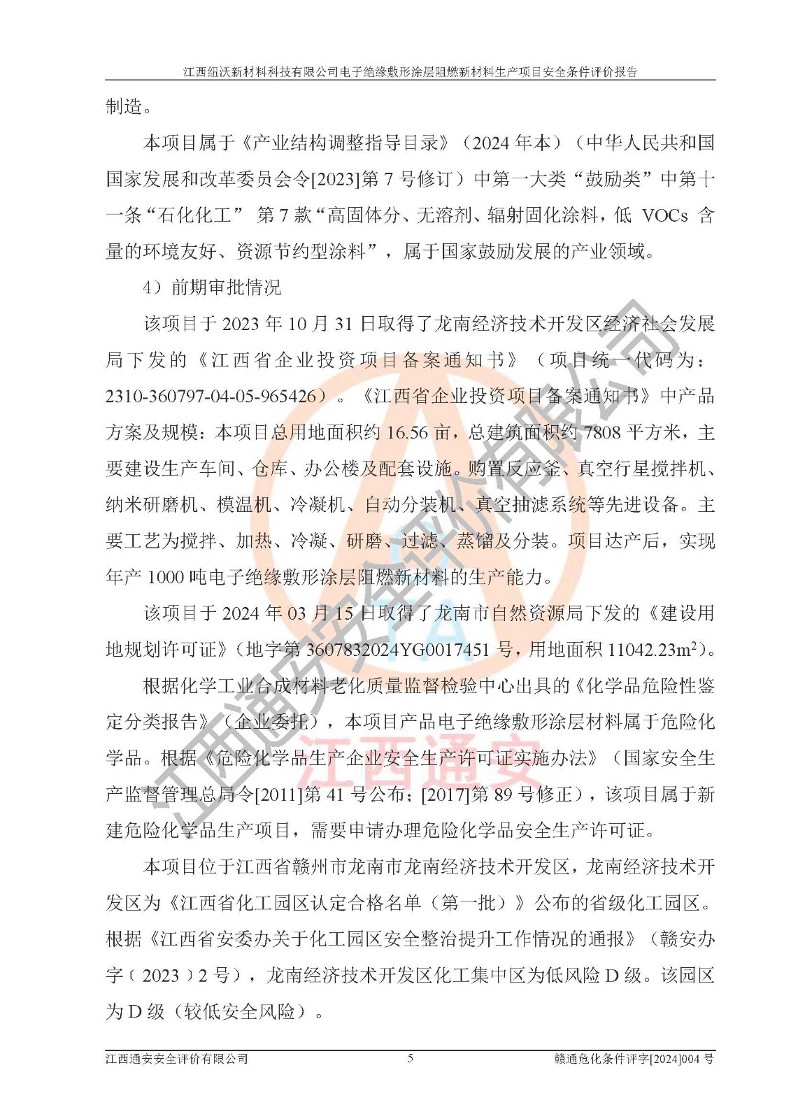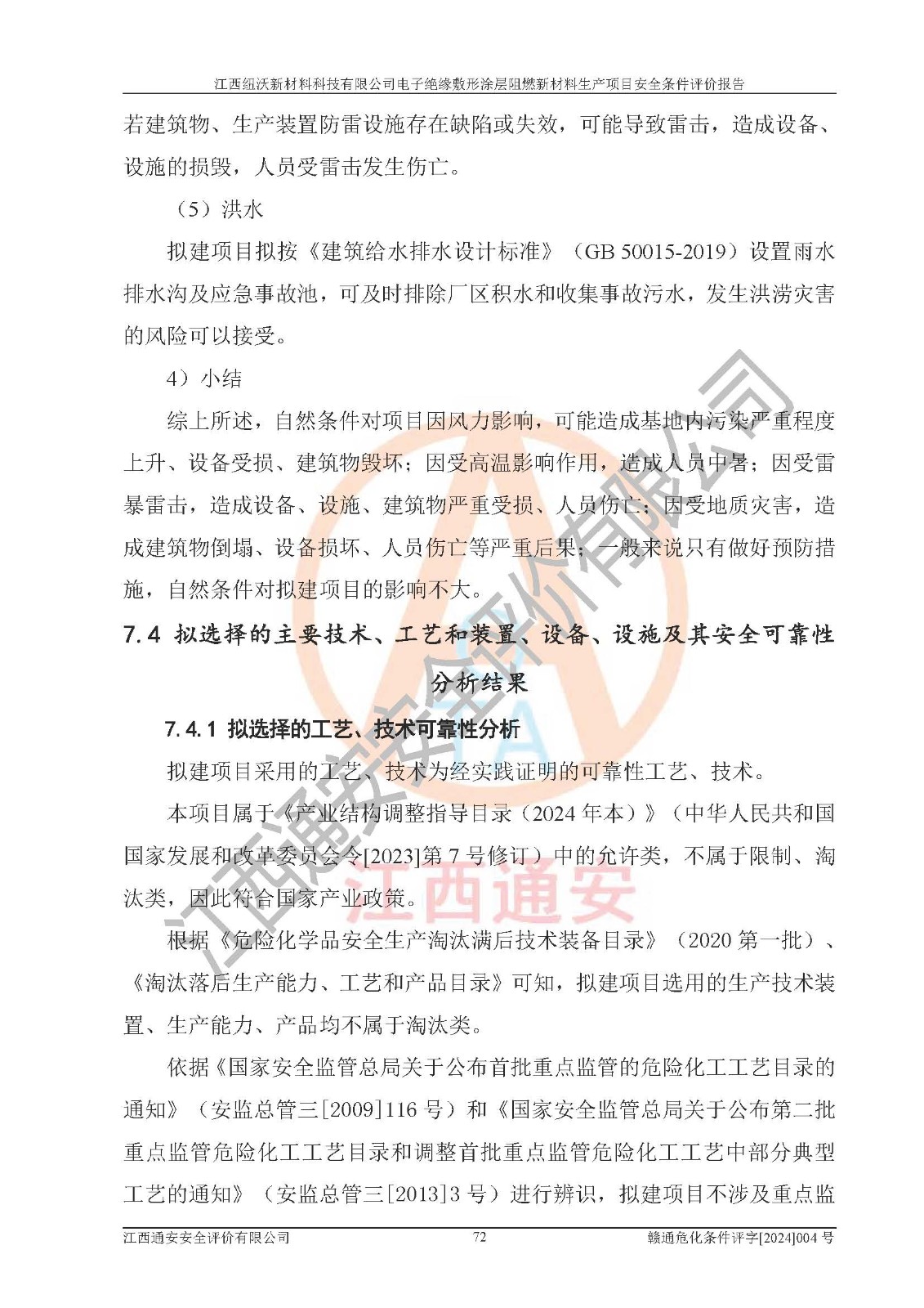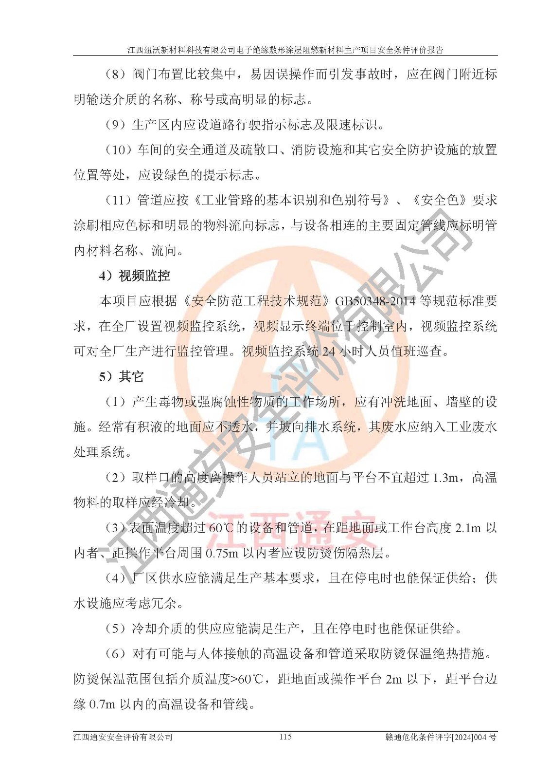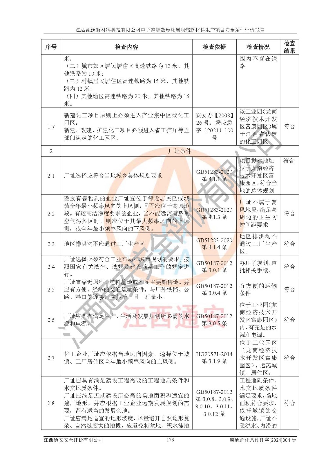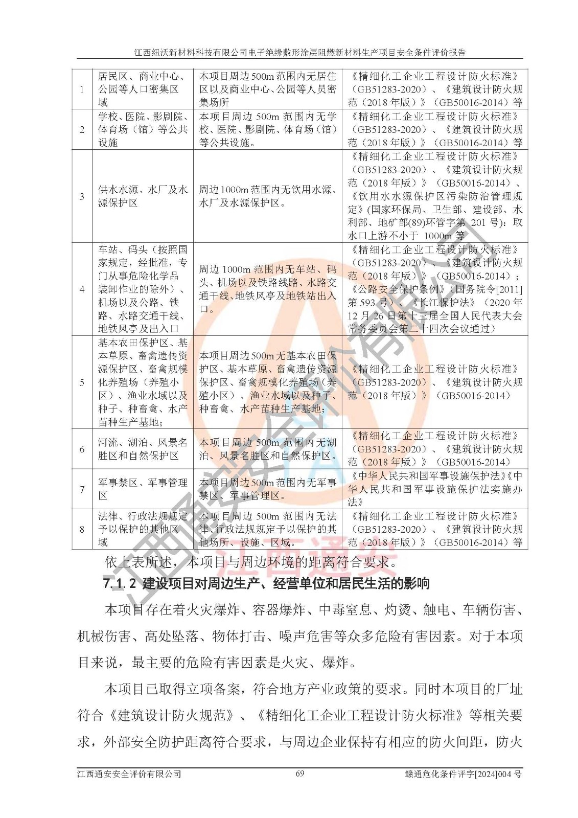 1)本項(xiàng)目依法取得了《江西省企業(yè)投資項(xiàng)目備案通知書》、《建設(shè)用地規(guī)劃許可證》,符合地方產(chǎn)業(yè)發(fā)展規(guī)劃的要求。 2)根據(jù)《**安全監(jiān)管總局關(guān)于公布首批重點(diǎn)監(jiān)管的危險(xiǎn)化工工藝目錄的通知》(安監(jiān)總管三[2009]116號)和《**安全監(jiān)管總局關(guān)于公布第二批重點(diǎn)監(jiān)管危險(xiǎn)化工工藝目錄和調(diào)整首批重點(diǎn)監(jiān)管危險(xiǎn)化工工藝中部分典型工藝的通知》(安監(jiān)總管三[2013]3號),該項(xiàng)目未涉及重點(diǎn)監(jiān)管危險(xiǎn)化工工藝。 3)根據(jù)《危險(xiǎn)化學(xué)品重大危險(xiǎn)源辨識》(GB18218-2018),該項(xiàng)目未構(gòu)成危險(xiǎn)化學(xué)品重大危險(xiǎn)源。 4)項(xiàng)目存在的主要危險(xiǎn)因素有:火災(zāi)爆炸、容器爆炸、中毒窒息、灼燙、觸電、**傷害、機(jī)械傷害、高處墜落、物體打擊、淹溺等,存在的主要危害因素有:噪聲與振動、高溫、有害化學(xué)物質(zhì)等;引起事故的原因有人的不安全行為、物的不安全狀態(tài)、管理缺陷和環(huán)境不良。其中*主要的危險(xiǎn)有害因素是火災(zāi)爆炸。 5)采用預(yù)先危險(xiǎn)性分析法評價(jià),結(jié)果為: (1)通過預(yù)先危險(xiǎn)(PHA)分析可知,項(xiàng)目廠址及總體布局單元存在周邊環(huán)境相互影響,發(fā)生異常情況,可對周邊企業(yè)生產(chǎn)經(jīng)營活動、人員活動產(chǎn)生影響;存在自然條件影響,可因雷擊、暴雨等引起事故;存在**傷害、建筑物危害,其固有的危險(xiǎn)性等級為Ⅱ級,屬于“臨界的”,應(yīng)予以排除、采取控制措施因素。 (2)生產(chǎn)作業(yè)存在的危險(xiǎn)因素包括火災(zāi)爆炸、觸電、灼燙、中毒窒息固有的危險(xiǎn)等級為Ⅲ級,屬于“危險(xiǎn)的”,可能導(dǎo)致人員傷亡和系統(tǒng)損壞的因素,需要采取防范和對策措施的因素;其它危險(xiǎn)因素固有的危險(xiǎn)等級為Ⅱ級,屬于“臨界的”,應(yīng)予以排除、采取控制措施因素。 (3)生產(chǎn)作業(yè)存在的噪聲、粉塵、高溫、有害化學(xué)物質(zhì)的危險(xiǎn)有害因素等級為Ⅱ級,屬于“臨界的”,應(yīng)予以排除、采取控制措施因素。 6)危險(xiǎn)度評價(jià)分析,結(jié)果為: 生產(chǎn)裝置危險(xiǎn)度評價(jià)分析:101生產(chǎn)車間為**危險(xiǎn)(Ⅰ級)。 儲存單元危險(xiǎn)度評價(jià)分析:202甲類倉庫為**危險(xiǎn)(Ⅰ級),201丙類倉庫為低度危險(xiǎn)(Ⅲ級)。 7)作業(yè)條件危險(xiǎn)性評價(jià)結(jié)果:在選定的評價(jià)單元中,其危險(xiǎn)分值均在70以下,危險(xiǎn)程度基本屬于“可能危險(xiǎn)”、“稍有危險(xiǎn)”范圍,作業(yè)條件相對安全。企業(yè)經(jīng)營過程中首先應(yīng)重點(diǎn)加強(qiáng)對甲類車間、甲類倉庫的危險(xiǎn)因素的嚴(yán)格控制,注重日常安全管理;其次要建立健全完善的安全生產(chǎn)責(zé)任制、安全管理制度、安全技術(shù)操作規(guī)程并**其貫徹落實(shí);第三要認(rèn)真抓好操作人員、管理人員的安全知識和操作技能的培訓(xùn),**人員具有與工程技術(shù)水平相適應(yīng)的技術(shù)素質(zhì)和安全素質(zhì),**安全作業(yè)。 8)項(xiàng)目建設(shè)場地符合當(dāng)?shù)匾?guī)劃要求,建設(shè)場地通過合理規(guī)劃,其選址、周邊環(huán)境、總平面布置、交通運(yùn)輸?shù)饶芊稀吨腥A人民共和國安全生產(chǎn)法》、《危險(xiǎn)化學(xué)品安全管理?xiàng)l例》、《建筑設(shè)計(jì)防火規(guī)范》、《精細(xì)化工企業(yè)工程設(shè)計(jì)防火標(biāo)準(zhǔn)》等法規(guī)、標(biāo)準(zhǔn)、規(guī)范要求。 廠址地區(qū)地震活動相對較弱,災(zāi)害性天氣出現(xiàn)頻率稍高,自然災(zāi)害對項(xiàng)目建設(shè)具有**影響,通過采取相應(yīng)的防護(hù)措施,自然條件適宜建設(shè)。 9)建設(shè)項(xiàng)目符合**產(chǎn)業(yè)政策的要求;選擇工藝為現(xiàn)行成熟工藝,其安全可靠性可得到**。 10)本報(bào)告已根據(jù)有關(guān)安全生產(chǎn)法律、法規(guī)、規(guī)章和**標(biāo)準(zhǔn)、行業(yè)標(biāo)準(zhǔn),并嚴(yán)格執(zhí)行省委辦公廳省**辦公廳《關(guān)于全面加強(qiáng)危險(xiǎn)化學(xué)品安全生產(chǎn)工作的實(shí)施意見》(贛辦發(fā)[2020]32號)及鄱陽湖生態(tài)經(jīng)濟(jì)區(qū)、長江經(jīng)濟(jì)帶、“五河一湖”相關(guān)政策規(guī)定,客觀、公正、科學(xué)地進(jìn)行安全評價(jià),項(xiàng)目符合《江西省應(yīng)急管理廳關(guān)于印發(fā)《江西省危險(xiǎn)化學(xué)品建設(shè)項(xiàng)目安全監(jiān)督管理實(shí)施細(xì)則》(試行)的通知》(贛應(yīng)急字[2021]100號)的要求。 11)本報(bào)告結(jié)合工藝特征,提出應(yīng)采取的對應(yīng)的自動化控制系統(tǒng)及自動化實(shí)施方案,滿足《江西省應(yīng)急管理廳關(guān)于印發(fā)《江西省化工企業(yè)自動化提升實(shí)施方案》(試行)的通知》(贛應(yīng)急字[2021]190號)的要求。 綜上所述:江西紐沃新材料科技有限公司電子*緣敷形涂層阻燃新材料生產(chǎn)項(xiàng)目的產(chǎn)業(yè)政策、安全條件、廠址、總體布局、主要技術(shù)和工藝、裝置、設(shè)施、配套和輔助工程、安全管理等均滿足安全生產(chǎn)相關(guān)法