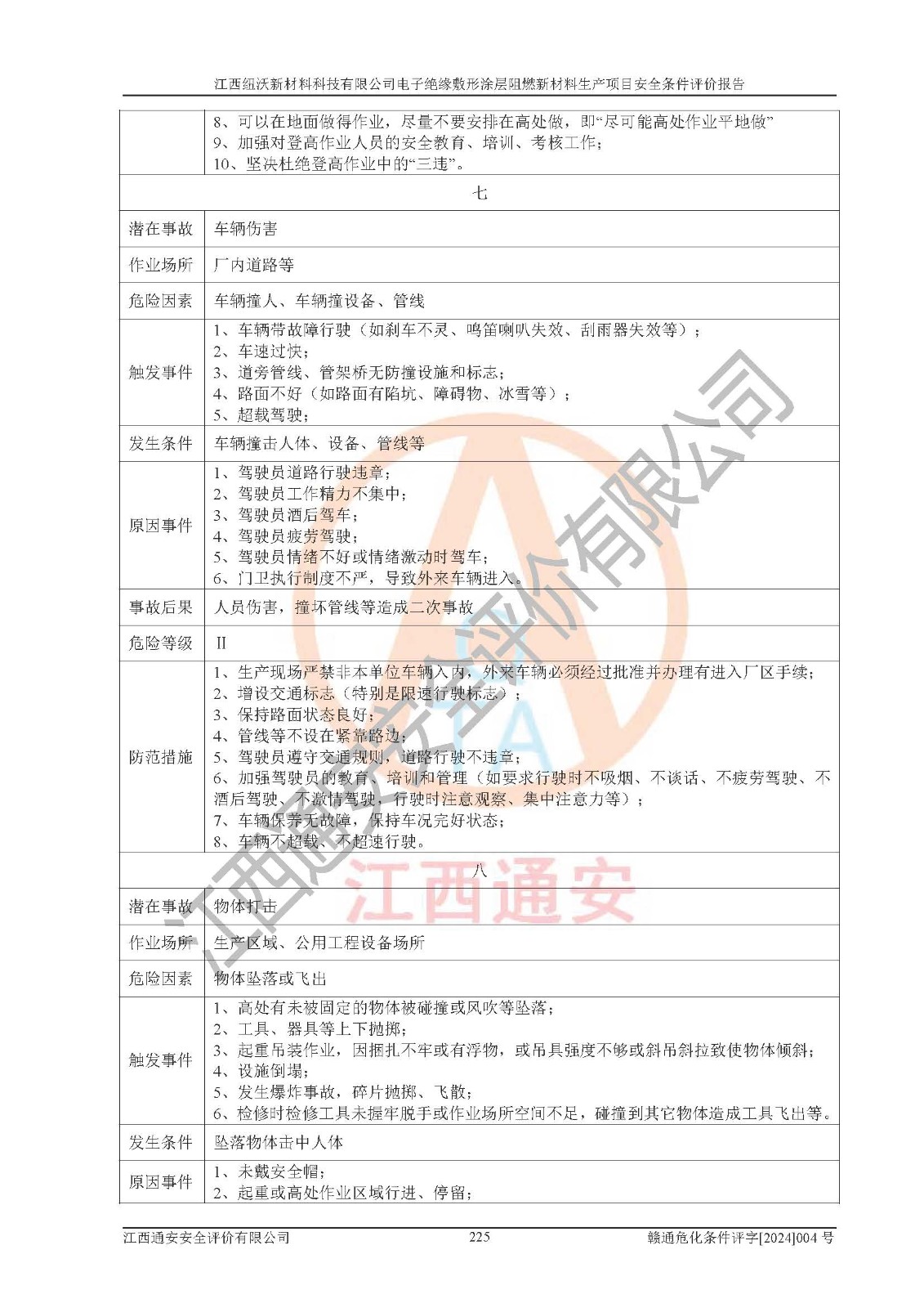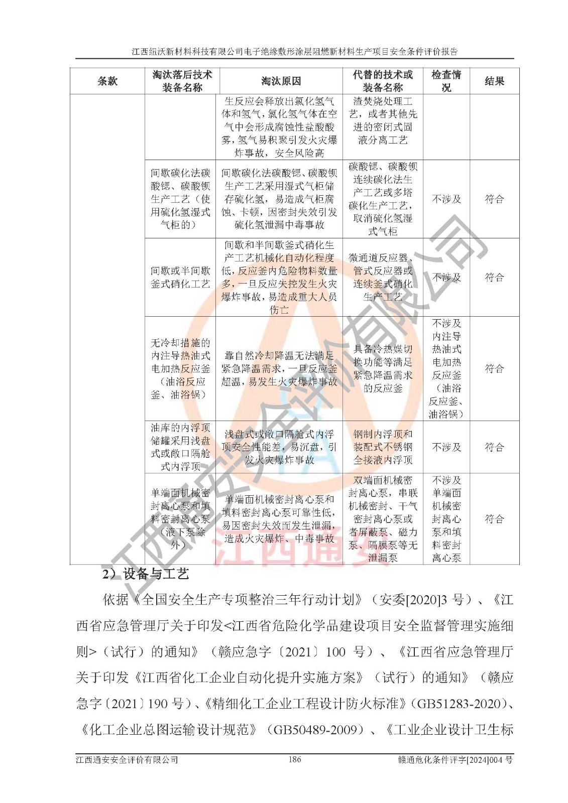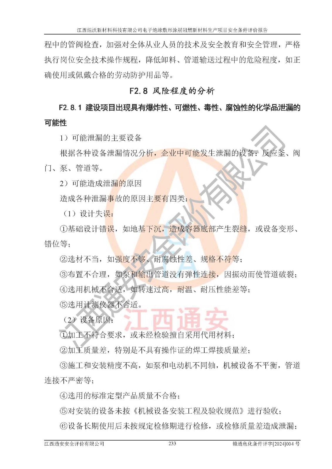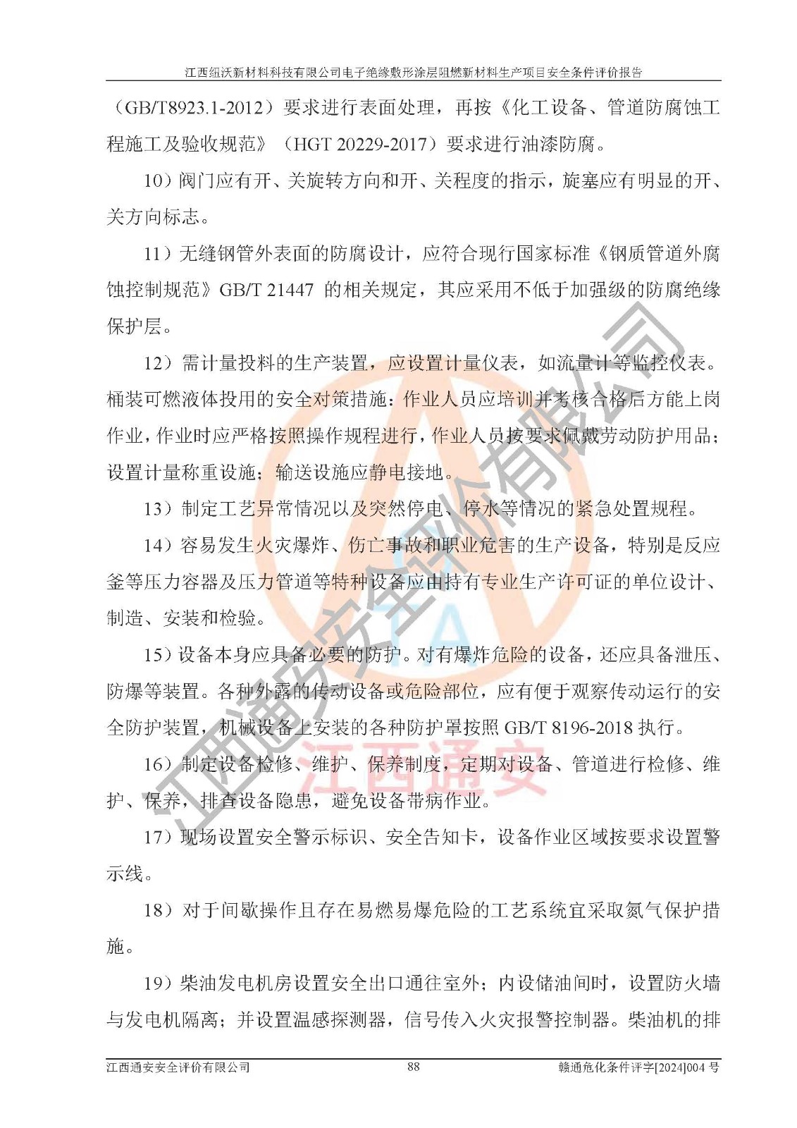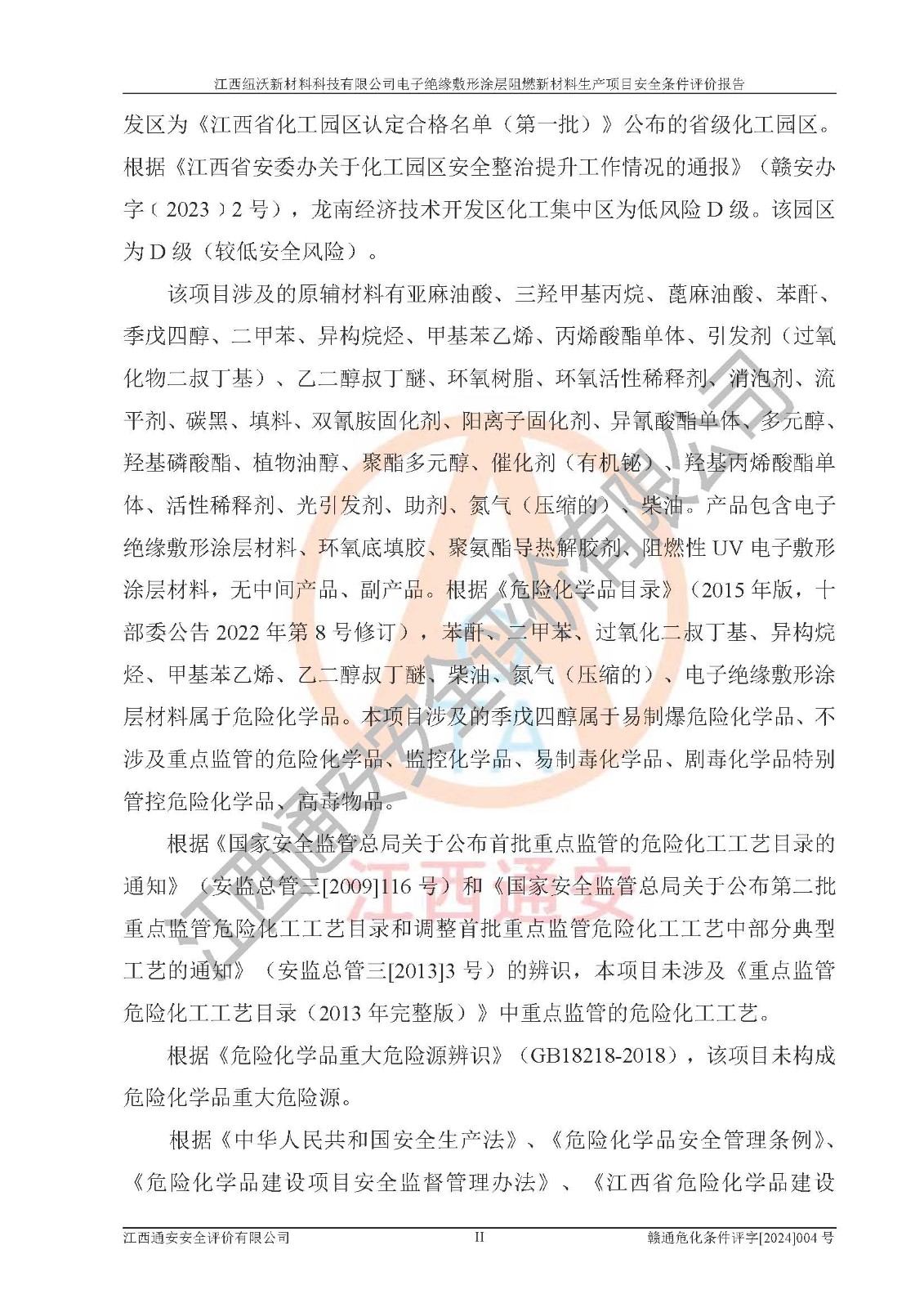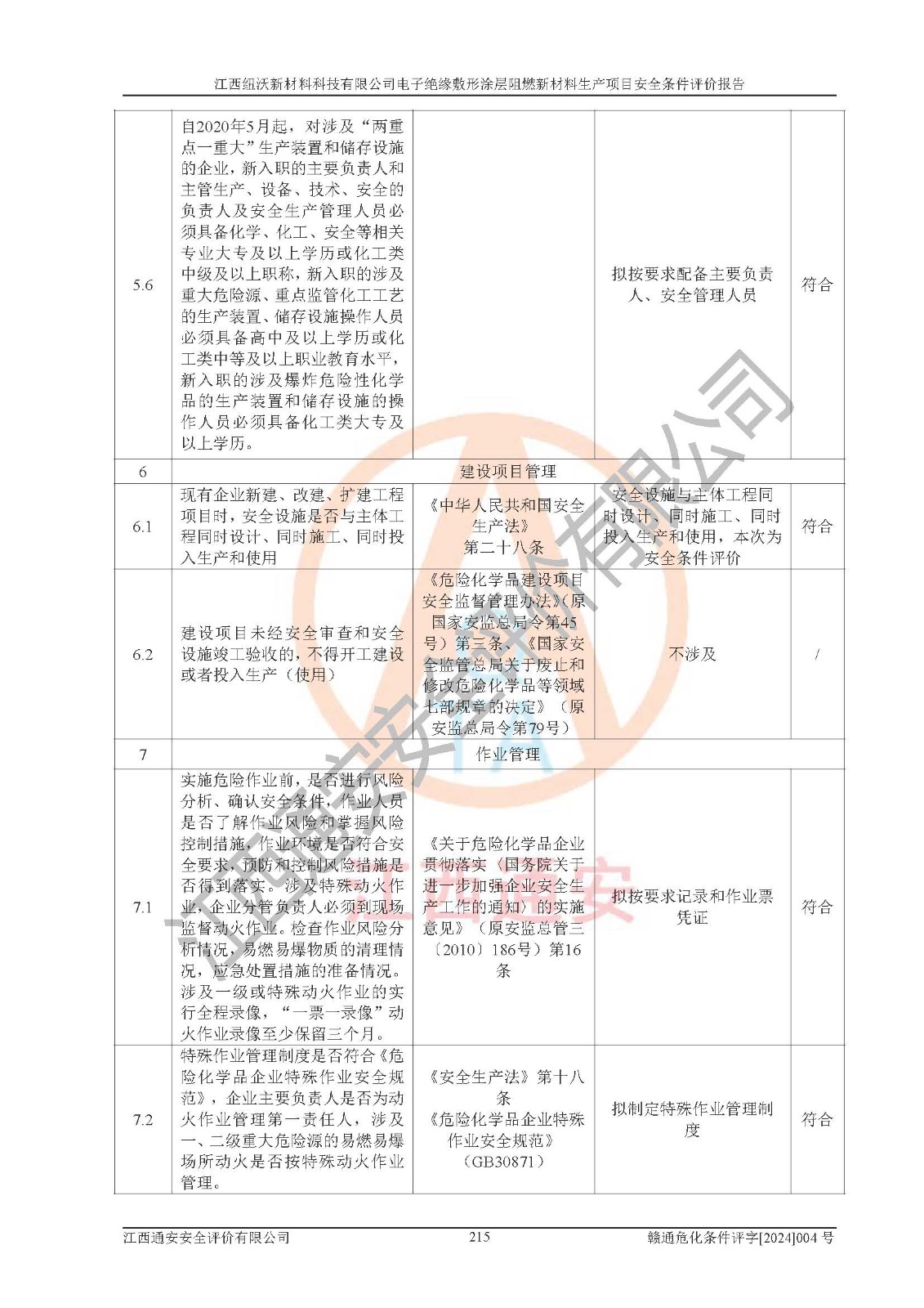 1)本項(xiàng)目依法取得了《江西省企業(yè)投資項(xiàng)目備案通知書》、《建設(shè)用地規(guī)劃許可證》,符合地方產(chǎn)業(yè)發(fā)展規(guī)劃的要求。 2)根據(jù)《**安全監(jiān)管總局關(guān)于公布首批重點(diǎn)監(jiān)管的危險(xiǎn)化工工藝目錄的通知》(安監(jiān)總管三[2009]116號)和《**安全監(jiān)管總局關(guān)于公布第二批重點(diǎn)監(jiān)管危險(xiǎn)化工工藝目錄和調(diào)整首批重點(diǎn)監(jiān)管危險(xiǎn)化工工藝中部分典型工藝的通知》(安監(jiān)總管三[2013]3號),該項(xiàng)目未涉及重點(diǎn)監(jiān)管危險(xiǎn)化工工藝。 3)根據(jù)《危險(xiǎn)化學(xué)品重大危險(xiǎn)源辨識》(GB18218-2018),該項(xiàng)目未構(gòu)成危險(xiǎn)化學(xué)品重大危險(xiǎn)源。 4)項(xiàng)目存在的主要危險(xiǎn)因素有:火災(zāi)爆炸、容器爆炸、中毒窒息、灼燙、觸電、**傷害、機(jī)械傷害、高處墜落、物體打擊、淹溺等,存在的主要危害因素有:噪聲與振動、高溫、有害化學(xué)物質(zhì)等;引起事故的原因有人的不安全行為、物的不安全狀態(tài)、管理缺陷和環(huán)境不良。其中*主要的危險(xiǎn)有害因素是火災(zāi)爆炸。 5)采用預(yù)先危險(xiǎn)性分析法評價(jià),結(jié)果為: (1)通過預(yù)先危險(xiǎn)(PHA)分析可知,項(xiàng)目廠址及總體布局單元存在周邊環(huán)境相互影響,發(fā)生異常情況,可對周邊企業(yè)生產(chǎn)經(jīng)營活動、人員活動產(chǎn)生影響;存在自然條件影響,可因雷擊、暴雨等引起事故;存在**傷害、建筑物危害,其固有的危險(xiǎn)性等級為Ⅱ級,屬于“臨界的”,應(yīng)予以排除、采取控制措施因素。 (2)生產(chǎn)作業(yè)存在的危險(xiǎn)因素包括火災(zāi)爆炸、觸電、灼燙、中毒窒息固有的危險(xiǎn)等級為Ⅲ級,屬于“危險(xiǎn)的”,可能導(dǎo)致人員傷亡和系統(tǒng)損壞的因素,需要采取防范和對策措施的因素;其它危險(xiǎn)因素固有的危險(xiǎn)等級為Ⅱ級,屬于“臨界的”,應(yīng)予以排除、采取控制措施因素。 (3)生產(chǎn)作業(yè)存在的噪聲、粉塵、高溫、有害化學(xué)物質(zhì)的危險(xiǎn)有害因素等級為Ⅱ級,屬于“臨界的”,應(yīng)予以排除、采取控制措施因素。 6)危險(xiǎn)度評價(jià)分析,結(jié)果為: 生產(chǎn)裝置危險(xiǎn)度評價(jià)分析:101生產(chǎn)車間為**危險(xiǎn)(Ⅰ級)。 儲存單元危險(xiǎn)度評價(jià)分析:202甲類倉庫為**危險(xiǎn)(Ⅰ級),201丙類倉庫為低度危險(xiǎn)(Ⅲ級)。 7)作業(yè)條件危險(xiǎn)性評價(jià)結(jié)果:在選定的評價(jià)單元中,其危險(xiǎn)分值均在70以下,危險(xiǎn)程度基本屬于“可能危險(xiǎn)”、“稍有危險(xiǎn)”范圍,作業(yè)條件相對安全。企業(yè)經(jīng)營過程中首先應(yīng)重點(diǎn)加強(qiáng)對甲類車間、甲類倉庫的危險(xiǎn)因素的嚴(yán)格控制,注重日常安全管理;其次要建立健全完善的安全生產(chǎn)責(zé)任制、安全管理制度、安全技術(shù)操作規(guī)程并**其貫徹落實(shí);第三要認(rèn)真抓好操作人員、管理人員的安全知識和操作技能的培訓(xùn),**人員具有與工程技術(shù)水平相適應(yīng)的技術(shù)素質(zhì)和安全素質(zhì),**安全作業(yè)。 8)項(xiàng)目建設(shè)場地符合當(dāng)?shù)匾?guī)劃要求,建設(shè)場地通過合理規(guī)劃,其選址、周邊環(huán)境、總平面布置、交通運(yùn)輸?shù)饶芊稀吨腥A人民共和國安全生產(chǎn)法》、《危險(xiǎn)化學(xué)品安全管理?xiàng)l例》、《建筑設(shè)計(jì)防火規(guī)范》、《精細(xì)化工企業(yè)工程設(shè)計(jì)防火標(biāo)準(zhǔn)》等法規(guī)、標(biāo)準(zhǔn)、規(guī)范要求。 廠址地區(qū)地震活動相對較弱,災(zāi)害性天氣出現(xiàn)頻率稍高,自然災(zāi)害對項(xiàng)目建設(shè)具有**影響,通過采取相應(yīng)的防護(hù)措施,自然條件適宜建設(shè)。 9)建設(shè)項(xiàng)目符合**產(chǎn)業(yè)政策的要求;選擇工藝為現(xiàn)行成熟工藝,其安全可靠性可得到**。 10)本報(bào)告已根據(jù)有關(guān)安全生產(chǎn)法律、法規(guī)、規(guī)章和**標(biāo)準(zhǔn)、行業(yè)標(biāo)準(zhǔn),并嚴(yán)格執(zhí)行省委辦公廳省**辦公廳《關(guān)于全面加強(qiáng)危險(xiǎn)化學(xué)品安全生產(chǎn)工作的實(shí)施意見》(贛辦發(fā)[2020]32號)及鄱陽湖生態(tài)經(jīng)濟(jì)區(qū)、長江經(jīng)濟(jì)帶、“五河一湖”相關(guān)政策規(guī)定,客觀、公正、科學(xué)地進(jìn)行安全評價(jià),項(xiàng)目符合《江西省應(yīng)急管理廳關(guān)于印發(fā)《江西省危險(xiǎn)化學(xué)品建設(shè)項(xiàng)目安全監(jiān)督管理實(shí)施細(xì)則》(試行)的通知》(贛應(yīng)急字[2021]100號)的要求。 11)本報(bào)告結(jié)合工藝特征,提出應(yīng)采取的對應(yīng)的自動化控制系統(tǒng)及自動化實(shí)施方案,滿足《江西省應(yīng)急管理廳關(guān)于印發(fā)《江西省化工企業(yè)自動化提升實(shí)施方案》(試行)的通知》(贛應(yīng)急字[2021]190號)的要求。 綜上所述:江西紐沃新材料科技有限公司電子*緣敷形涂層阻燃新材料生產(chǎn)項(xiàng)目的產(chǎn)業(yè)政策、安全條件、廠址、總體布局、主要技術(shù)和工藝、裝置、設(shè)施、配套和輔助工程、安全管理等均滿足安全生產(chǎn)相關(guān)法