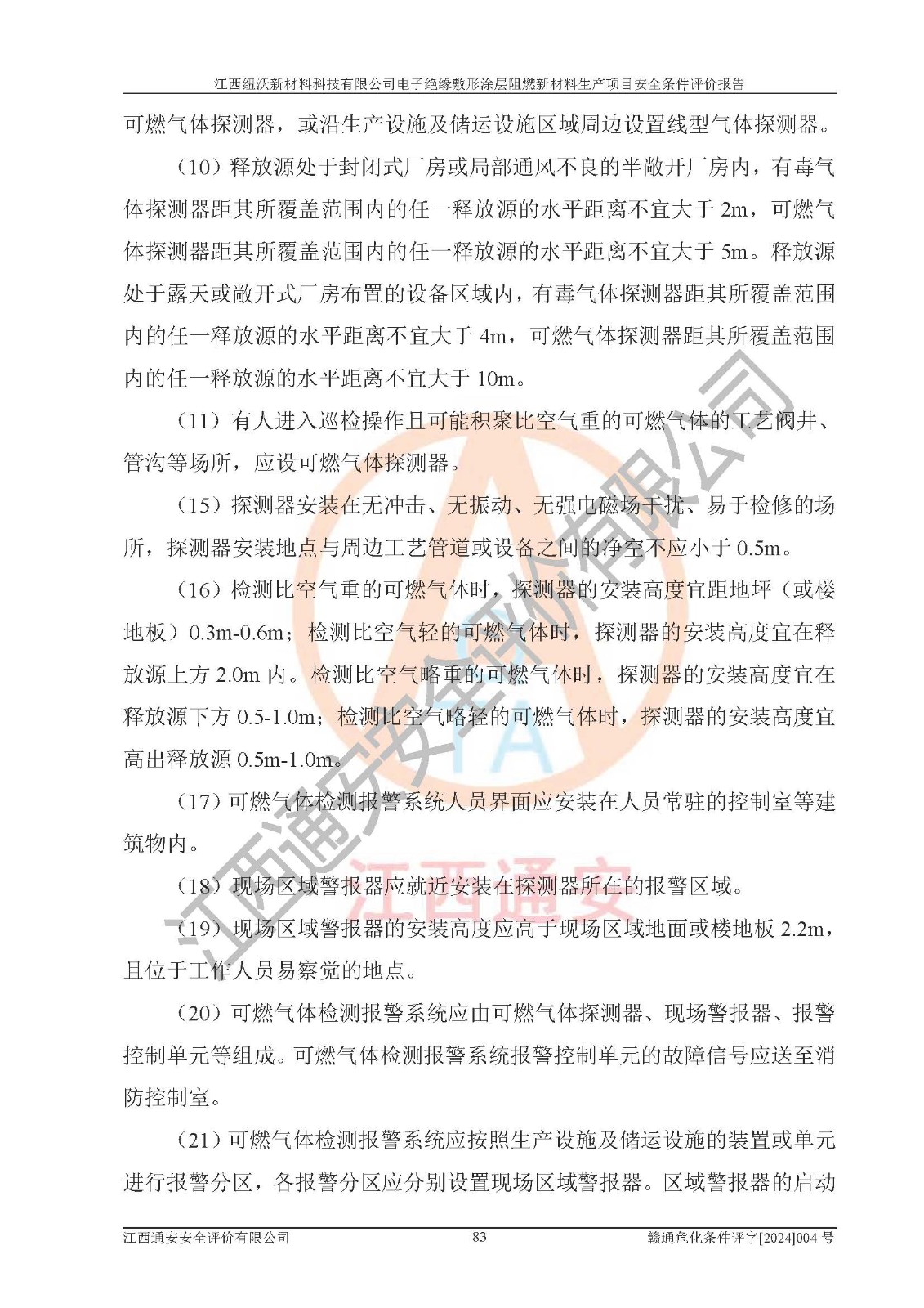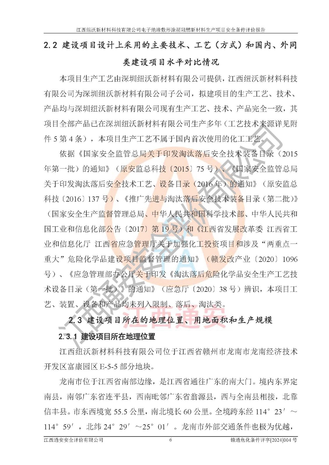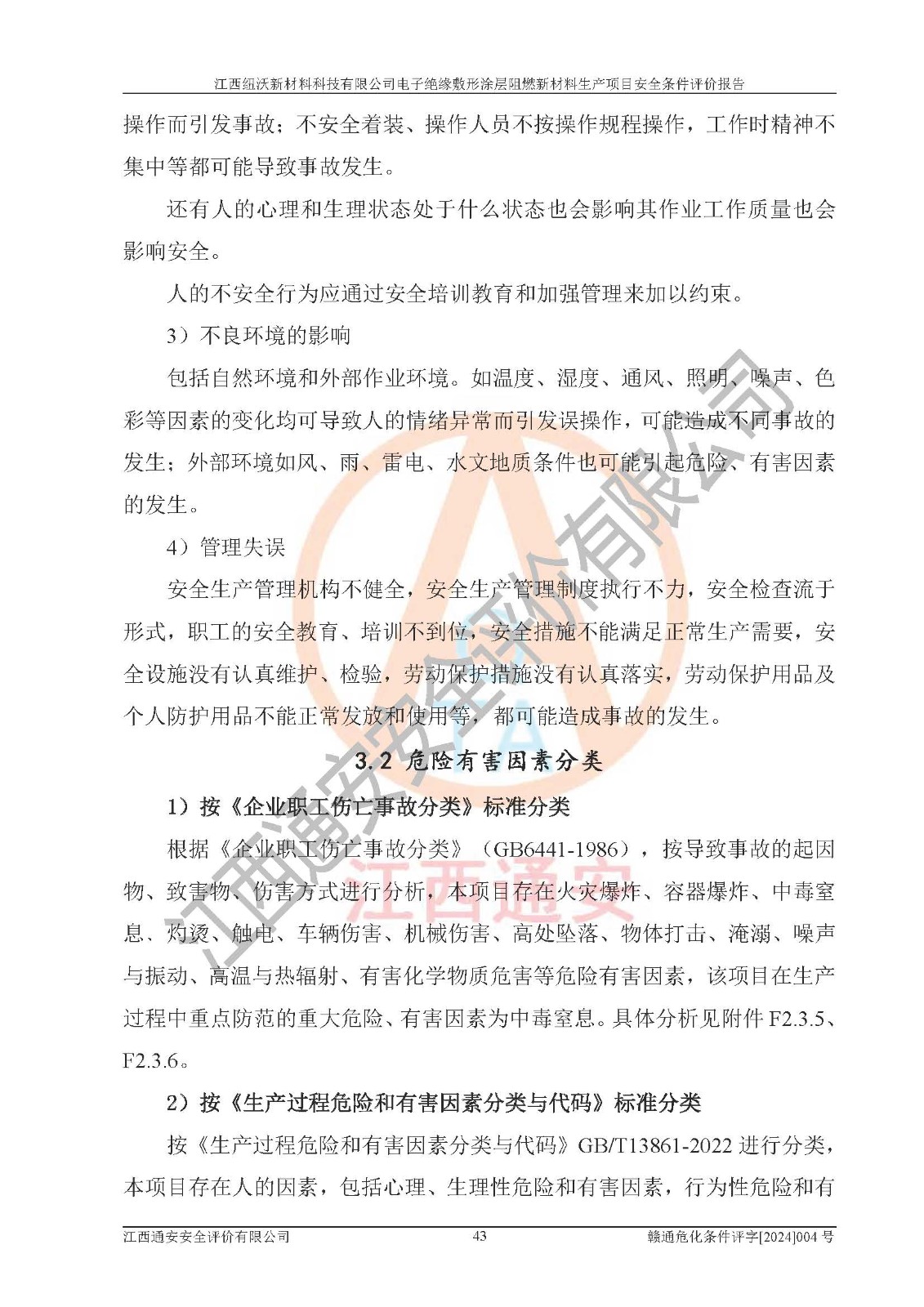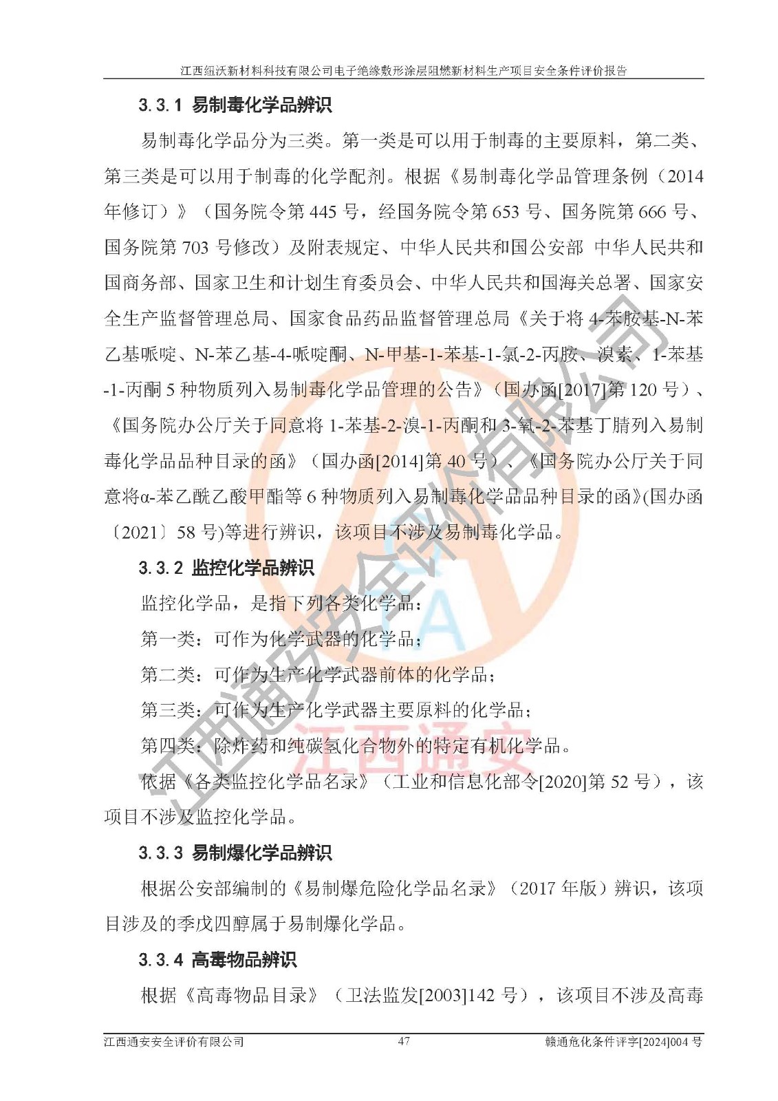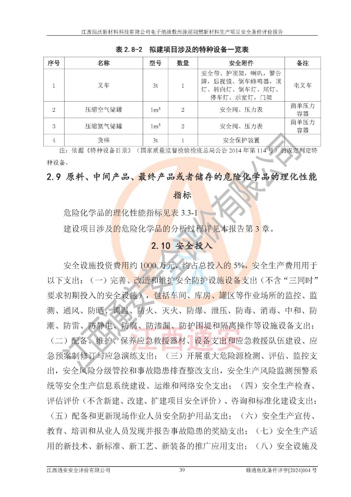 1)本項(xiàng)目依法取得了《江西省企業(yè)投資項(xiàng)目備案通知書》、《建設(shè)用地規(guī)劃許可證》,符合地方產(chǎn)業(yè)發(fā)展規(guī)劃的要求。 2)根據(jù)《**安全監(jiān)管總局關(guān)于公布首批重點(diǎn)監(jiān)管的危險(xiǎn)化工工藝目錄的通知》(安監(jiān)總管三[2009]116號)和《**安全監(jiān)管總局關(guān)于公布第二批重點(diǎn)監(jiān)管危險(xiǎn)化工工藝目錄和調(diào)整首批重點(diǎn)監(jiān)管危險(xiǎn)化工工藝中部分典型工藝的通知》(安監(jiān)總管三[2013]3號),該項(xiàng)目未涉及重點(diǎn)監(jiān)管危險(xiǎn)化工工藝。 3)根據(jù)《危險(xiǎn)化學(xué)品重大危險(xiǎn)源辨識》(GB18218-2018),該項(xiàng)目未構(gòu)成危險(xiǎn)化學(xué)品重大危險(xiǎn)源。 4)項(xiàng)目存在的主要危險(xiǎn)因素有:火災(zāi)爆炸、容器爆炸、中毒窒息、灼燙、觸電、**傷害、機(jī)械傷害、高處墜落、物體打擊、淹溺等,存在的主要危害因素有:噪聲與振動、高溫、有害化學(xué)物質(zhì)等;引起事故的原因有人的不安全行為、物的不安全狀態(tài)、管理缺陷和環(huán)境不良。其中*主要的危險(xiǎn)有害因素是火災(zāi)爆炸。 5)采用預(yù)先危險(xiǎn)性分析法評價(jià),結(jié)果為: (1)通過預(yù)先危險(xiǎn)(PHA)分析可知,項(xiàng)目廠址及總體布局單元存在周邊環(huán)境相互影響,發(fā)生異常情況,可對周邊企業(yè)生產(chǎn)經(jīng)營活動、人員活動產(chǎn)生影響;存在自然條件影響,可因雷擊、暴雨等引起事故;存在**傷害、建筑物危害,其固有的危險(xiǎn)性等級為Ⅱ級,屬于“臨界的”,應(yīng)予以排除、采取控制措施因素。 (2)生產(chǎn)作業(yè)存在的危險(xiǎn)因素包括火災(zāi)爆炸、觸電、灼燙、中毒窒息固有的危險(xiǎn)等級為Ⅲ級,屬于“危險(xiǎn)的”,可能導(dǎo)致人員傷亡和系統(tǒng)損壞的因素,需要采取防范和對策措施的因素;其它危險(xiǎn)因素固有的危險(xiǎn)等級為Ⅱ級,屬于“臨界的”,應(yīng)予以排除、采取控制措施因素。 (3)生產(chǎn)作業(yè)存在的噪聲、粉塵、高溫、有害化學(xué)物質(zhì)的危險(xiǎn)有害因素等級為Ⅱ級,屬于“臨界的”,應(yīng)予以排除、采取控制措施因素。 6)危險(xiǎn)度評價(jià)分析,結(jié)果為: 生產(chǎn)裝置危險(xiǎn)度評價(jià)分析:101生產(chǎn)車間為**危險(xiǎn)(Ⅰ級)。 儲存單元危險(xiǎn)度評價(jià)分析:202甲類倉庫為**危險(xiǎn)(Ⅰ級),201丙類倉庫為低度危險(xiǎn)(Ⅲ級)。 7)作業(yè)條件危險(xiǎn)性評價(jià)結(jié)果:在選定的評價(jià)單元中,其危險(xiǎn)分值均在70以下,危險(xiǎn)程度基本屬于“可能危險(xiǎn)”、“稍有危險(xiǎn)”范圍,作業(yè)條件相對安全。企業(yè)經(jīng)營過程中首先應(yīng)重點(diǎn)加強(qiáng)對甲類車間、甲類倉庫的危險(xiǎn)因素的嚴(yán)格控制,注重日常安全管理;其次要建立健全完善的安全生產(chǎn)責(zé)任制、安全管理制度、安全技術(shù)操作規(guī)程并**其貫徹落實(shí);第三要認(rèn)真抓好操作人員、管理人員的安全知識和操作技能的培訓(xùn),**人員具有與工程技術(shù)水平相適應(yīng)的技術(shù)素質(zhì)和安全素質(zhì),**安全作業(yè)。 8)項(xiàng)目建設(shè)場地符合當(dāng)?shù)匾?guī)劃要求,建設(shè)場地通過合理規(guī)劃,其選址、周邊環(huán)境、總平面布置、交通運(yùn)輸?shù)饶芊稀吨腥A人民共和國安全生產(chǎn)法》、《危險(xiǎn)化學(xué)品安全管理?xiàng)l例》、《建筑設(shè)計(jì)防火規(guī)范》、《精細(xì)化工企業(yè)工程設(shè)計(jì)防火標(biāo)準(zhǔn)》等法規(guī)、標(biāo)準(zhǔn)、規(guī)范要求。 廠址地區(qū)地震活動相對較弱,災(zāi)害性天氣出現(xiàn)頻率稍高,自然災(zāi)害對項(xiàng)目建設(shè)具有**影響,通過采取相應(yīng)的防護(hù)措施,自然條件適宜建設(shè)。 9)建設(shè)項(xiàng)目符合**產(chǎn)業(yè)政策的要求;選擇工藝為現(xiàn)行成熟工藝,其安全可靠性可得到**。 10)本報(bào)告已根據(jù)有關(guān)安全生產(chǎn)法律、法規(guī)、規(guī)章和**標(biāo)準(zhǔn)、行業(yè)標(biāo)準(zhǔn),并嚴(yán)格執(zhí)行省委辦公廳省**辦公廳《關(guān)于全面加強(qiáng)危險(xiǎn)化學(xué)品安全生產(chǎn)工作的實(shí)施意見》(贛辦發(fā)[2020]32號)及鄱陽湖生態(tài)經(jīng)濟(jì)區(qū)、長江經(jīng)濟(jì)帶、“五河一湖”相關(guān)政策規(guī)定,客觀、公正、科學(xué)地進(jìn)行安全評價(jià),項(xiàng)目符合《江西省應(yīng)急管理廳關(guān)于印發(fā)《江西省危險(xiǎn)化學(xué)品建設(shè)項(xiàng)目安全監(jiān)督管理實(shí)施細(xì)則》(試行)的通知》(贛應(yīng)急字[2021]100號)的要求。 11)本報(bào)告結(jié)合工藝特征,提出應(yīng)采取的對應(yīng)的自動化控制系統(tǒng)及自動化實(shí)施方案,滿足《江西省應(yīng)急管理廳關(guān)于印發(fā)《江西省化工企業(yè)自動化提升實(shí)施方案》(試行)的通知》(贛應(yīng)急字[2021]190號)的要求。 綜上所述:江西紐沃新材料科技有限公司電子*緣敷形涂層阻燃新材料生產(chǎn)項(xiàng)目的產(chǎn)業(yè)政策、安全條件、廠址、總體布局、主要技術(shù)和工藝、裝置、設(shè)施、配套和輔助工程、安全管理等均滿足安全生產(chǎn)相關(guān)法