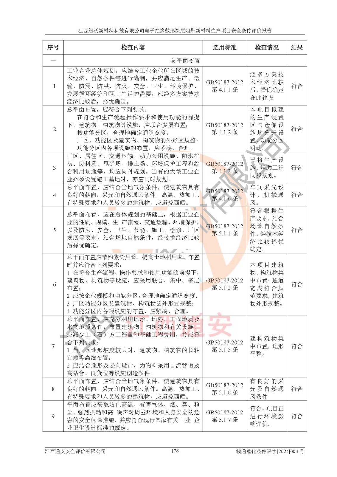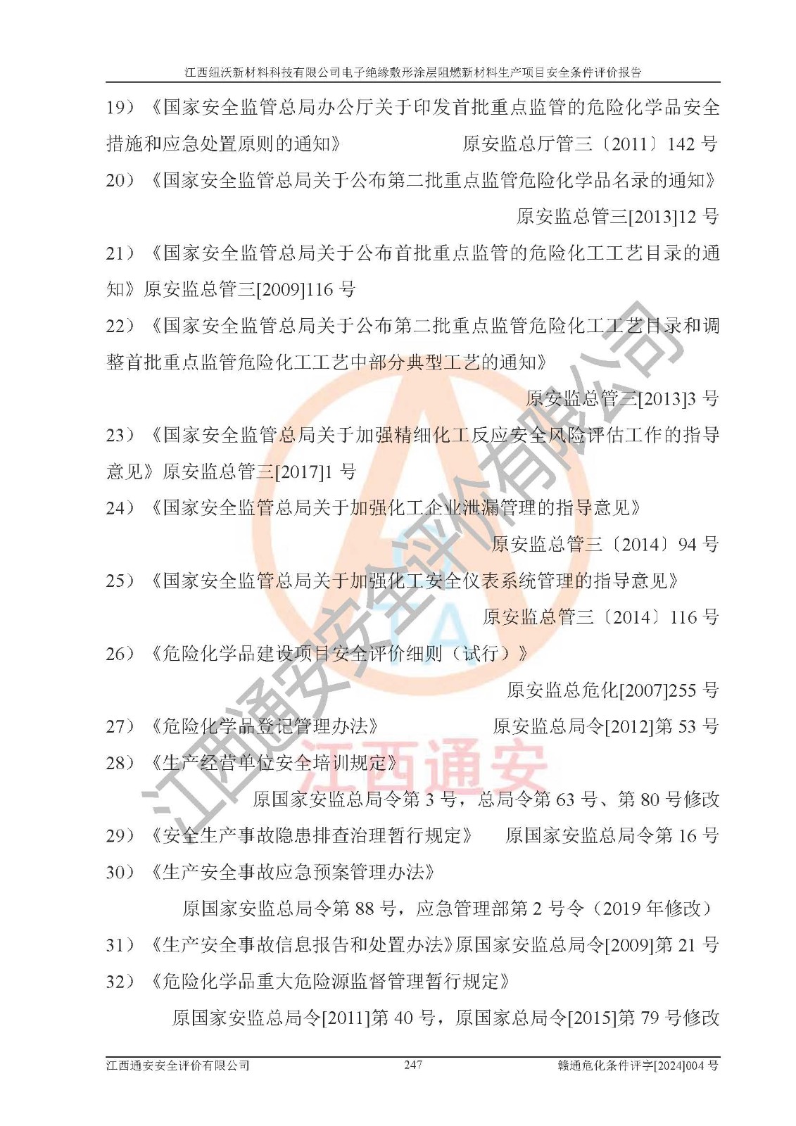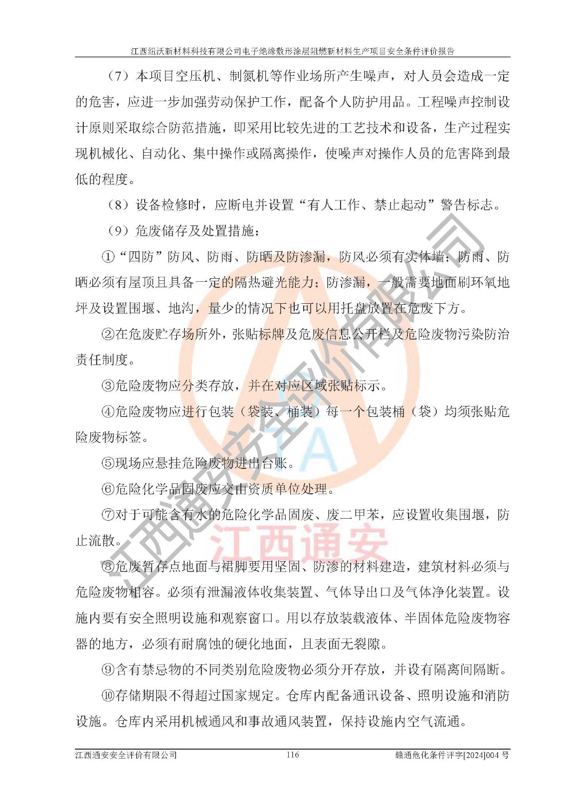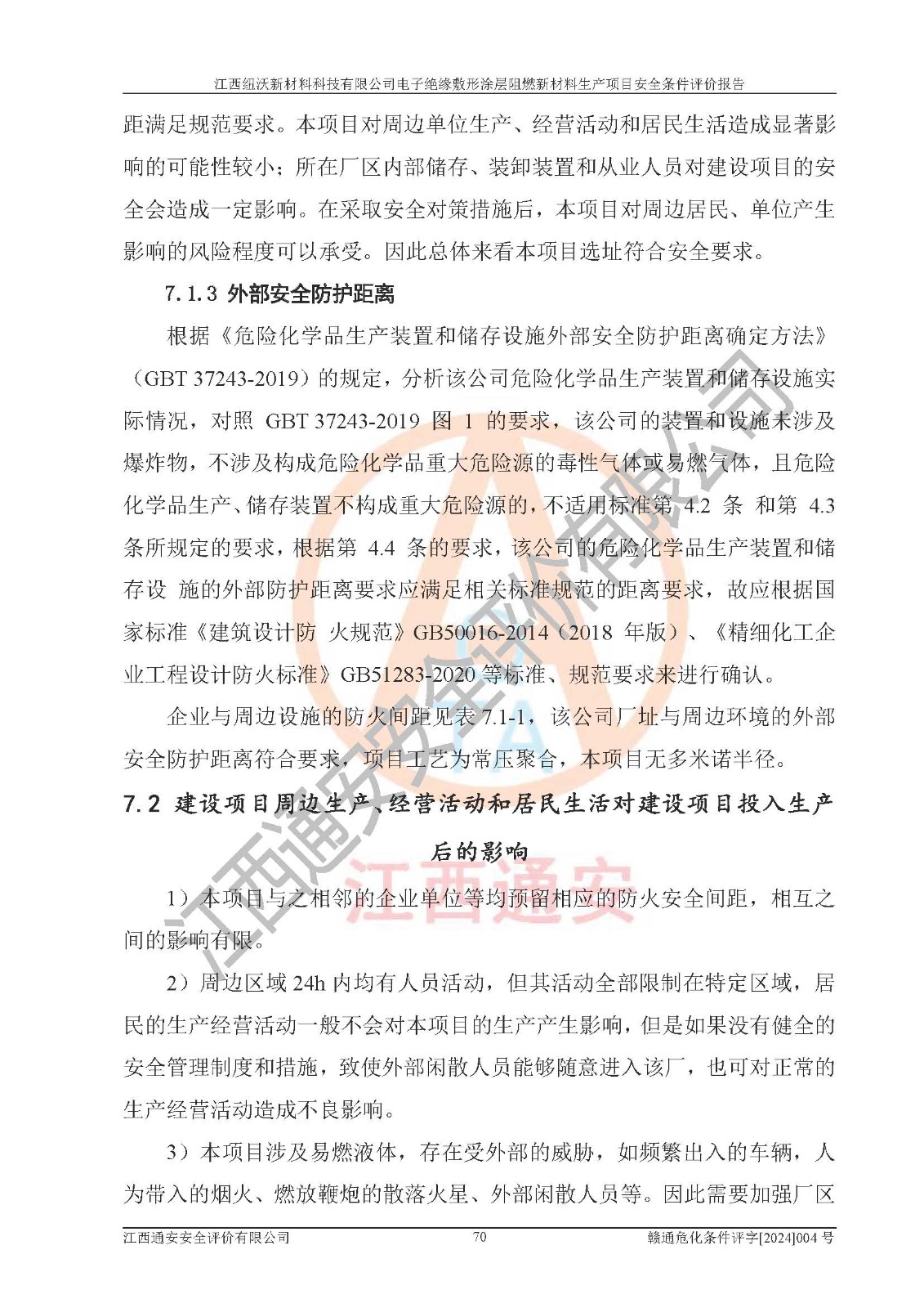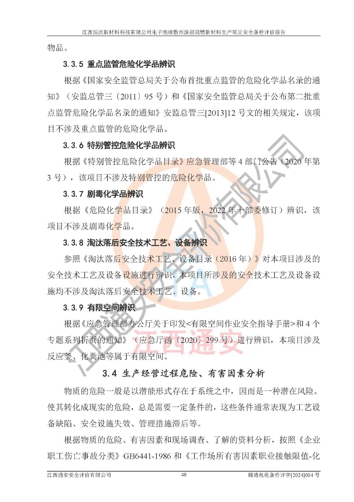 1)本項(xiàng)目依法取得了《江西省企業(yè)投資項(xiàng)目備案通知書》、《建設(shè)用地規(guī)劃許可證》,符合地方產(chǎn)業(yè)發(fā)展規(guī)劃的要求。 2)根據(jù)《**安全監(jiān)管總局關(guān)于公布首批重點(diǎn)監(jiān)管的危險(xiǎn)化工工藝目錄的通知》(安監(jiān)總管三[2009]116號)和《**安全監(jiān)管總局關(guān)于公布第二批重點(diǎn)監(jiān)管危險(xiǎn)化工工藝目錄和調(diào)整首批重點(diǎn)監(jiān)管危險(xiǎn)化工工藝中部分典型工藝的通知》(安監(jiān)總管三[2013]3號),該項(xiàng)目未涉及重點(diǎn)監(jiān)管危險(xiǎn)化工工藝。 3)根據(jù)《危險(xiǎn)化學(xué)品重大危險(xiǎn)源辨識》(GB18218-2018),該項(xiàng)目未構(gòu)成危險(xiǎn)化學(xué)品重大危險(xiǎn)源。 4)項(xiàng)目存在的主要危險(xiǎn)因素有:火災(zāi)爆炸、容器爆炸、中毒窒息、灼燙、觸電、**傷害、機(jī)械傷害、高處墜落、物體打擊、淹溺等,存在的主要危害因素有:噪聲與振動、高溫、有害化學(xué)物質(zhì)等;引起事故的原因有人的不安全行為、物的不安全狀態(tài)、管理缺陷和環(huán)境不良。其中*主要的危險(xiǎn)有害因素是火災(zāi)爆炸。 5)采用預(yù)先危險(xiǎn)性分析法評價(jià),結(jié)果為: (1)通過預(yù)先危險(xiǎn)(PHA)分析可知,項(xiàng)目廠址及總體布局單元存在周邊環(huán)境相互影響,發(fā)生異常情況,可對周邊企業(yè)生產(chǎn)經(jīng)營活動、人員活動產(chǎn)生影響;存在自然條件影響,可因雷擊、暴雨等引起事故;存在**傷害、建筑物危害,其固有的危險(xiǎn)性等級為Ⅱ級,屬于“臨界的”,應(yīng)予以排除、采取控制措施因素。 (2)生產(chǎn)作業(yè)存在的危險(xiǎn)因素包括火災(zāi)爆炸、觸電、灼燙、中毒窒息固有的危險(xiǎn)等級為Ⅲ級,屬于“危險(xiǎn)的”,可能導(dǎo)致人員傷亡和系統(tǒng)損壞的因素,需要采取防范和對策措施的因素;其它危險(xiǎn)因素固有的危險(xiǎn)等級為Ⅱ級,屬于“臨界的”,應(yīng)予以排除、采取控制措施因素。 (3)生產(chǎn)作業(yè)存在的噪聲、粉塵、高溫、有害化學(xué)物質(zhì)的危險(xiǎn)有害因素等級為Ⅱ級,屬于“臨界的”,應(yīng)予以排除、采取控制措施因素。 6)危險(xiǎn)度評價(jià)分析,結(jié)果為: 生產(chǎn)裝置危險(xiǎn)度評價(jià)分析:101生產(chǎn)車間為**危險(xiǎn)(Ⅰ級)。 儲存單元危險(xiǎn)度評價(jià)分析:202甲類倉庫為**危險(xiǎn)(Ⅰ級),201丙類倉庫為低度危險(xiǎn)(Ⅲ級)。 7)作業(yè)條件危險(xiǎn)性評價(jià)結(jié)果:在選定的評價(jià)單元中,其危險(xiǎn)分值均在70以下,危險(xiǎn)程度基本屬于“可能危險(xiǎn)”、“稍有危險(xiǎn)”范圍,作業(yè)條件相對安全。企業(yè)經(jīng)營過程中首先應(yīng)重點(diǎn)加強(qiáng)對甲類車間、甲類倉庫的危險(xiǎn)因素的嚴(yán)格控制,注重日常安全管理;其次要建立健全完善的安全生產(chǎn)責(zé)任制、安全管理制度、安全技術(shù)操作規(guī)程并**其貫徹落實(shí);第三要認(rèn)真抓好操作人員、管理人員的安全知識和操作技能的培訓(xùn),**人員具有與工程技術(shù)水平相適應(yīng)的技術(shù)素質(zhì)和安全素質(zhì),**安全作業(yè)。 8)項(xiàng)目建設(shè)場地符合當(dāng)?shù)匾?guī)劃要求,建設(shè)場地通過合理規(guī)劃,其選址、周邊環(huán)境、總平面布置、交通運(yùn)輸?shù)饶芊稀吨腥A人民共和國安全生產(chǎn)法》、《危險(xiǎn)化學(xué)品安全管理?xiàng)l例》、《建筑設(shè)計(jì)防火規(guī)范》、《精細(xì)化工企業(yè)工程設(shè)計(jì)防火標(biāo)準(zhǔn)》等法規(guī)、標(biāo)準(zhǔn)、規(guī)范要求。 廠址地區(qū)地震活動相對較弱,災(zāi)害性天氣出現(xiàn)頻率稍高,自然災(zāi)害對項(xiàng)目建設(shè)具有**影響,通過采取相應(yīng)的防護(hù)措施,自然條件適宜建設(shè)。 9)建設(shè)項(xiàng)目符合**產(chǎn)業(yè)政策的要求;選擇工藝為現(xiàn)行成熟工藝,其安全可靠性可得到**。 10)本報(bào)告已根據(jù)有關(guān)安全生產(chǎn)法律、法規(guī)、規(guī)章和**標(biāo)準(zhǔn)、行業(yè)標(biāo)準(zhǔn),并嚴(yán)格執(zhí)行省委辦公廳省**辦公廳《關(guān)于全面加強(qiáng)危險(xiǎn)化學(xué)品安全生產(chǎn)工作的實(shí)施意見》(贛辦發(fā)[2020]32號)及鄱陽湖生態(tài)經(jīng)濟(jì)區(qū)、長江經(jīng)濟(jì)帶、“五河一湖”相關(guān)政策規(guī)定,客觀、公正、科學(xué)地進(jìn)行安全評價(jià),項(xiàng)目符合《江西省應(yīng)急管理廳關(guān)于印發(fā)《江西省危險(xiǎn)化學(xué)品建設(shè)項(xiàng)目安全監(jiān)督管理實(shí)施細(xì)則》(試行)的通知》(贛應(yīng)急字[2021]100號)的要求。 11)本報(bào)告結(jié)合工藝特征,提出應(yīng)采取的對應(yīng)的自動化控制系統(tǒng)及自動化實(shí)施方案,滿足《江西省應(yīng)急管理廳關(guān)于印發(fā)《江西省化工企業(yè)自動化提升實(shí)施方案》(試行)的通知》(贛應(yīng)急字[2021]190號)的要求。 綜上所述:江西紐沃新材料科技有限公司電子*緣敷形涂層阻燃新材料生產(chǎn)項(xiàng)目的產(chǎn)業(yè)政策、安全條件、廠址、總體布局、主要技術(shù)和工藝、裝置、設(shè)施、配套和輔助工程、安全管理等均滿足安全生產(chǎn)相關(guān)法