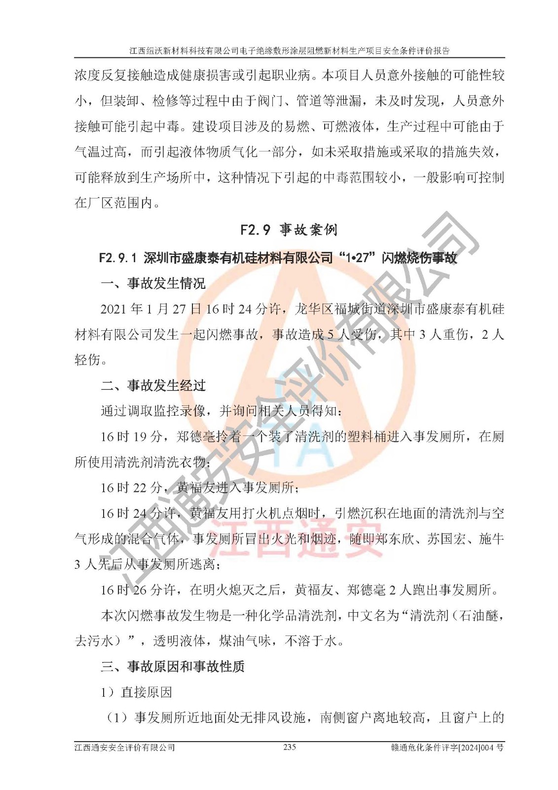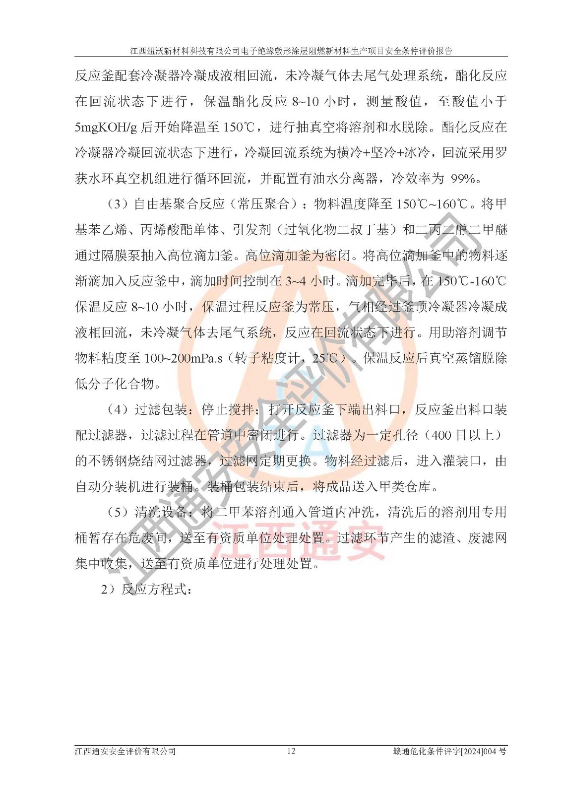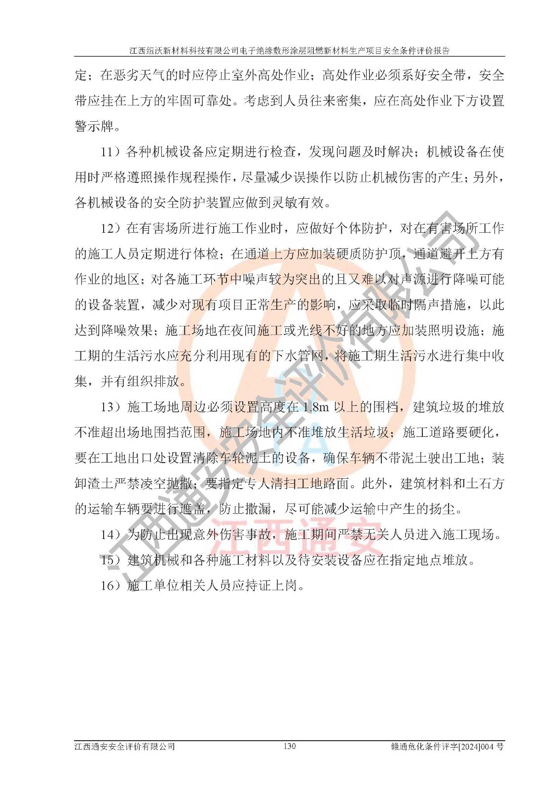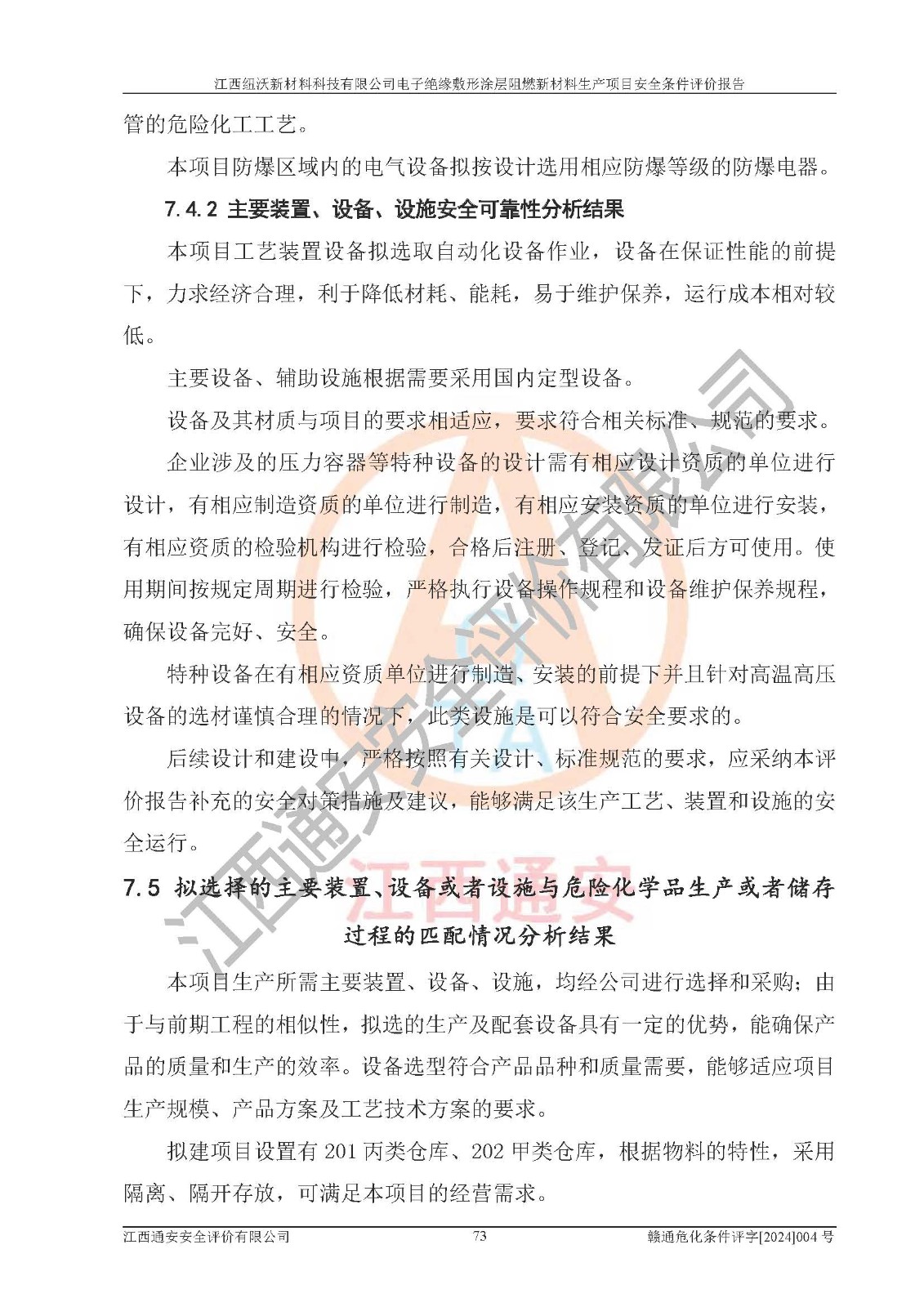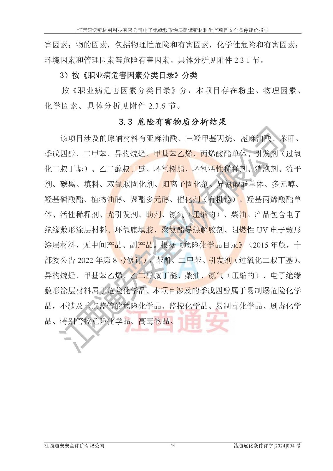 1)本項(xiàng)目依法取得了《江西省企業(yè)投資項(xiàng)目備案通知書》、《建設(shè)用地規(guī)劃許可證》,符合地方產(chǎn)業(yè)發(fā)展規(guī)劃的要求。 2)根據(jù)《**安全監(jiān)管總局關(guān)于公布首批重點(diǎn)監(jiān)管的危險(xiǎn)化工工藝目錄的通知》(安監(jiān)總管三[2009]116號)和《**安全監(jiān)管總局關(guān)于公布第二批重點(diǎn)監(jiān)管危險(xiǎn)化工工藝目錄和調(diào)整首批重點(diǎn)監(jiān)管危險(xiǎn)化工工藝中部分典型工藝的通知》(安監(jiān)總管三[2013]3號),該項(xiàng)目未涉及重點(diǎn)監(jiān)管危險(xiǎn)化工工藝。 3)根據(jù)《危險(xiǎn)化學(xué)品重大危險(xiǎn)源辨識》(GB18218-2018),該項(xiàng)目未構(gòu)成危險(xiǎn)化學(xué)品重大危險(xiǎn)源。 4)項(xiàng)目存在的主要危險(xiǎn)因素有:火災(zāi)爆炸、容器爆炸、中毒窒息、灼燙、觸電、**傷害、機(jī)械傷害、高處墜落、物體打擊、淹溺等,存在的主要危害因素有:噪聲與振動、高溫、有害化學(xué)物質(zhì)等;引起事故的原因有人的不安全行為、物的不安全狀態(tài)、管理缺陷和環(huán)境不良。其中*主要的危險(xiǎn)有害因素是火災(zāi)爆炸。 5)采用預(yù)先危險(xiǎn)性分析法評價(jià),結(jié)果為: (1)通過預(yù)先危險(xiǎn)(PHA)分析可知,項(xiàng)目廠址及總體布局單元存在周邊環(huán)境相互影響,發(fā)生異常情況,可對周邊企業(yè)生產(chǎn)經(jīng)營活動、人員活動產(chǎn)生影響;存在自然條件影響,可因雷擊、暴雨等引起事故;存在**傷害、建筑物危害,其固有的危險(xiǎn)性等級為Ⅱ級,屬于“臨界的”,應(yīng)予以排除、采取控制措施因素。 (2)生產(chǎn)作業(yè)存在的危險(xiǎn)因素包括火災(zāi)爆炸、觸電、灼燙、中毒窒息固有的危險(xiǎn)等級為Ⅲ級,屬于“危險(xiǎn)的”,可能導(dǎo)致人員傷亡和系統(tǒng)損壞的因素,需要采取防范和對策措施的因素;其它危險(xiǎn)因素固有的危險(xiǎn)等級為Ⅱ級,屬于“臨界的”,應(yīng)予以排除、采取控制措施因素。 (3)生產(chǎn)作業(yè)存在的噪聲、粉塵、高溫、有害化學(xué)物質(zhì)的危險(xiǎn)有害因素等級為Ⅱ級,屬于“臨界的”,應(yīng)予以排除、采取控制措施因素。 6)危險(xiǎn)度評價(jià)分析,結(jié)果為: 生產(chǎn)裝置危險(xiǎn)度評價(jià)分析:101生產(chǎn)車間為**危險(xiǎn)(Ⅰ級)。 儲存單元危險(xiǎn)度評價(jià)分析:202甲類倉庫為**危險(xiǎn)(Ⅰ級),201丙類倉庫為低度危險(xiǎn)(Ⅲ級)。 7)作業(yè)條件危險(xiǎn)性評價(jià)結(jié)果:在選定的評價(jià)單元中,其危險(xiǎn)分值均在70以下,危險(xiǎn)程度基本屬于“可能危險(xiǎn)”、“稍有危險(xiǎn)”范圍,作業(yè)條件相對安全。企業(yè)經(jīng)營過程中首先應(yīng)重點(diǎn)加強(qiáng)對甲類車間、甲類倉庫的危險(xiǎn)因素的嚴(yán)格控制,注重日常安全管理;其次要建立健全完善的安全生產(chǎn)責(zé)任制、安全管理制度、安全技術(shù)操作規(guī)程并**其貫徹落實(shí);第三要認(rèn)真抓好操作人員、管理人員的安全知識和操作技能的培訓(xùn),**人員具有與工程技術(shù)水平相適應(yīng)的技術(shù)素質(zhì)和安全素質(zhì),**安全作業(yè)。 8)項(xiàng)目建設(shè)場地符合當(dāng)?shù)匾?guī)劃要求,建設(shè)場地通過合理規(guī)劃,其選址、周邊環(huán)境、總平面布置、交通運(yùn)輸?shù)饶芊稀吨腥A人民共和國安全生產(chǎn)法》、《危險(xiǎn)化學(xué)品安全管理?xiàng)l例》、《建筑設(shè)計(jì)防火規(guī)范》、《精細(xì)化工企業(yè)工程設(shè)計(jì)防火標(biāo)準(zhǔn)》等法規(guī)、標(biāo)準(zhǔn)、規(guī)范要求。 廠址地區(qū)地震活動相對較弱,災(zāi)害性天氣出現(xiàn)頻率稍高,自然災(zāi)害對項(xiàng)目建設(shè)具有**影響,通過采取相應(yīng)的防護(hù)措施,自然條件適宜建設(shè)。 9)建設(shè)項(xiàng)目符合**產(chǎn)業(yè)政策的要求;選擇工藝為現(xiàn)行成熟工藝,其安全可靠性可得到**。 10)本報(bào)告已根據(jù)有關(guān)安全生產(chǎn)法律、法規(guī)、規(guī)章和**標(biāo)準(zhǔn)、行業(yè)標(biāo)準(zhǔn),并嚴(yán)格執(zhí)行省委辦公廳省**辦公廳《關(guān)于全面加強(qiáng)危險(xiǎn)化學(xué)品安全生產(chǎn)工作的實(shí)施意見》(贛辦發(fā)[2020]32號)及鄱陽湖生態(tài)經(jīng)濟(jì)區(qū)、長江經(jīng)濟(jì)帶、“五河一湖”相關(guān)政策規(guī)定,客觀、公正、科學(xué)地進(jìn)行安全評價(jià),項(xiàng)目符合《江西省應(yīng)急管理廳關(guān)于印發(fā)《江西省危險(xiǎn)化學(xué)品建設(shè)項(xiàng)目安全監(jiān)督管理實(shí)施細(xì)則》(試行)的通知》(贛應(yīng)急字[2021]100號)的要求。 11)本報(bào)告結(jié)合工藝特征,提出應(yīng)采取的對應(yīng)的自動化控制系統(tǒng)及自動化實(shí)施方案,滿足《江西省應(yīng)急管理廳關(guān)于印發(fā)《江西省化工企業(yè)自動化提升實(shí)施方案》(試行)的通知》(贛應(yīng)急字[2021]190號)的要求。 綜上所述:江西紐沃新材料科技有限公司電子*緣敷形涂層阻燃新材料生產(chǎn)項(xiàng)目的產(chǎn)業(yè)政策、安全條件、廠址、總體布局、主要技術(shù)和工藝、裝置、設(shè)施、配套和輔助工程、安全管理等均滿足安全生產(chǎn)相關(guān)法