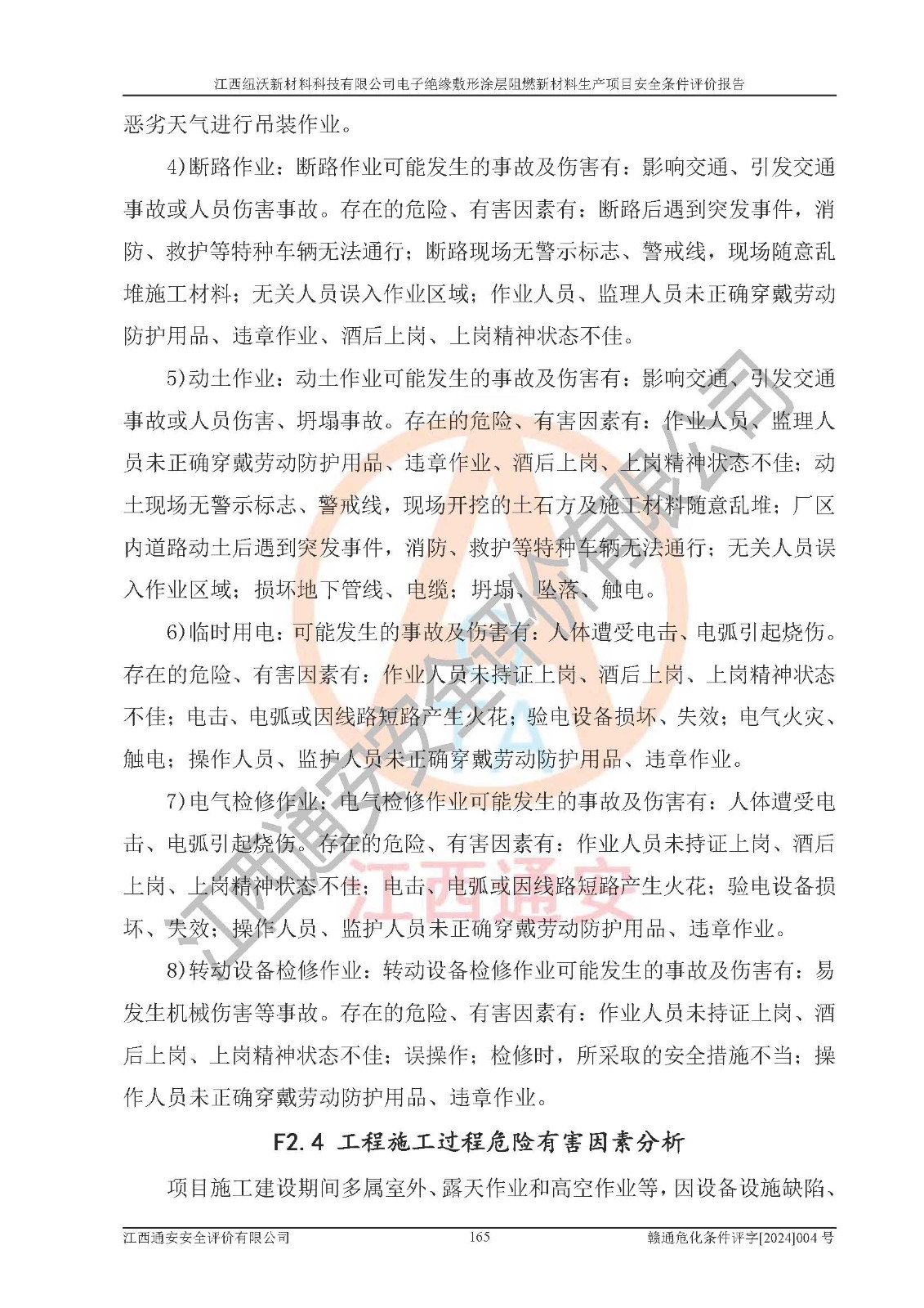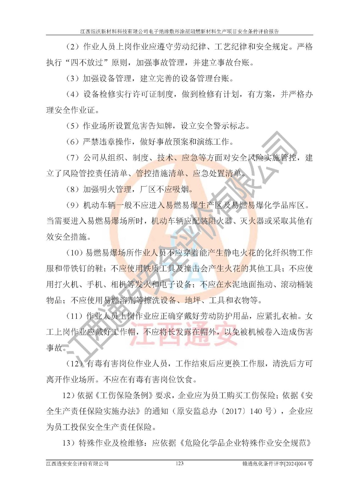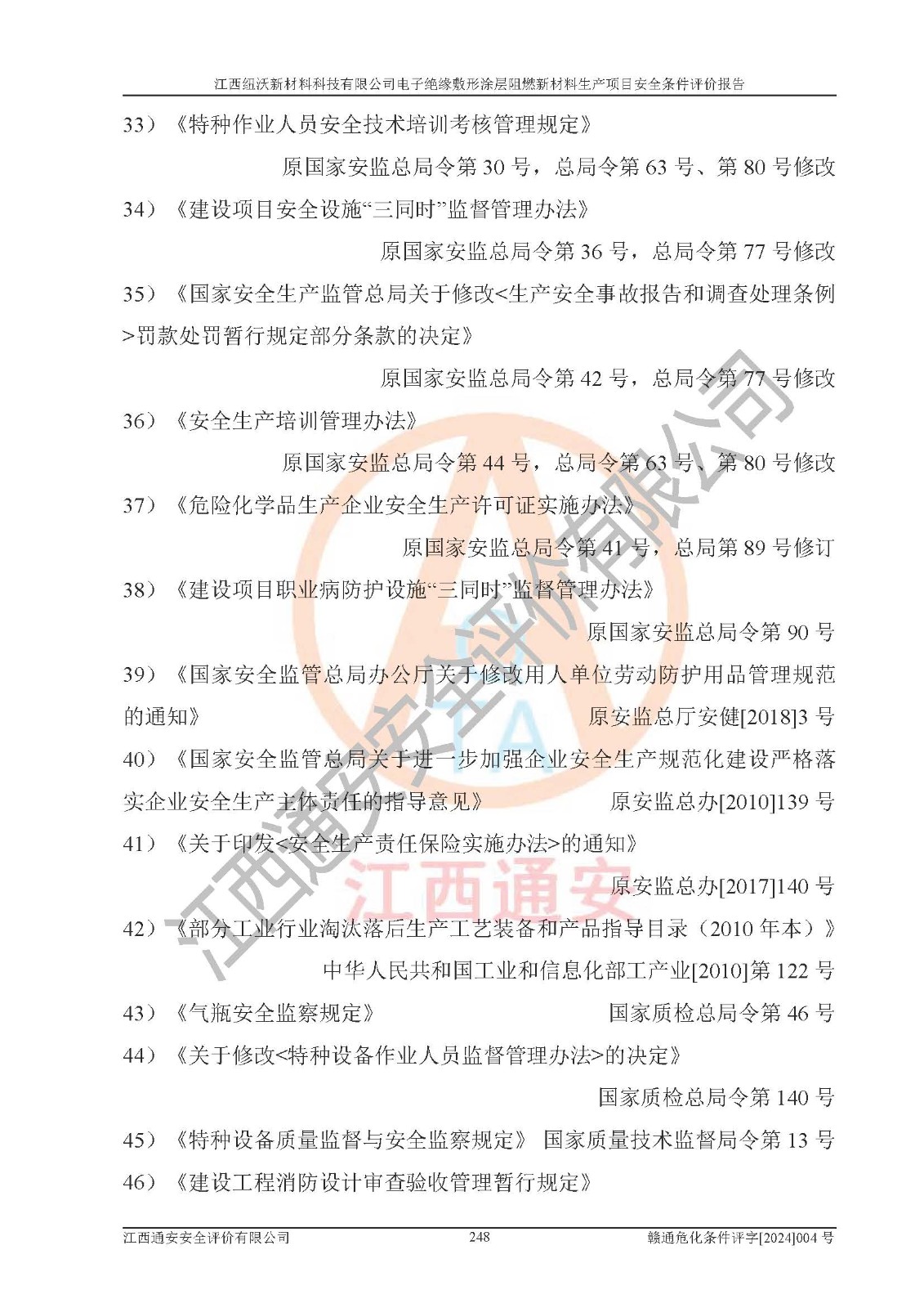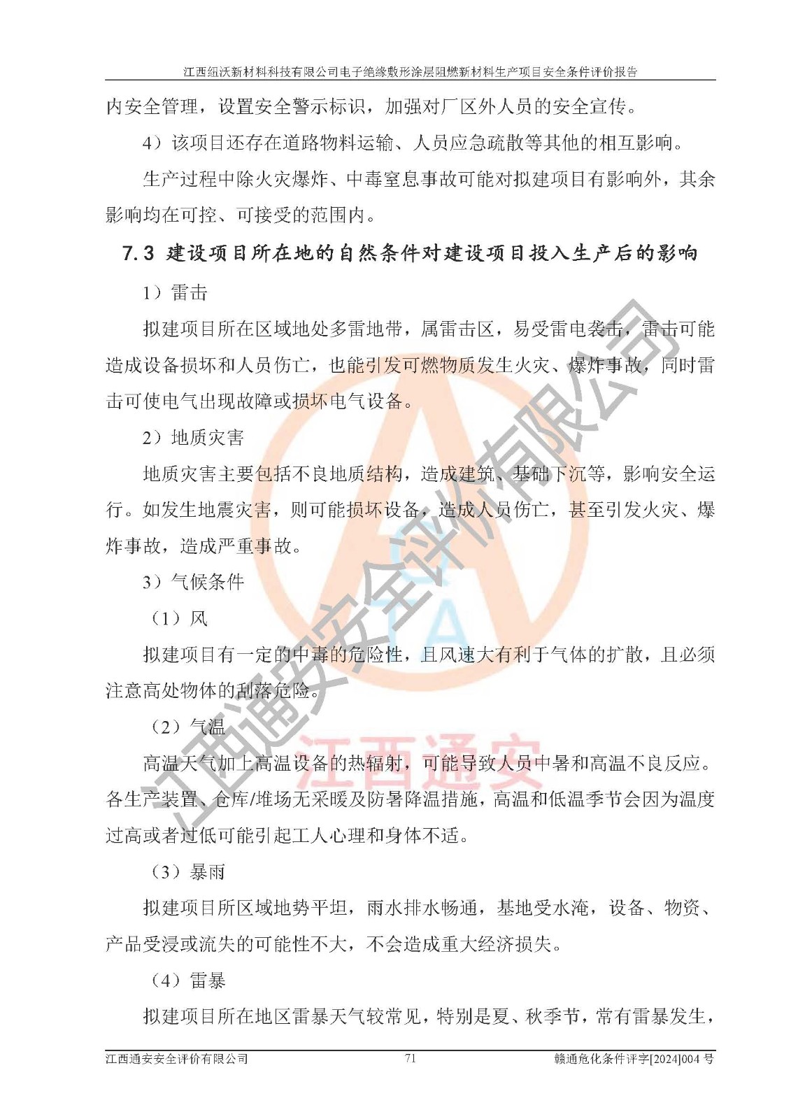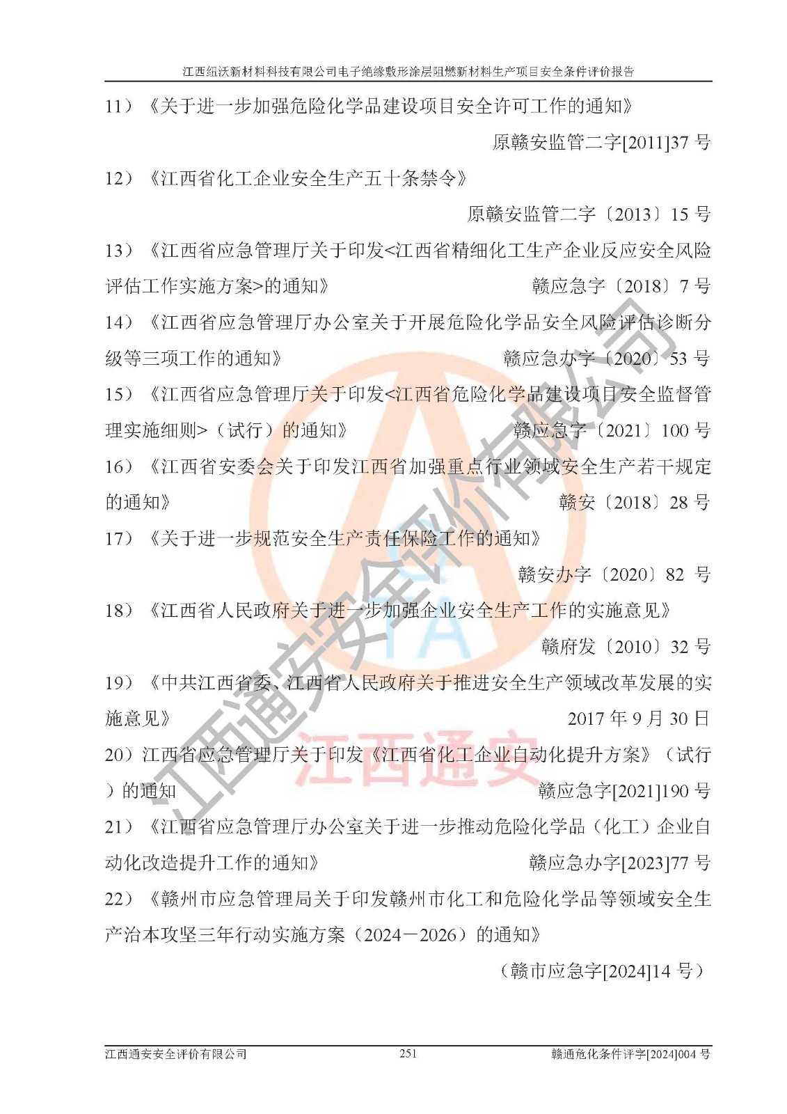 1)本項(xiàng)目依法取得了《江西省企業(yè)投資項(xiàng)目備案通知書》、《建設(shè)用地規(guī)劃許可證》,符合地方產(chǎn)業(yè)發(fā)展規(guī)劃的要求。 2)根據(jù)《**安全監(jiān)管總局關(guān)于公布首批重點(diǎn)監(jiān)管的危險(xiǎn)化工工藝目錄的通知》(安監(jiān)總管三[2009]116號)和《**安全監(jiān)管總局關(guān)于公布第二批重點(diǎn)監(jiān)管危險(xiǎn)化工工藝目錄和調(diào)整首批重點(diǎn)監(jiān)管危險(xiǎn)化工工藝中部分典型工藝的通知》(安監(jiān)總管三[2013]3號),該項(xiàng)目未涉及重點(diǎn)監(jiān)管危險(xiǎn)化工工藝。 3)根據(jù)《危險(xiǎn)化學(xué)品重大危險(xiǎn)源辨識》(GB18218-2018),該項(xiàng)目未構(gòu)成危險(xiǎn)化學(xué)品重大危險(xiǎn)源。 4)項(xiàng)目存在的主要危險(xiǎn)因素有:火災(zāi)爆炸、容器爆炸、中毒窒息、灼燙、觸電、**傷害、機(jī)械傷害、高處墜落、物體打擊、淹溺等,存在的主要危害因素有:噪聲與振動、高溫、有害化學(xué)物質(zhì)等;引起事故的原因有人的不安全行為、物的不安全狀態(tài)、管理缺陷和環(huán)境不良。其中*主要的危險(xiǎn)有害因素是火災(zāi)爆炸。 5)采用預(yù)先危險(xiǎn)性分析法評價(jià),結(jié)果為: (1)通過預(yù)先危險(xiǎn)(PHA)分析可知,項(xiàng)目廠址及總體布局單元存在周邊環(huán)境相互影響,發(fā)生異常情況,可對周邊企業(yè)生產(chǎn)經(jīng)營活動、人員活動產(chǎn)生影響;存在自然條件影響,可因雷擊、暴雨等引起事故;存在**傷害、建筑物危害,其固有的危險(xiǎn)性等級為Ⅱ級,屬于“臨界的”,應(yīng)予以排除、采取控制措施因素。 (2)生產(chǎn)作業(yè)存在的危險(xiǎn)因素包括火災(zāi)爆炸、觸電、灼燙、中毒窒息固有的危險(xiǎn)等級為Ⅲ級,屬于“危險(xiǎn)的”,可能導(dǎo)致人員傷亡和系統(tǒng)損壞的因素,需要采取防范和對策措施的因素;其它危險(xiǎn)因素固有的危險(xiǎn)等級為Ⅱ級,屬于“臨界的”,應(yīng)予以排除、采取控制措施因素。 (3)生產(chǎn)作業(yè)存在的噪聲、粉塵、高溫、有害化學(xué)物質(zhì)的危險(xiǎn)有害因素等級為Ⅱ級,屬于“臨界的”,應(yīng)予以排除、采取控制措施因素。 6)危險(xiǎn)度評價(jià)分析,結(jié)果為: 生產(chǎn)裝置危險(xiǎn)度評價(jià)分析:101生產(chǎn)車間為**危險(xiǎn)(Ⅰ級)。 儲存單元危險(xiǎn)度評價(jià)分析:202甲類倉庫為**危險(xiǎn)(Ⅰ級),201丙類倉庫為低度危險(xiǎn)(Ⅲ級)。 7)作業(yè)條件危險(xiǎn)性評價(jià)結(jié)果:在選定的評價(jià)單元中,其危險(xiǎn)分值均在70以下,危險(xiǎn)程度基本屬于“可能危險(xiǎn)”、“稍有危險(xiǎn)”范圍,作業(yè)條件相對安全。企業(yè)經(jīng)營過程中首先應(yīng)重點(diǎn)加強(qiáng)對甲類車間、甲類倉庫的危險(xiǎn)因素的嚴(yán)格控制,注重日常安全管理;其次要建立健全完善的安全生產(chǎn)責(zé)任制、安全管理制度、安全技術(shù)操作規(guī)程并**其貫徹落實(shí);第三要認(rèn)真抓好操作人員、管理人員的安全知識和操作技能的培訓(xùn),**人員具有與工程技術(shù)水平相適應(yīng)的技術(shù)素質(zhì)和安全素質(zhì),**安全作業(yè)。 8)項(xiàng)目建設(shè)場地符合當(dāng)?shù)匾?guī)劃要求,建設(shè)場地通過合理規(guī)劃,其選址、周邊環(huán)境、總平面布置、交通運(yùn)輸?shù)饶芊稀吨腥A人民共和國安全生產(chǎn)法》、《危險(xiǎn)化學(xué)品安全管理?xiàng)l例》、《建筑設(shè)計(jì)防火規(guī)范》、《精細(xì)化工企業(yè)工程設(shè)計(jì)防火標(biāo)準(zhǔn)》等法規(guī)、標(biāo)準(zhǔn)、規(guī)范要求。 廠址地區(qū)地震活動相對較弱,災(zāi)害性天氣出現(xiàn)頻率稍高,自然災(zāi)害對項(xiàng)目建設(shè)具有**影響,通過采取相應(yīng)的防護(hù)措施,自然條件適宜建設(shè)。 9)建設(shè)項(xiàng)目符合**產(chǎn)業(yè)政策的要求;選擇工藝為現(xiàn)行成熟工藝,其安全可靠性可得到**。 10)本報(bào)告已根據(jù)有關(guān)安全生產(chǎn)法律、法規(guī)、規(guī)章和**標(biāo)準(zhǔn)、行業(yè)標(biāo)準(zhǔn),并嚴(yán)格執(zhí)行省委辦公廳省**辦公廳《關(guān)于全面加強(qiáng)危險(xiǎn)化學(xué)品安全生產(chǎn)工作的實(shí)施意見》(贛辦發(fā)[2020]32號)及鄱陽湖生態(tài)經(jīng)濟(jì)區(qū)、長江經(jīng)濟(jì)帶、“五河一湖”相關(guān)政策規(guī)定,客觀、公正、科學(xué)地進(jìn)行安全評價(jià),項(xiàng)目符合《江西省應(yīng)急管理廳關(guān)于印發(fā)《江西省危險(xiǎn)化學(xué)品建設(shè)項(xiàng)目安全監(jiān)督管理實(shí)施細(xì)則》(試行)的通知》(贛應(yīng)急字[2021]100號)的要求。 11)本報(bào)告結(jié)合工藝特征,提出應(yīng)采取的對應(yīng)的自動化控制系統(tǒng)及自動化實(shí)施方案,滿足《江西省應(yīng)急管理廳關(guān)于印發(fā)《江西省化工企業(yè)自動化提升實(shí)施方案》(試行)的通知》(贛應(yīng)急字[2021]190號)的要求。 綜上所述:江西紐沃新材料科技有限公司電子*緣敷形涂層阻燃新材料生產(chǎn)項(xiàng)目的產(chǎn)業(yè)政策、安全條件、廠址、總體布局、主要技術(shù)和工藝、裝置、設(shè)施、配套和輔助工程、安全管理等均滿足安全生產(chǎn)相關(guān)法