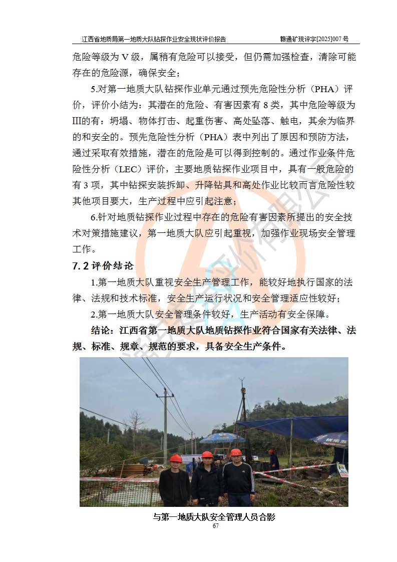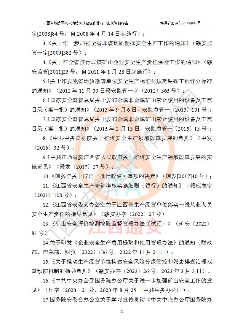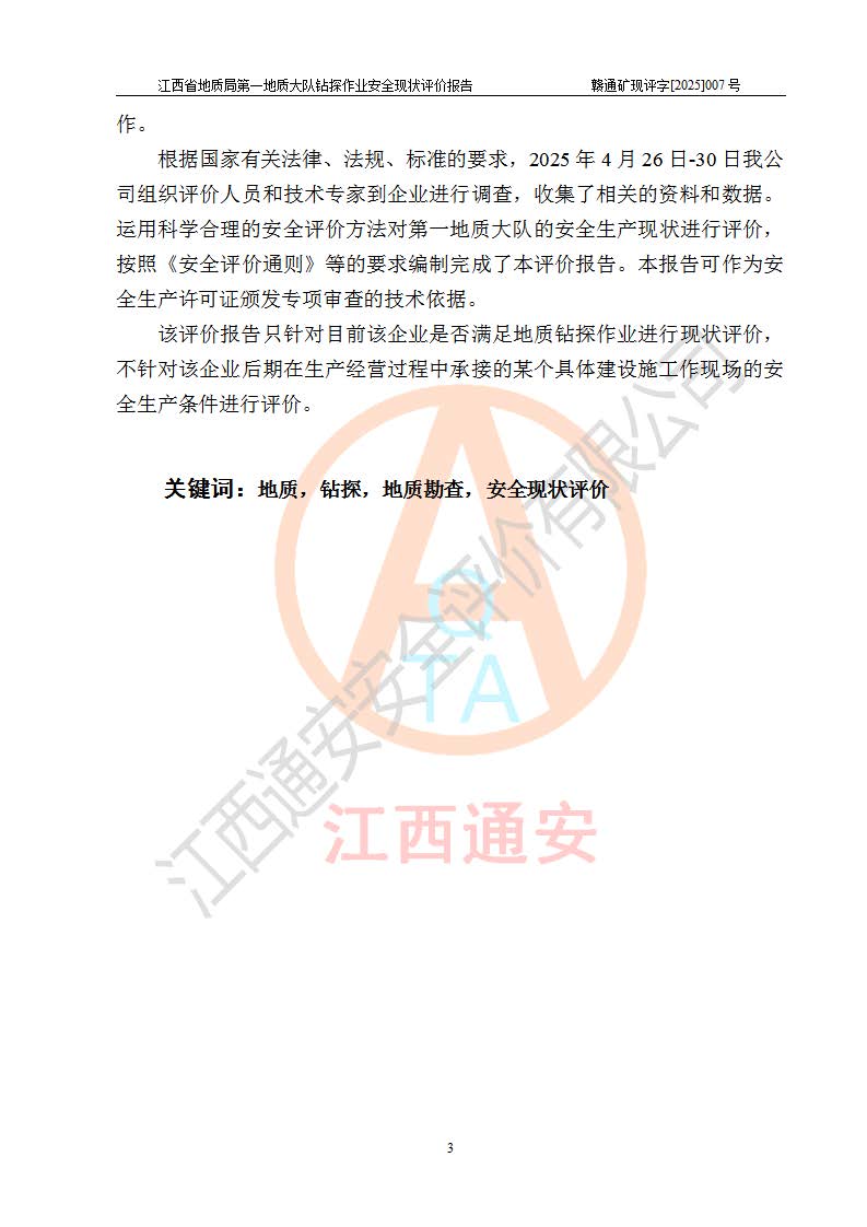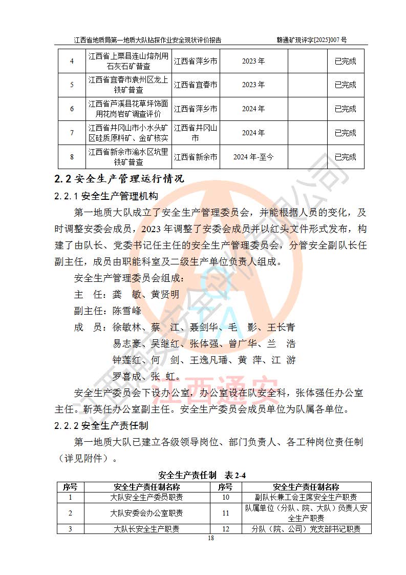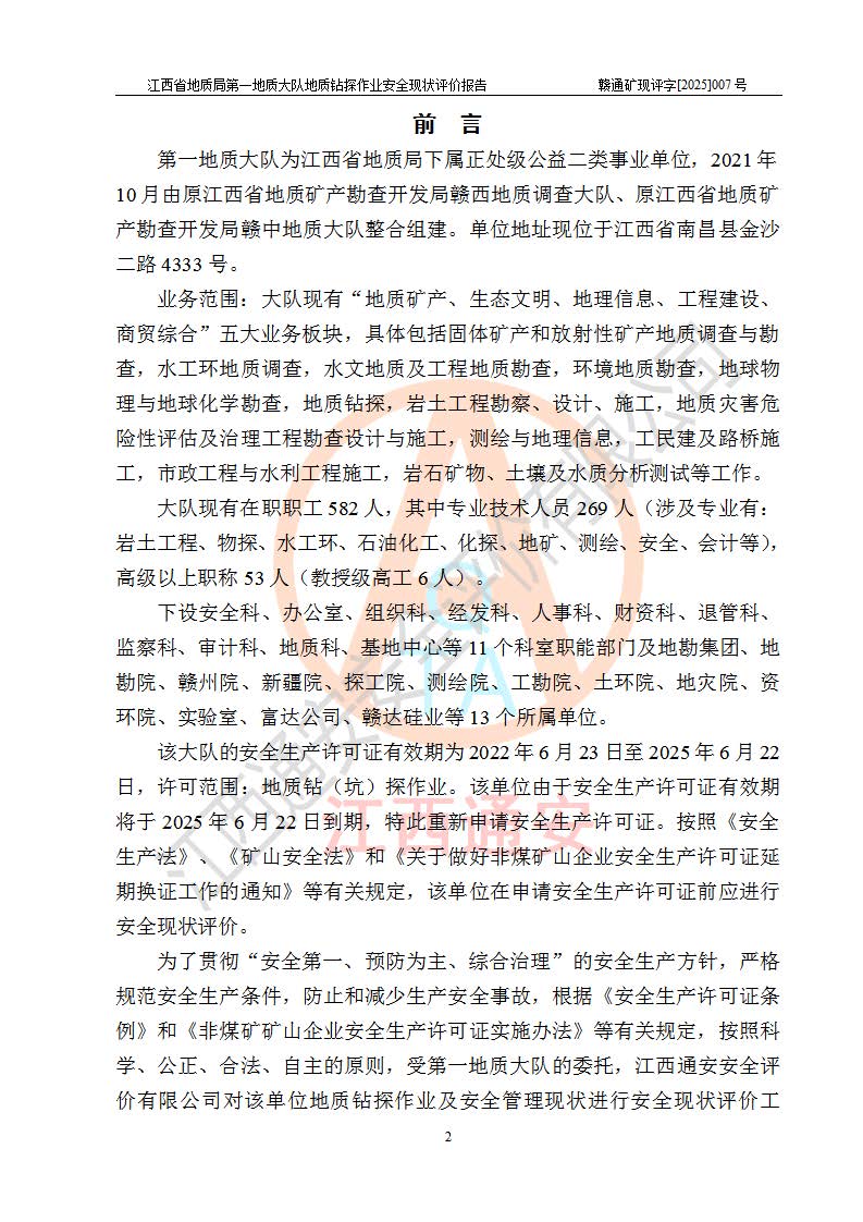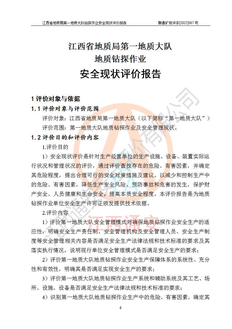 報告名稱 | 江西省地質(zhì)局**地質(zhì)大隊地質(zhì)鉆探作業(yè)安全現(xiàn)狀評價報告 | |||||