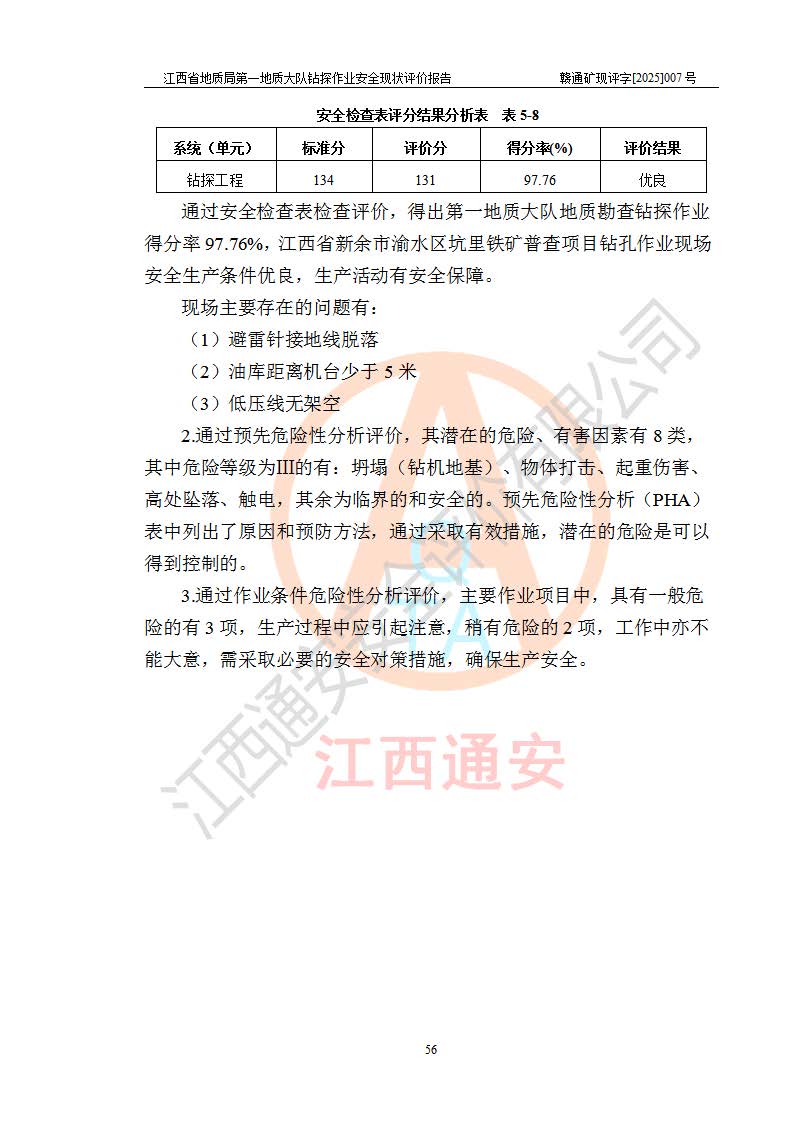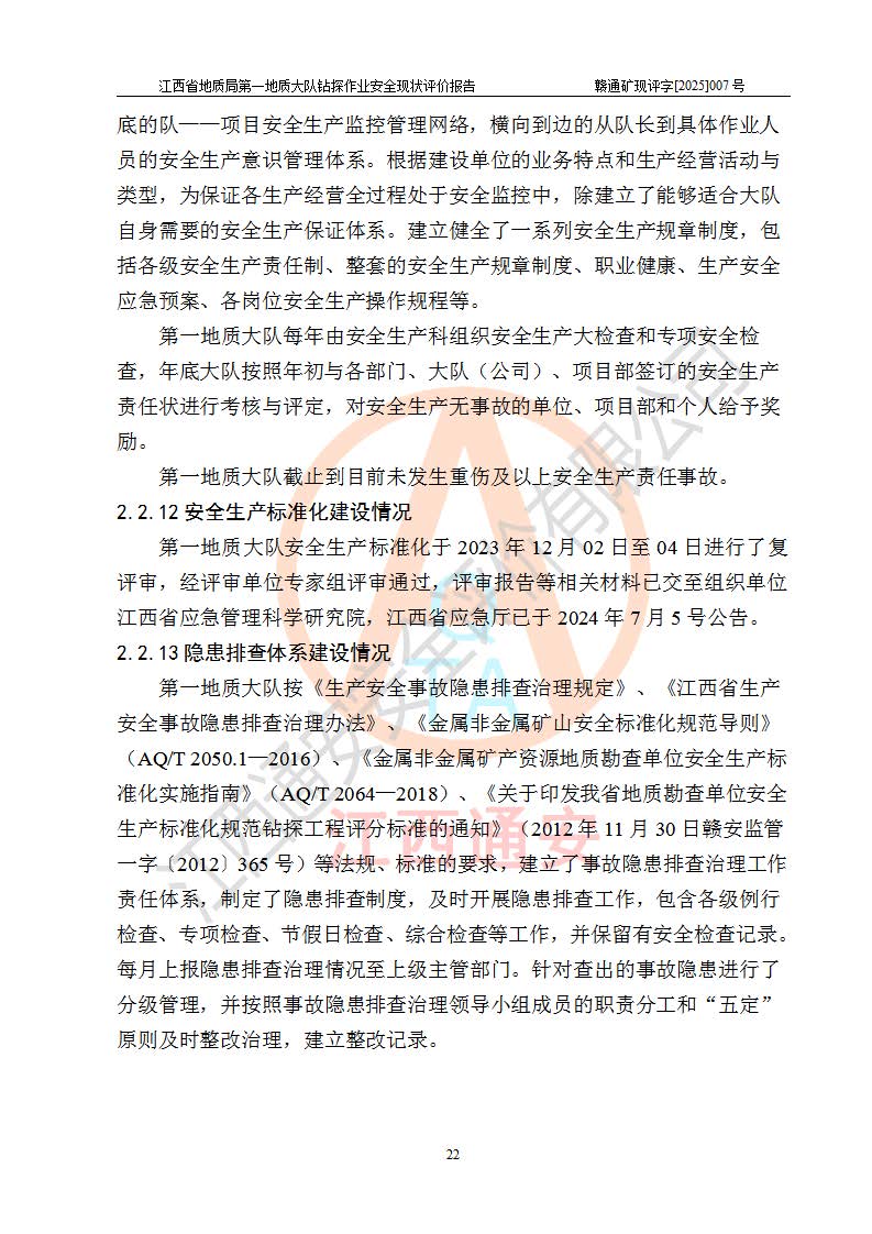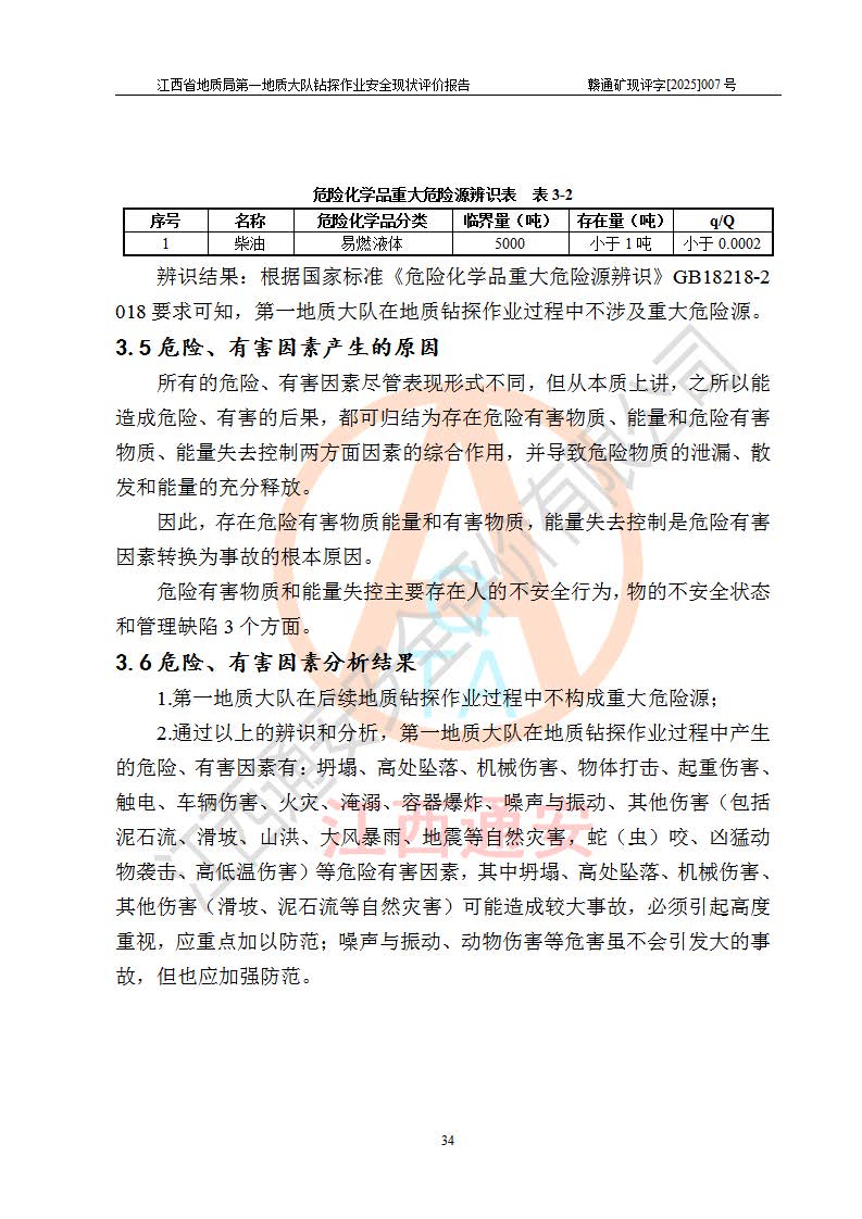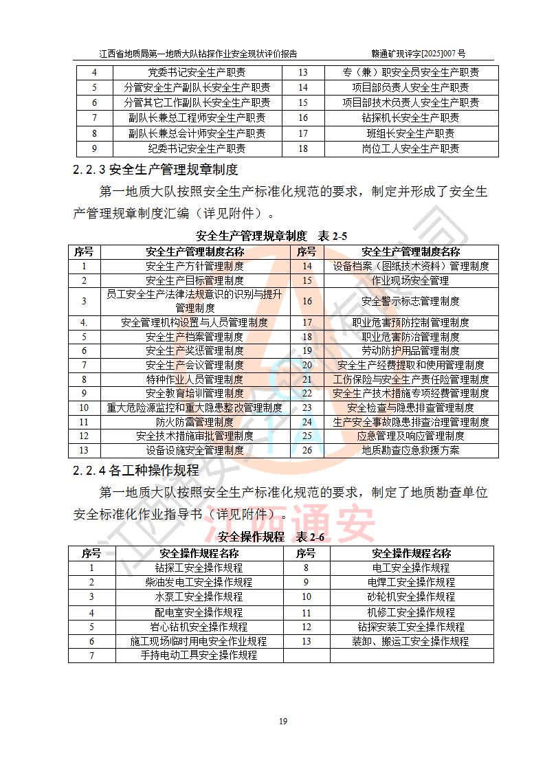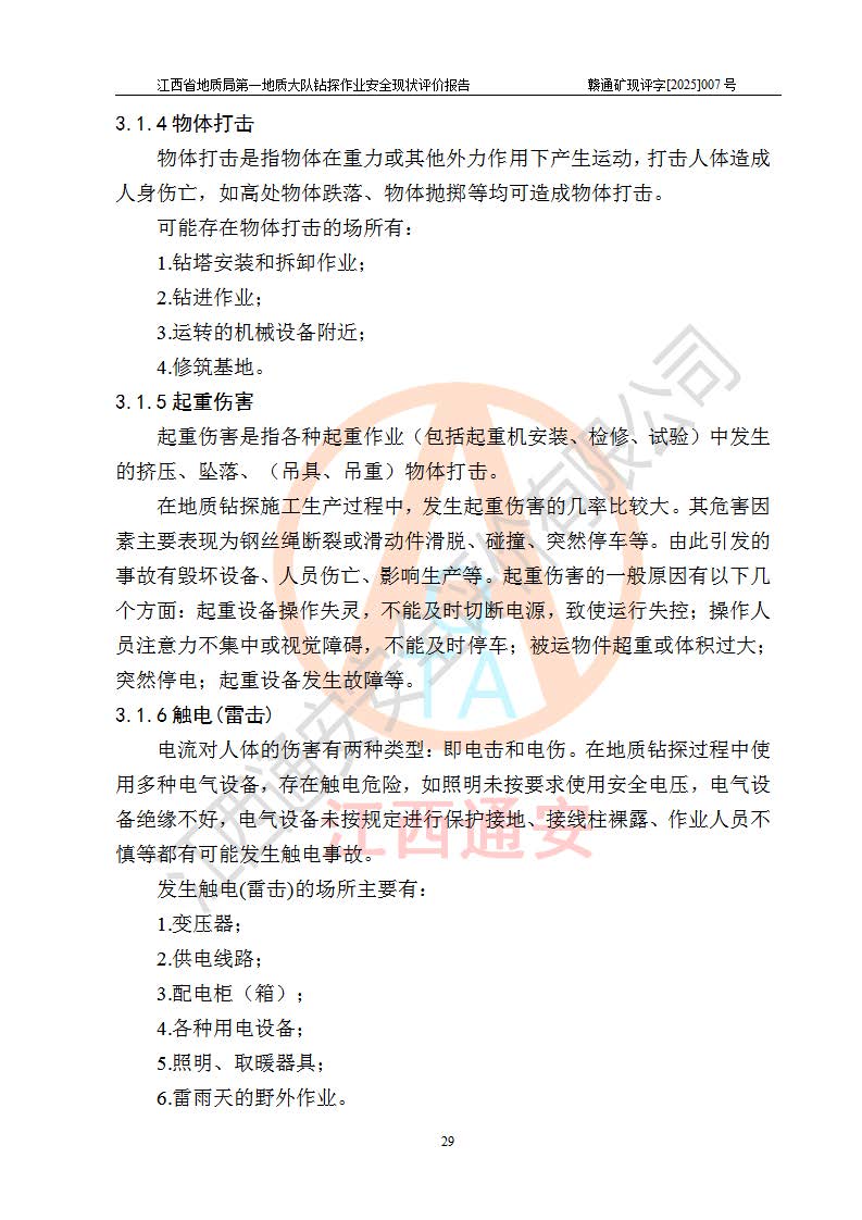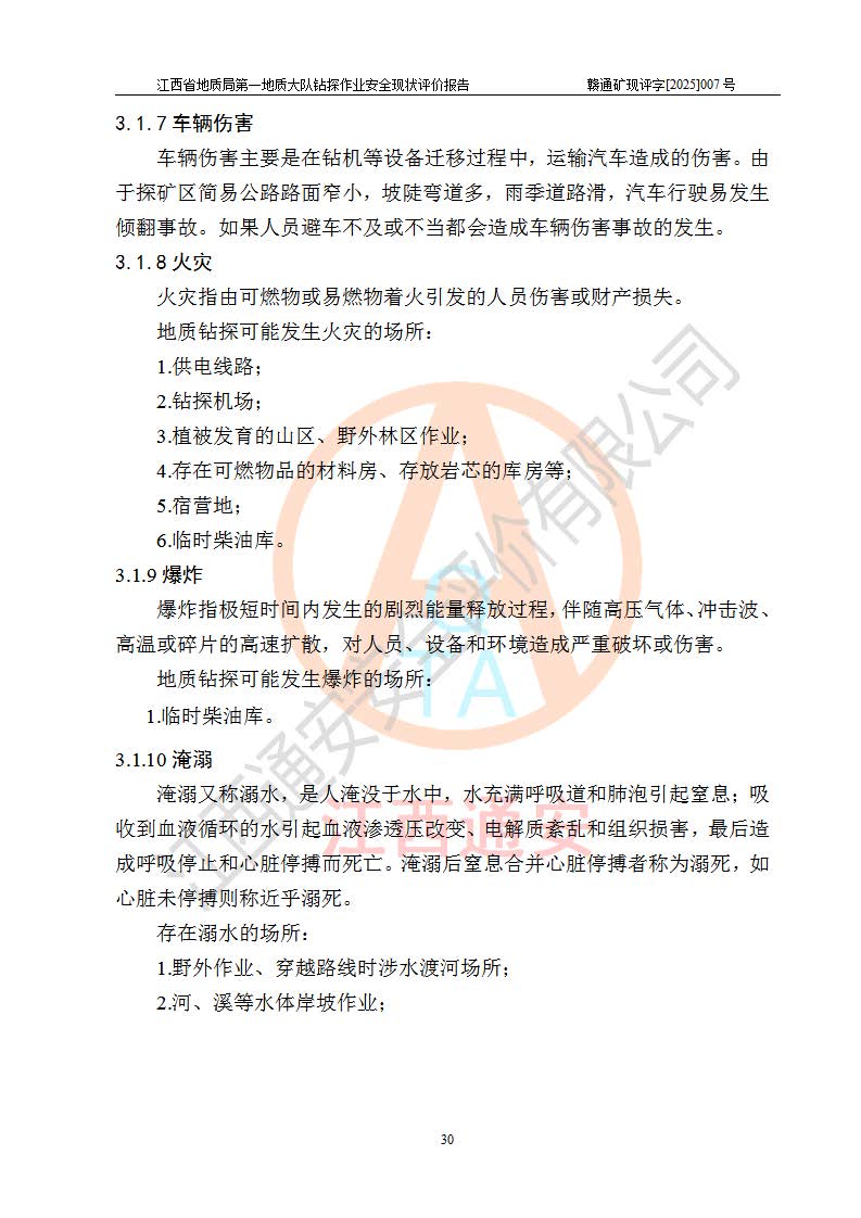 報告名稱 | 江西省地質(zhì)局**地質(zhì)大隊地質(zhì)鉆探作業(yè)安全現(xiàn)狀評價報告 | |||||