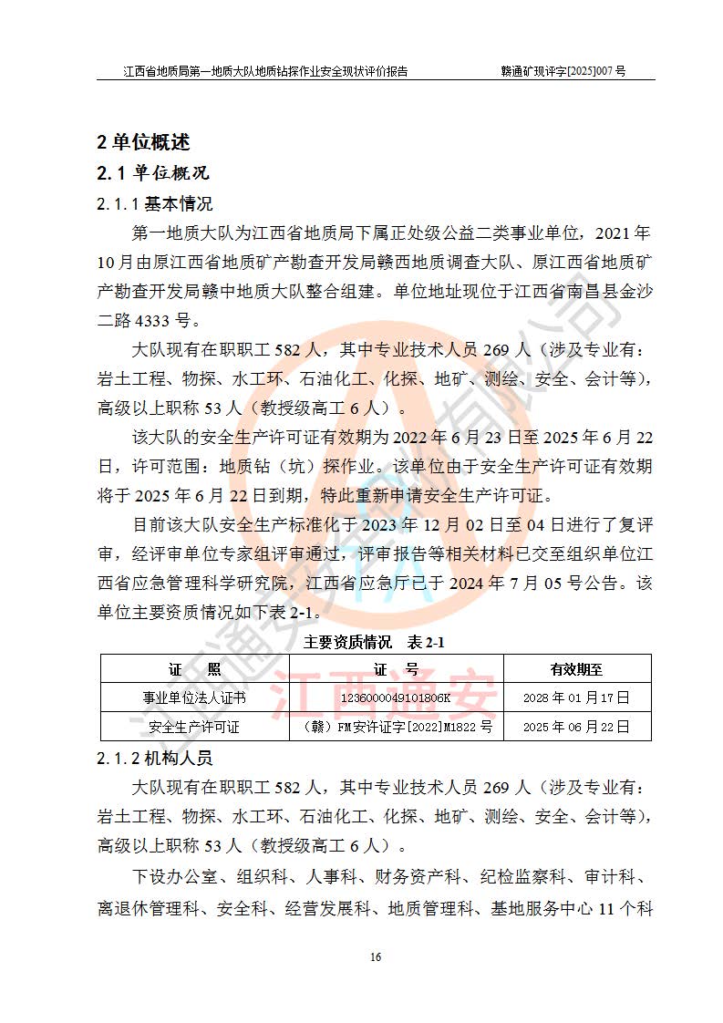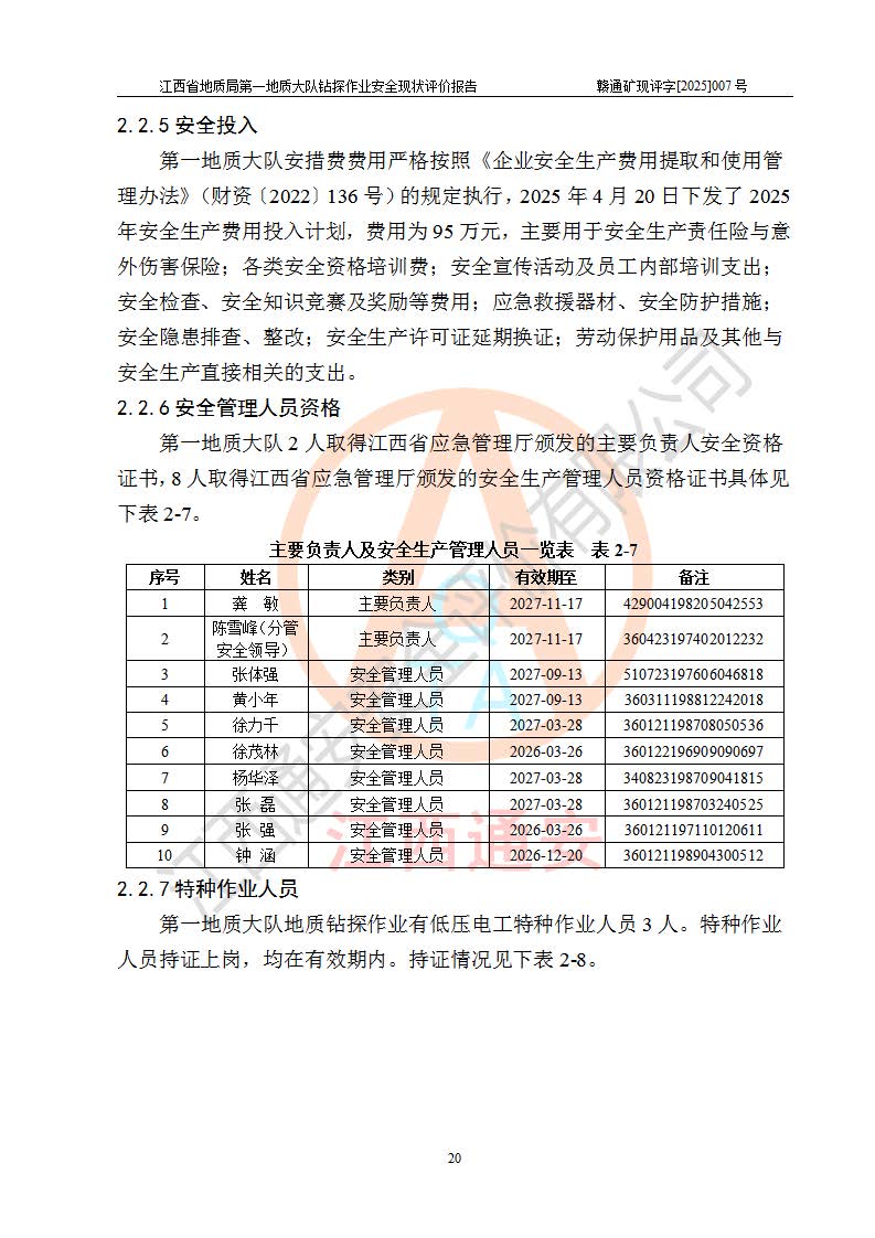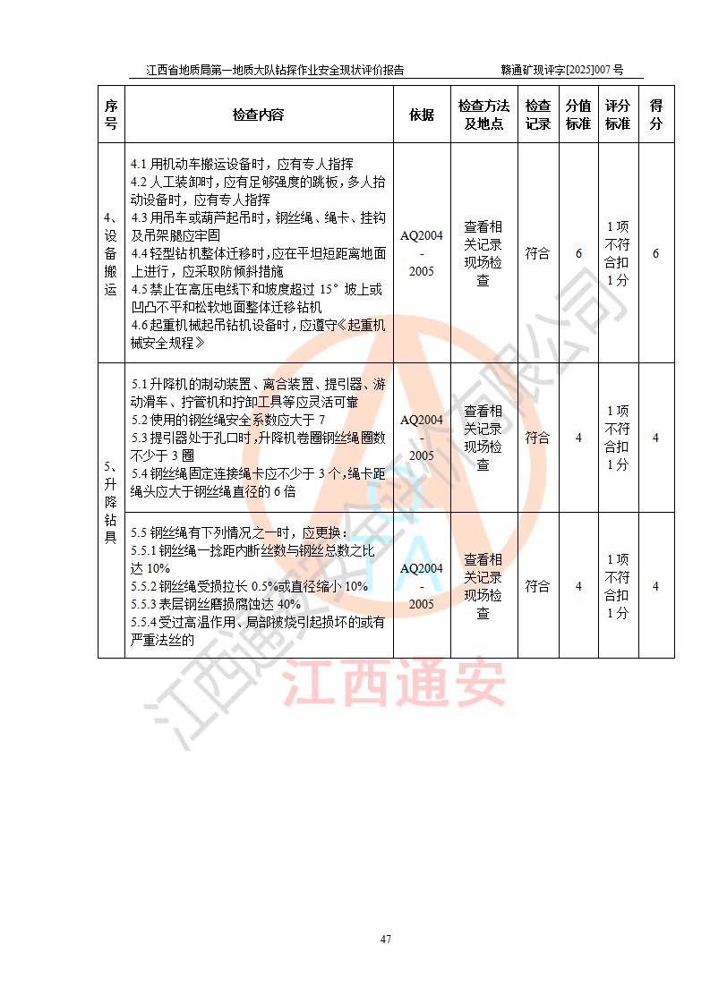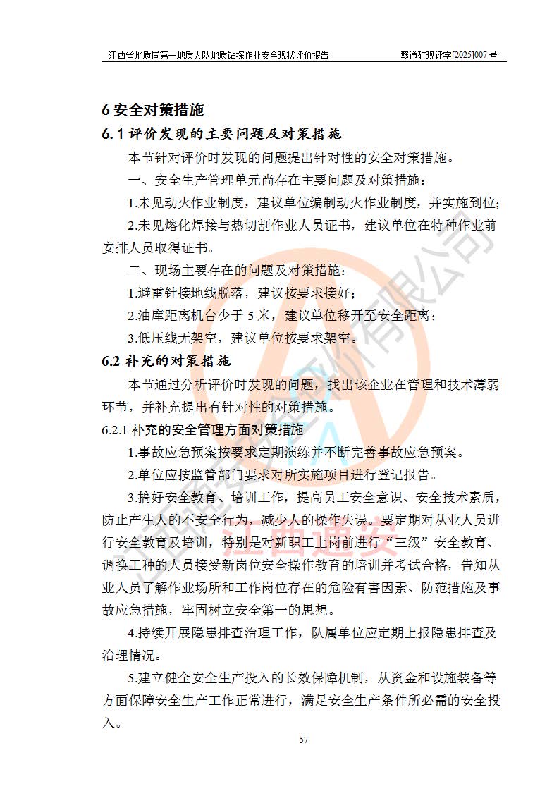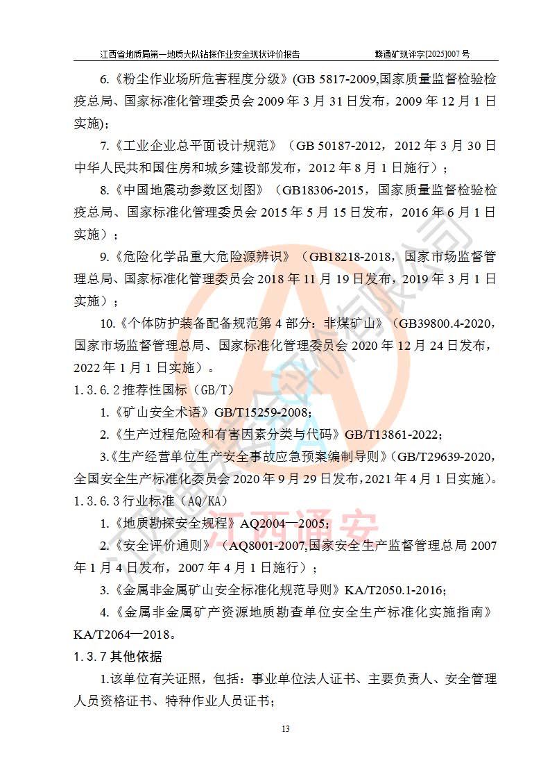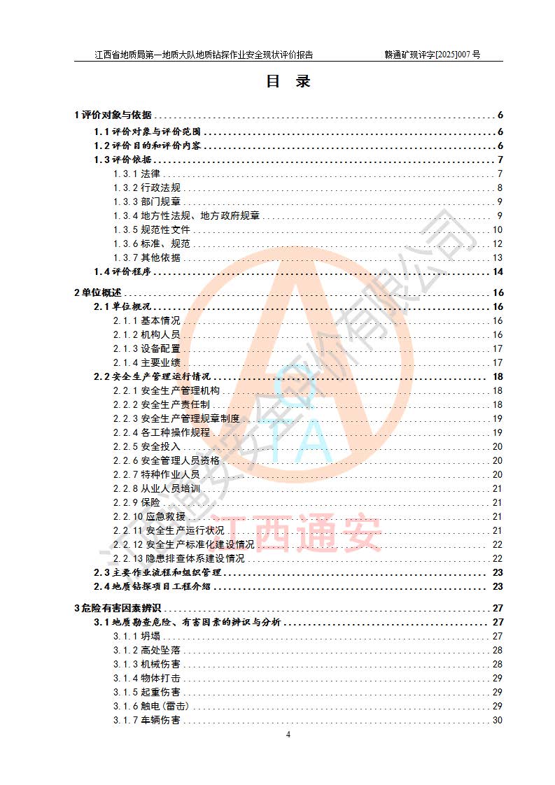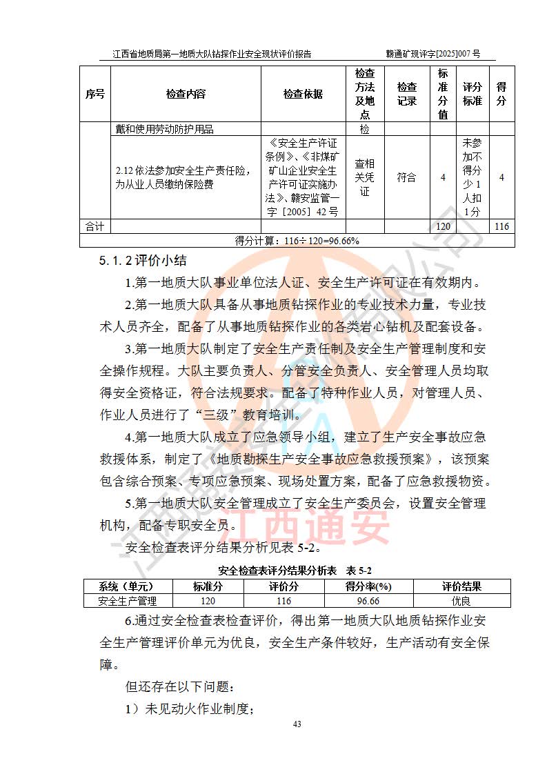 報告名稱 | 江西省地質(zhì)局**地質(zhì)大隊地質(zhì)鉆探作業(yè)安全現(xiàn)狀評價報告 | |||||