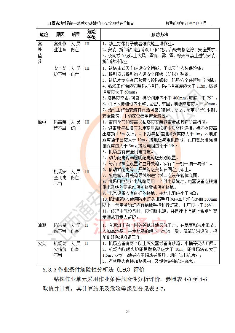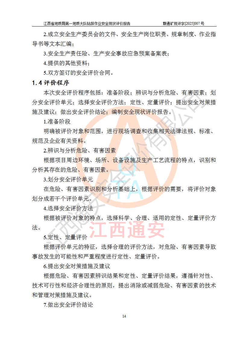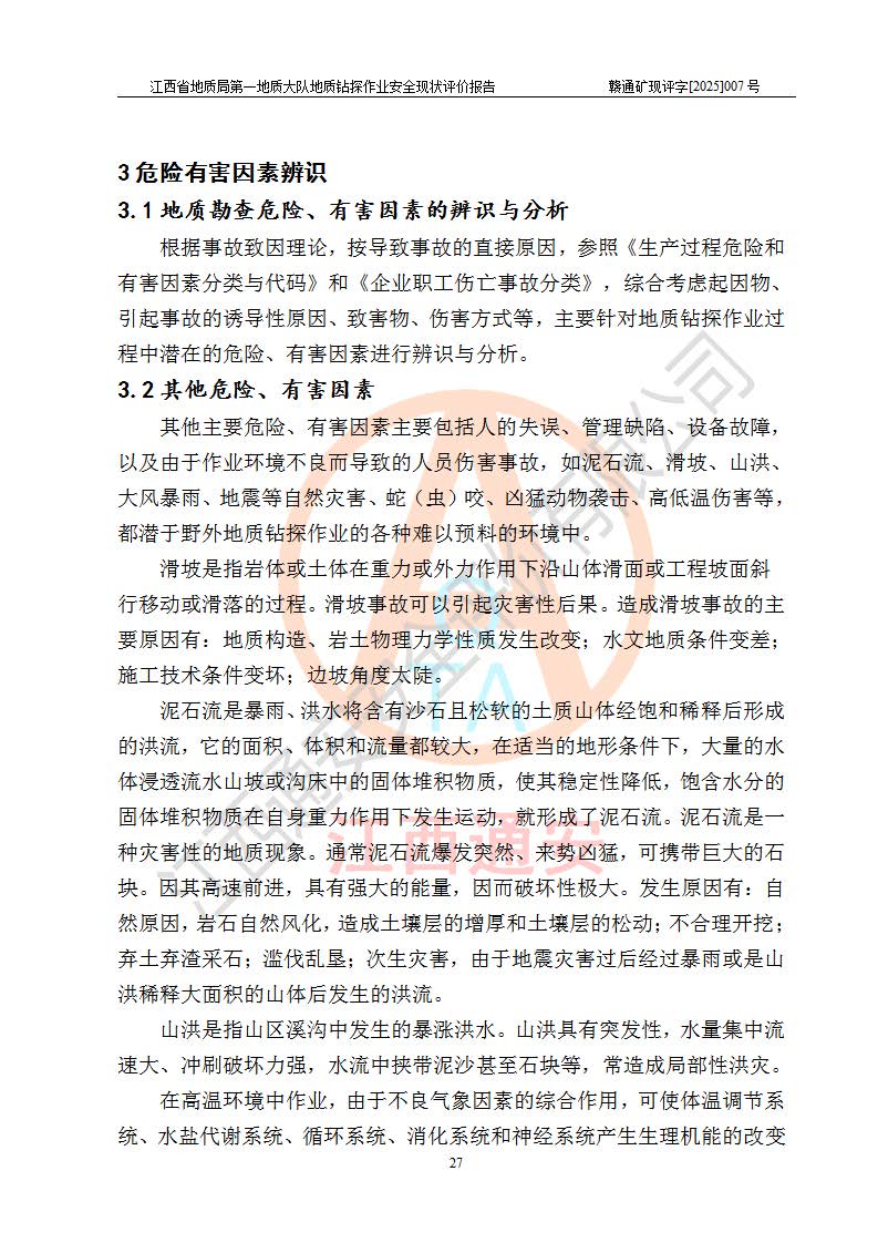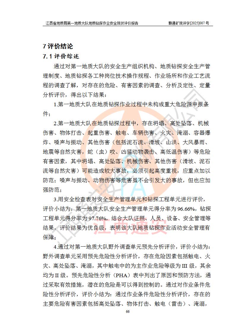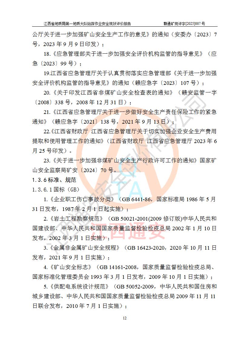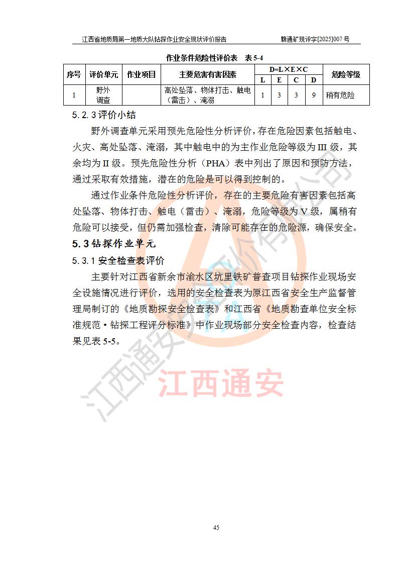 報告名稱 | 江西省地質(zhì)局**地質(zhì)大隊地質(zhì)鉆探作業(yè)安全現(xiàn)狀評價報告 | |||||