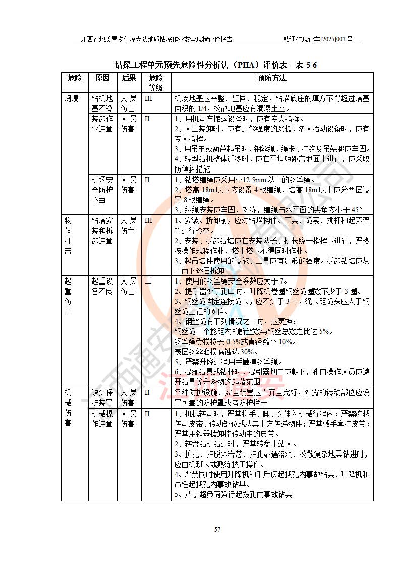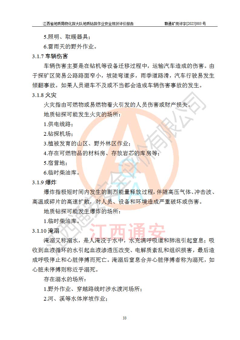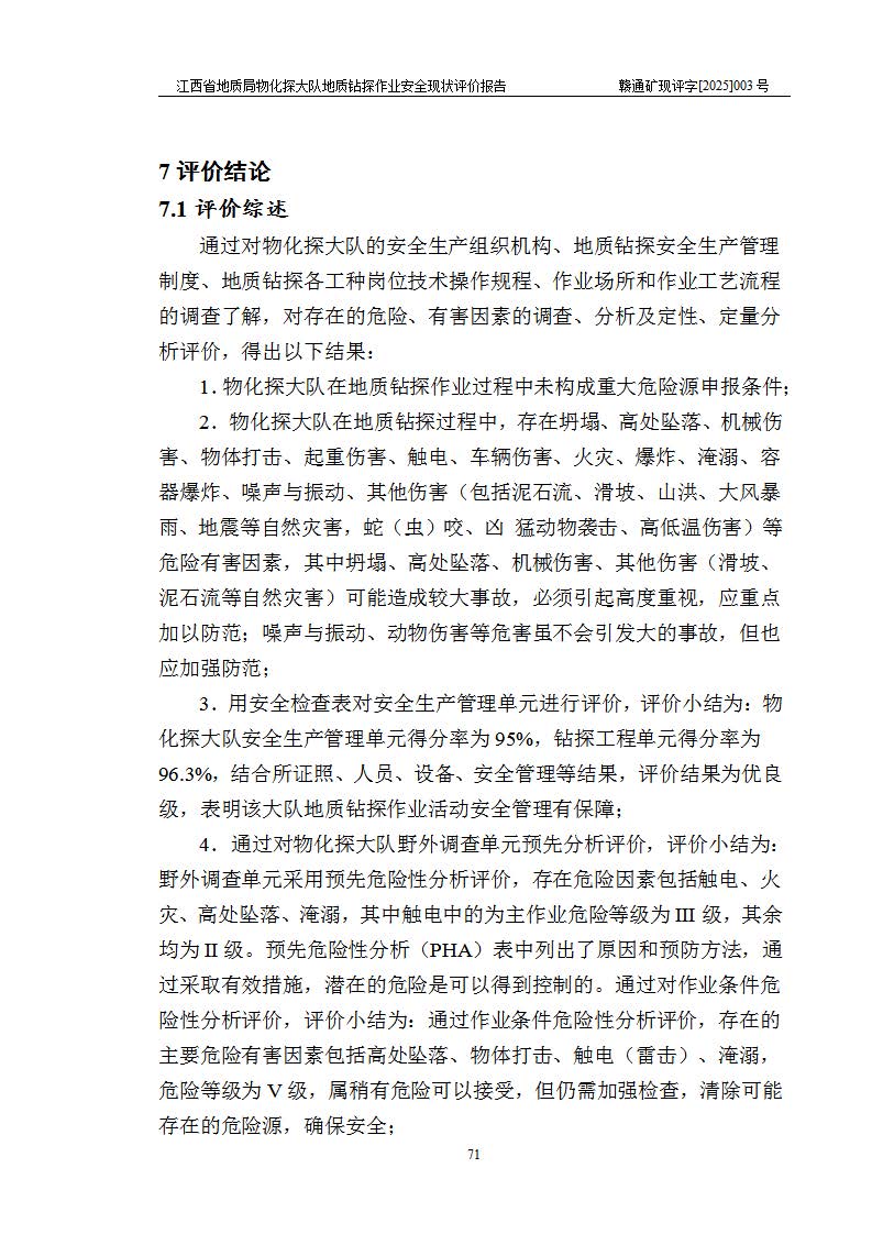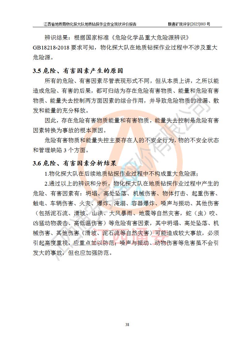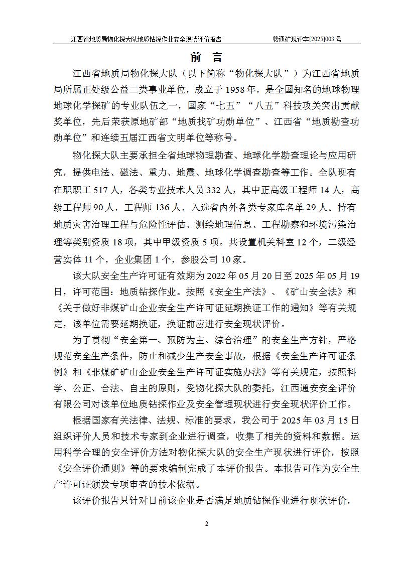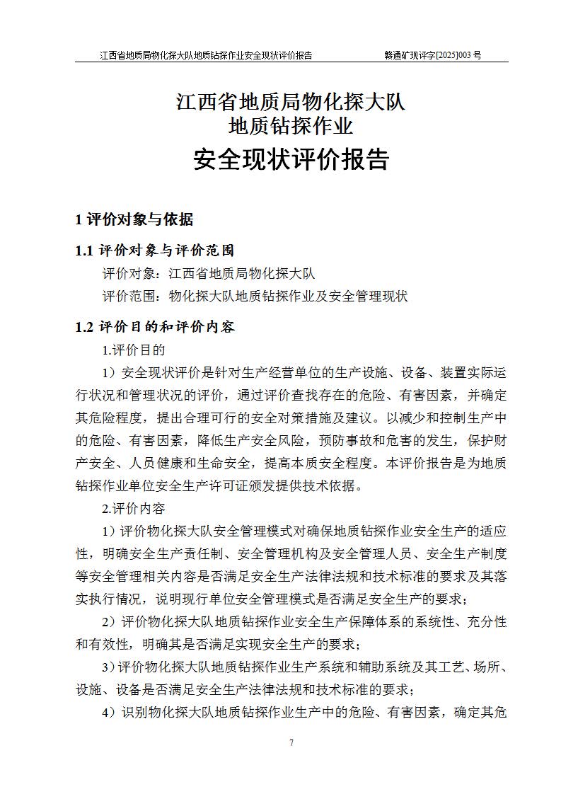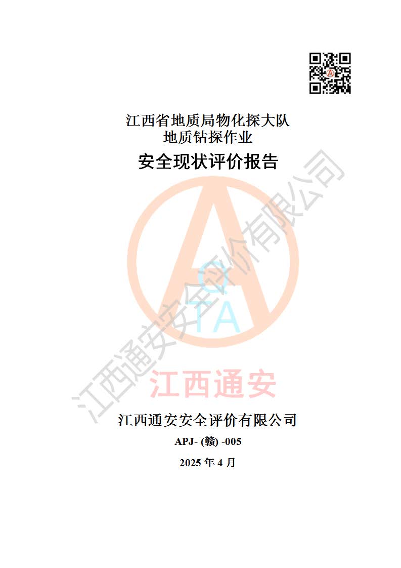 報告名稱 | 江西省地質(zhì)局物化探大隊地質(zhì)鉆探作業(yè)安全現(xiàn)狀評價報告 | |||||
