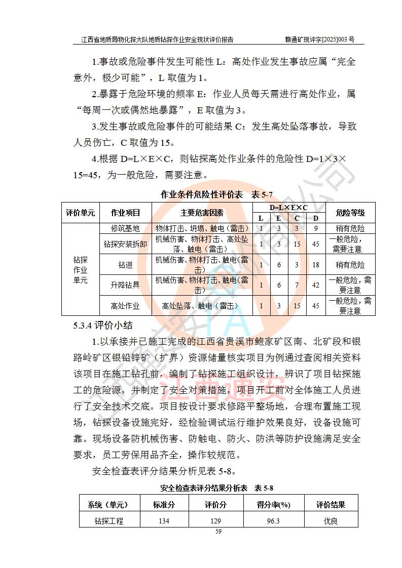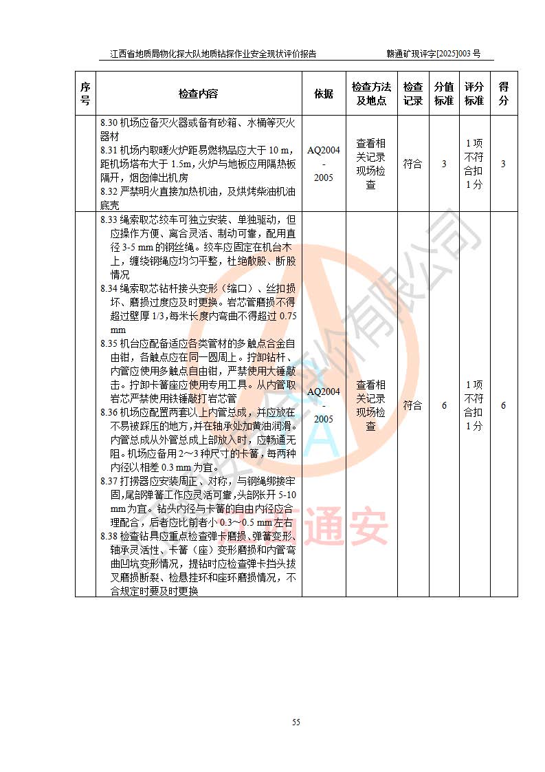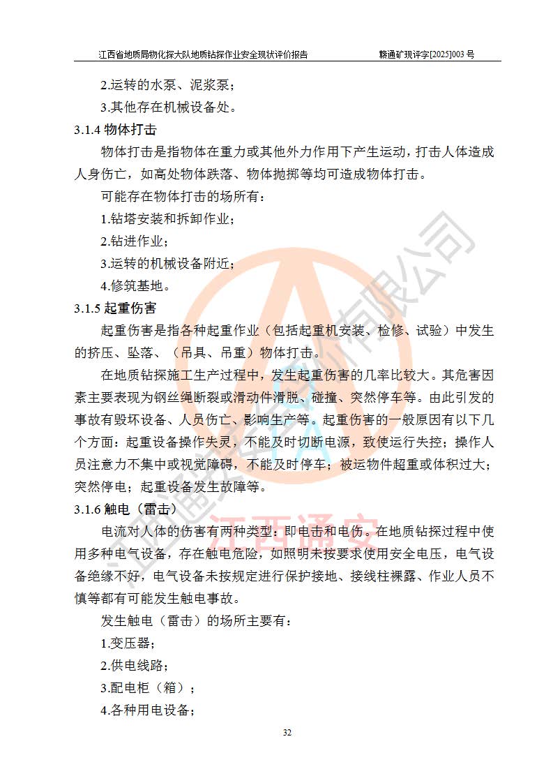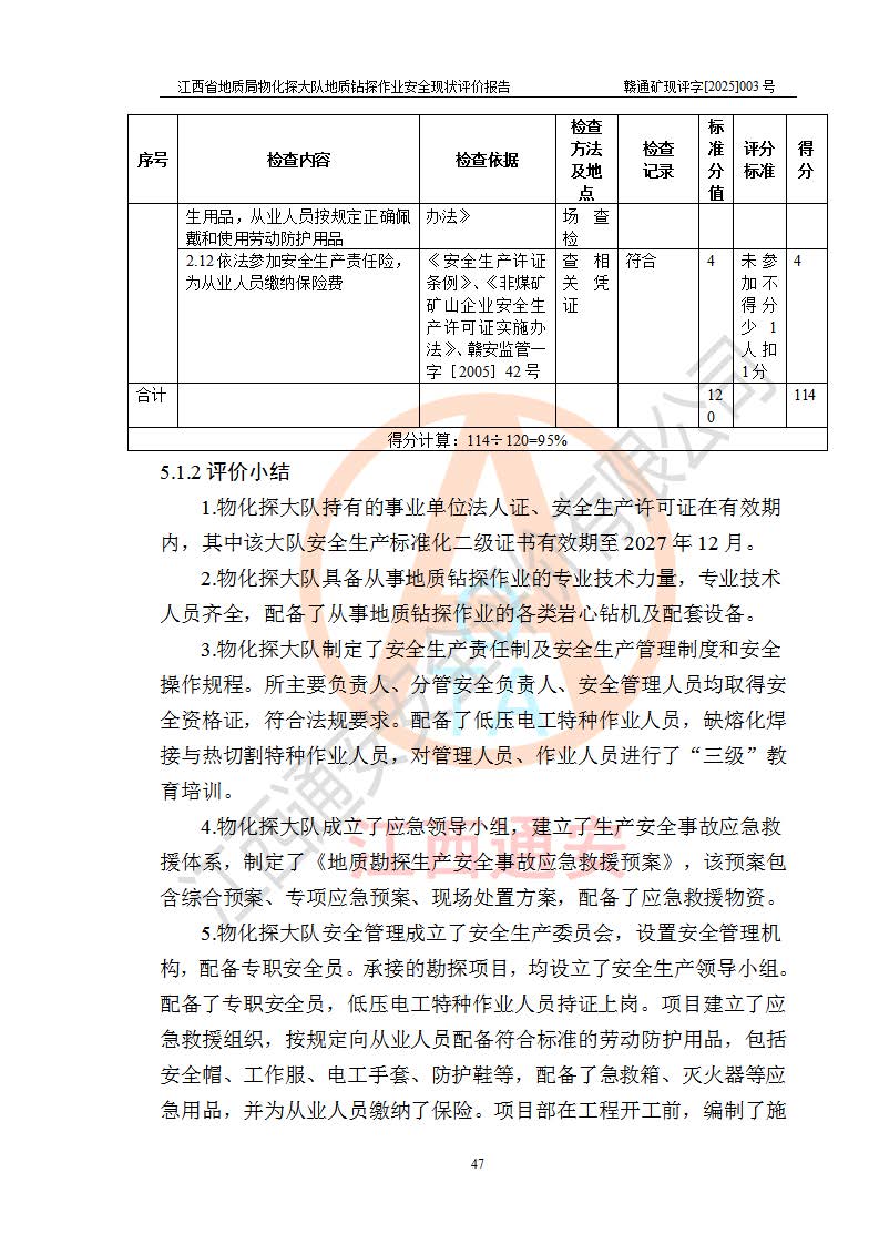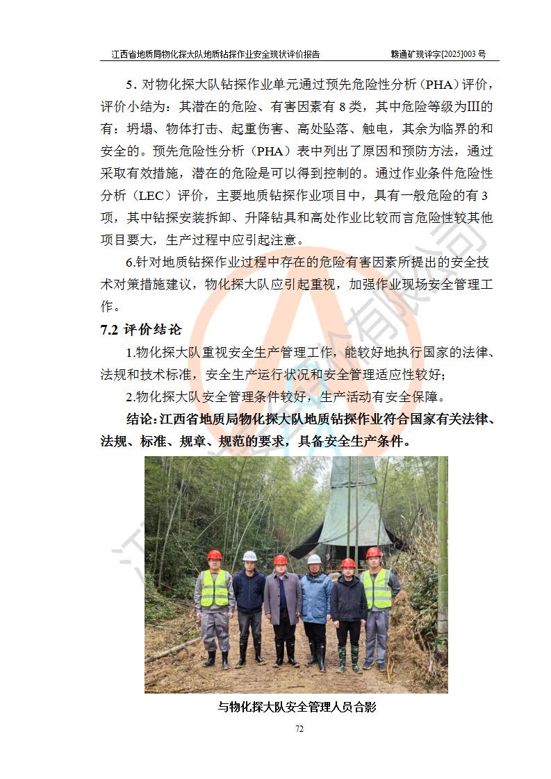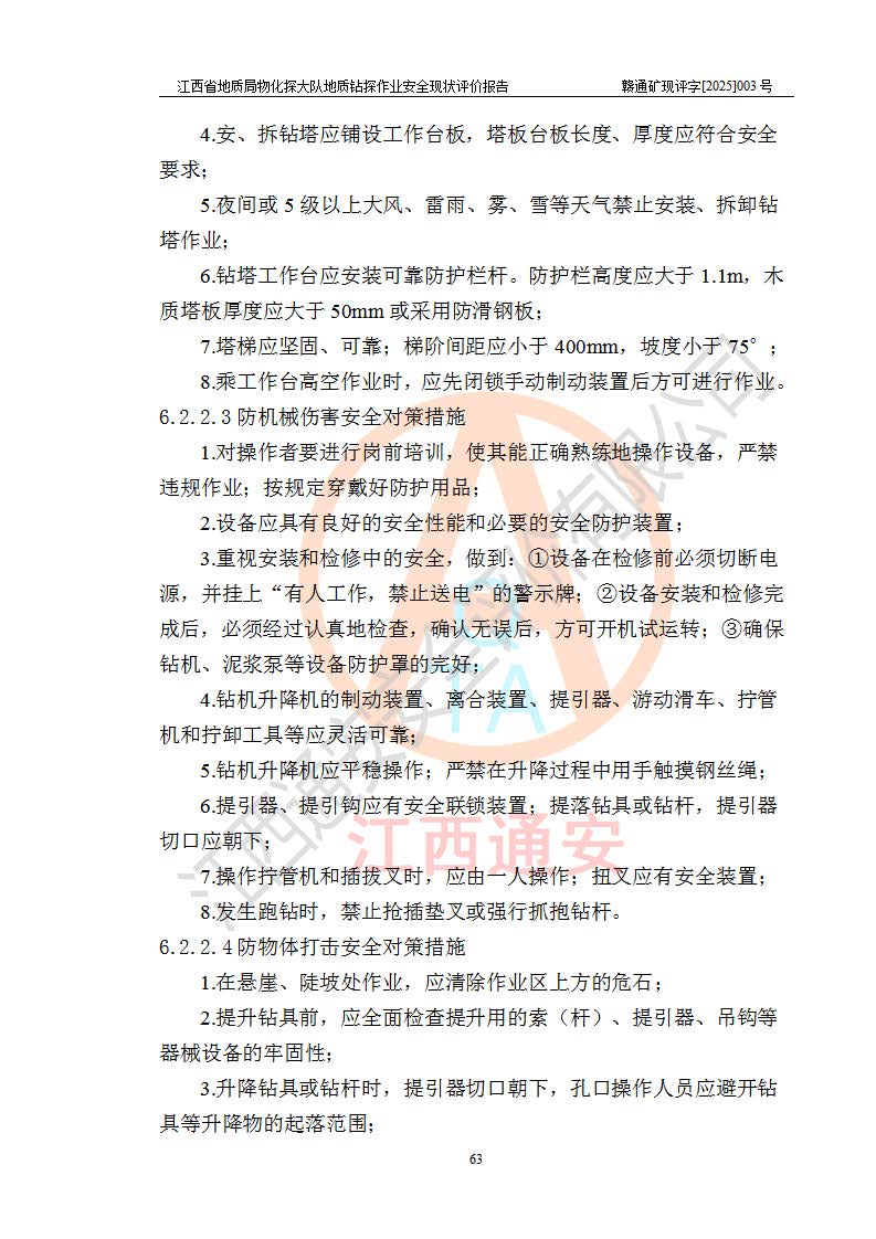 報告名稱 | 江西省地質(zhì)局物化探大隊地質(zhì)鉆探作業(yè)安全現(xiàn)狀評價報告 | |||||
