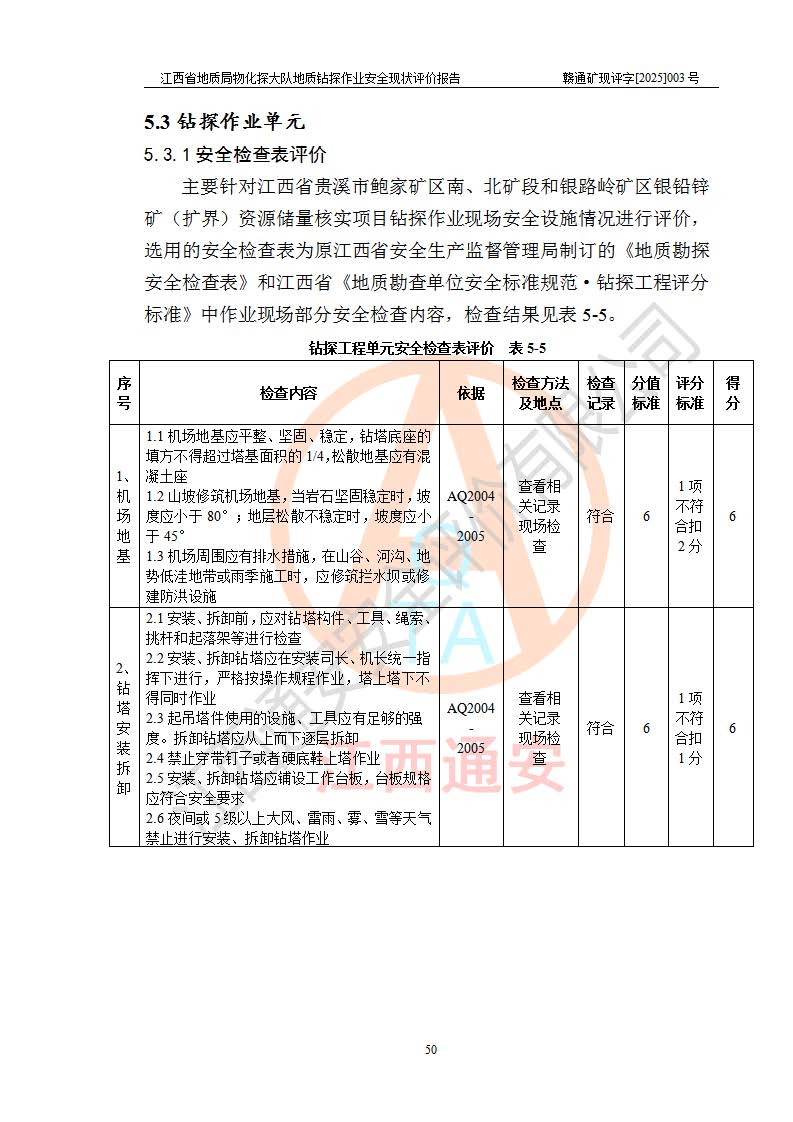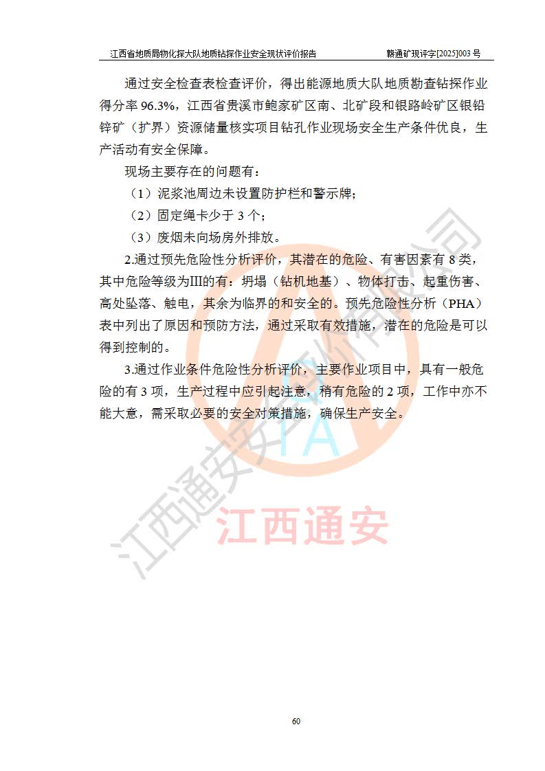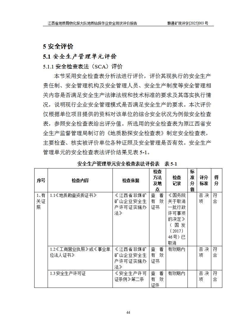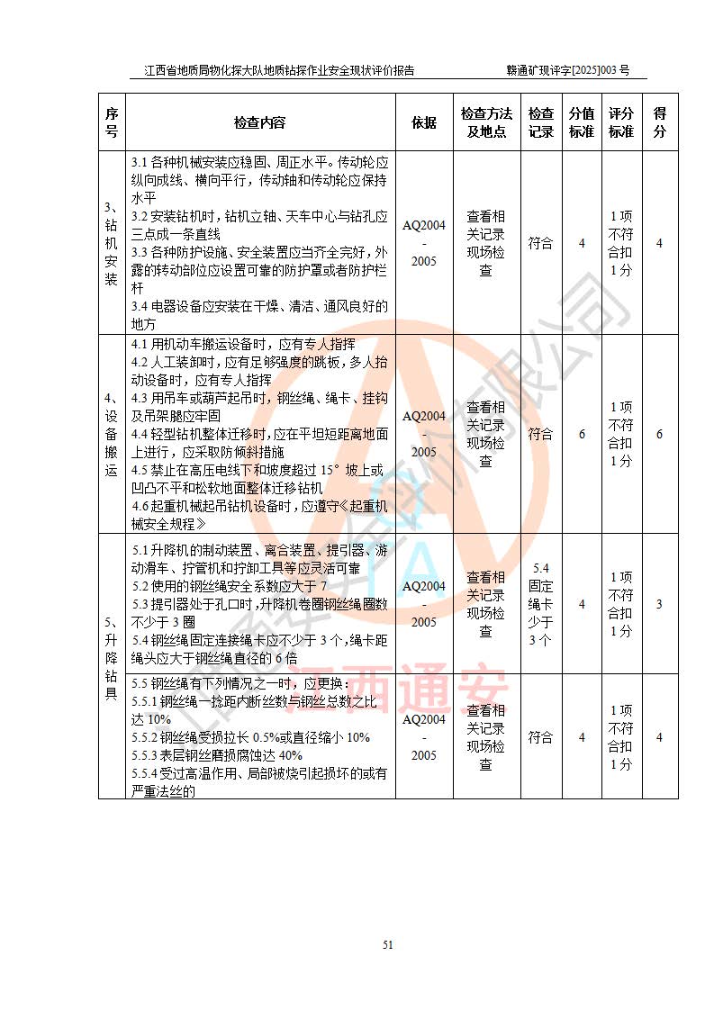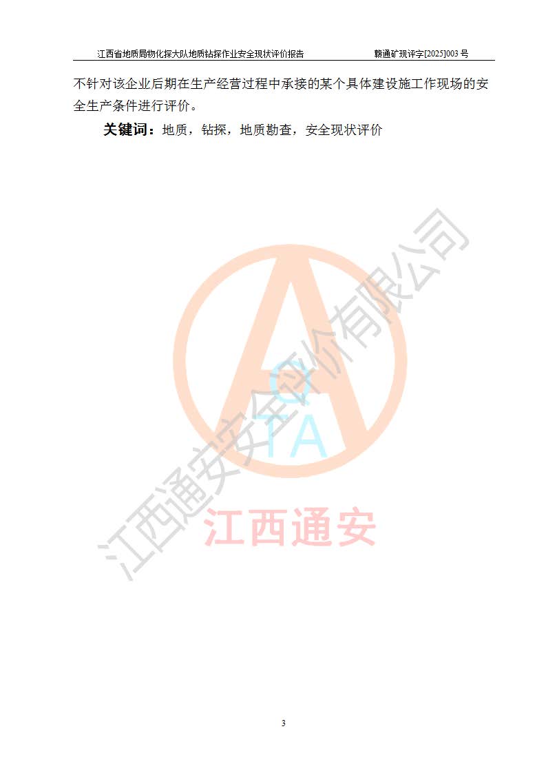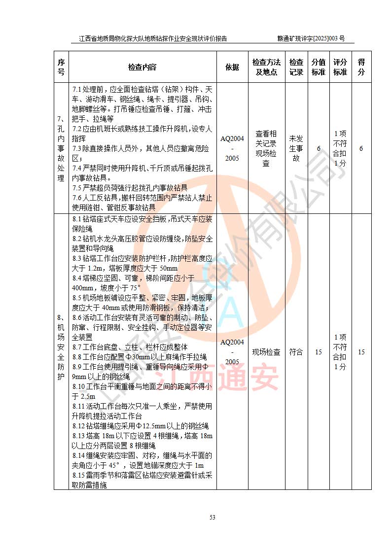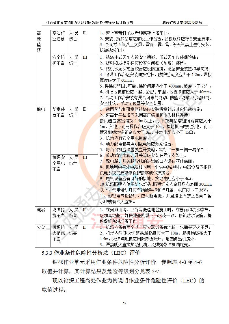 報告名稱 | 江西省地質(zhì)局物化探大隊地質(zhì)鉆探作業(yè)安全現(xiàn)狀評價報告 | |||||
