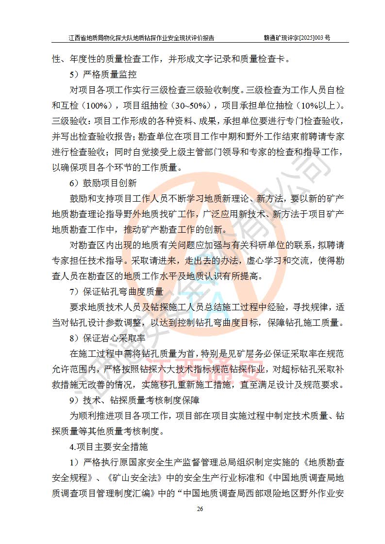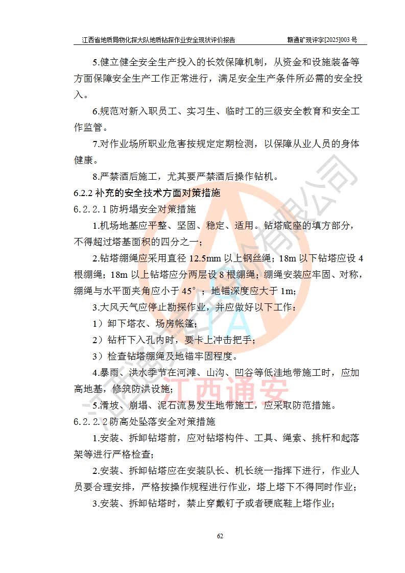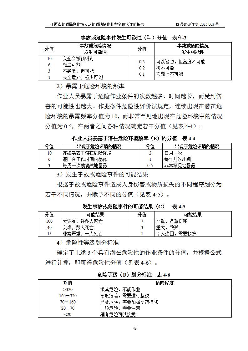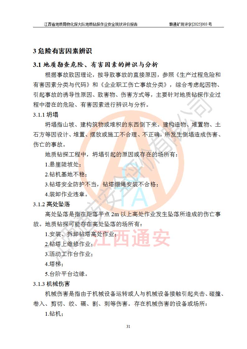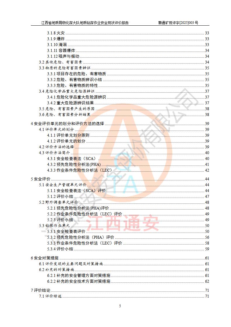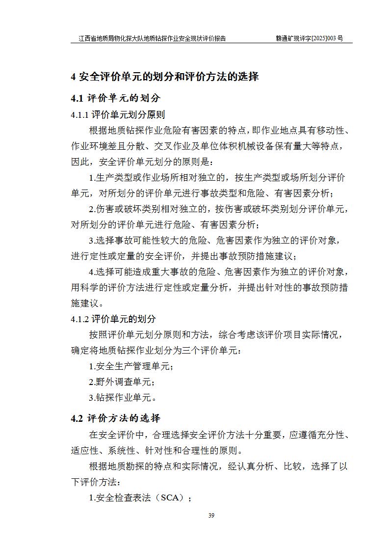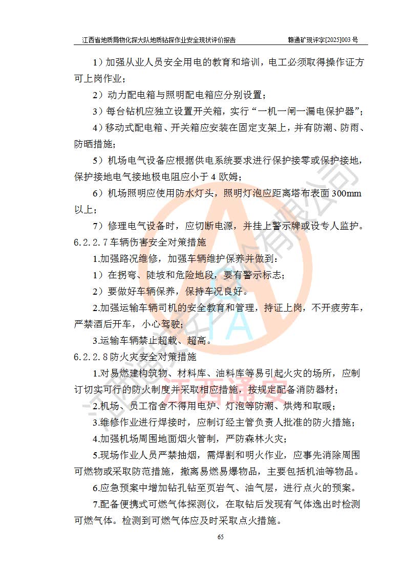 報告名稱 | 江西省地質(zhì)局物化探大隊地質(zhì)鉆探作業(yè)安全現(xiàn)狀評價報告 | |||||