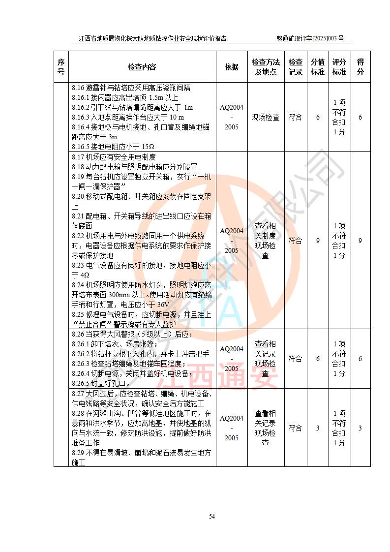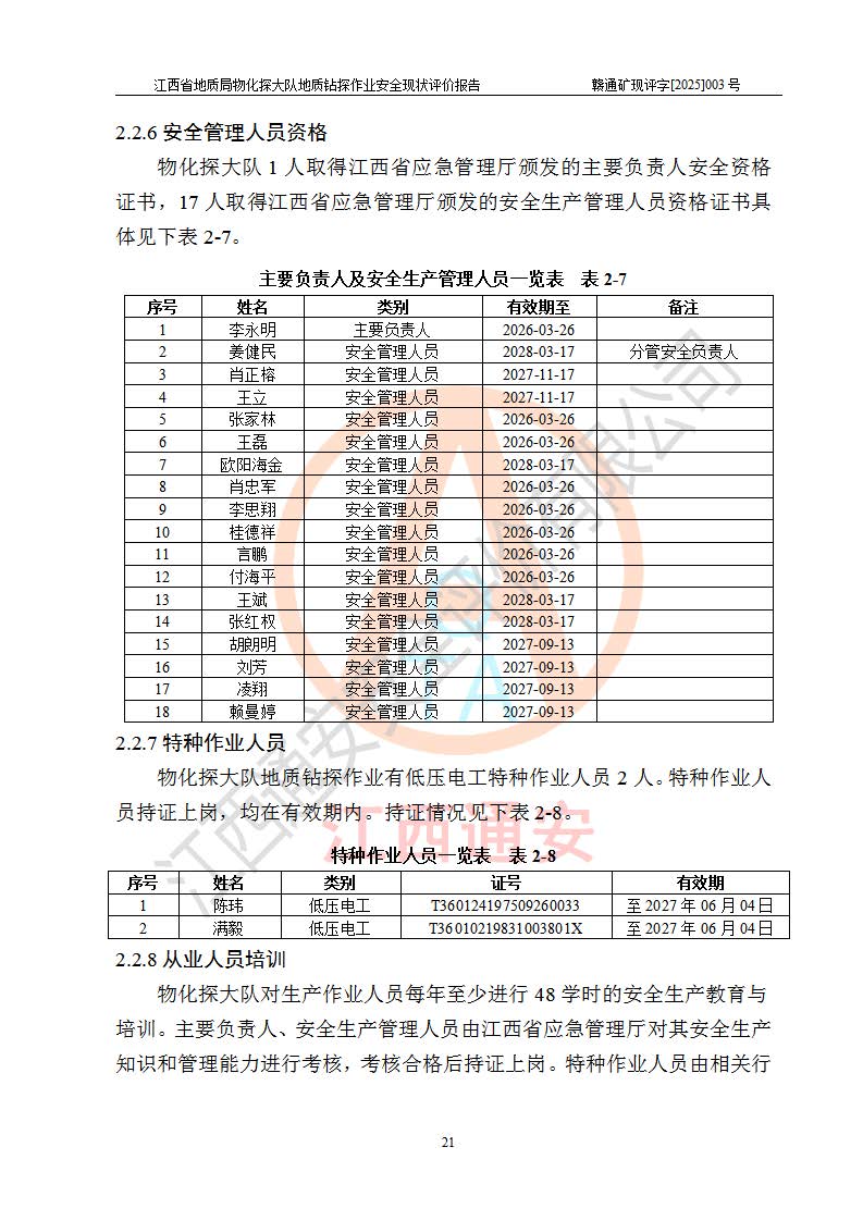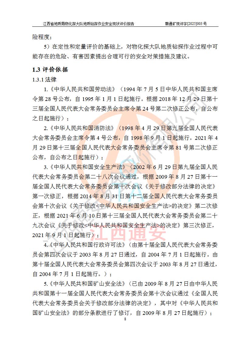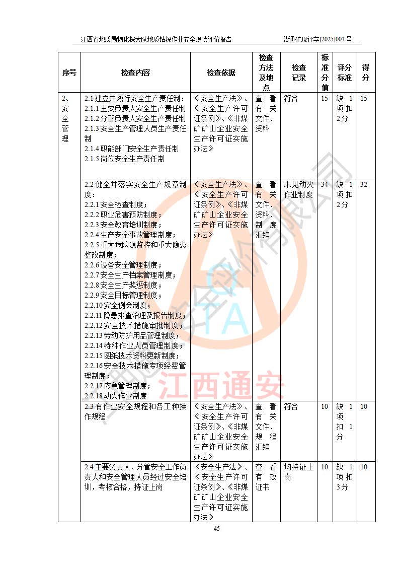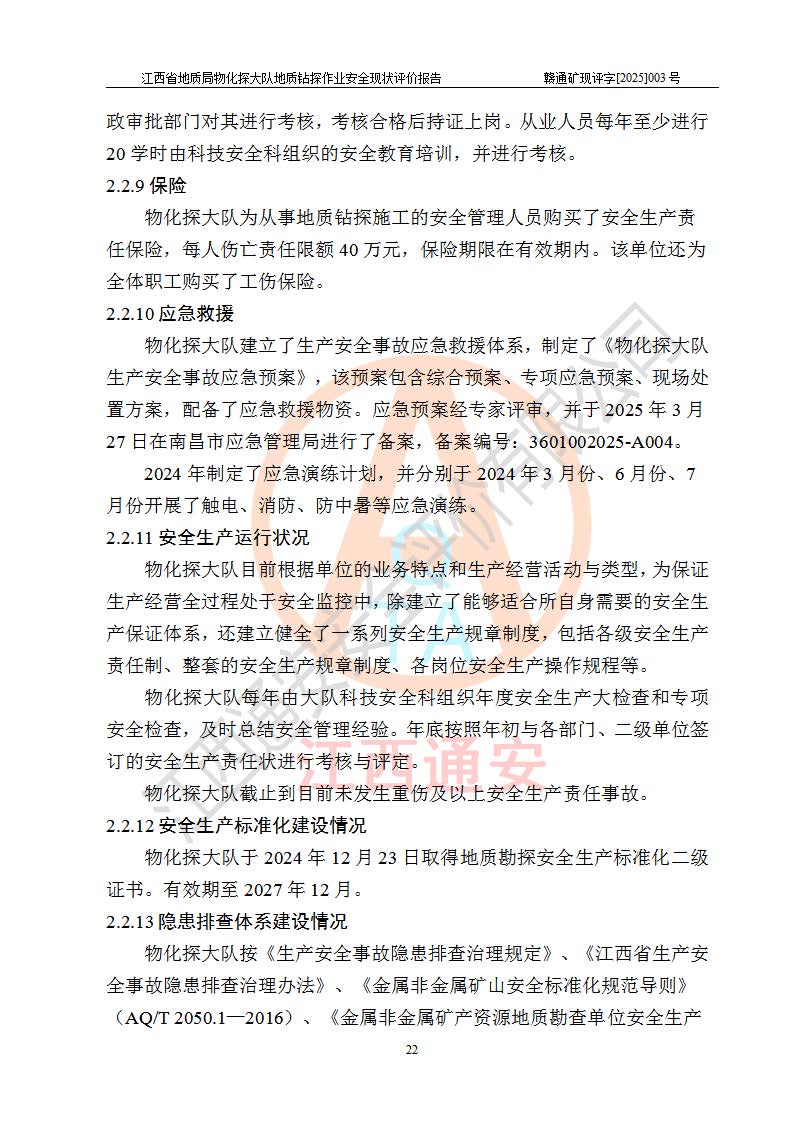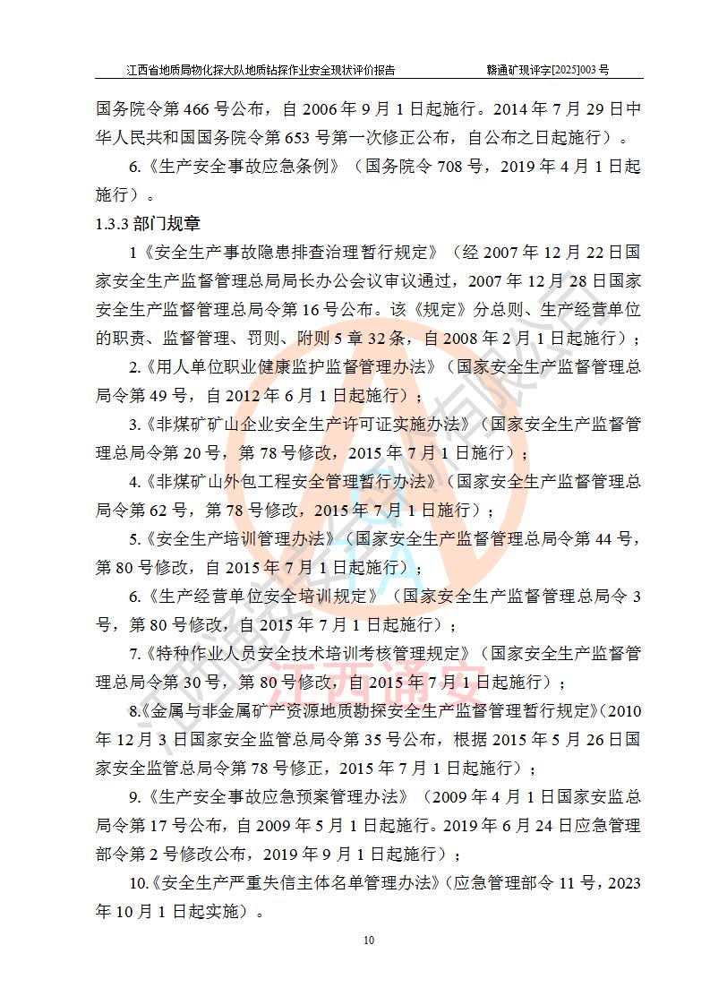 報告名稱 | 江西省地質(zhì)局物化探大隊地質(zhì)鉆探作業(yè)安全現(xiàn)狀評價報告 | |||||