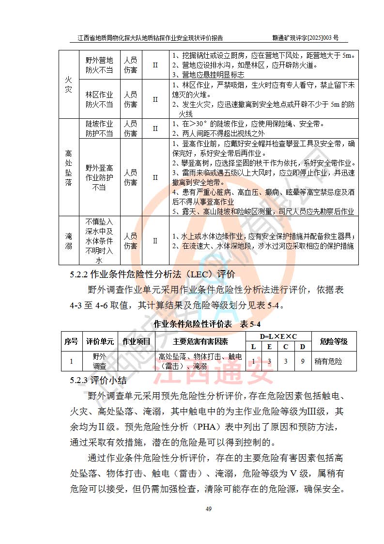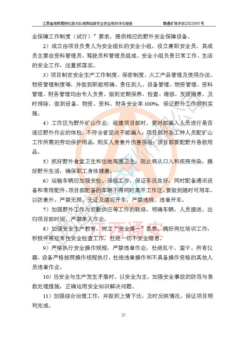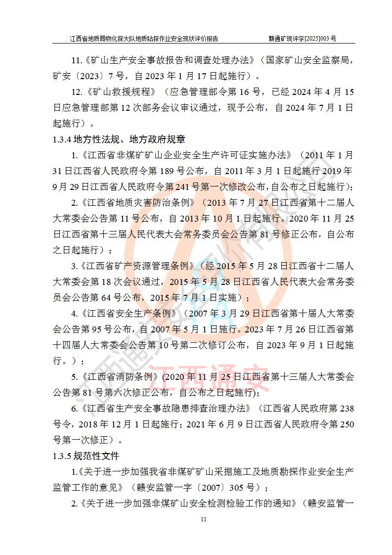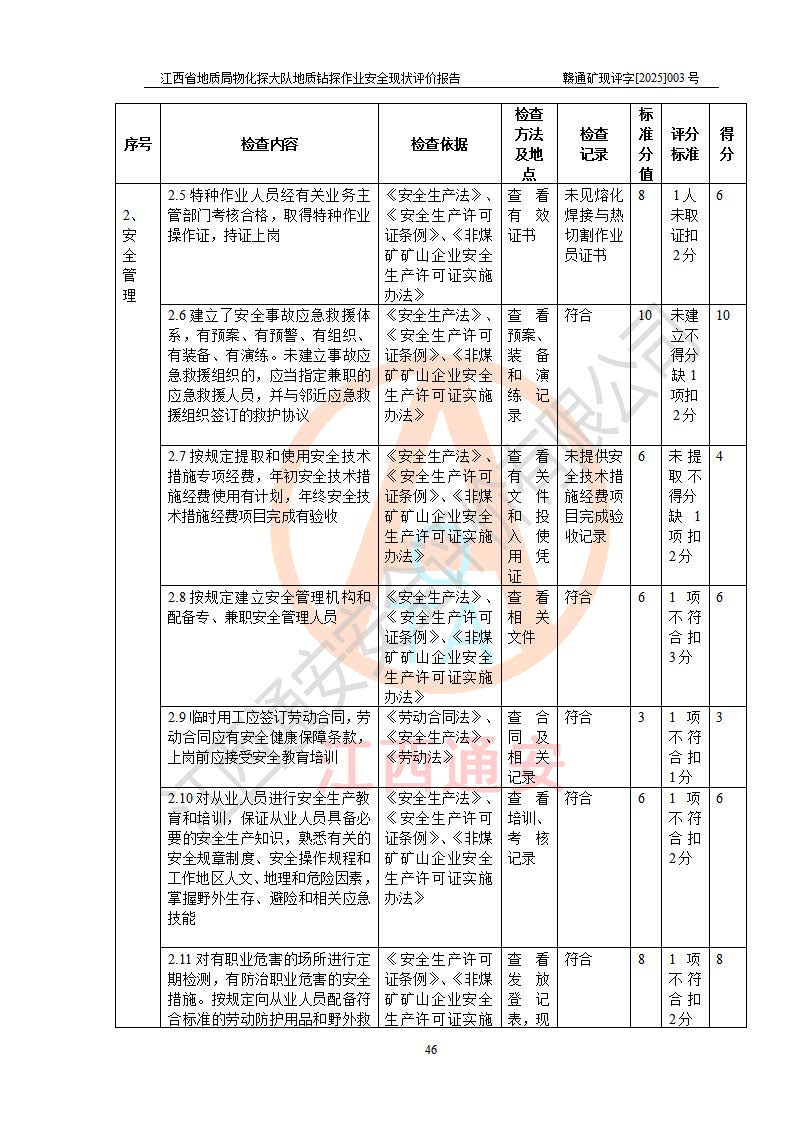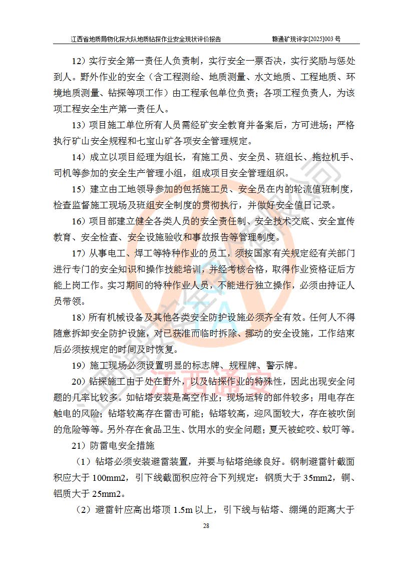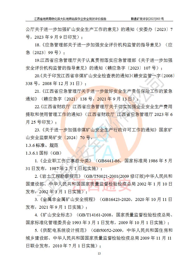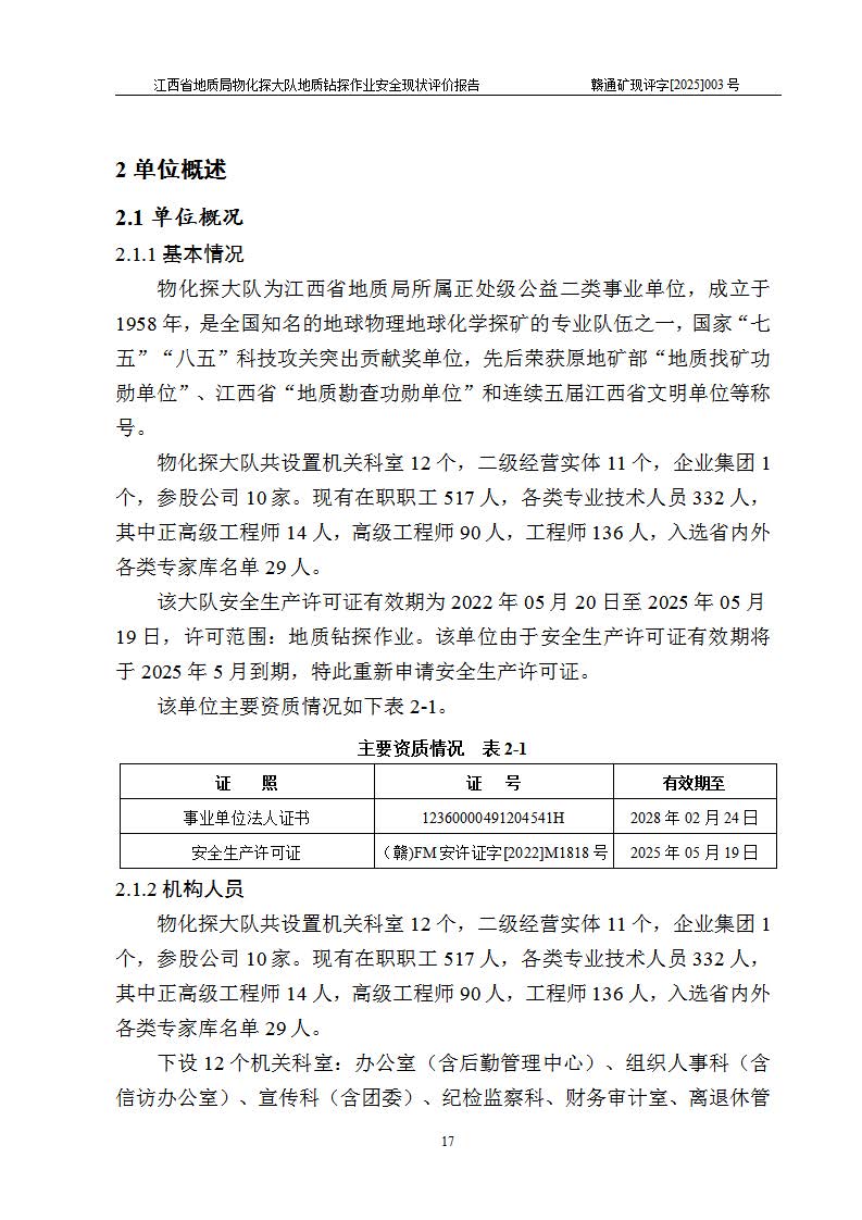 報告名稱 | 江西省地質(zhì)局物化探大隊地質(zhì)鉆探作業(yè)安全現(xiàn)狀評價報告 | |||||