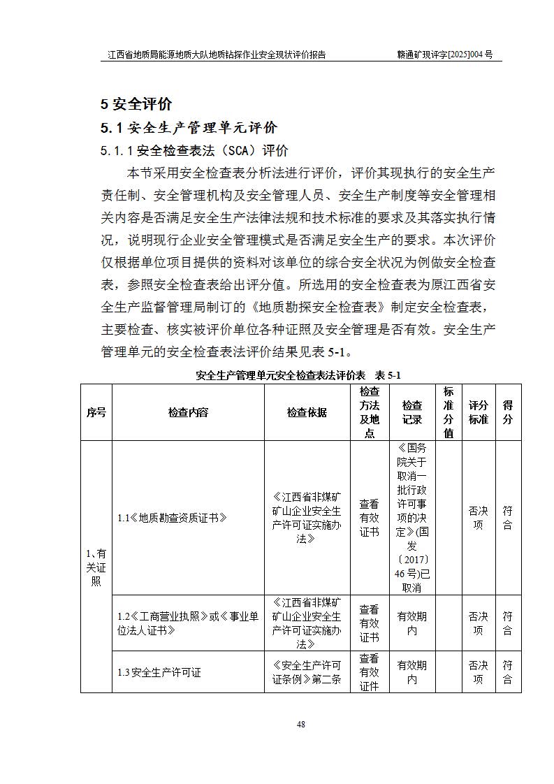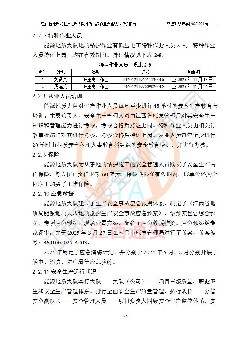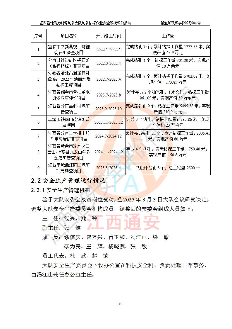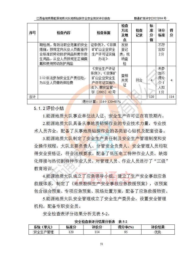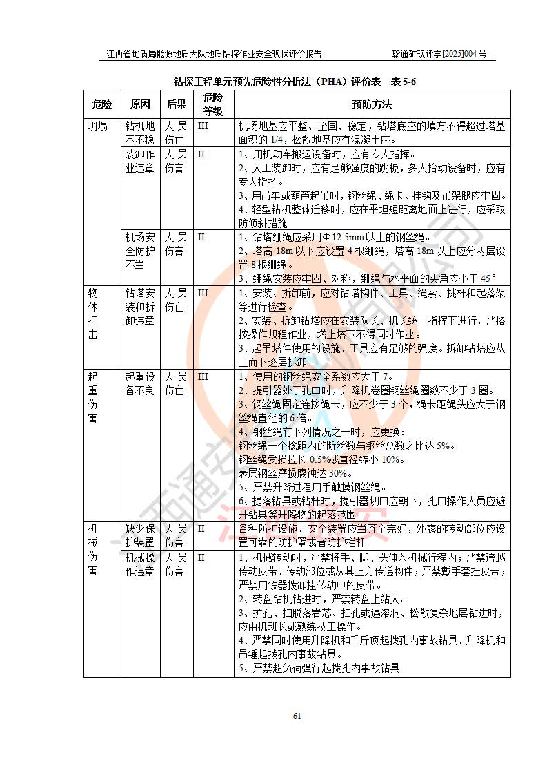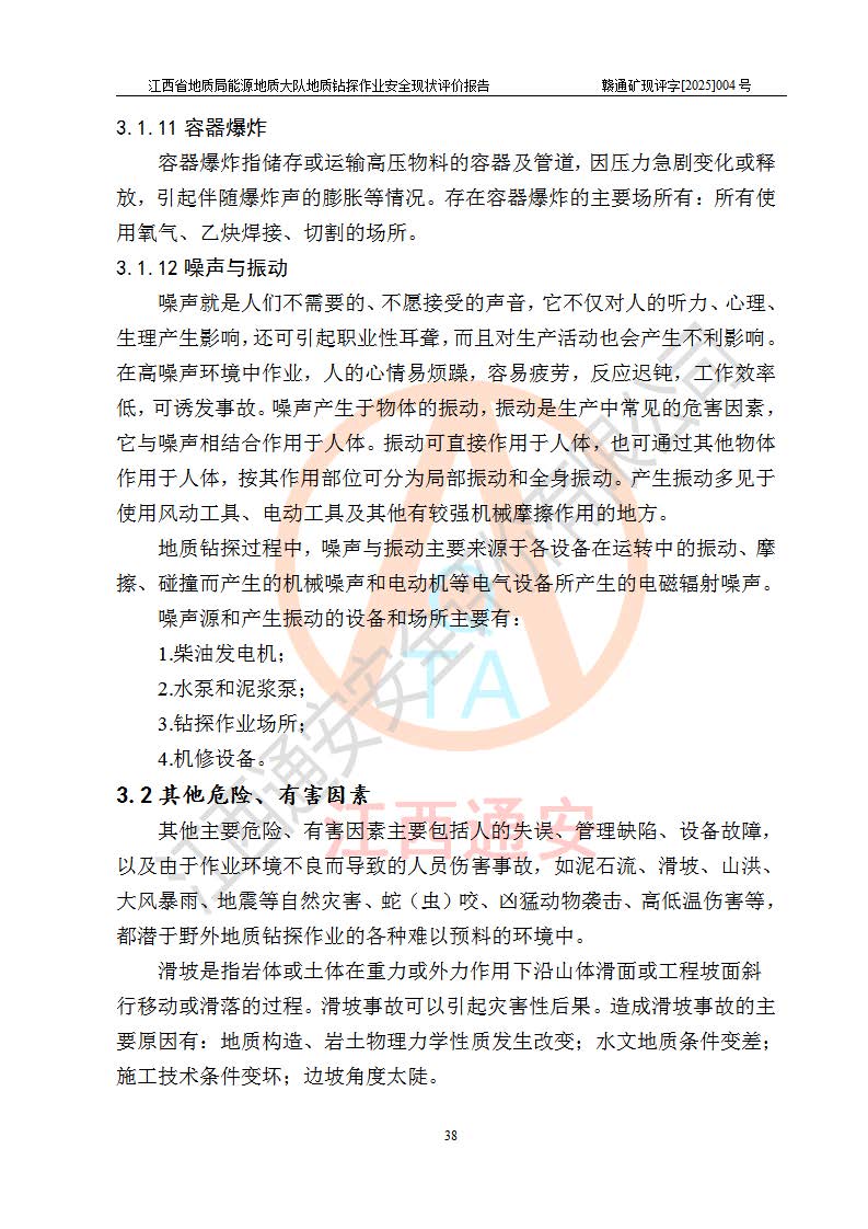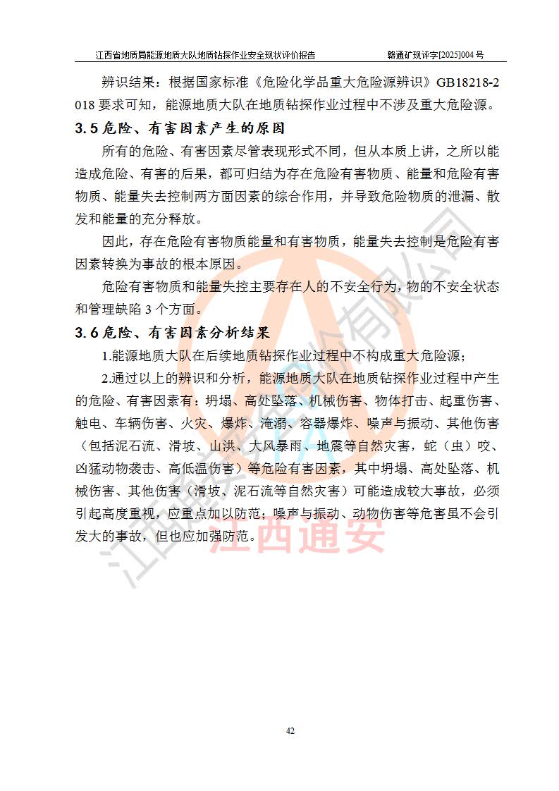 報告名稱 | 江西省地質(zhì)局能源地質(zhì)大隊(duì)地質(zhì)鉆探作業(yè)安全現(xiàn)狀評價報告 | |||||