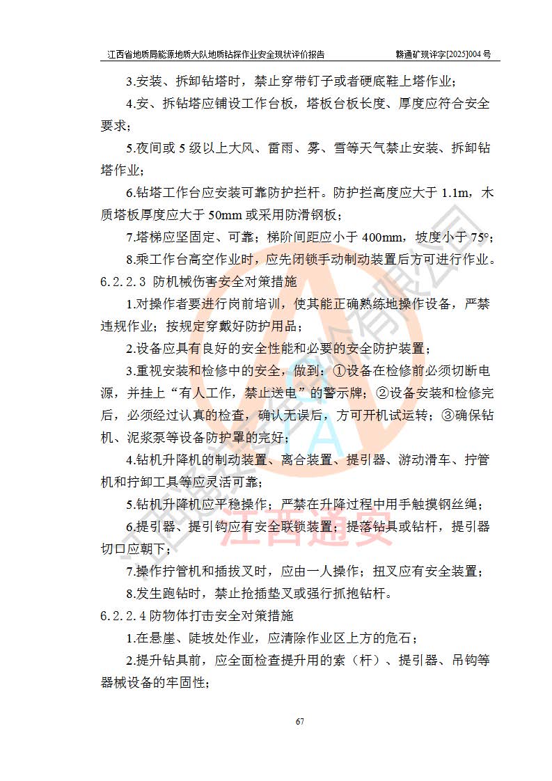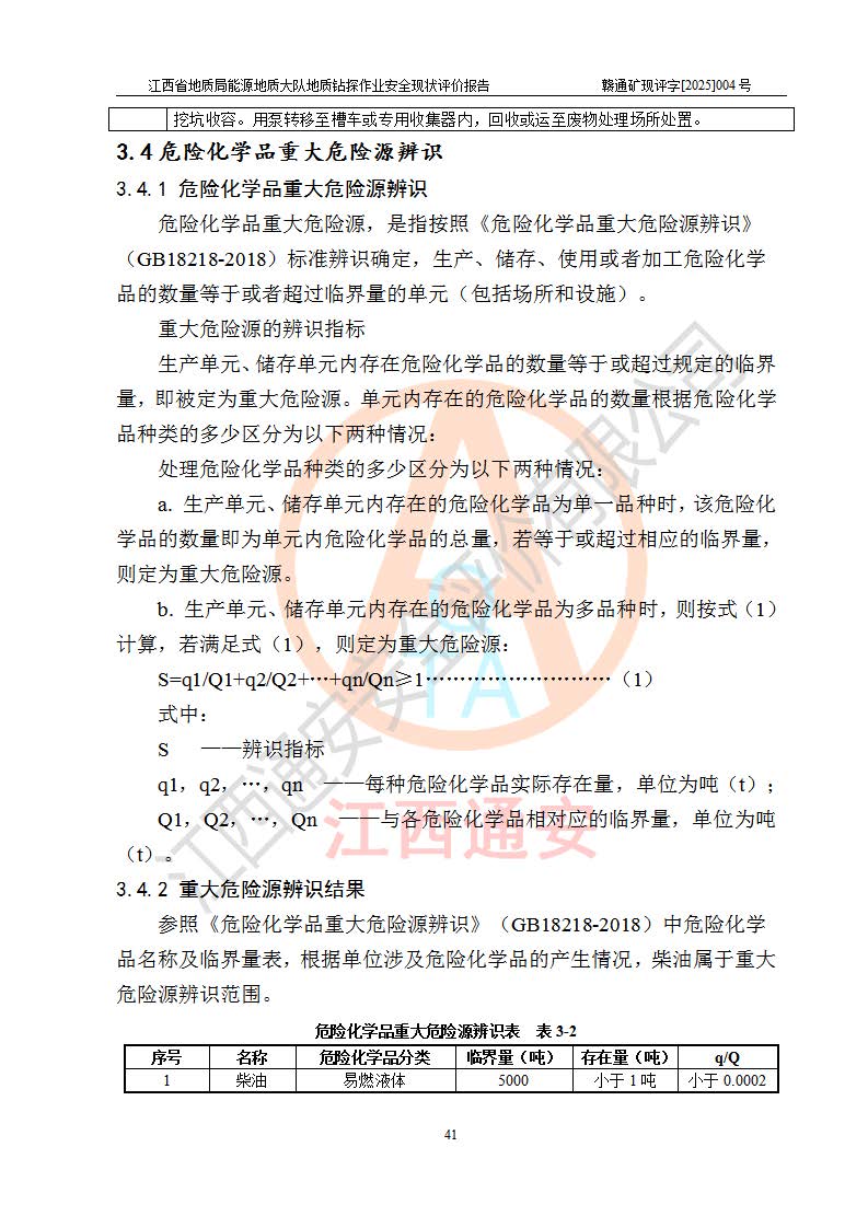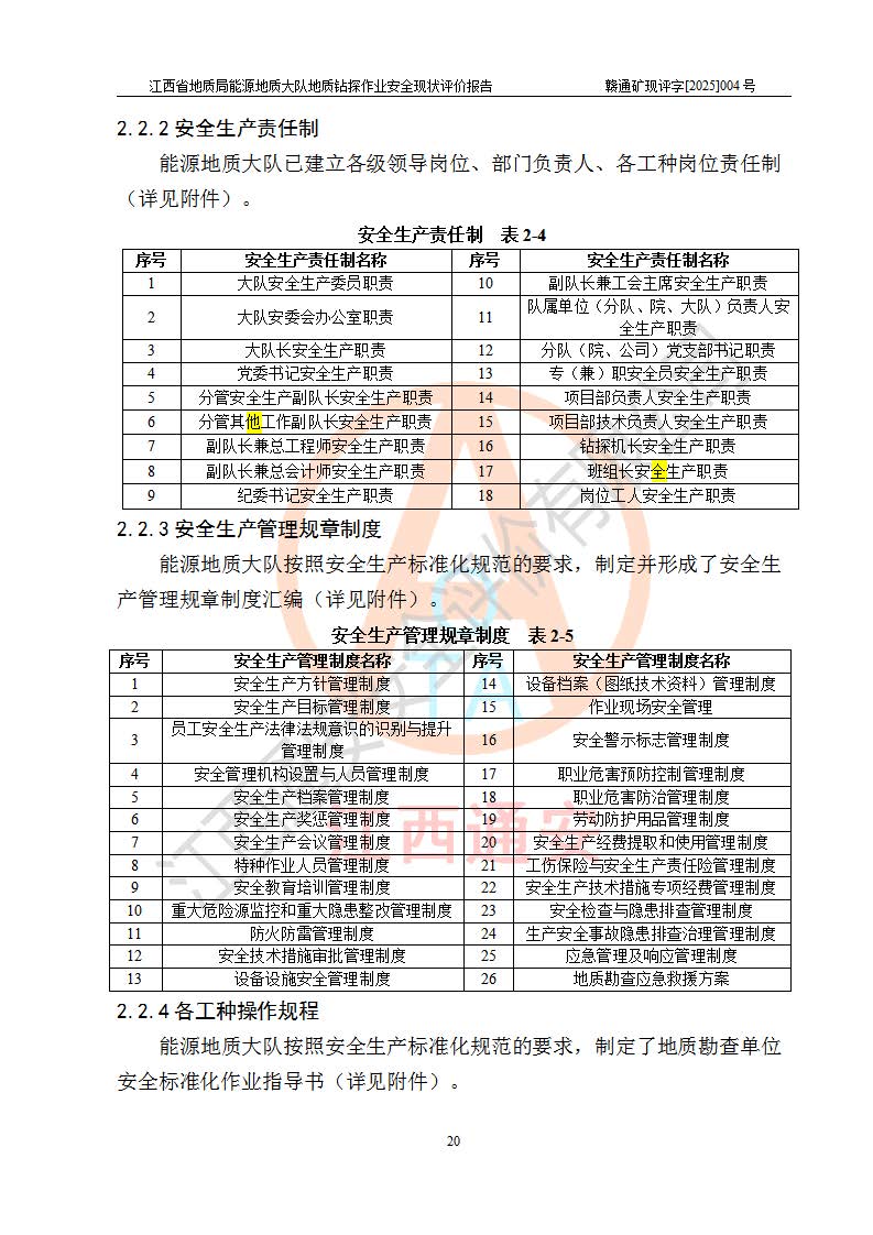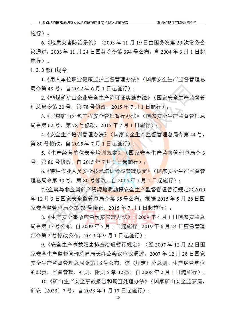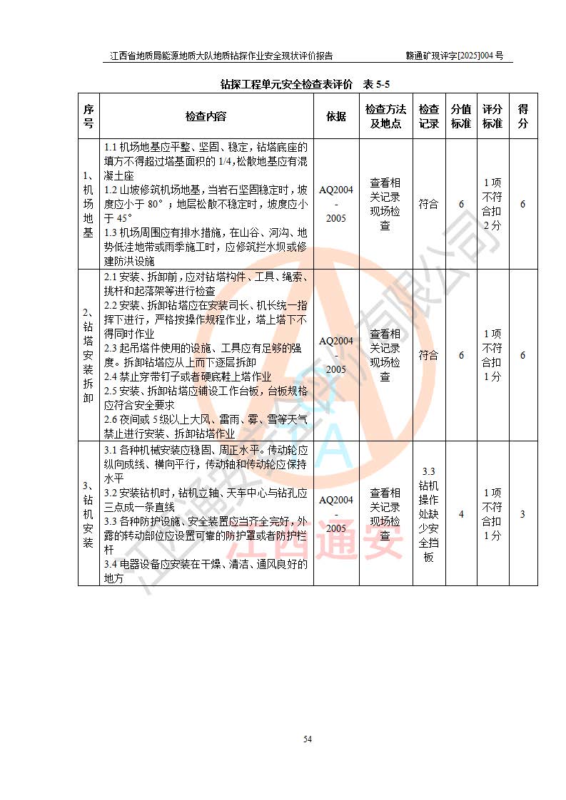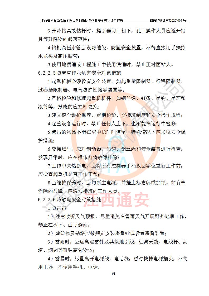 報告名稱 | 江西省地質(zhì)局能源地質(zhì)大隊(duì)地質(zhì)鉆探作業(yè)安全現(xiàn)狀評價報告 | |||||