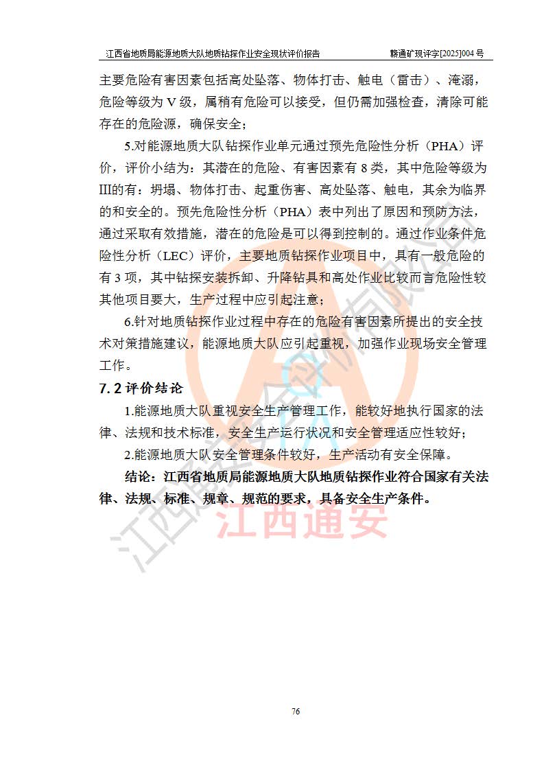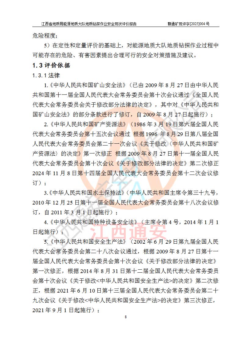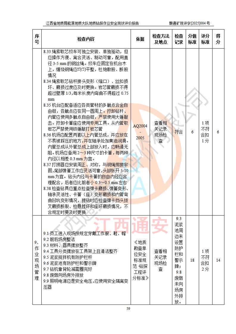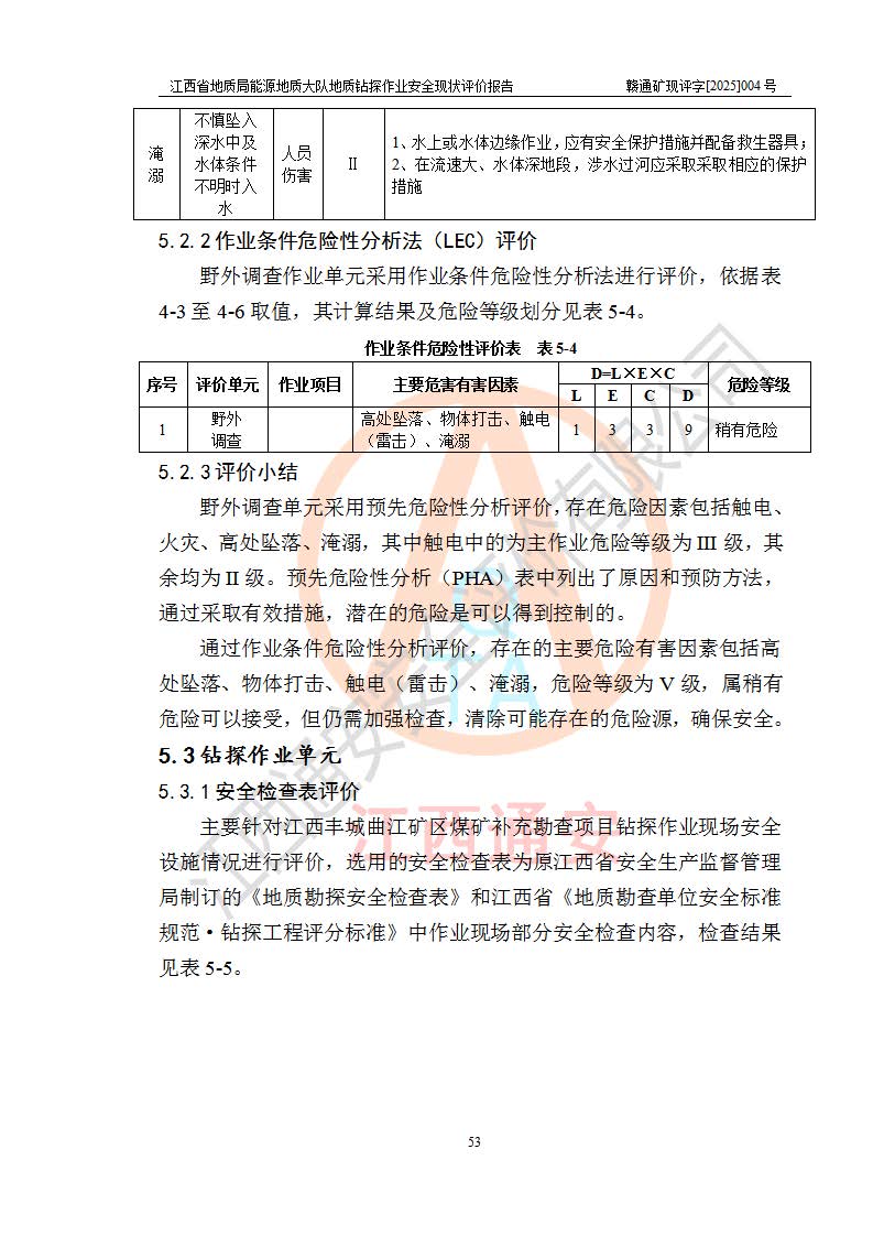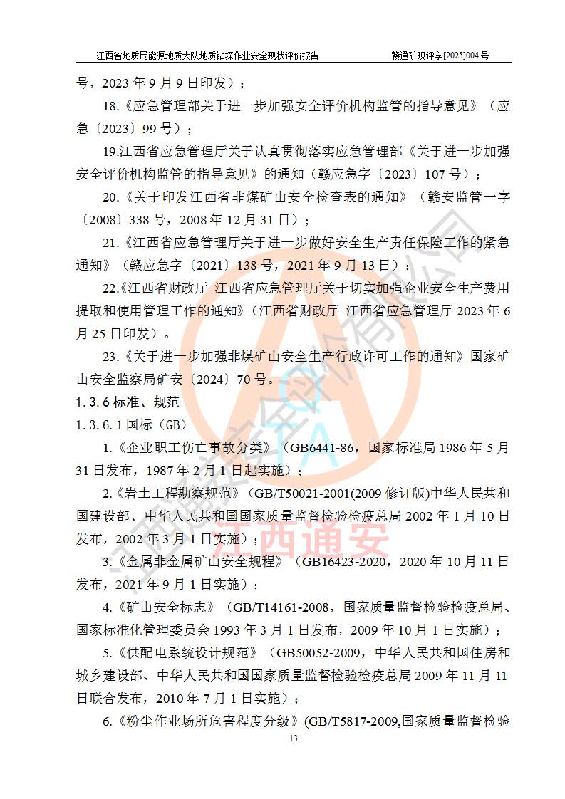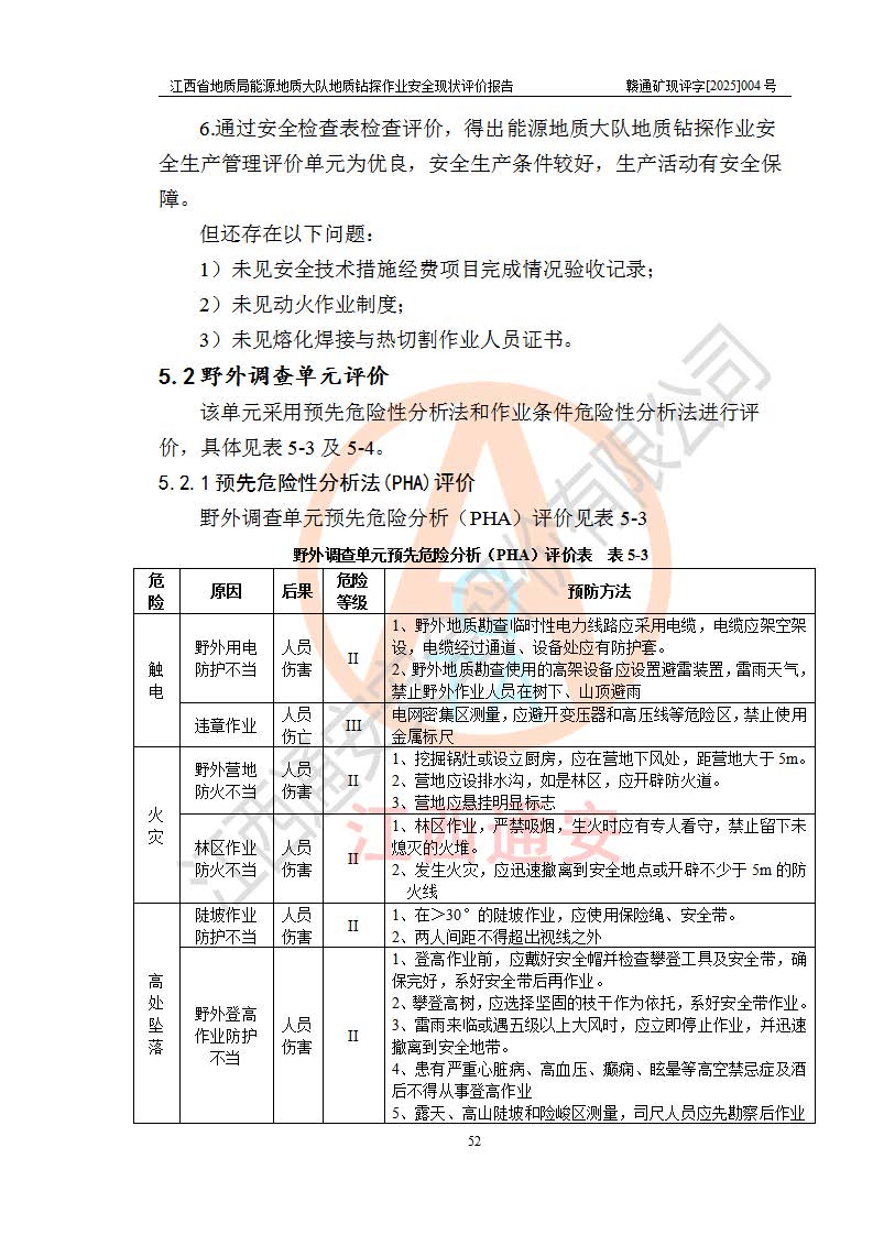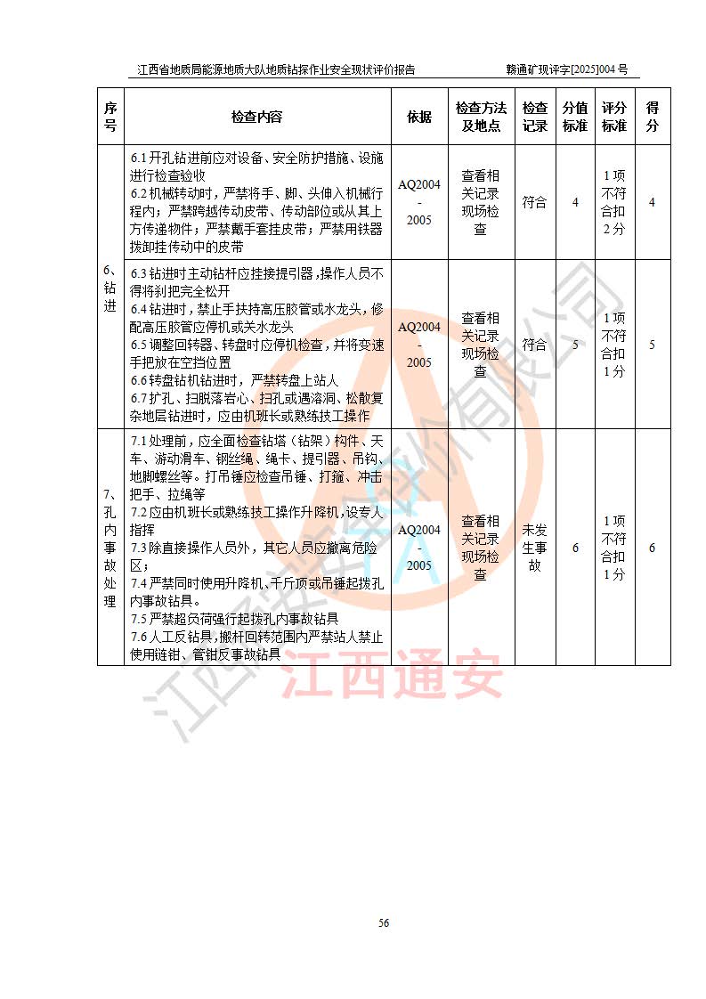 報告名稱 | 江西省地質(zhì)局能源地質(zhì)大隊(duì)地質(zhì)鉆探作業(yè)安全現(xiàn)狀評價報告 | |||||