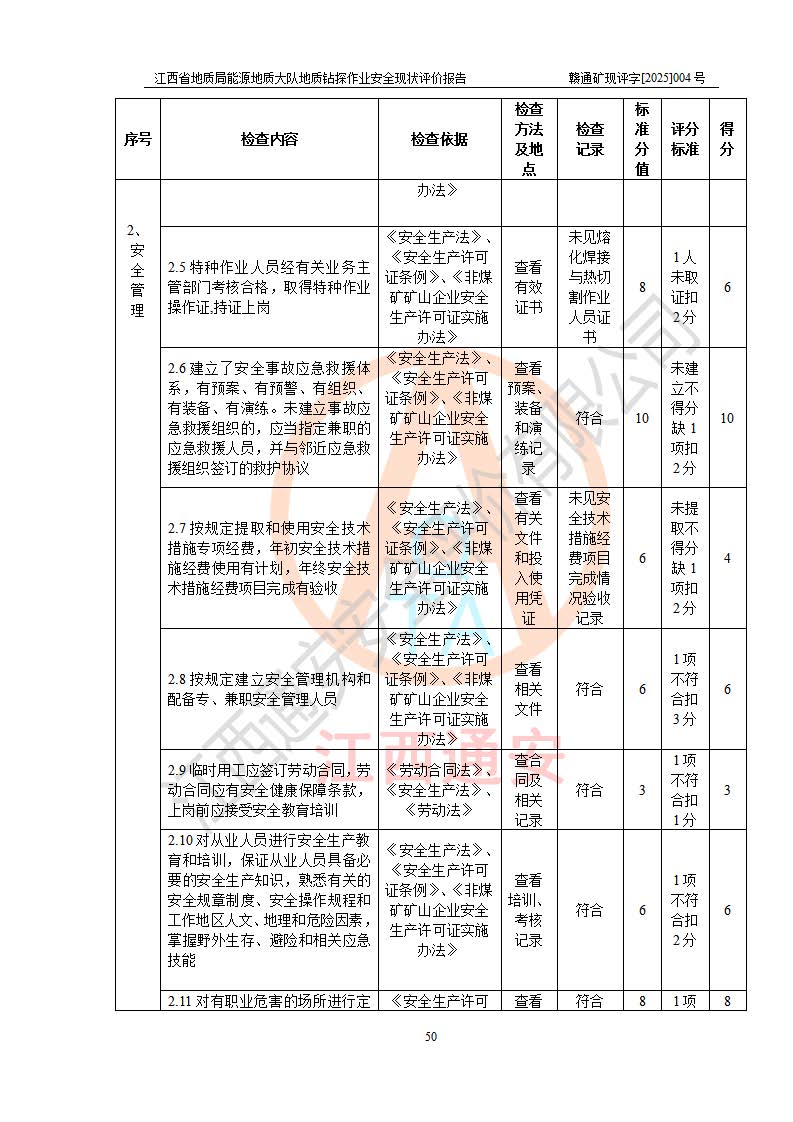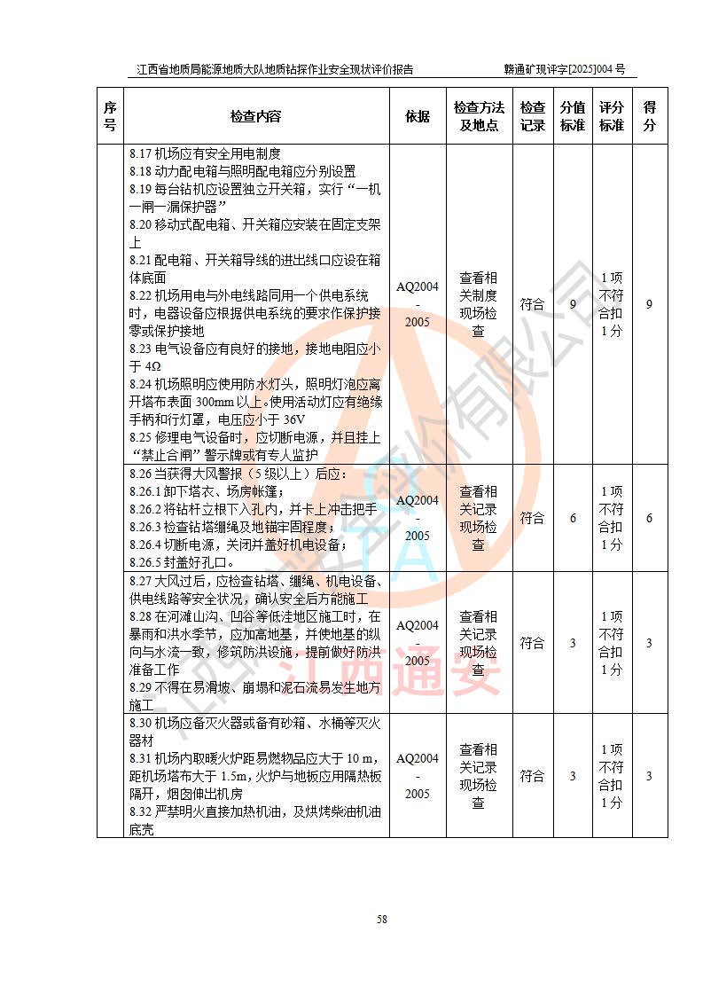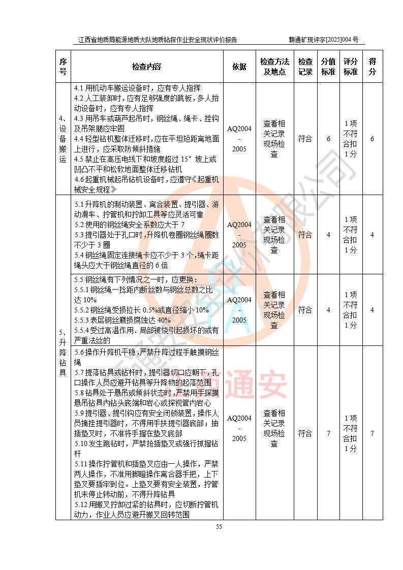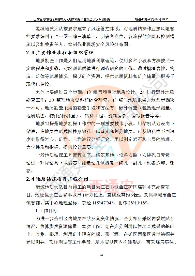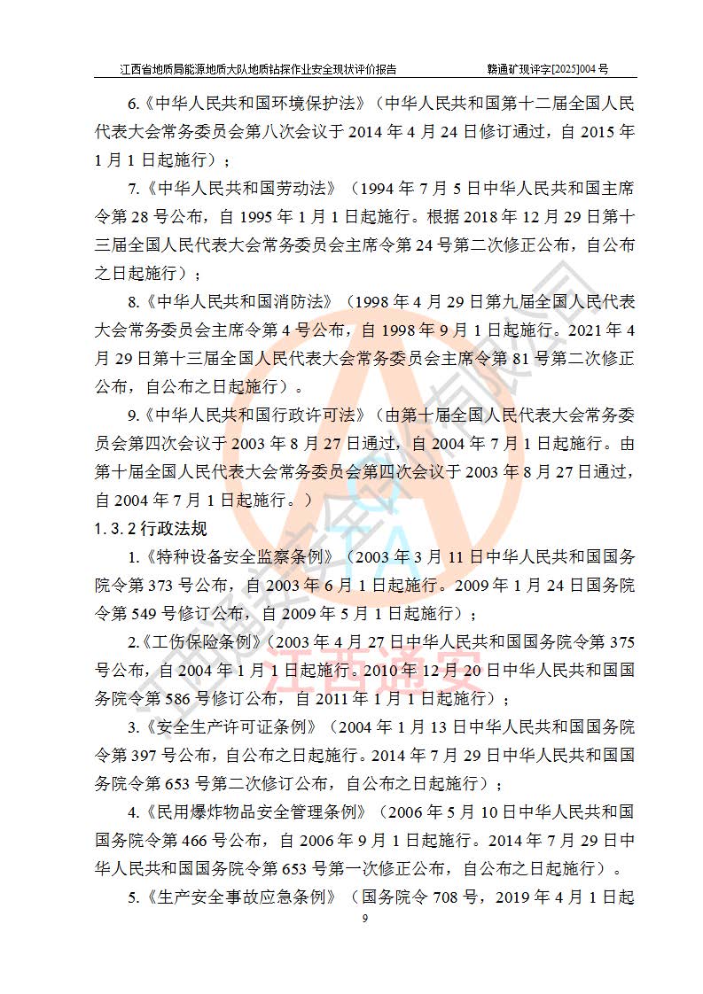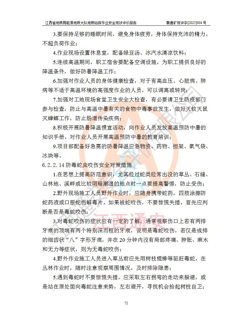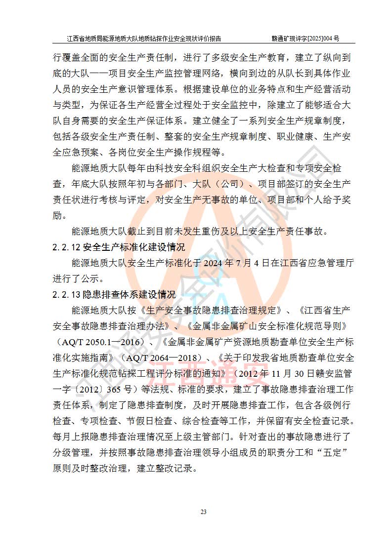 報告名稱 | 江西省地質(zhì)局能源地質(zhì)大隊(duì)地質(zhì)鉆探作業(yè)安全現(xiàn)狀評價報告 | |||||