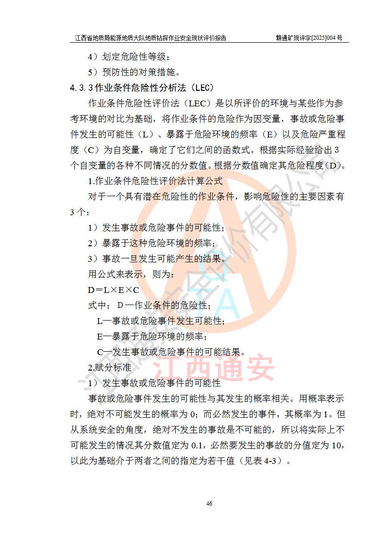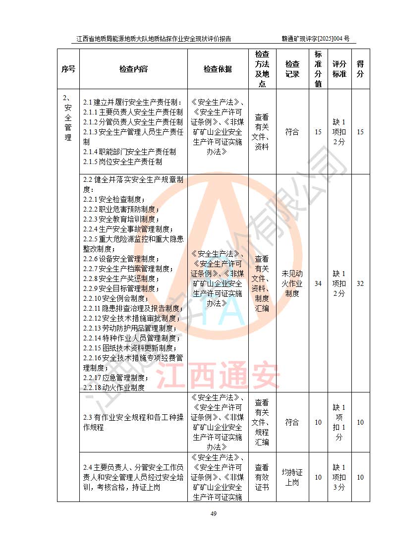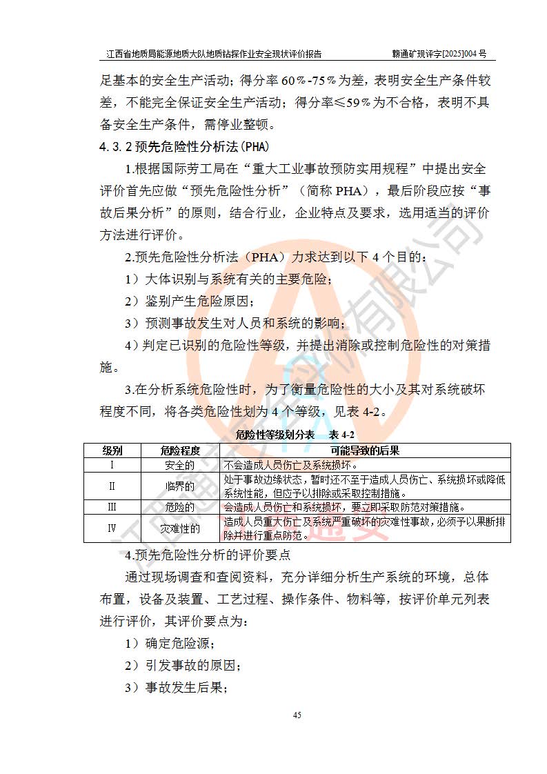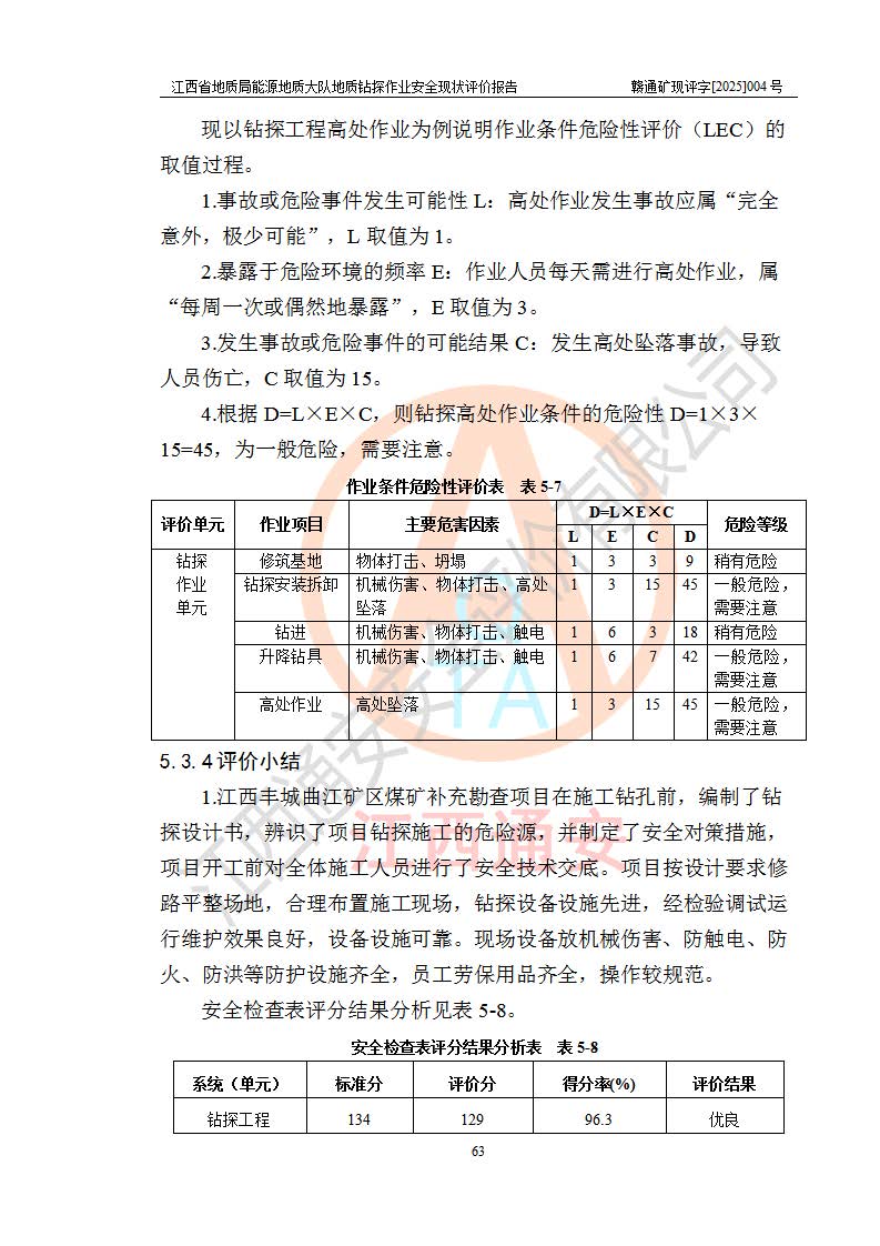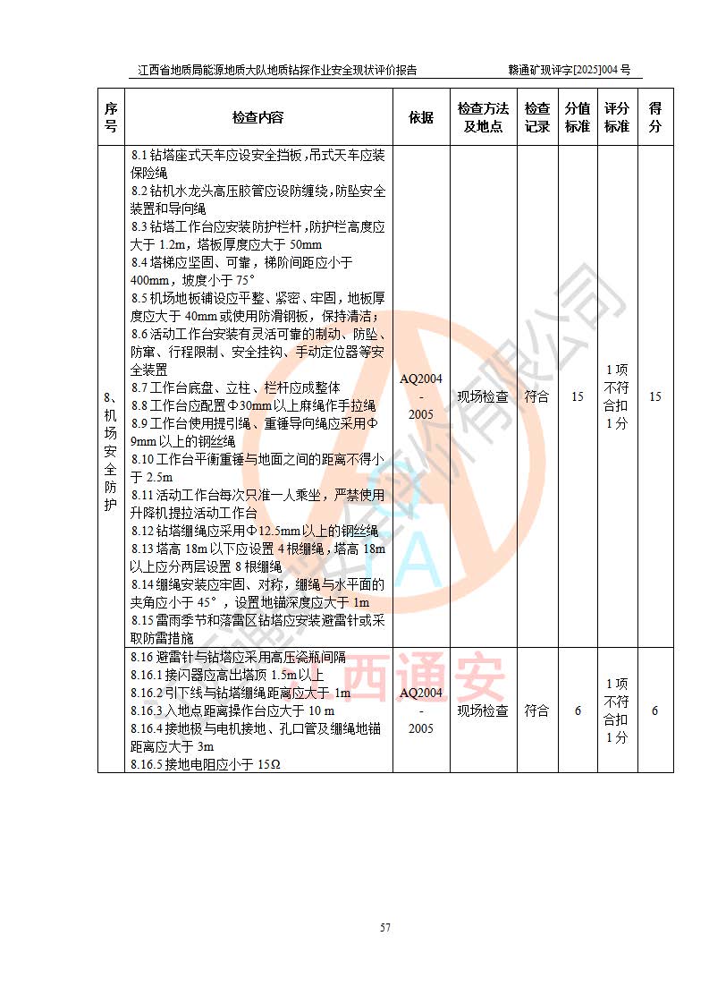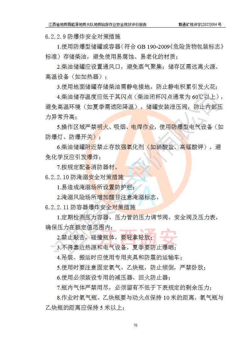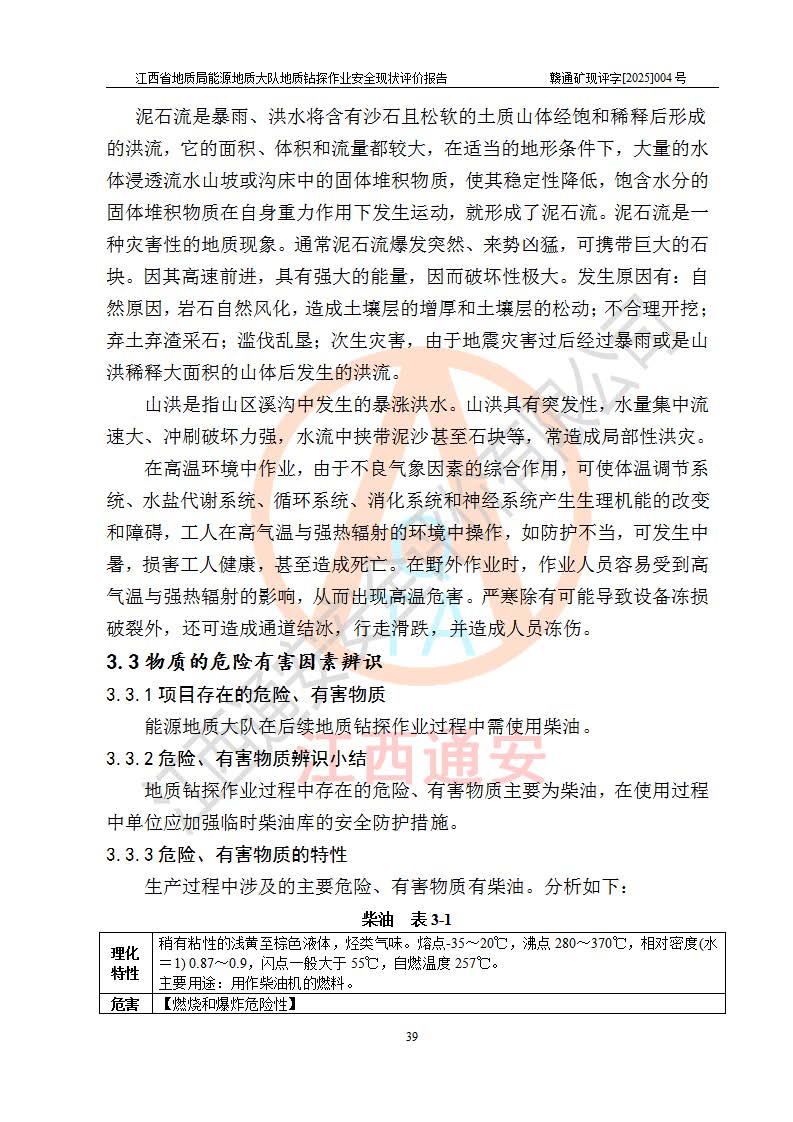 報告名稱 | 江西省地質(zhì)局能源地質(zhì)大隊(duì)地質(zhì)鉆探作業(yè)安全現(xiàn)狀評價報告 | |||||