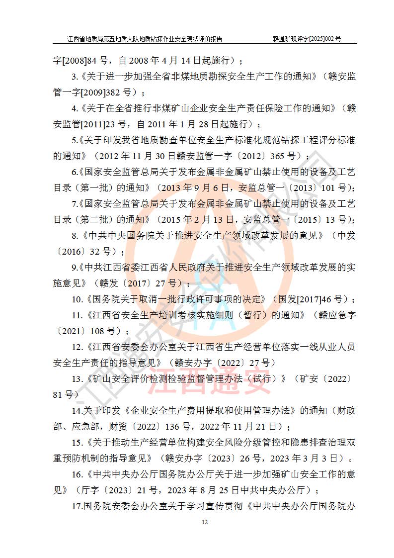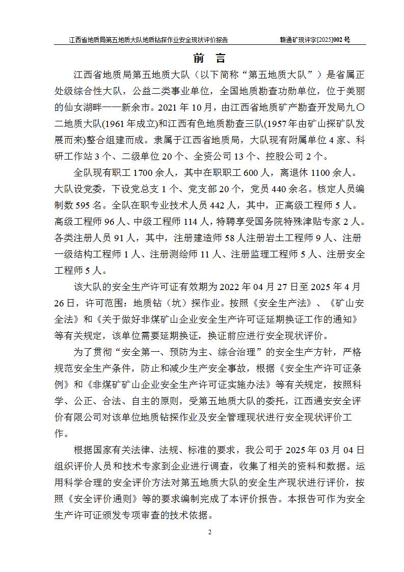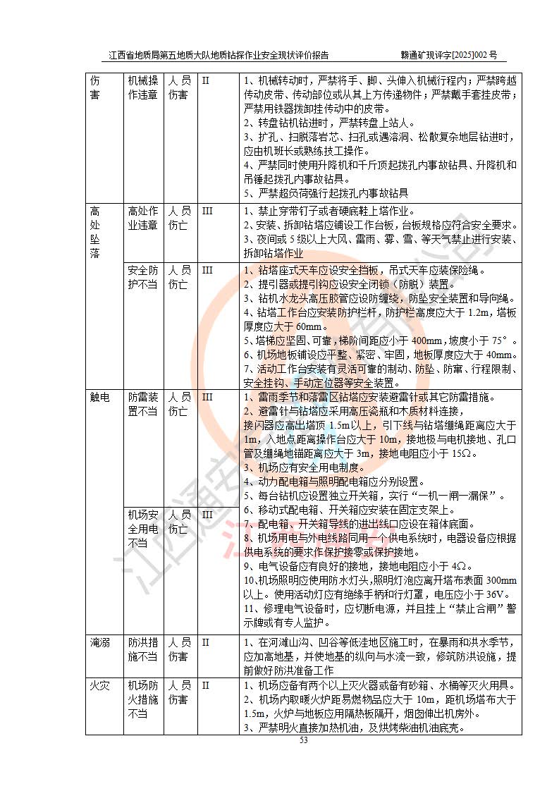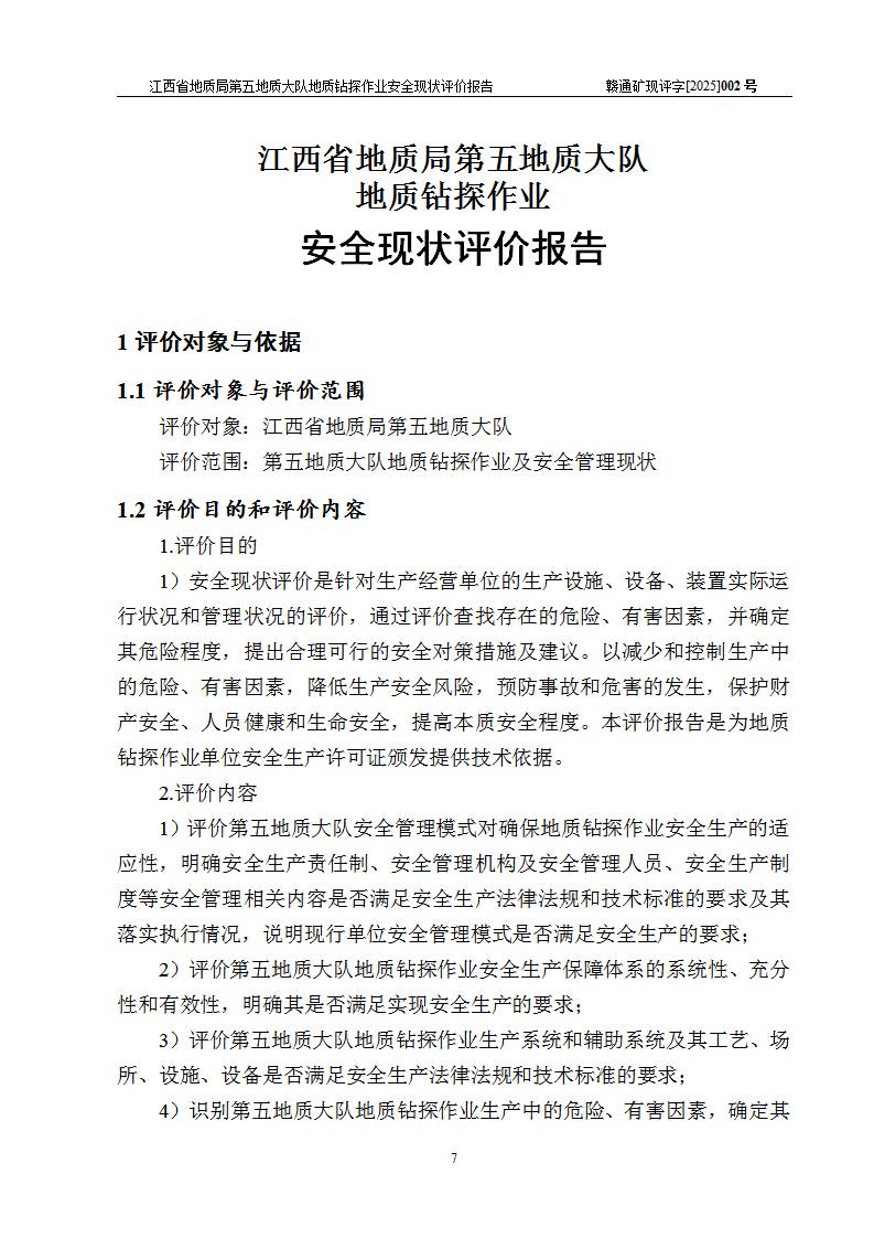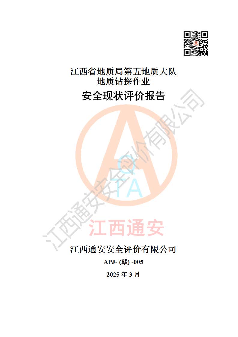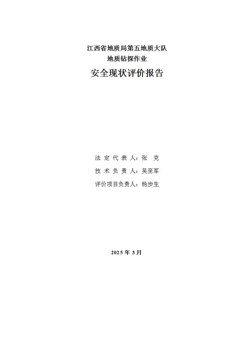 報(bào)告名稱 | 江西省地質(zhì)局第五地質(zhì)大隊(duì)地質(zhì)鉆探作業(yè)安全現(xiàn)狀評價(jià)報(bào)告 | |||||