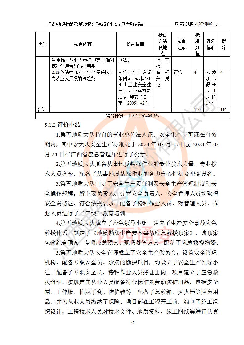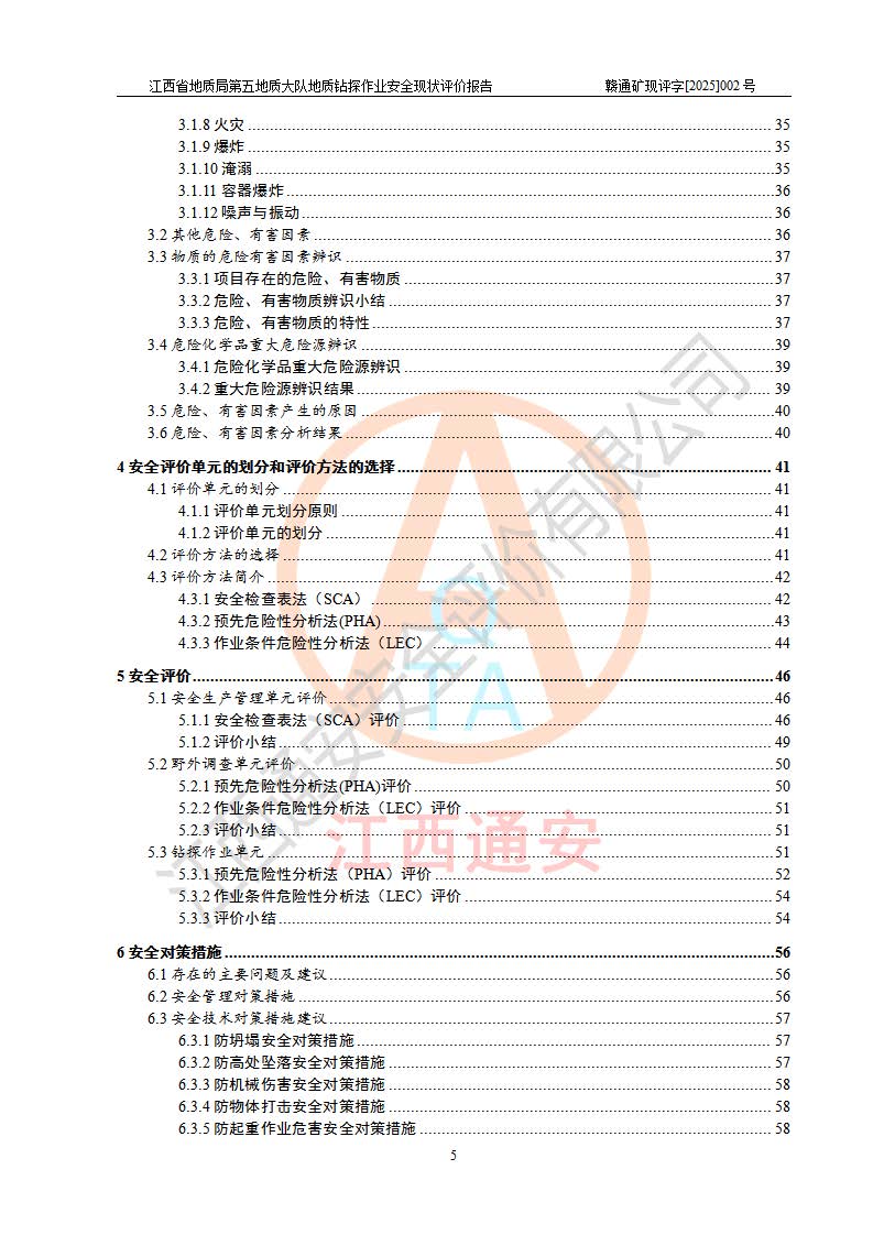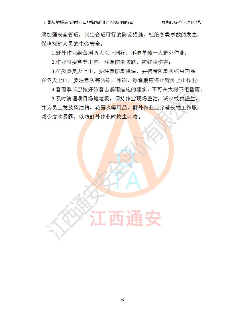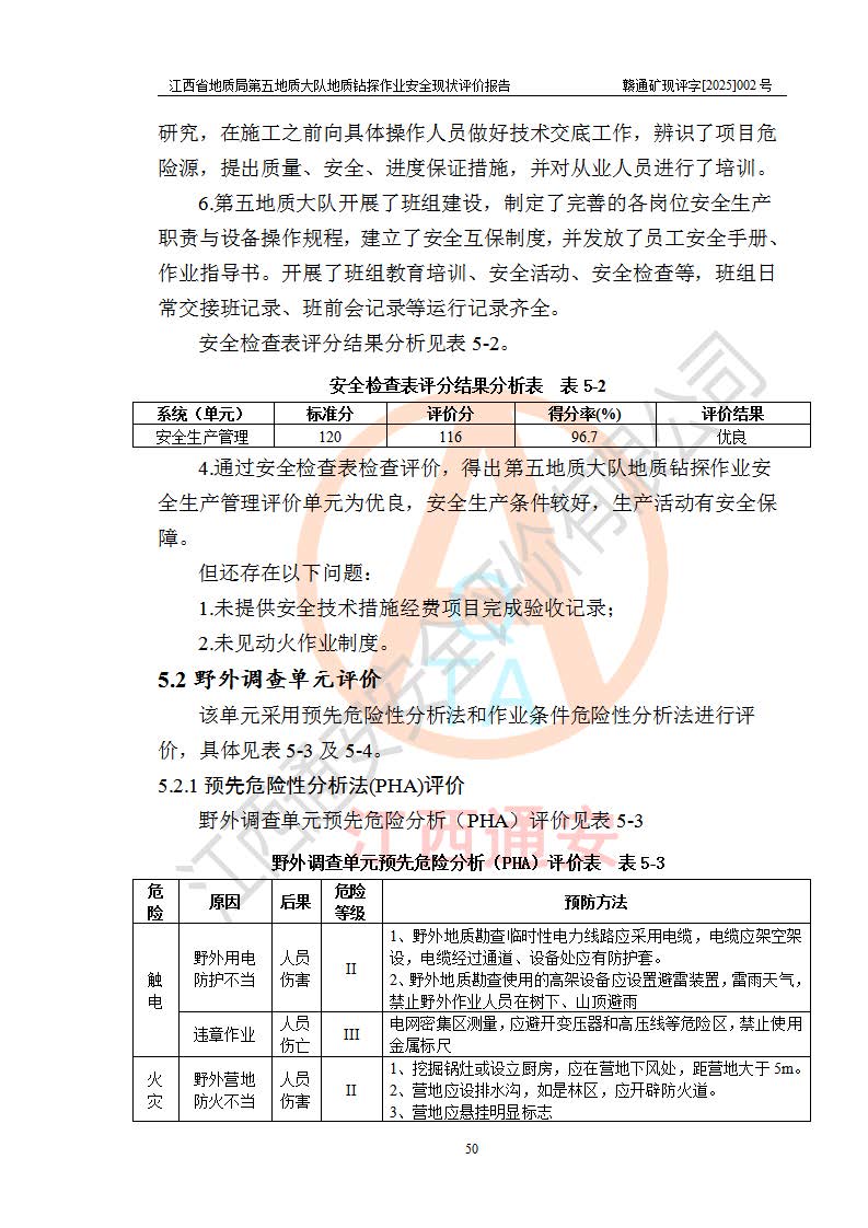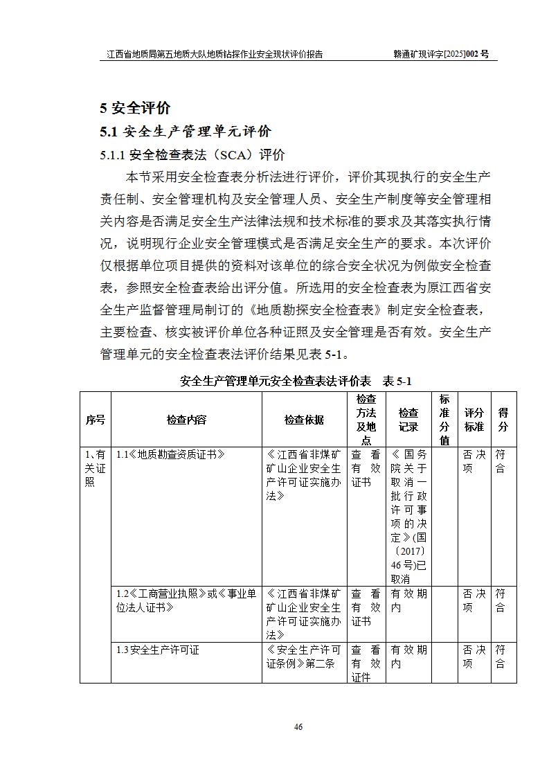 報(bào)告名稱 | 江西省地質(zhì)局第五地質(zhì)大隊(duì)地質(zhì)鉆探作業(yè)安全現(xiàn)狀評價(jià)報(bào)告 | |||||