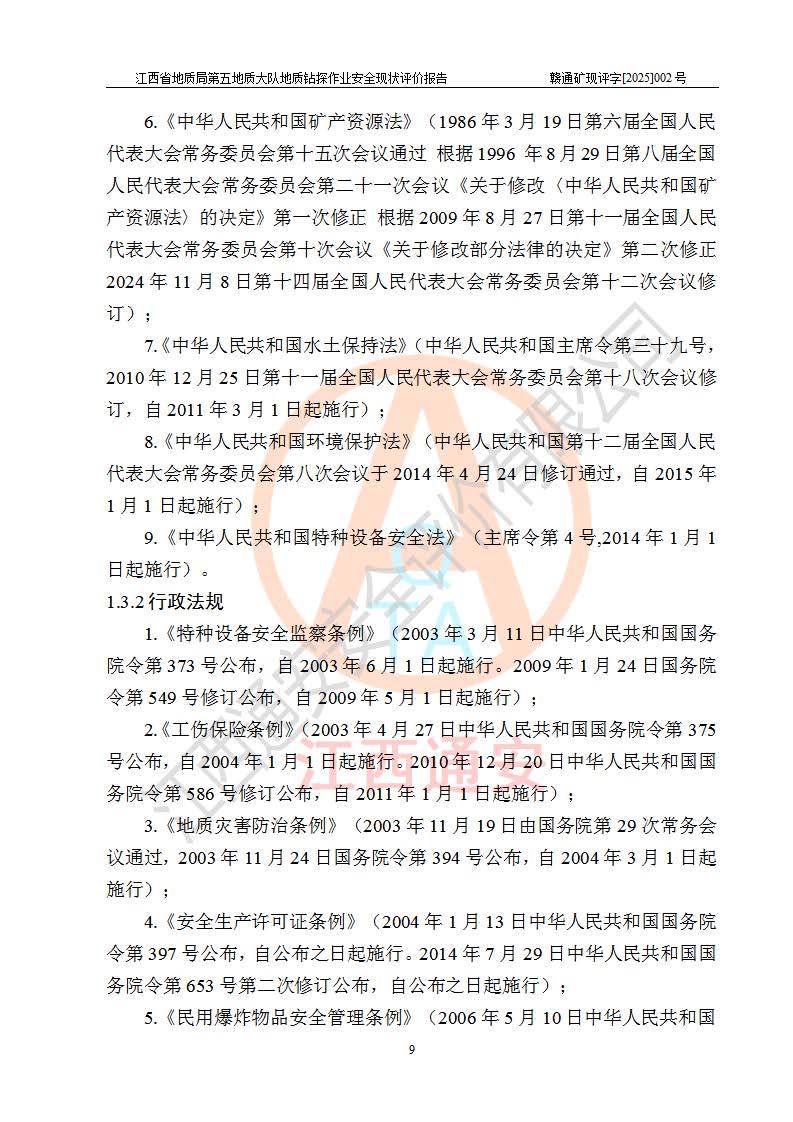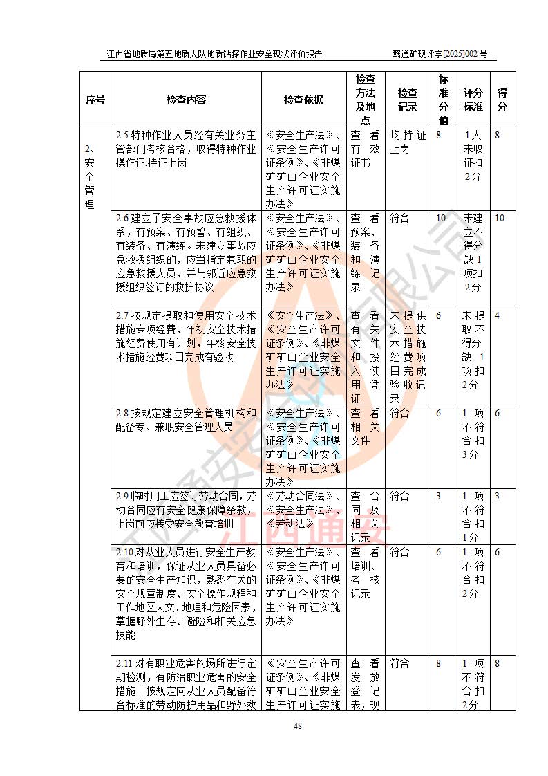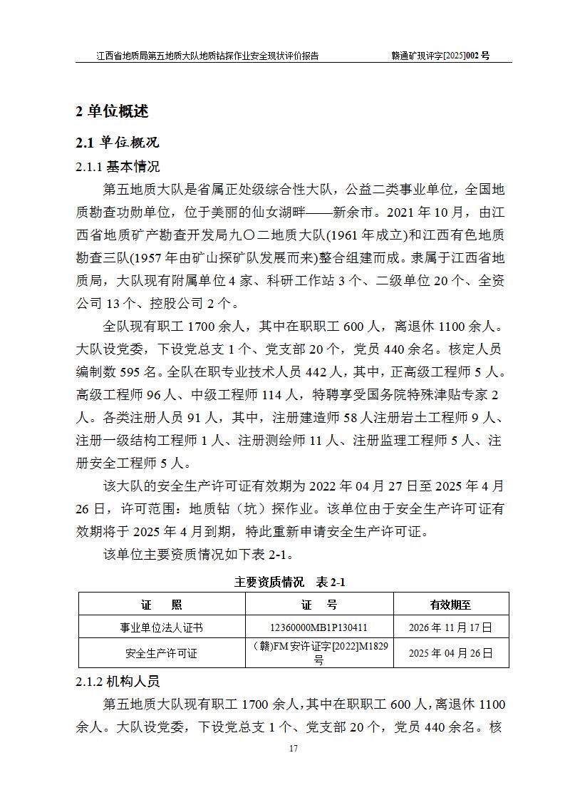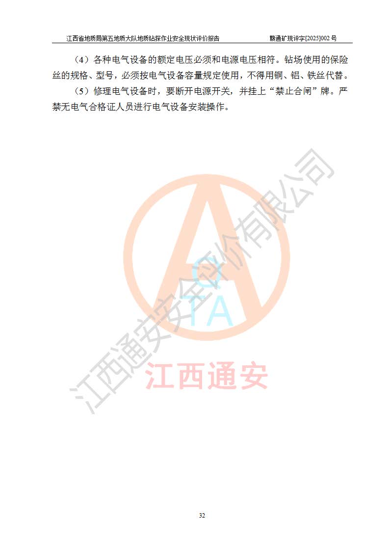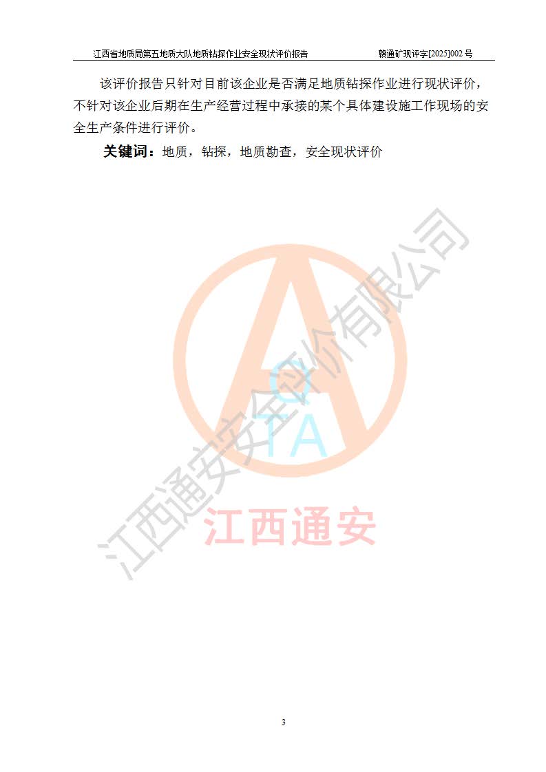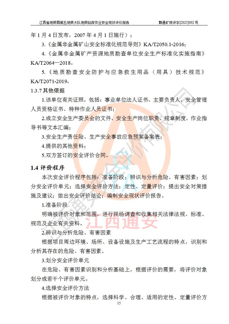 報(bào)告名稱 | 江西省地質(zhì)局第五地質(zhì)大隊(duì)地質(zhì)鉆探作業(yè)安全現(xiàn)狀評價(jià)報(bào)告 | |||||