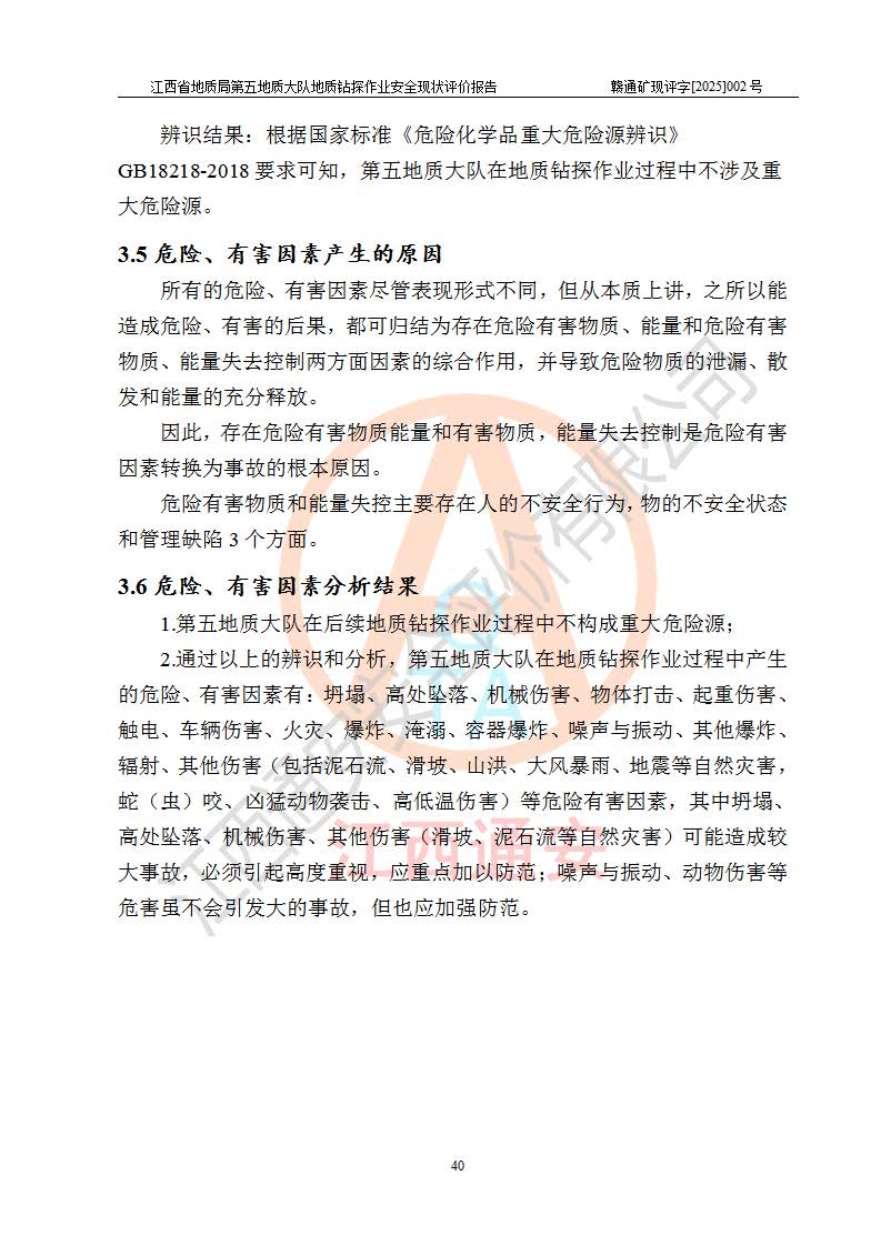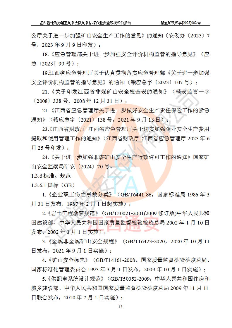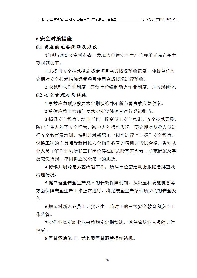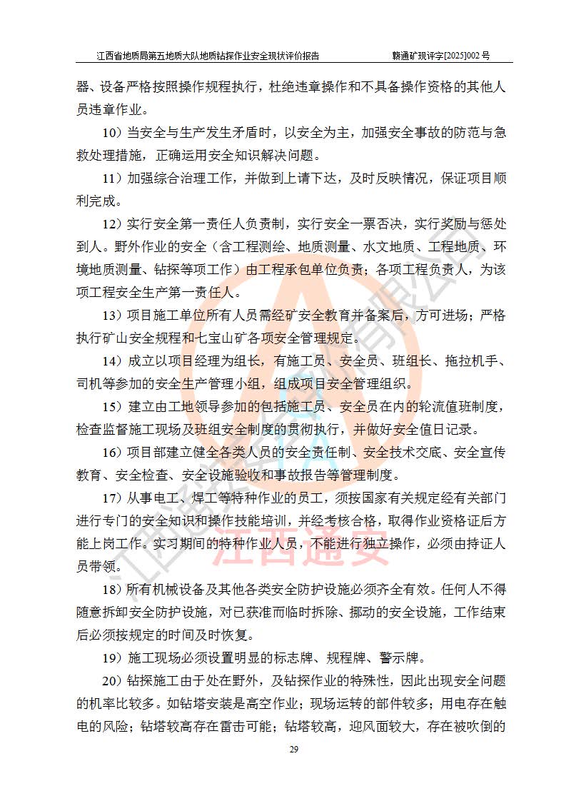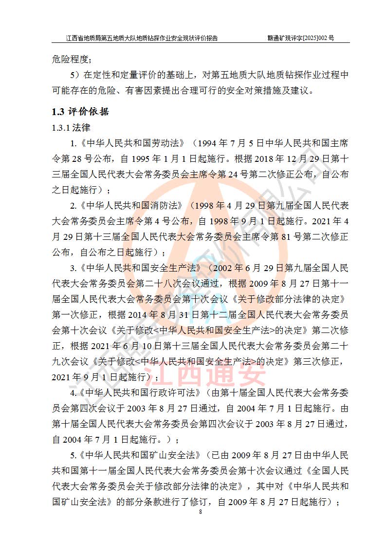 報(bào)告名稱 | 江西省地質(zhì)局第五地質(zhì)大隊(duì)地質(zhì)鉆探作業(yè)安全現(xiàn)狀評價(jià)報(bào)告 | |||||