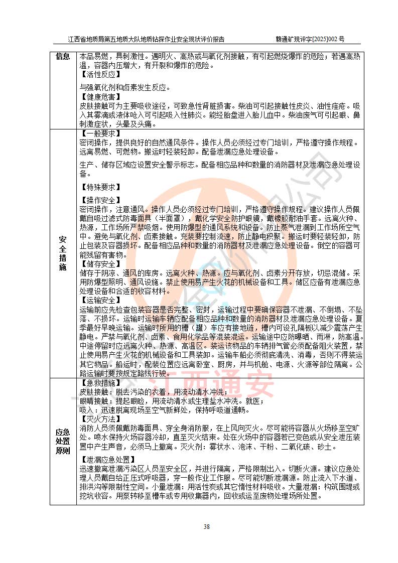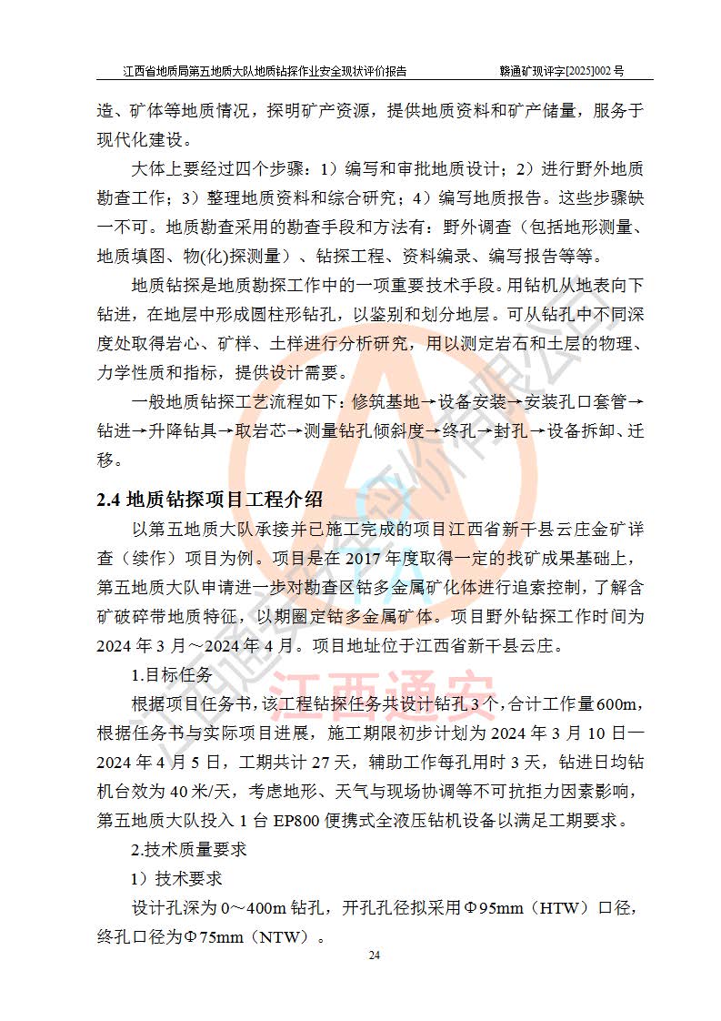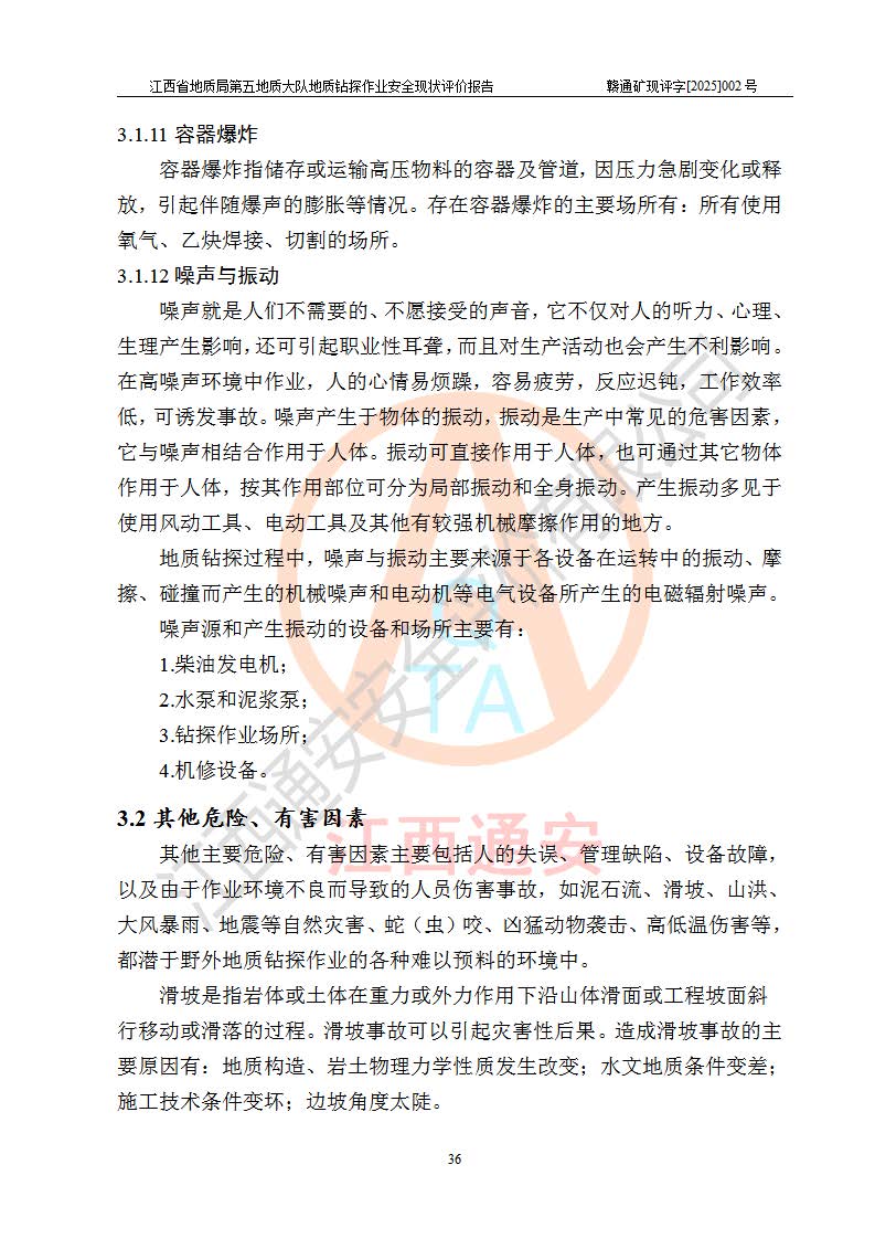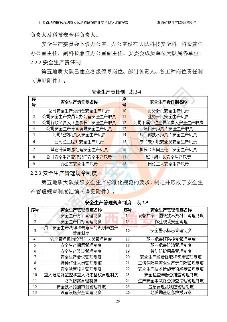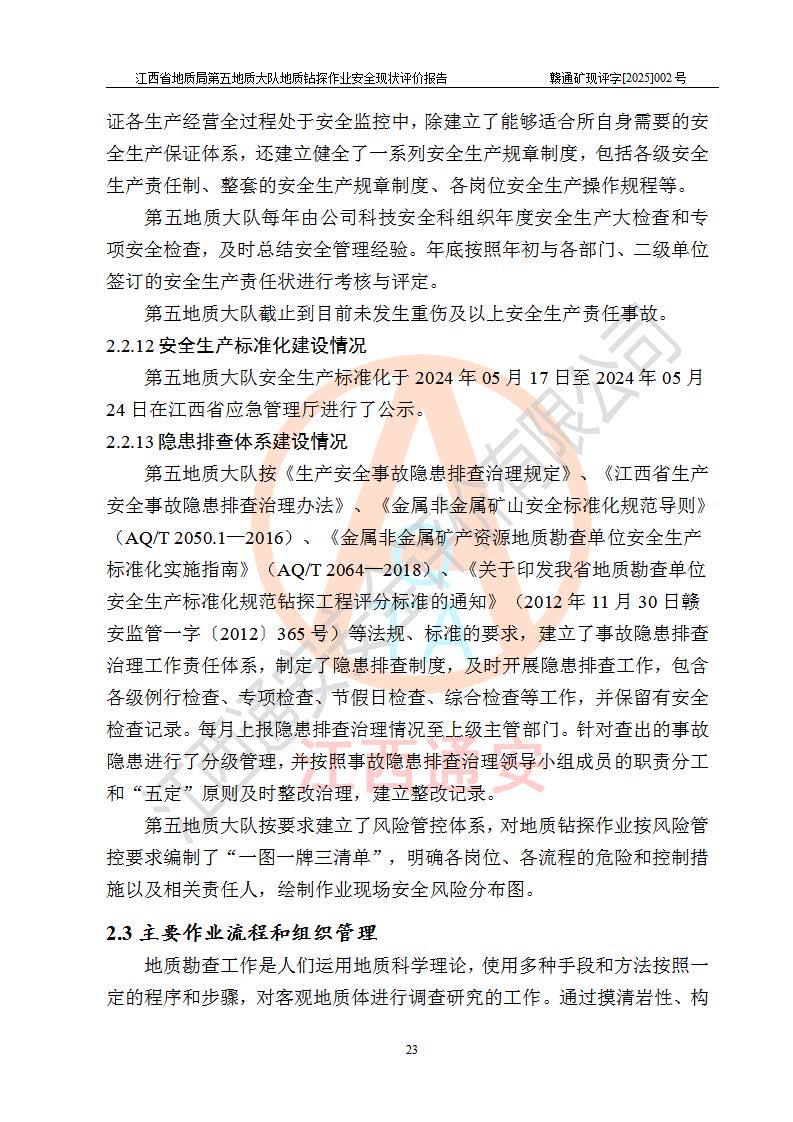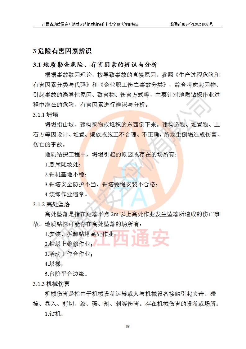 報(bào)告名稱 | 江西省地質(zhì)局第五地質(zhì)大隊(duì)地質(zhì)鉆探作業(yè)安全現(xiàn)狀評價(jià)報(bào)告 | |||||