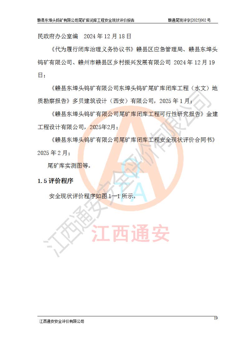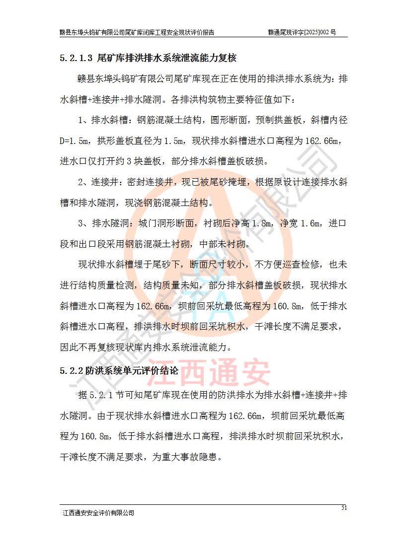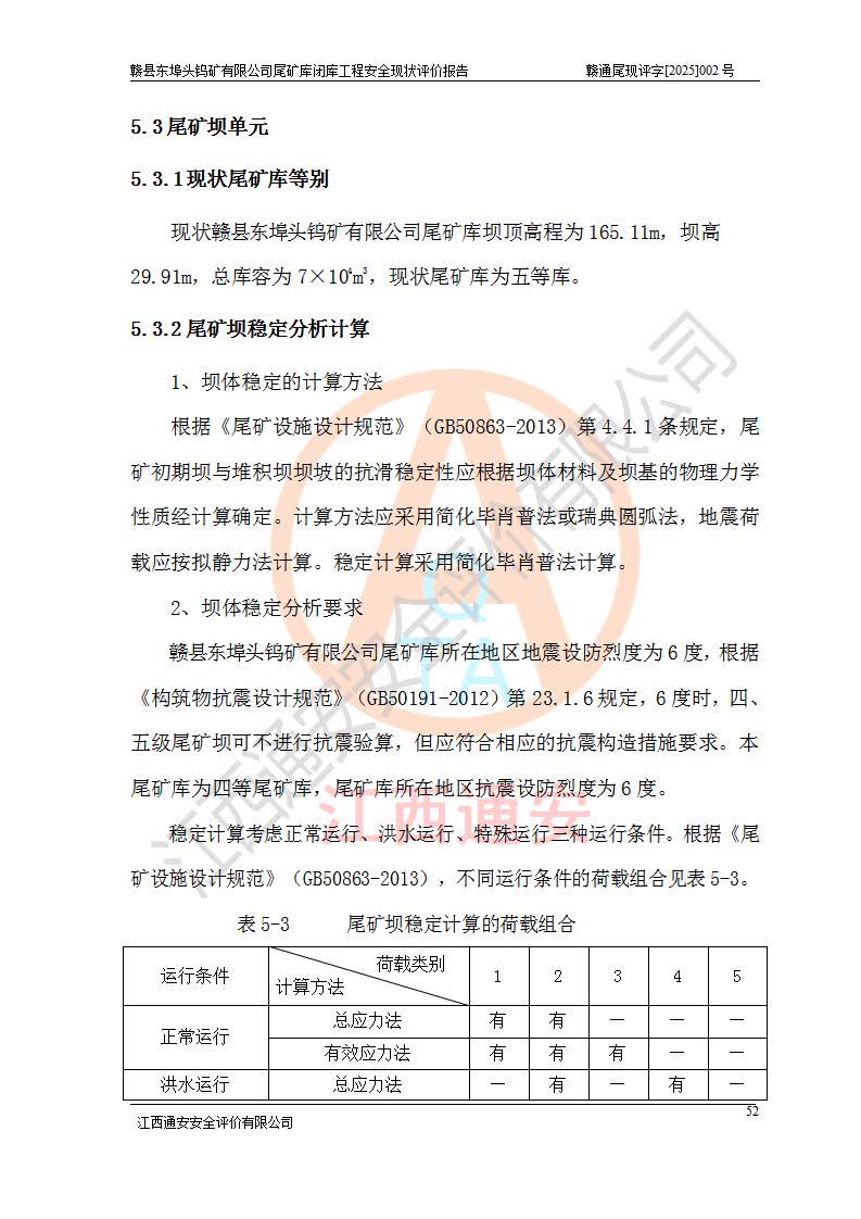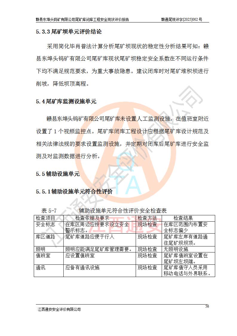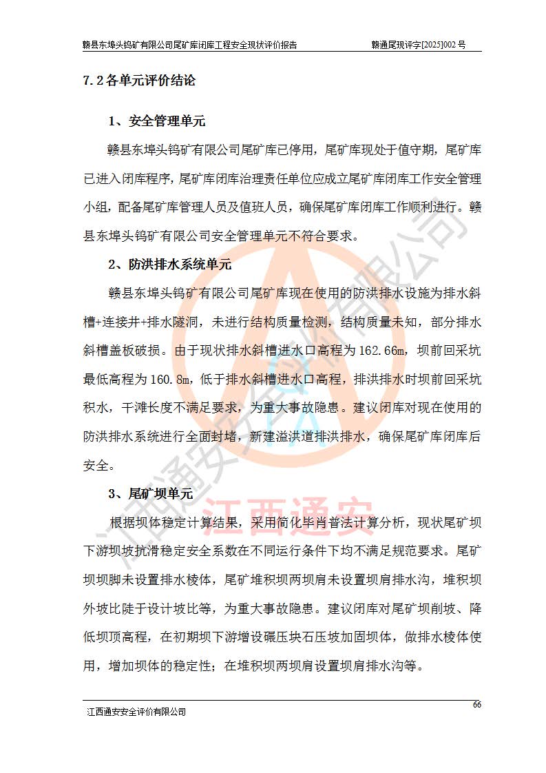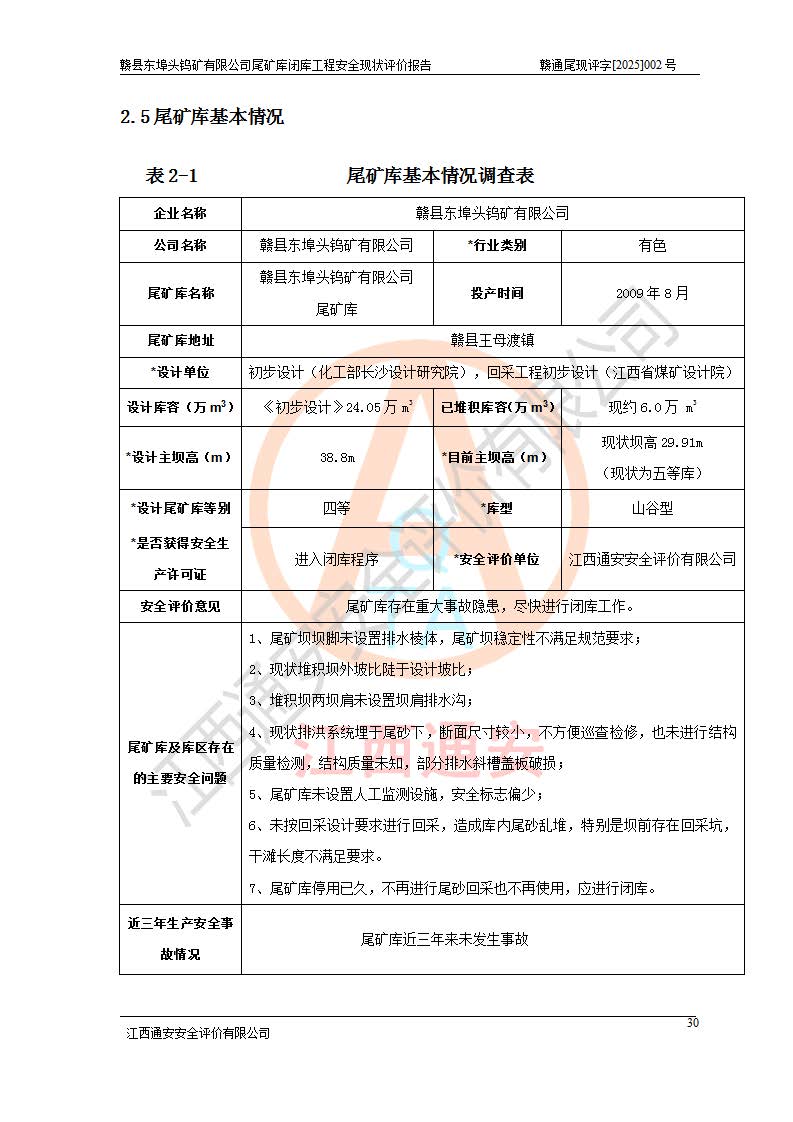 評價報告名稱 | 贛縣東埠頭鎢礦有限公司尾礦庫閉庫工程安全現(xiàn)狀評價報告 | |||