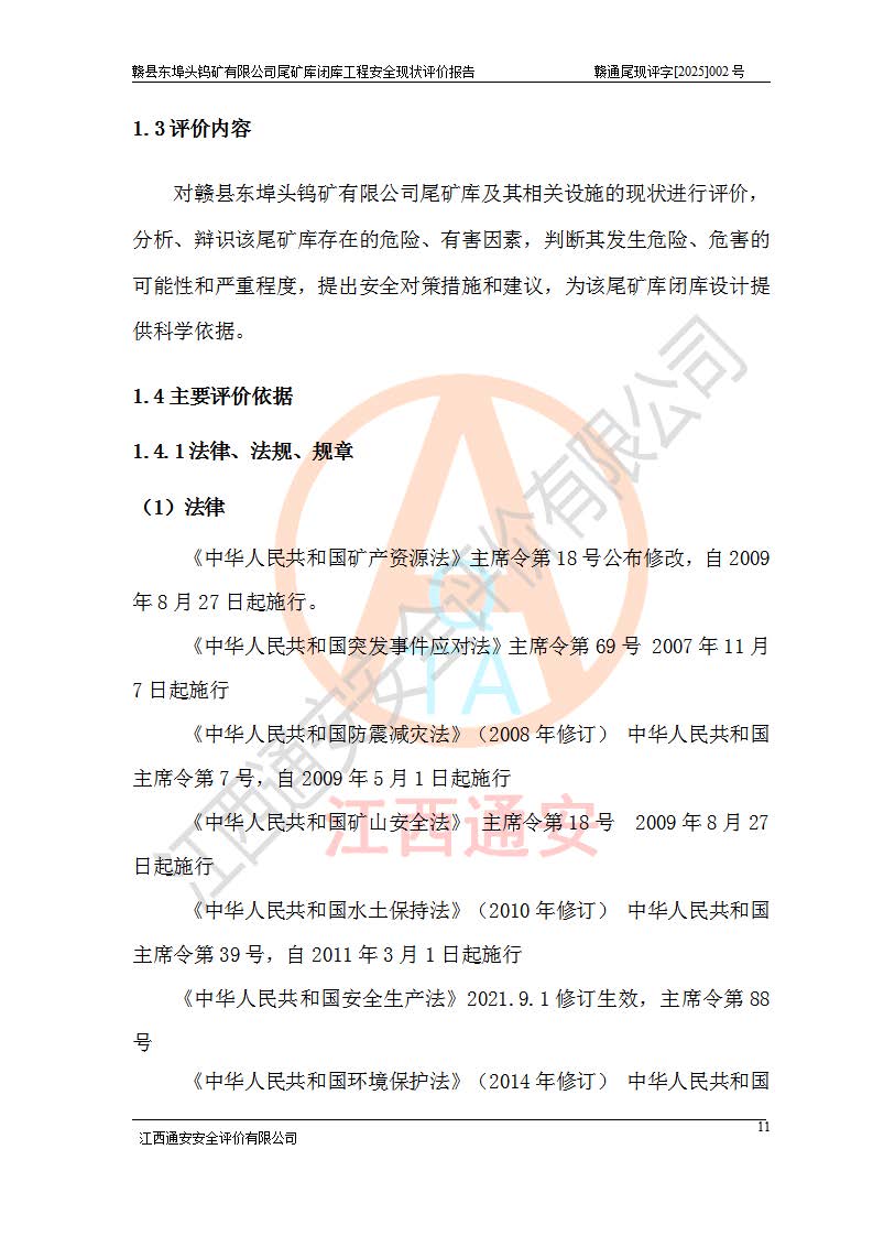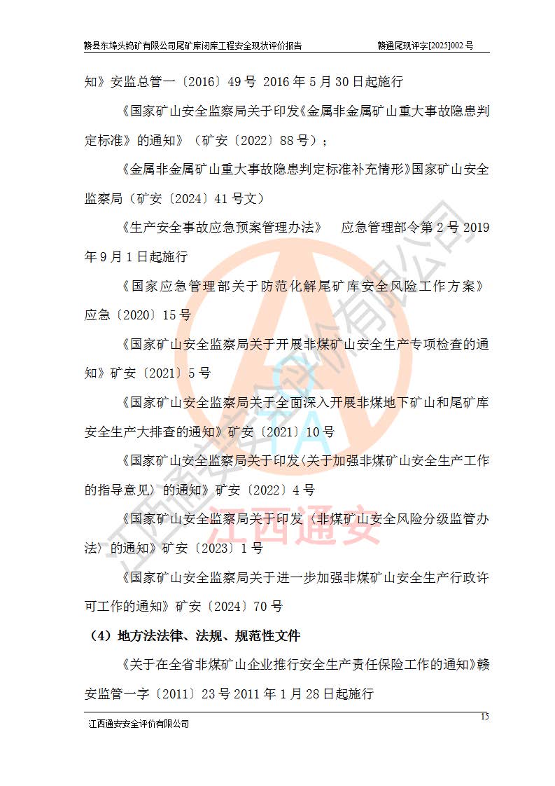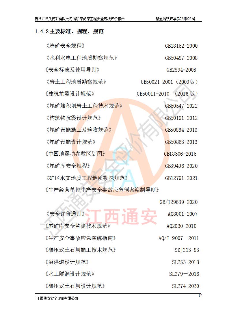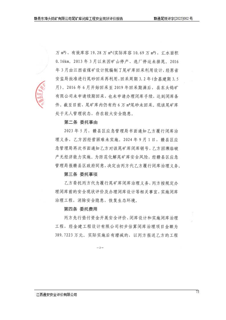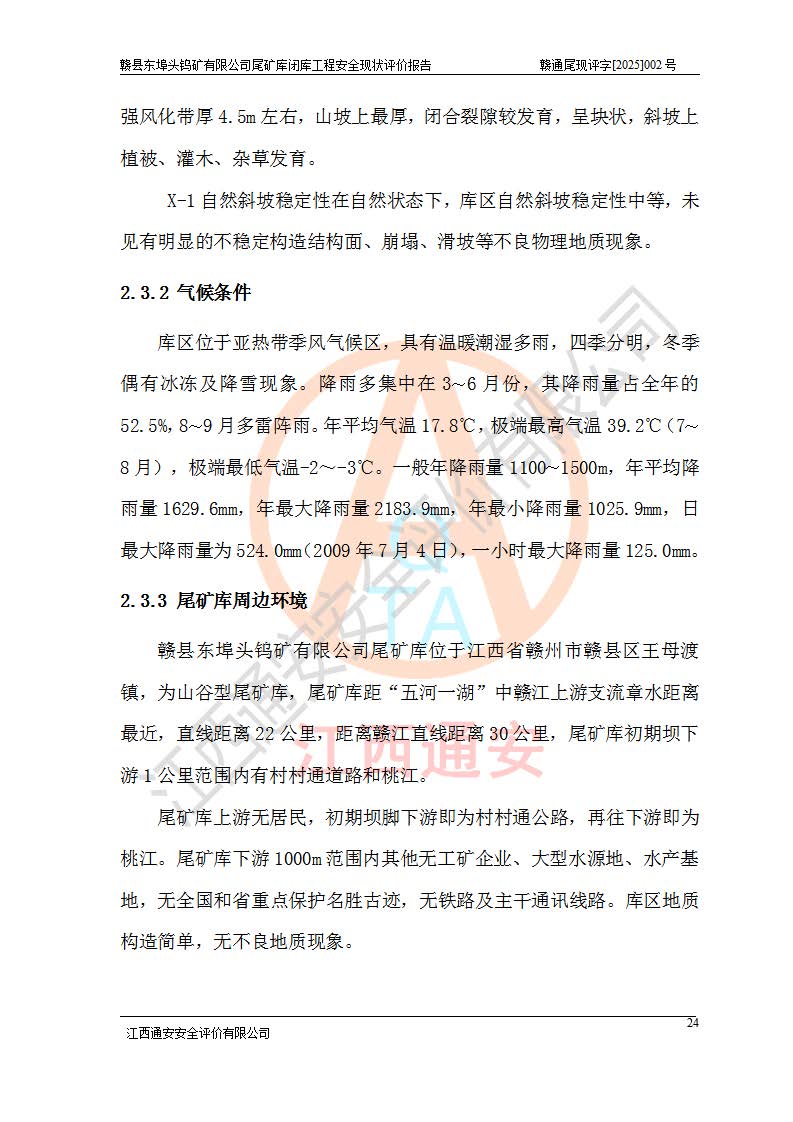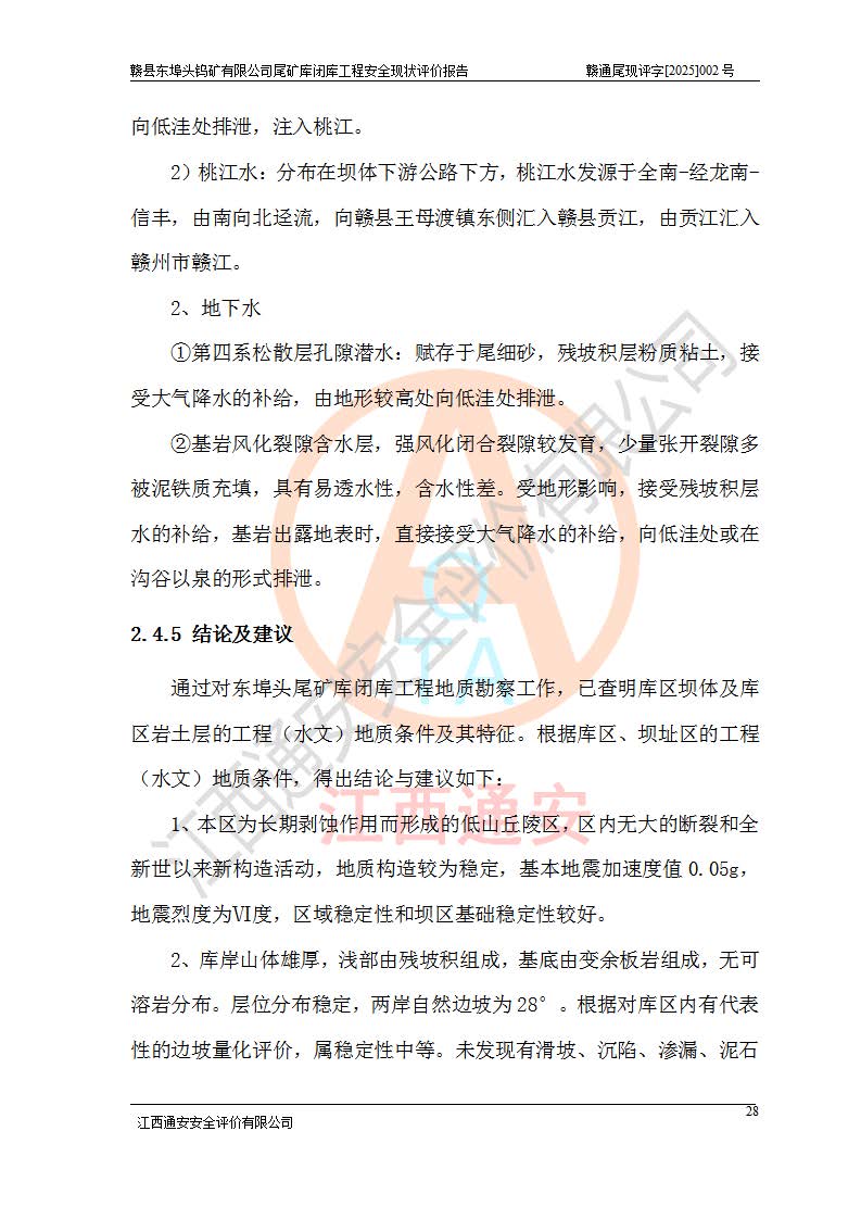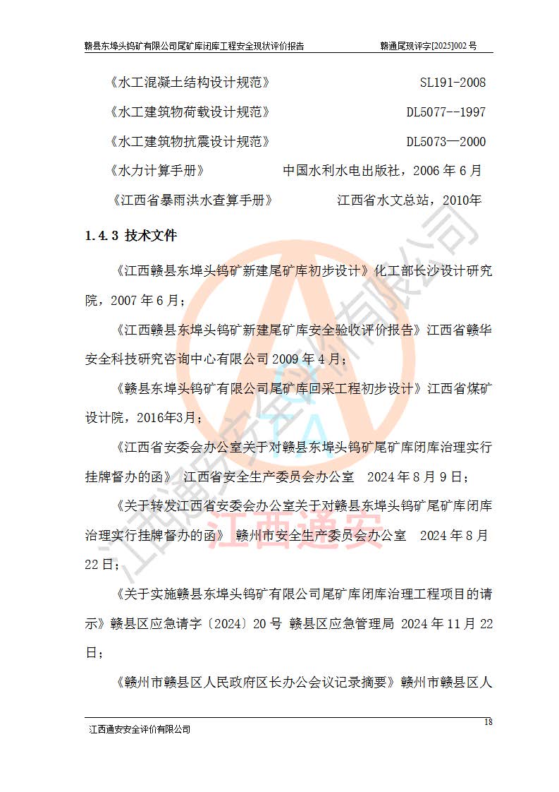 評價報告名稱 | 贛縣東埠頭鎢礦有限公司尾礦庫閉庫工程安全現(xiàn)狀評價報告 | |||