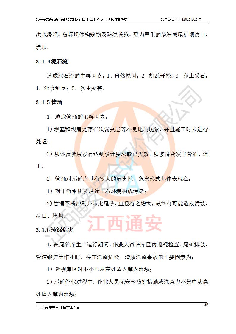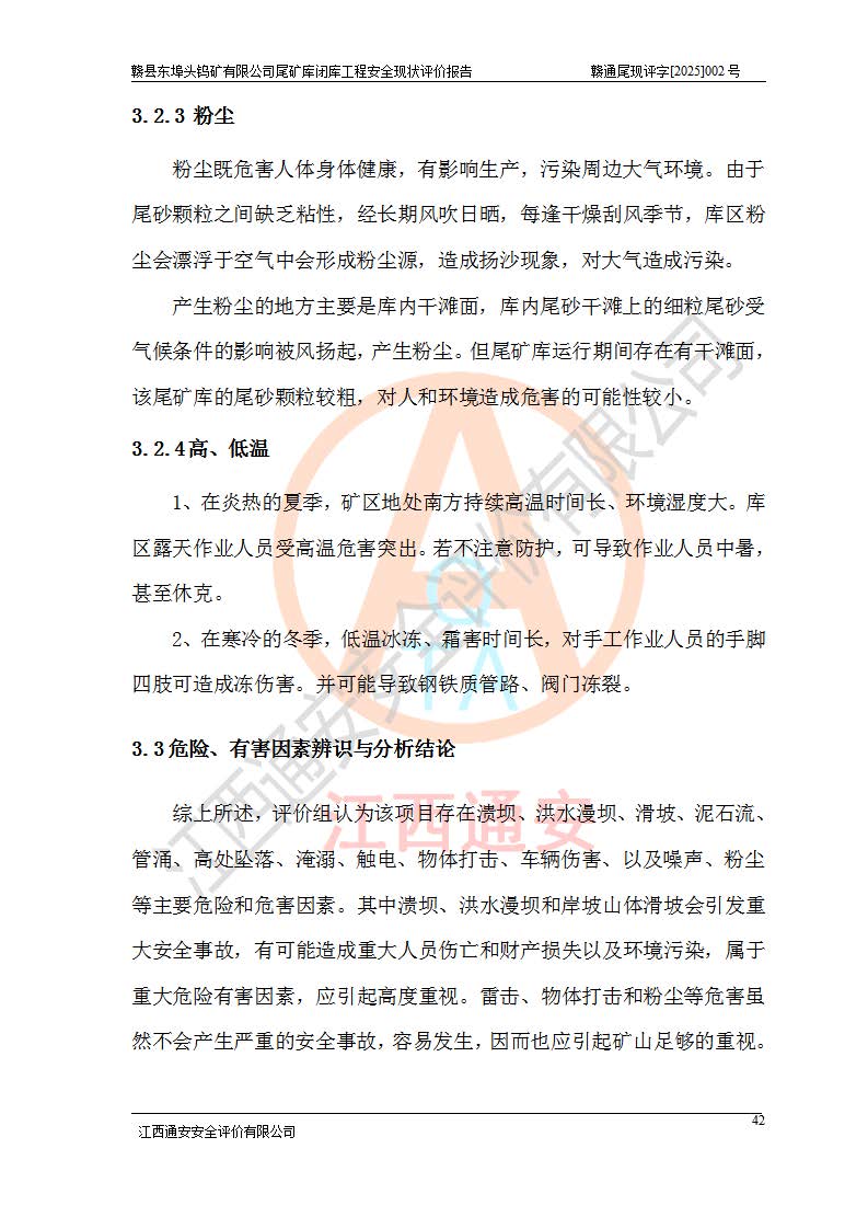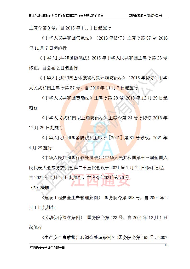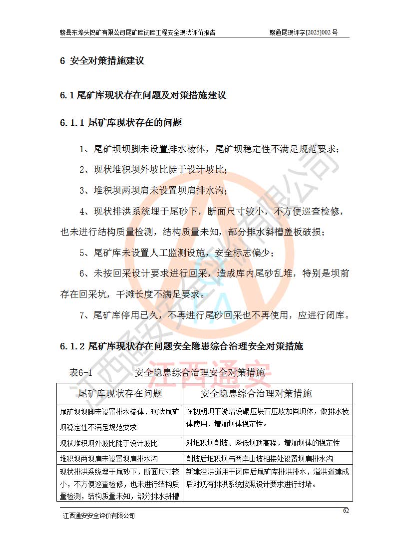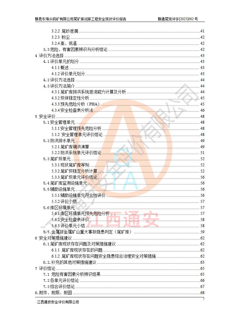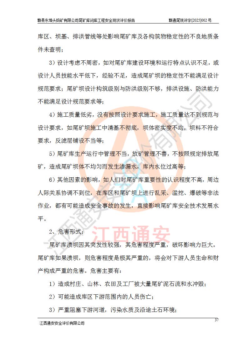 評價報告名稱 | 贛縣東埠頭鎢礦有限公司尾礦庫閉庫工程安全現(xiàn)狀評價報告 | |||