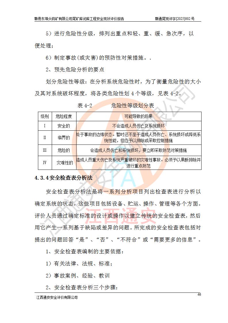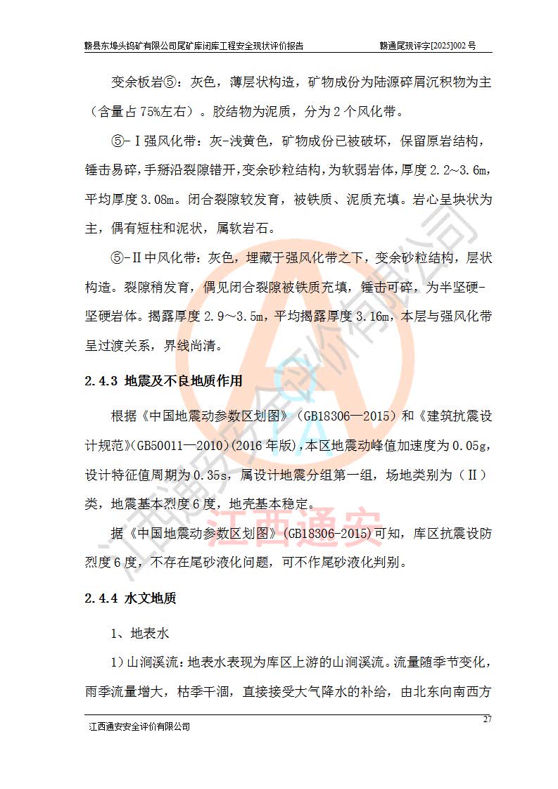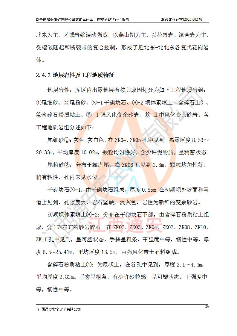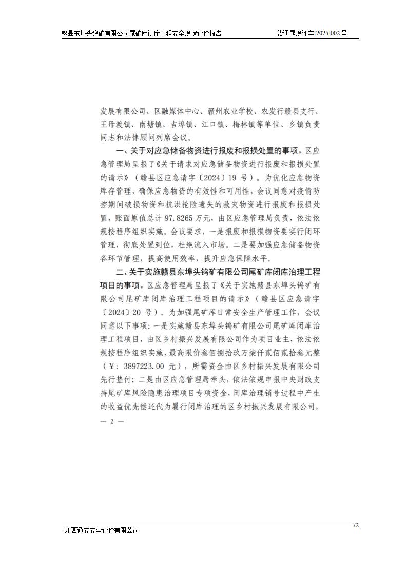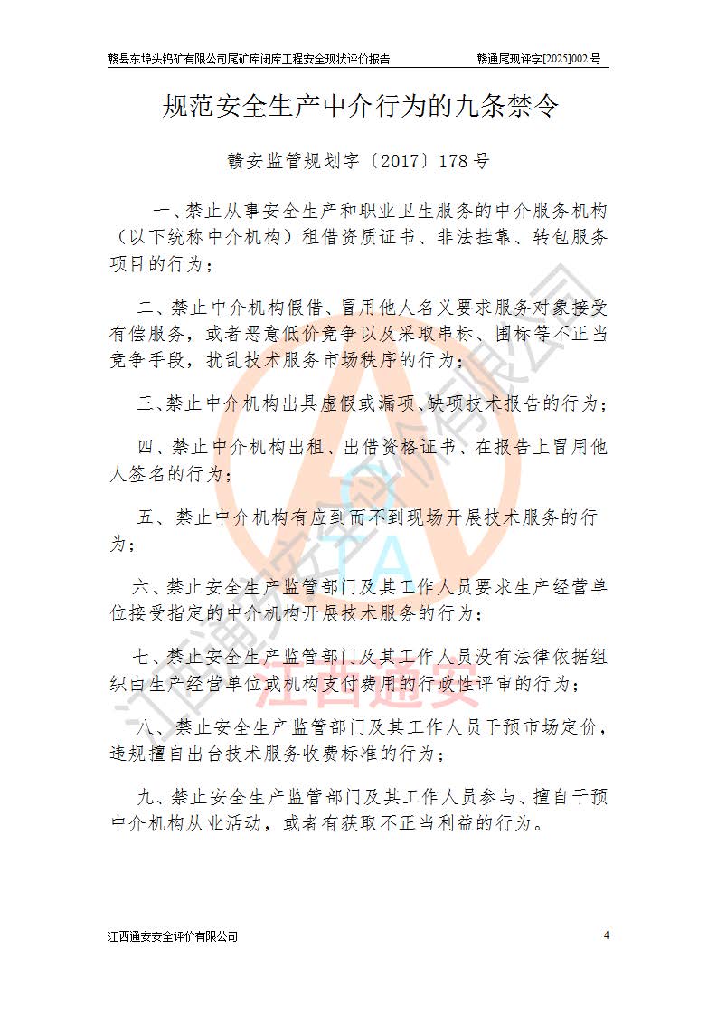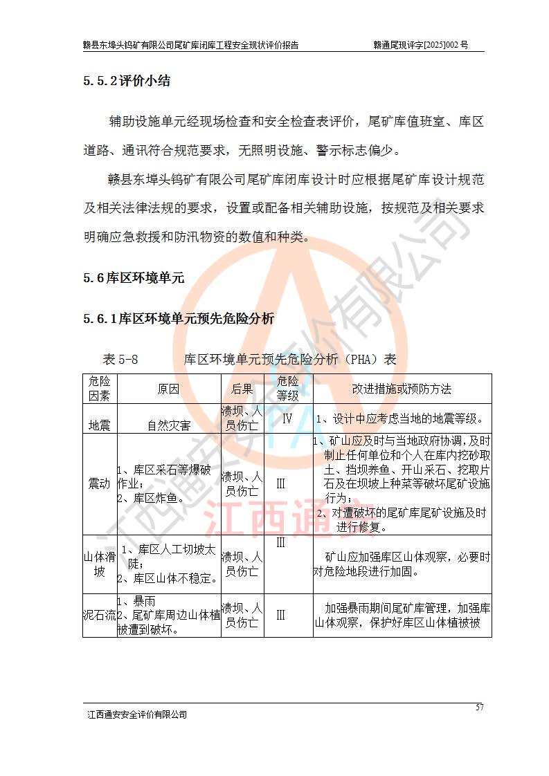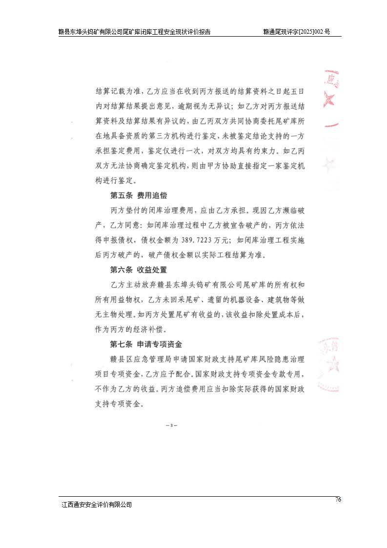評價報告名稱 | 贛縣東埠頭鎢礦有限公司尾礦庫閉庫工程安全現(xiàn)狀評價報告 | |||
