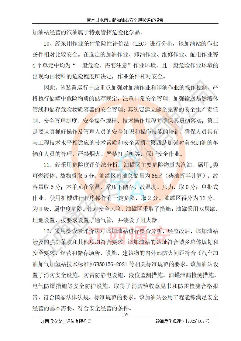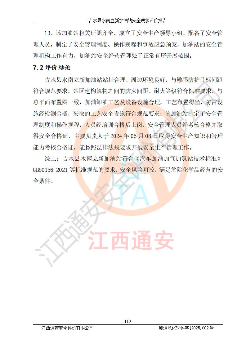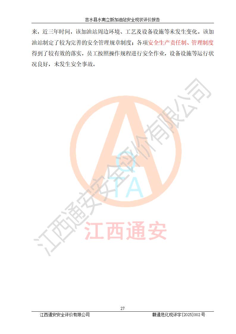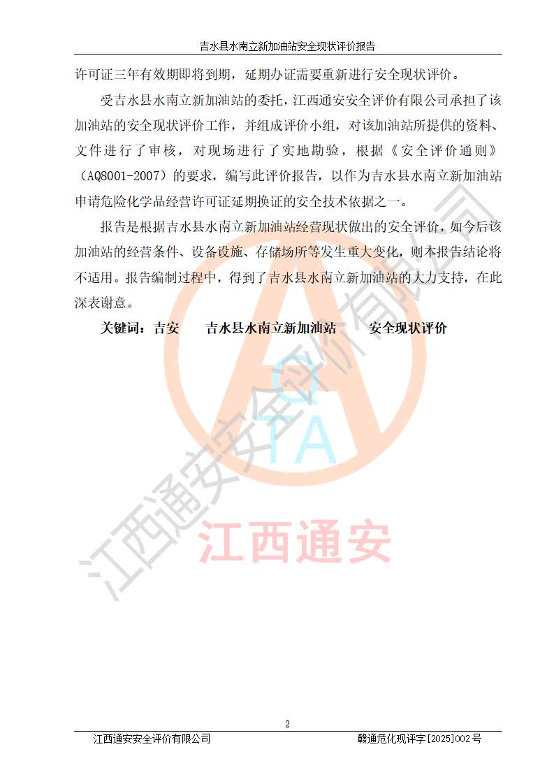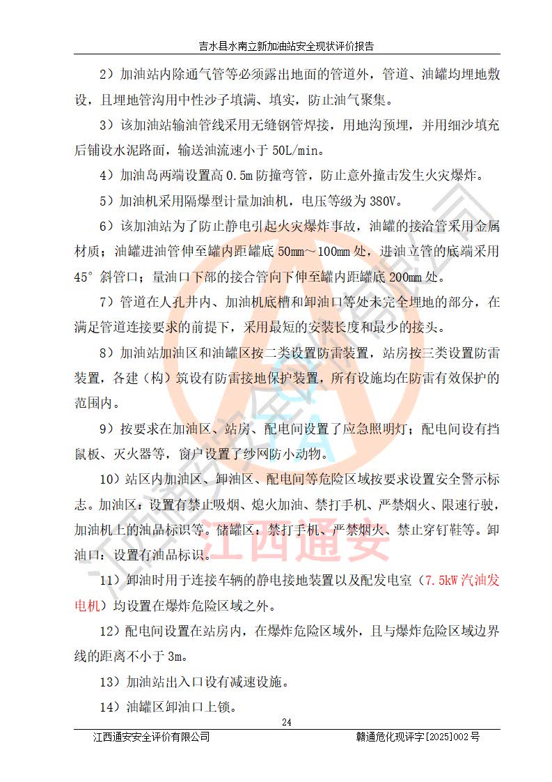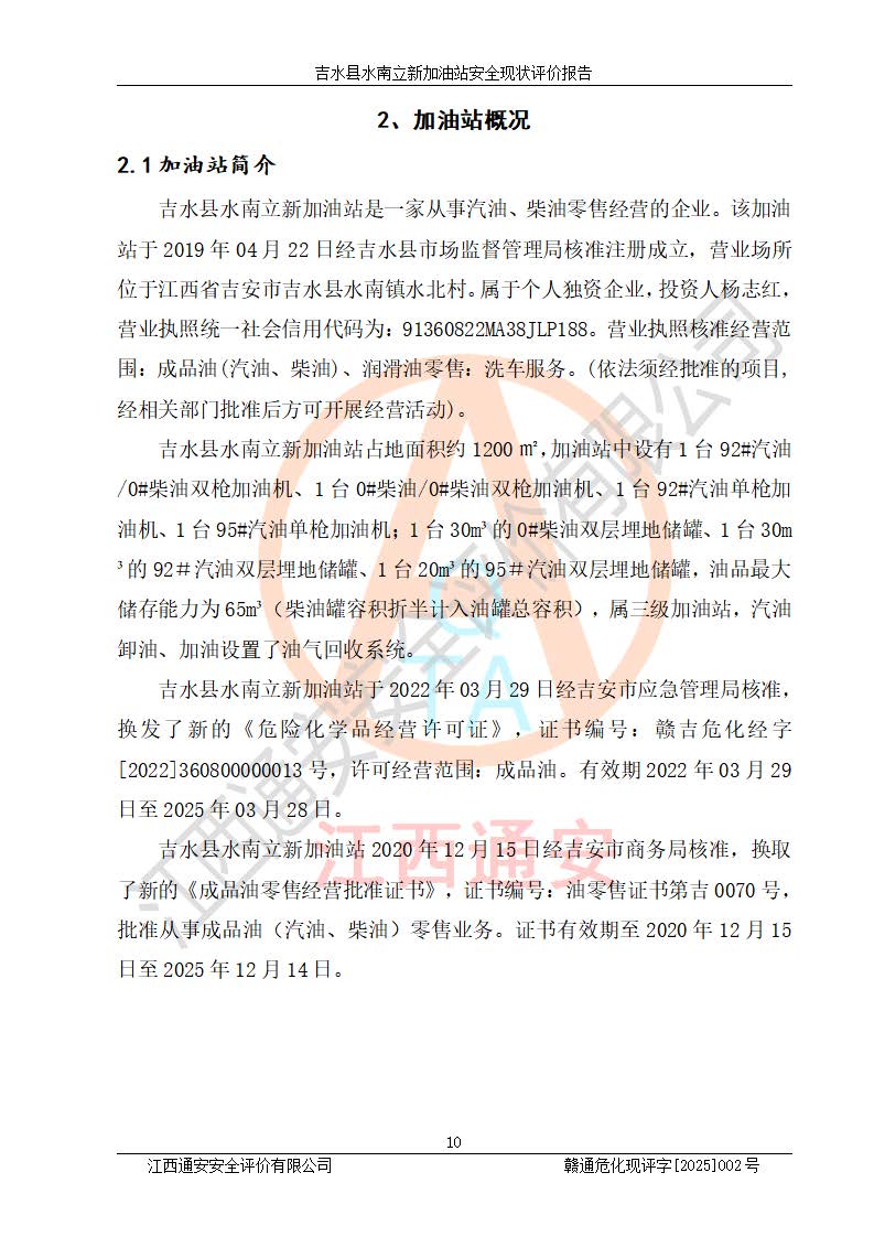 評價報告名稱 | 吉水縣水南立新加油站安全現狀評價報告 | |||