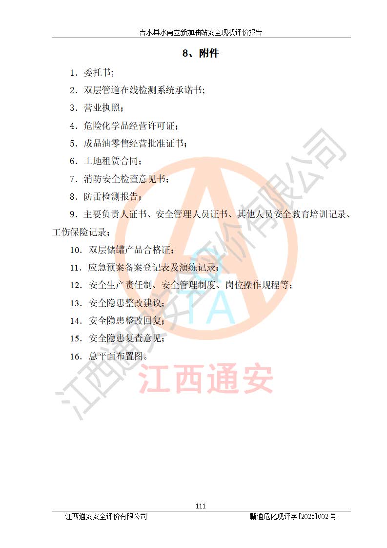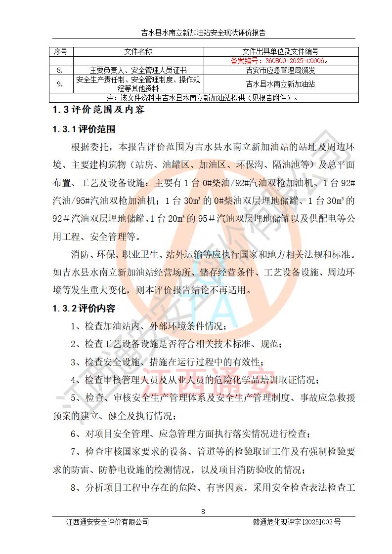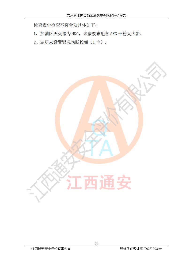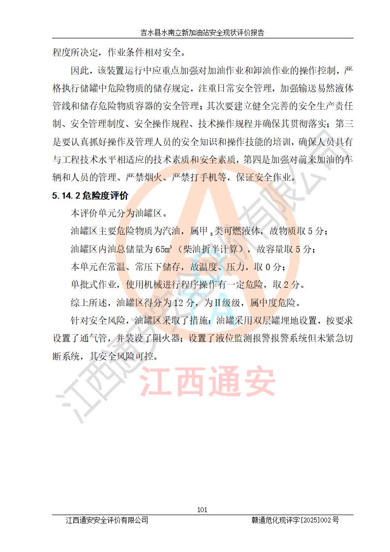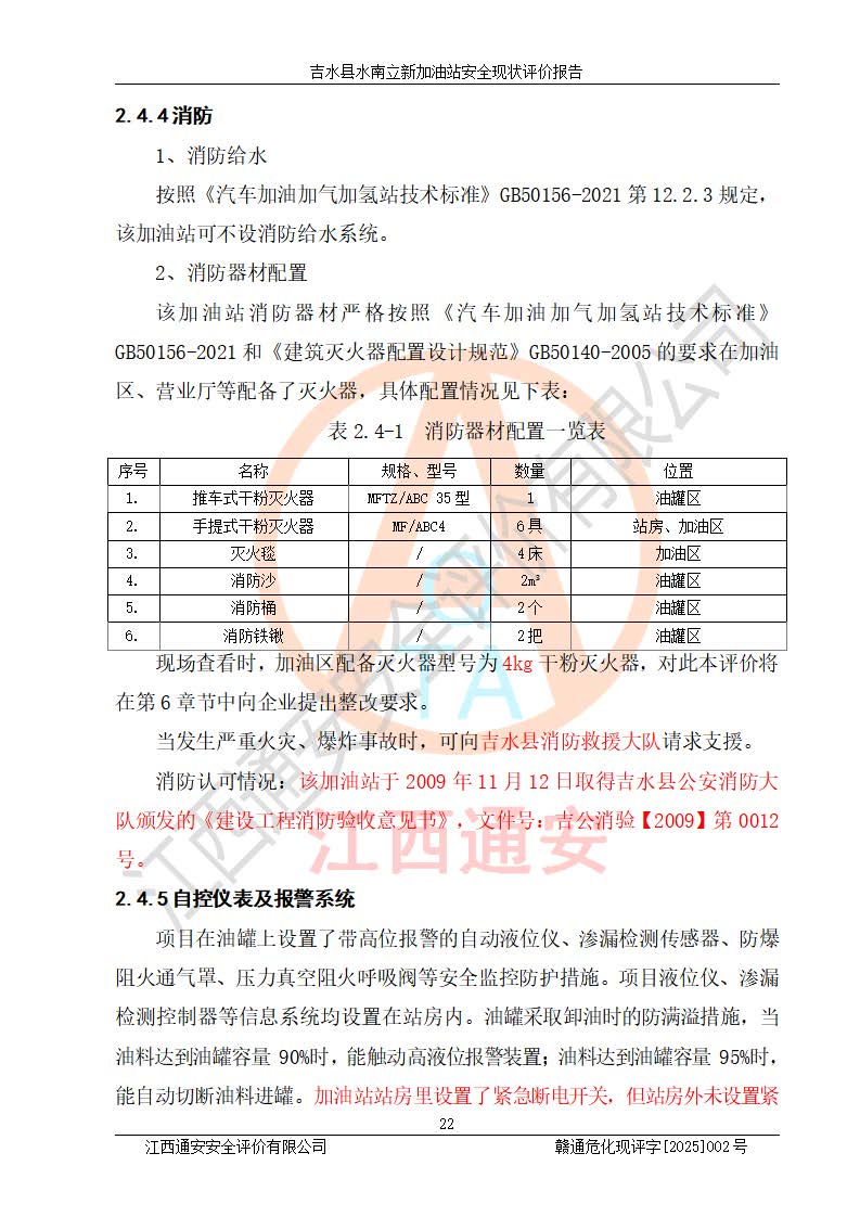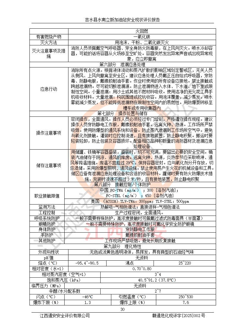 評價報告名稱 | 吉水縣水南立新加油站安全現狀評價報告 | |||