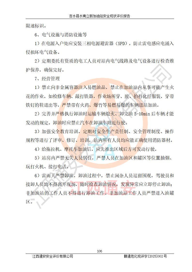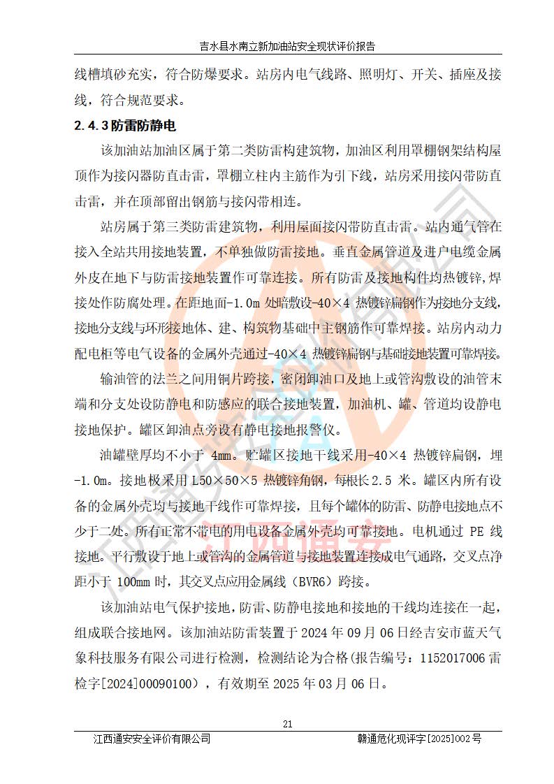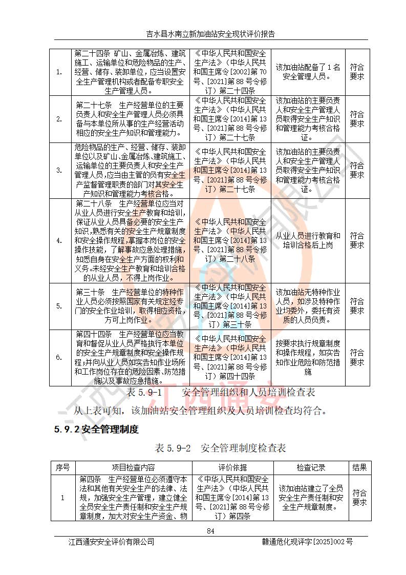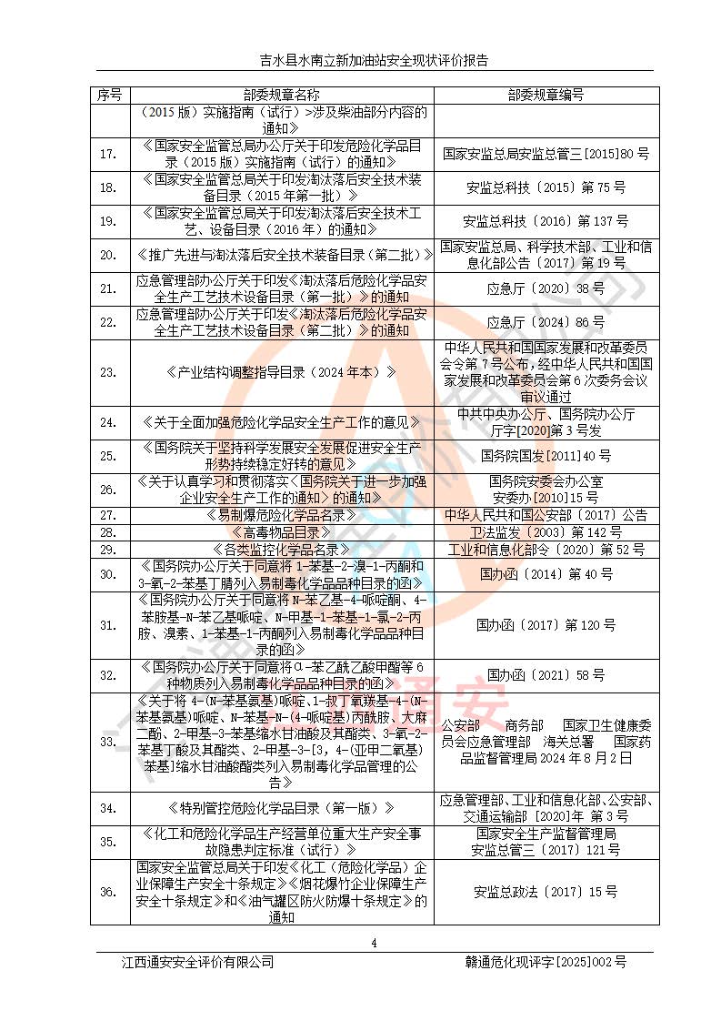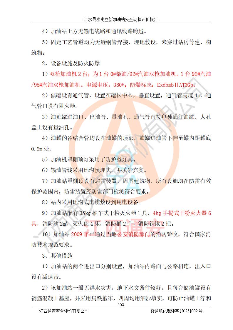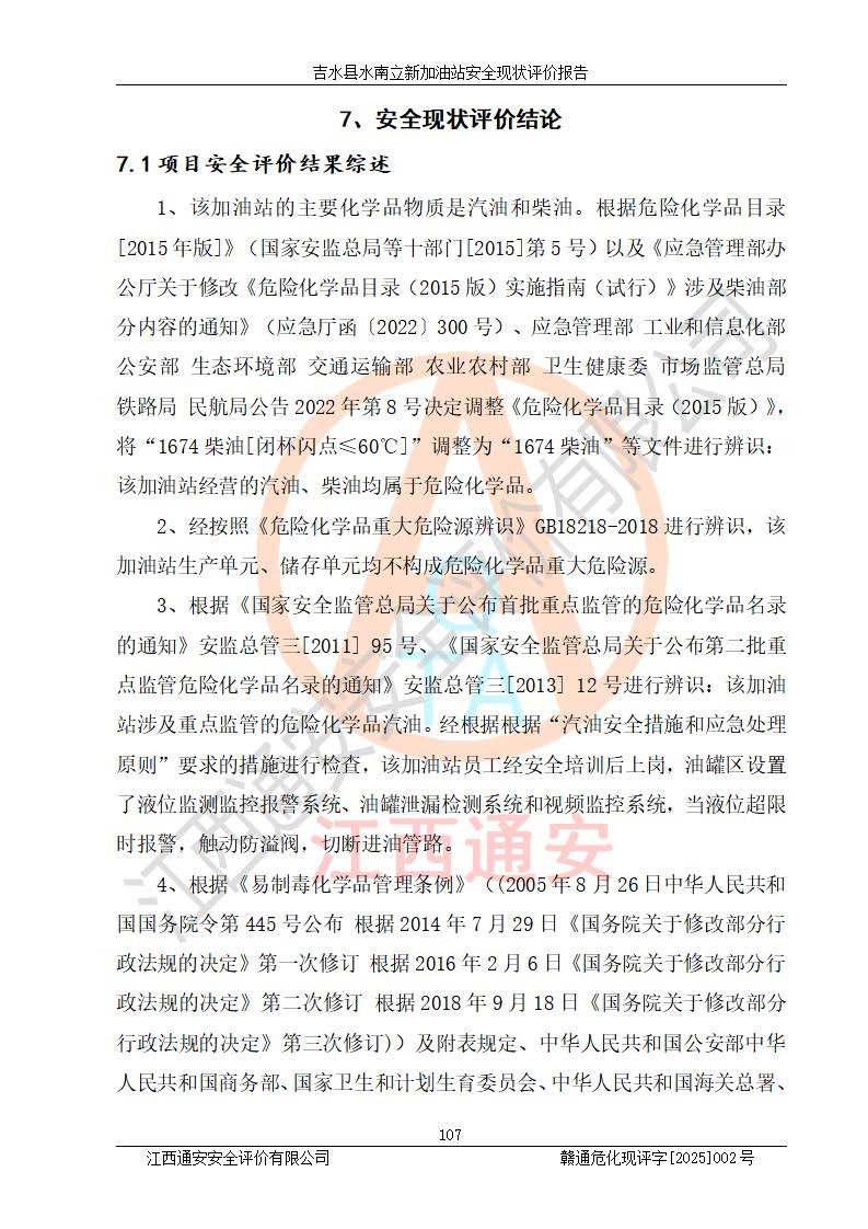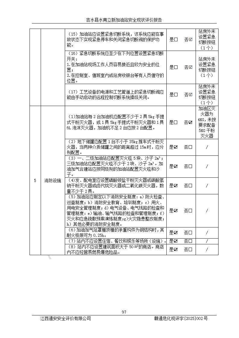 評價報告名稱 | 吉水縣水南立新加油站安全現狀評價報告 | |||