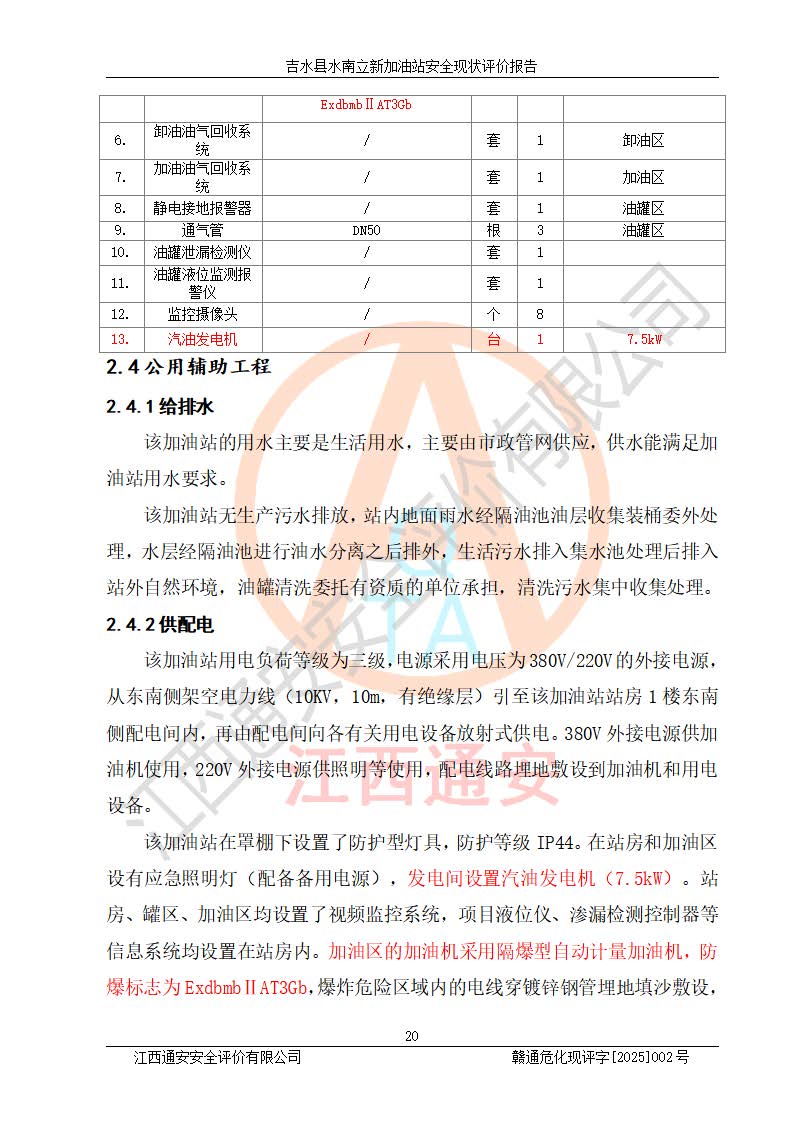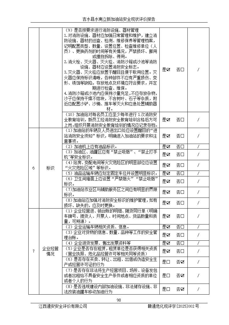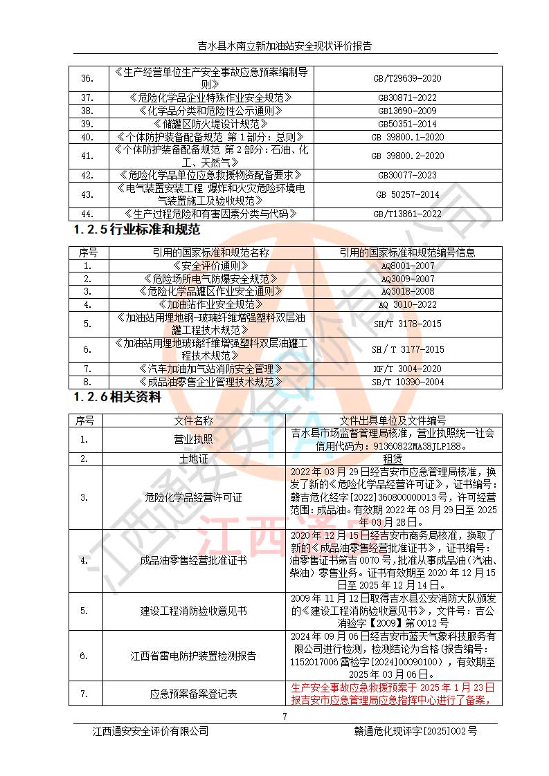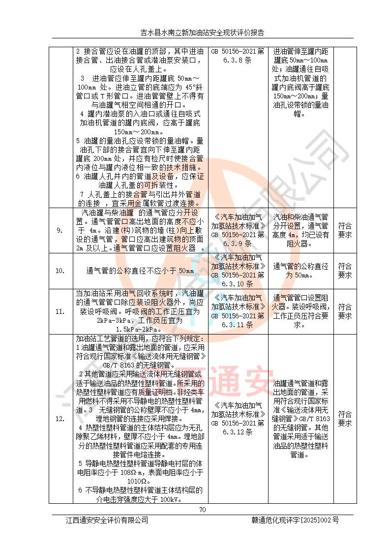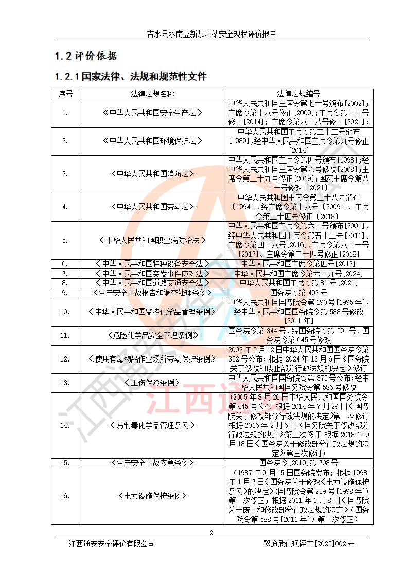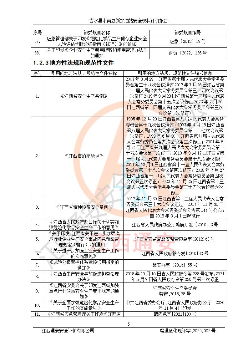 評價報告名稱 | 吉水縣水南立新加油站安全現狀評價報告 | |||