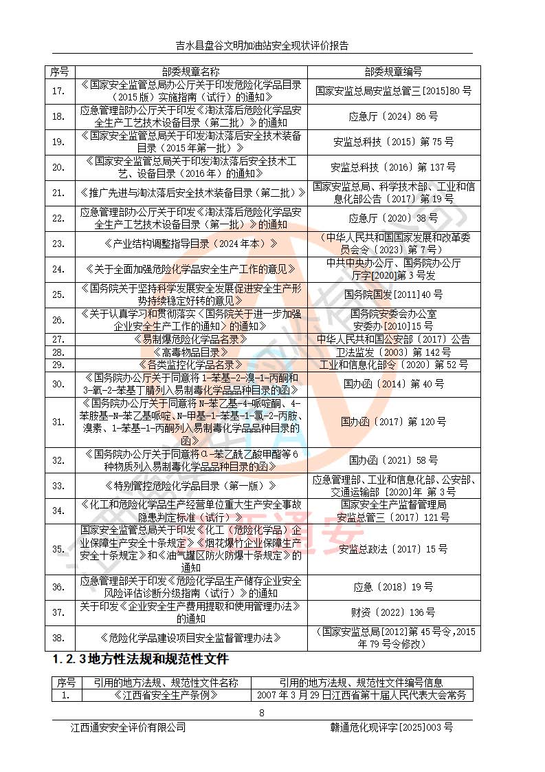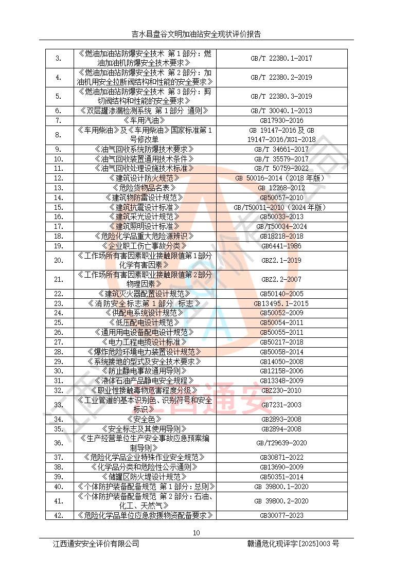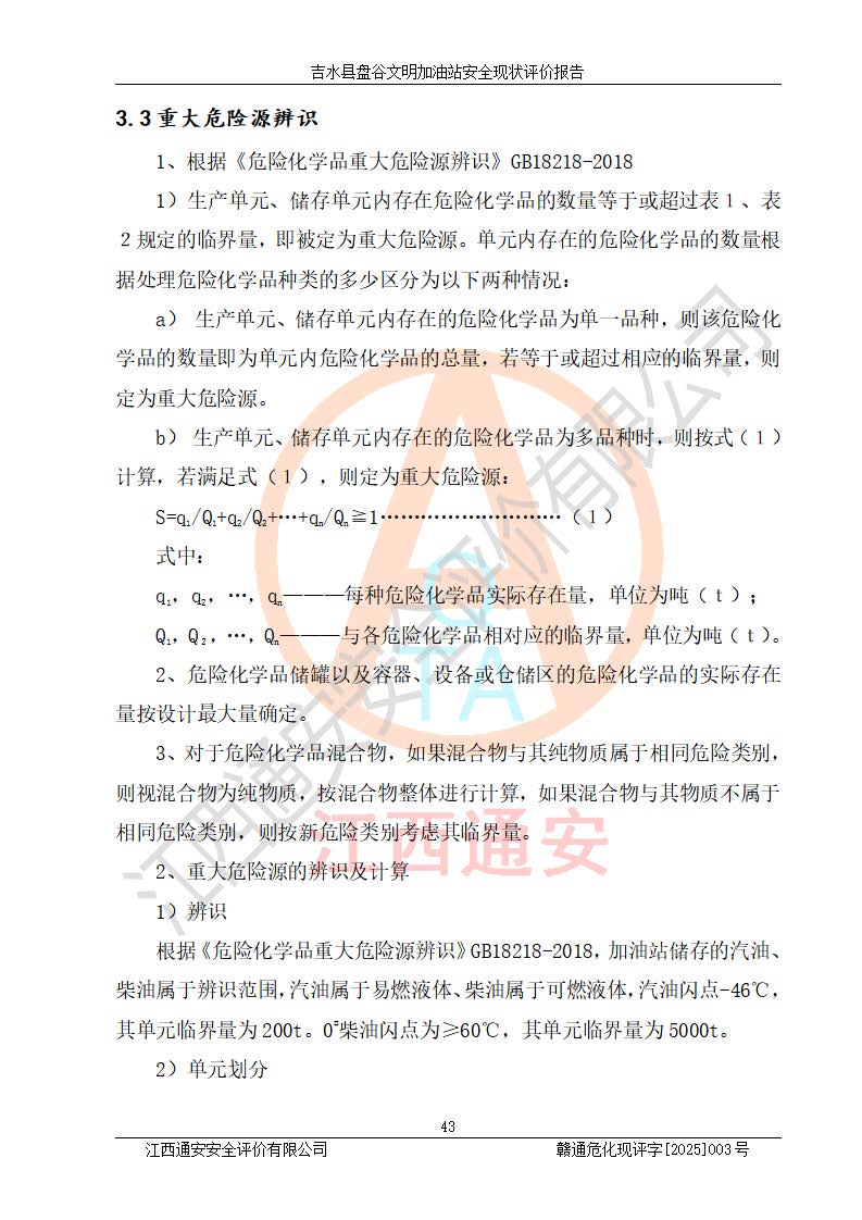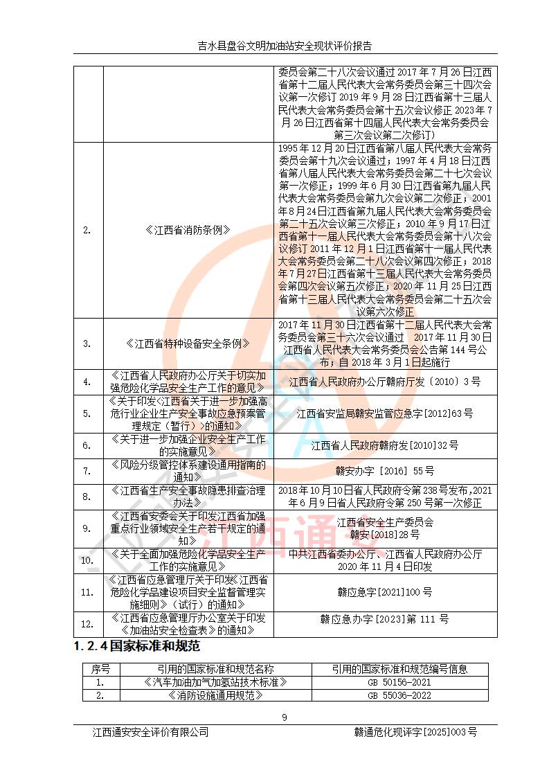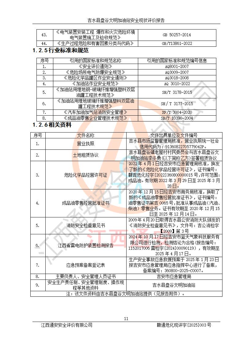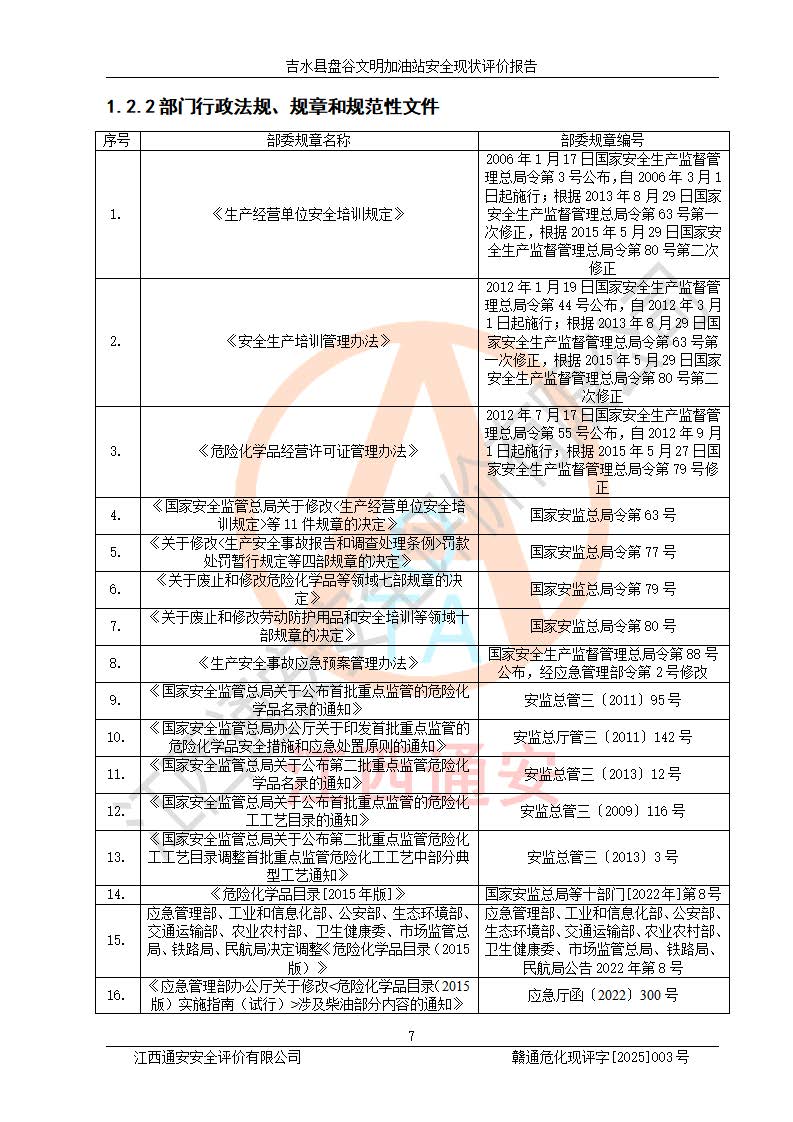 項(xiàng)目簡(jiǎn)介 | 吉水縣盤(pán)谷文明加油站于1998年6月30日經(jīng)吉水縣市場(chǎng)監(jiān)督管理局核準(zhǔn)注冊(cè)成立,營(yíng)業(yè)場(chǎng)所位于江西省吉安市吉水縣盤(pán)谷鎮(zhèn)文明村。類(lèi)型:個(gè)人獨(dú)資企業(yè),投資人:李冬勇,營(yíng)業(yè)執(zhí)照統(tǒng)一社會(huì)信用代碼為:91360822705779042P。營(yíng)業(yè)執(zhí)照核準(zhǔn)經(jīng)營(yíng)范圍:許可項(xiàng)目:成品油零售(依法須經(jīng)批準(zhǔn)的項(xiàng)目,經(jīng)相關(guān)部門(mén)批準(zhǔn)后在許可**期內(nèi)方可開(kāi)展經(jīng)營(yíng)活動(dòng),具體經(jīng)營(yíng)項(xiàng)目和許可期限以相關(guān)部門(mén)批準(zhǔn)文件或許可證件為準(zhǔn))一般項(xiàng)目:潤(rùn)滑油銷(xiāo)售,食品銷(xiāo)售(僅銷(xiāo)售預(yù)包裝食品)(除依法須經(jīng)批準(zhǔn)的項(xiàng)目外,憑營(yíng)業(yè)執(zhí)照依法自主開(kāi)展經(jīng)營(yíng)活動(dòng))。 吉水縣盤(pán)谷文明加油站占地面積3072㎡,加油站中設(shè)有1臺(tái)0#柴油/0#柴油雙槍加油機(jī)、1臺(tái)0#柴油/0#柴油雙槍加油機(jī)、1臺(tái)92#汽油/92#汽油雙槍加油機(jī)、1臺(tái)92#汽油/95#汽油雙槍加油機(jī)布置;1臺(tái)30m30#柴油雙層埋地儲(chǔ)罐、1臺(tái)30m392#汽油雙層埋地儲(chǔ)罐、1臺(tái)20m395#汽油雙層埋地儲(chǔ)罐,油品*大儲(chǔ)存能力為65m3(柴油罐容積折半計(jì)入油罐總?cè)莘e),屬三級(jí)加油站,汽油卸油、加油設(shè)置了油氣回收系統(tǒng)。 吉水縣盤(pán)谷文明加油站于2022年4月1日經(jīng)吉安市應(yīng)急管理局核準(zhǔn),換發(fā)了新的《危險(xiǎn)化學(xué)品經(jīng)營(yíng)許可證》,證書(shū)編號(hào):贛吉危化經(jīng)字[2022]360800000015號(hào),許可范圍:成品油。**期2022年3月29日至2025年3月28日。 吉水縣盤(pán)谷文明加油站2020年12月15日經(jīng)吉安市商務(wù)局核準(zhǔn),換取了新的《成品油零售經(jīng)營(yíng)批準(zhǔn)證書(shū)》,證書(shū)編號(hào):油零售證書(shū)第吉0065號(hào),批準(zhǔn)從事成品油(汽油、柴油)零售業(yè)務(wù)。證書(shū)**期至2020年12月15日至2025年12月14日。 | ||||