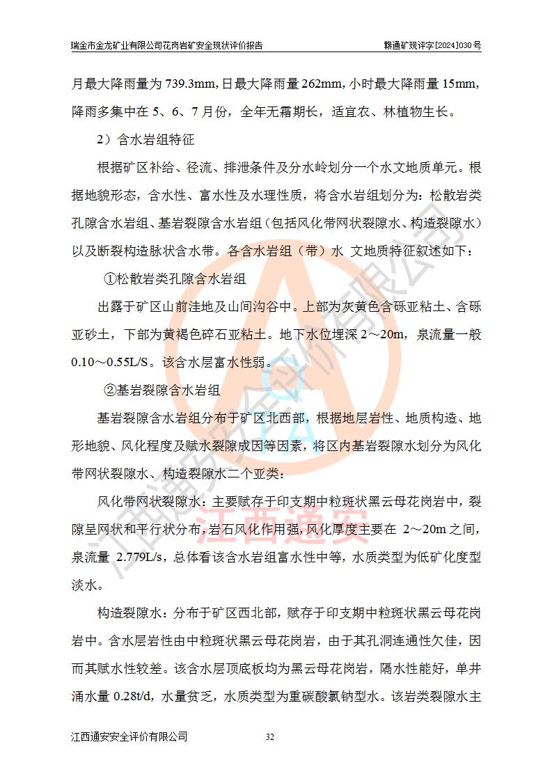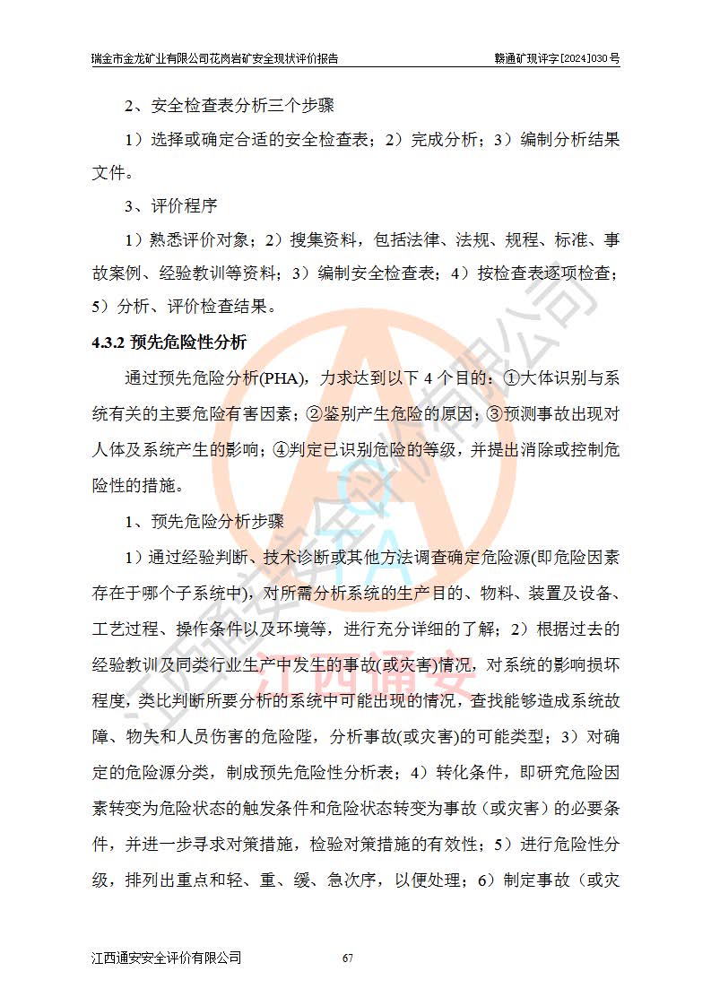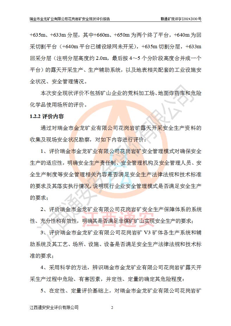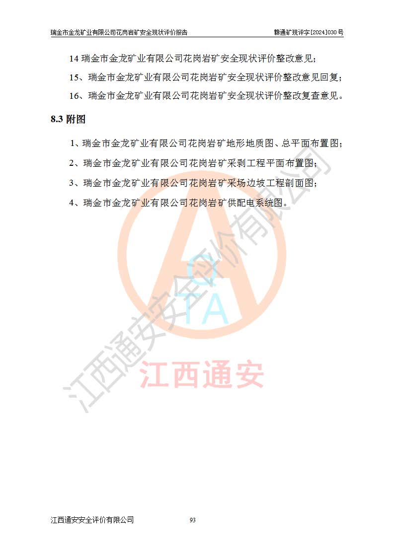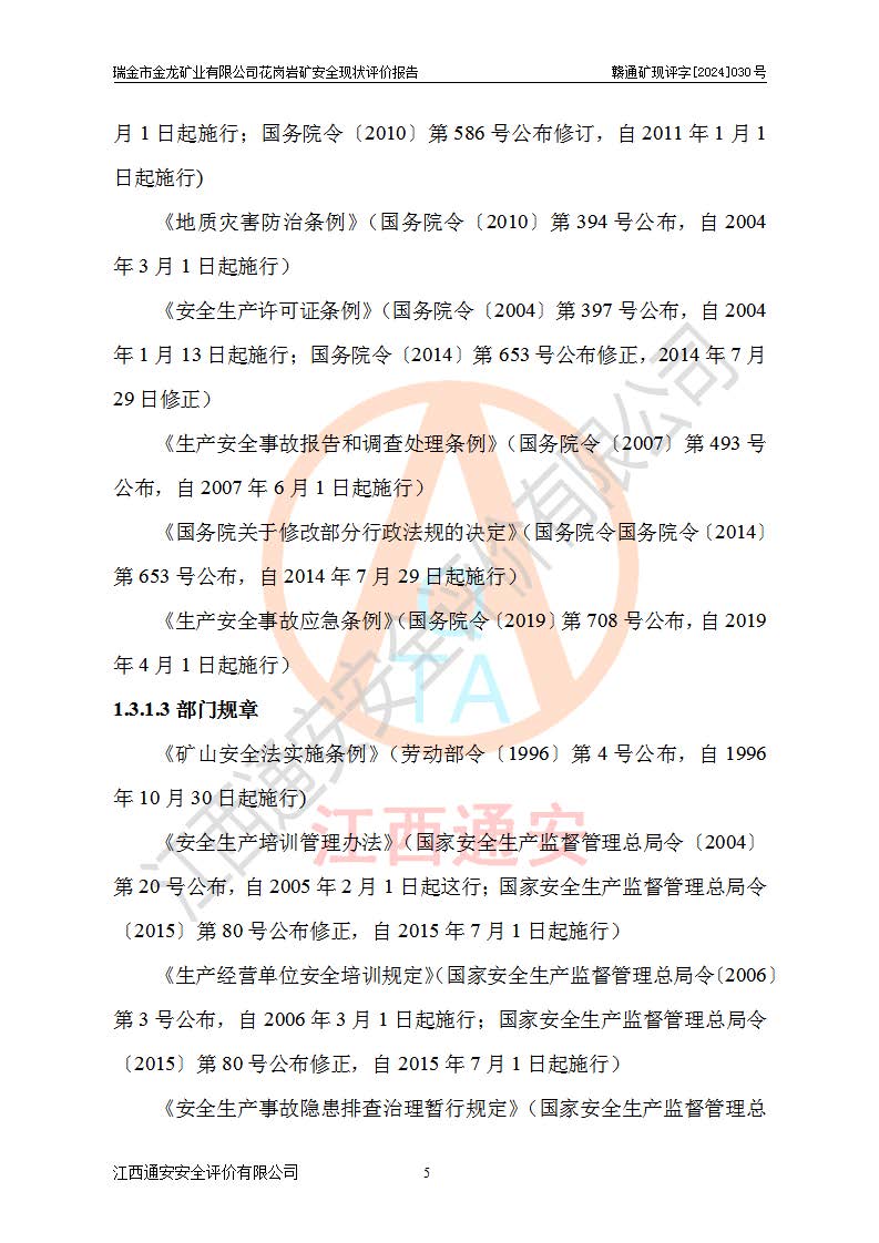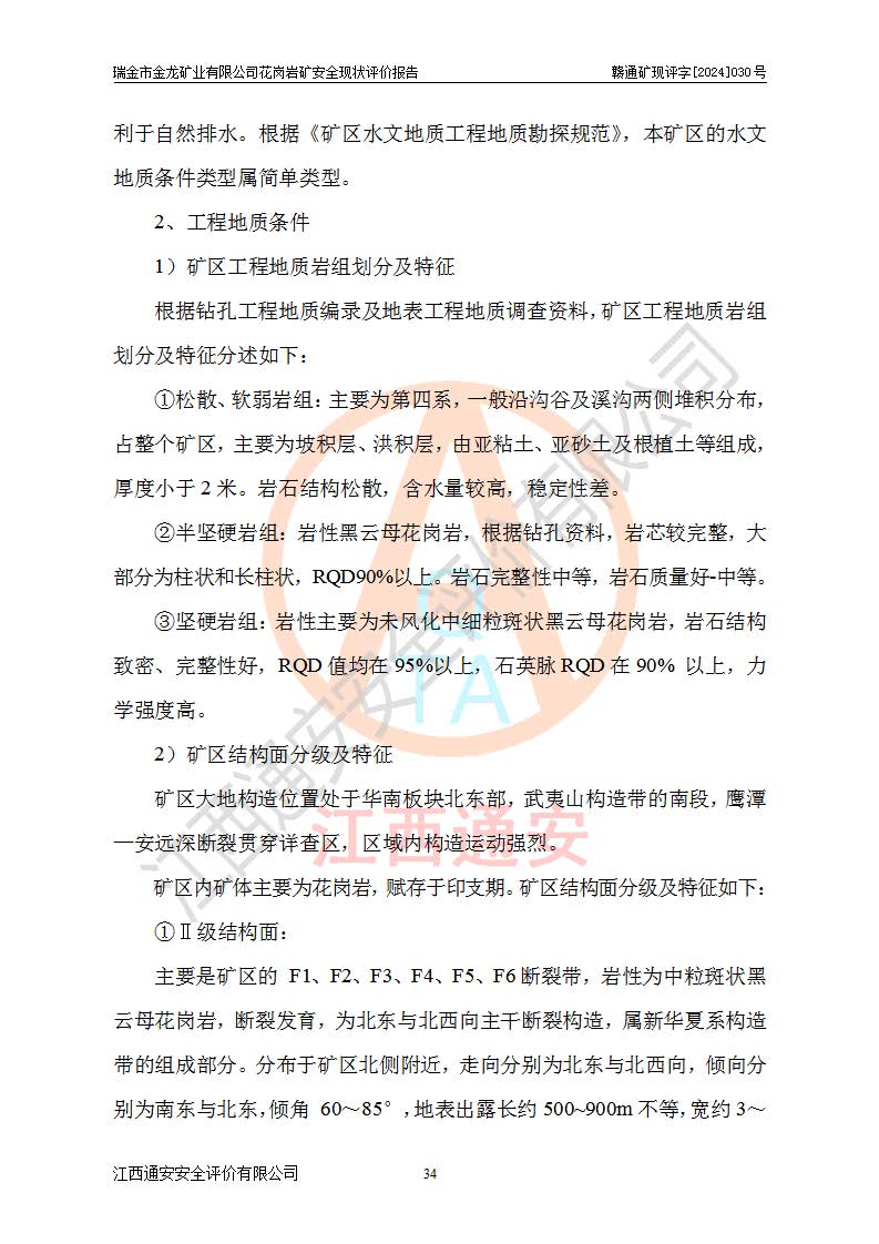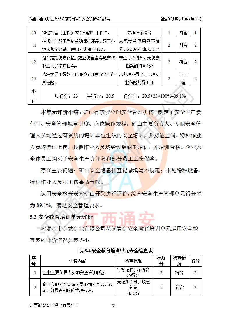 其它 | 瑞金市金龍礦業(yè)有限公司花崗巖礦設(shè)備、設(shè)施和場(chǎng)所基本符合**安全生產(chǎn)有關(guān)法律、法規(guī)、標(biāo)準(zhǔn)及規(guī)范的規(guī)定。礦山采用露天開(kāi)采公路開(kāi)拓汽車(chē)運(yùn)輸方式,安全生產(chǎn)條件良好,生產(chǎn)活動(dòng)有安全保障;安全管理能滿(mǎn)足法規(guī)要求,礦山露天開(kāi)采符合**規(guī)定的安全生產(chǎn)條件。 | ||||