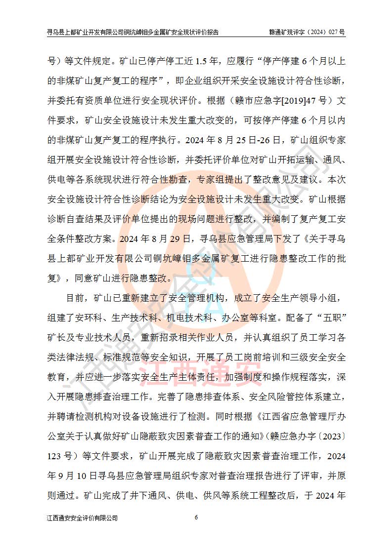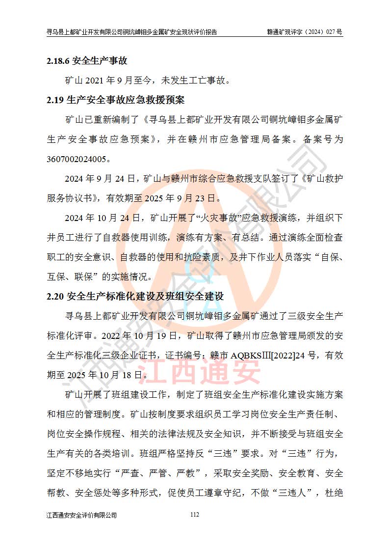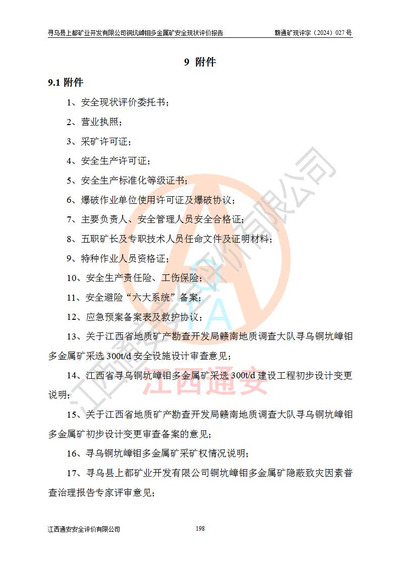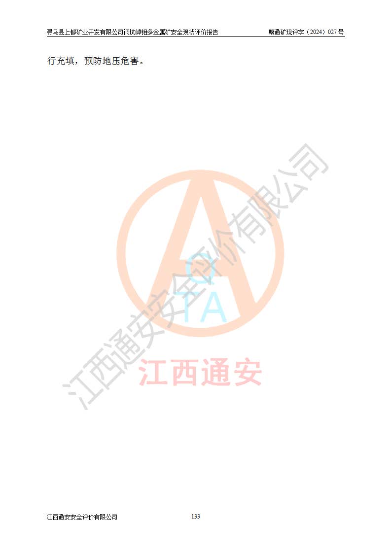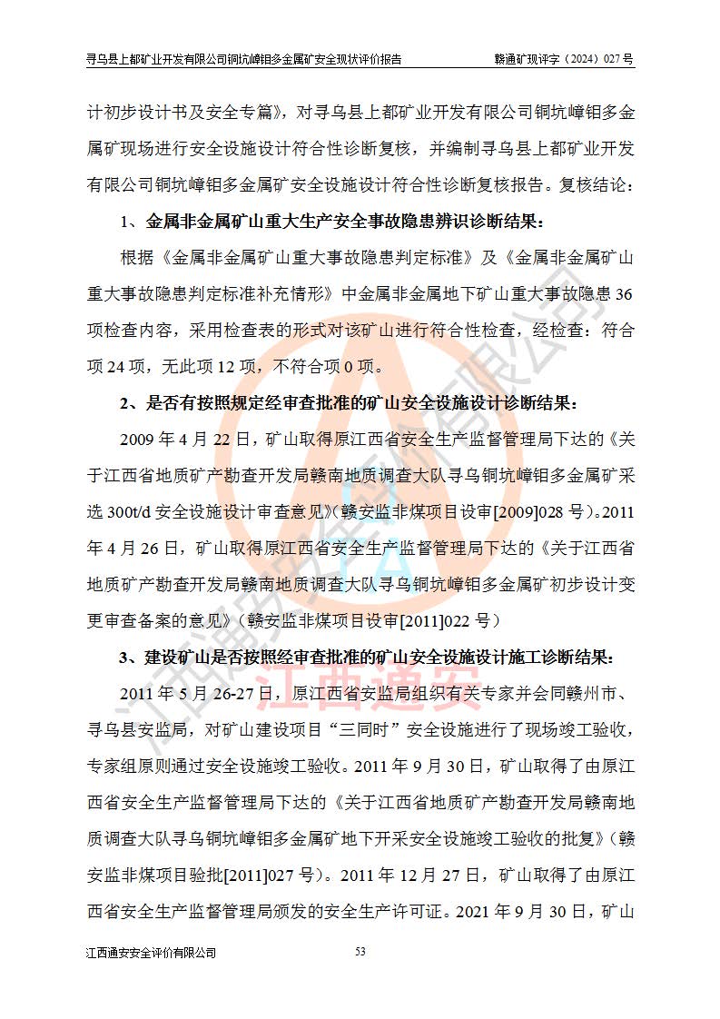 項(xiàng)目名稱 | 尋烏縣上都礦業(yè)開發(fā)有限公司銅坑嶂鉬多金屬礦安全現(xiàn)狀評價(jià)報(bào)告 | ||||