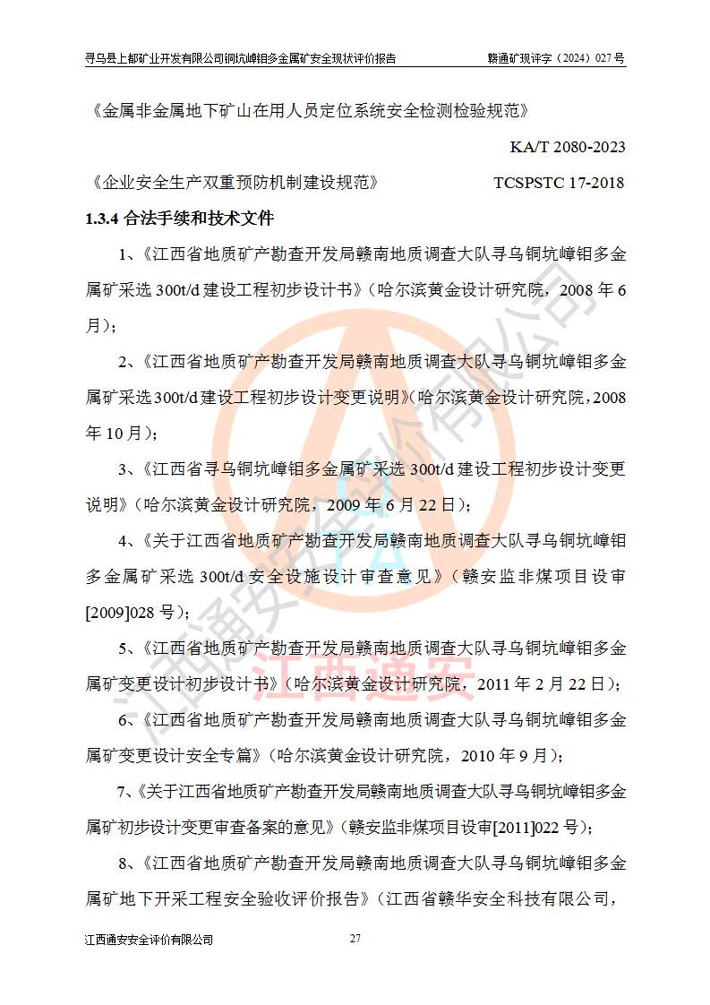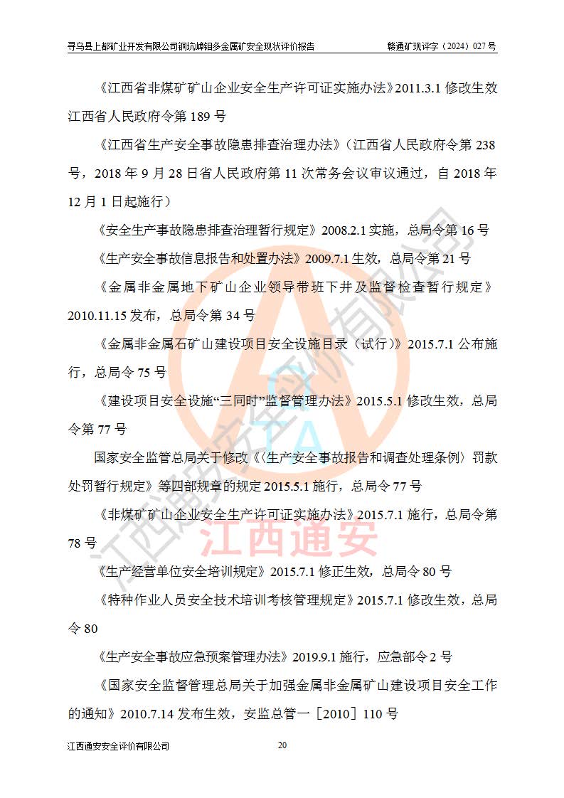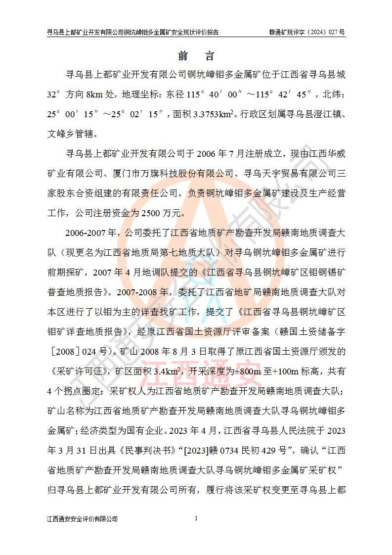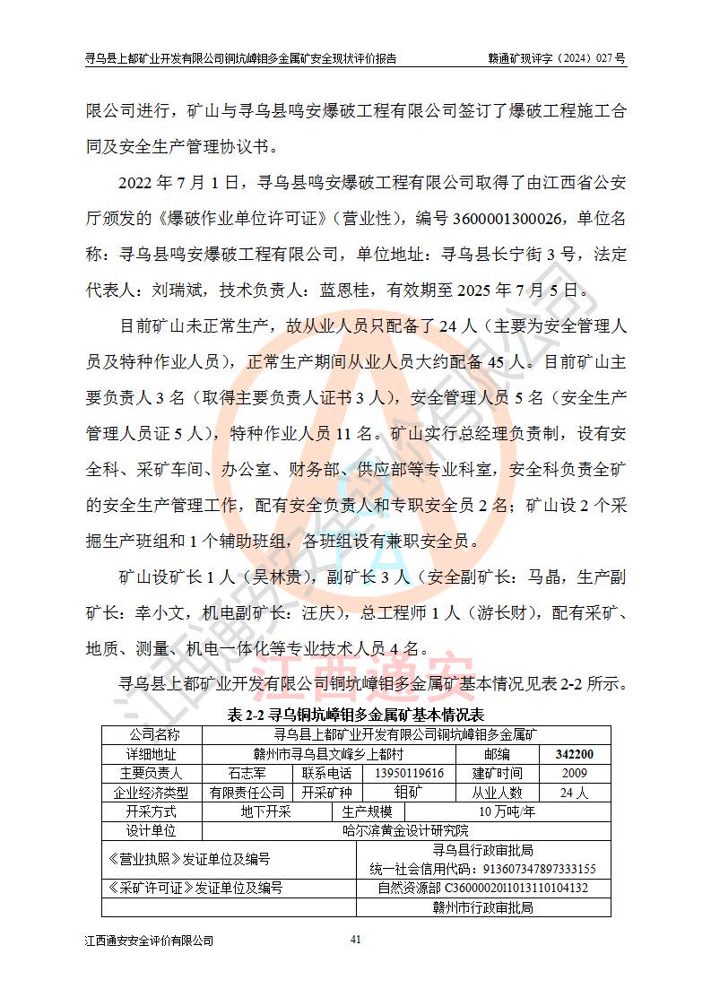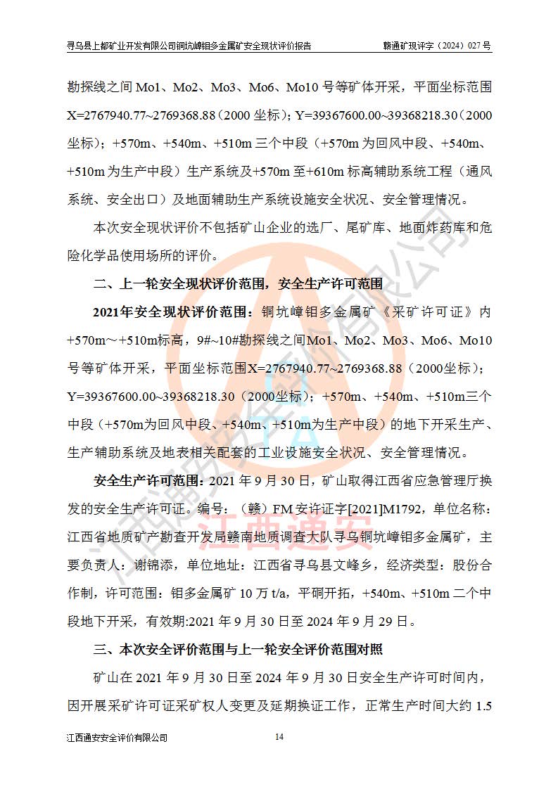 項(xiàng)目名稱 | 尋烏縣上都礦業(yè)開發(fā)有限公司銅坑嶂鉬多金屬礦安全現(xiàn)狀評價(jià)報(bào)告 | ||||