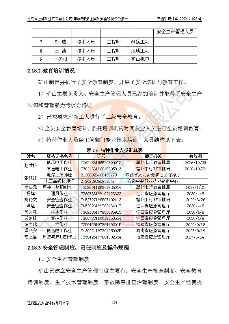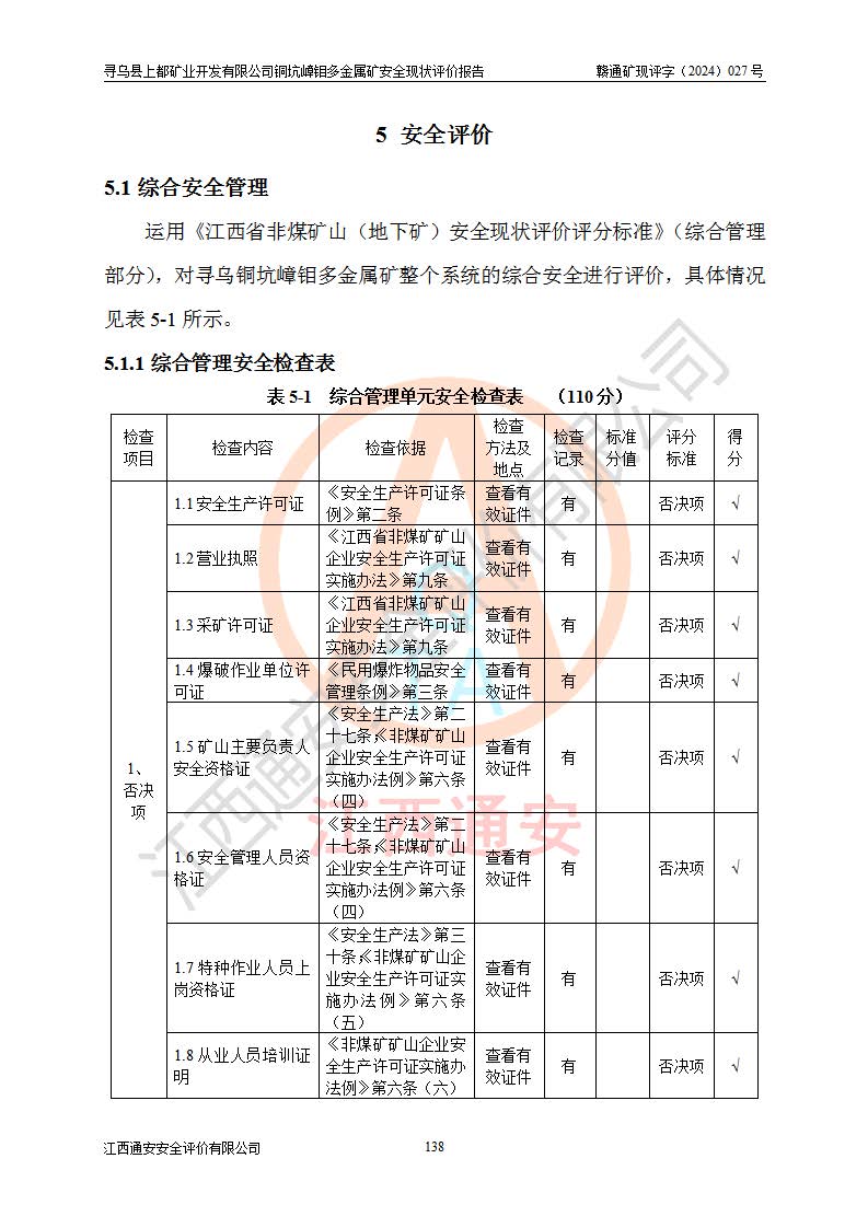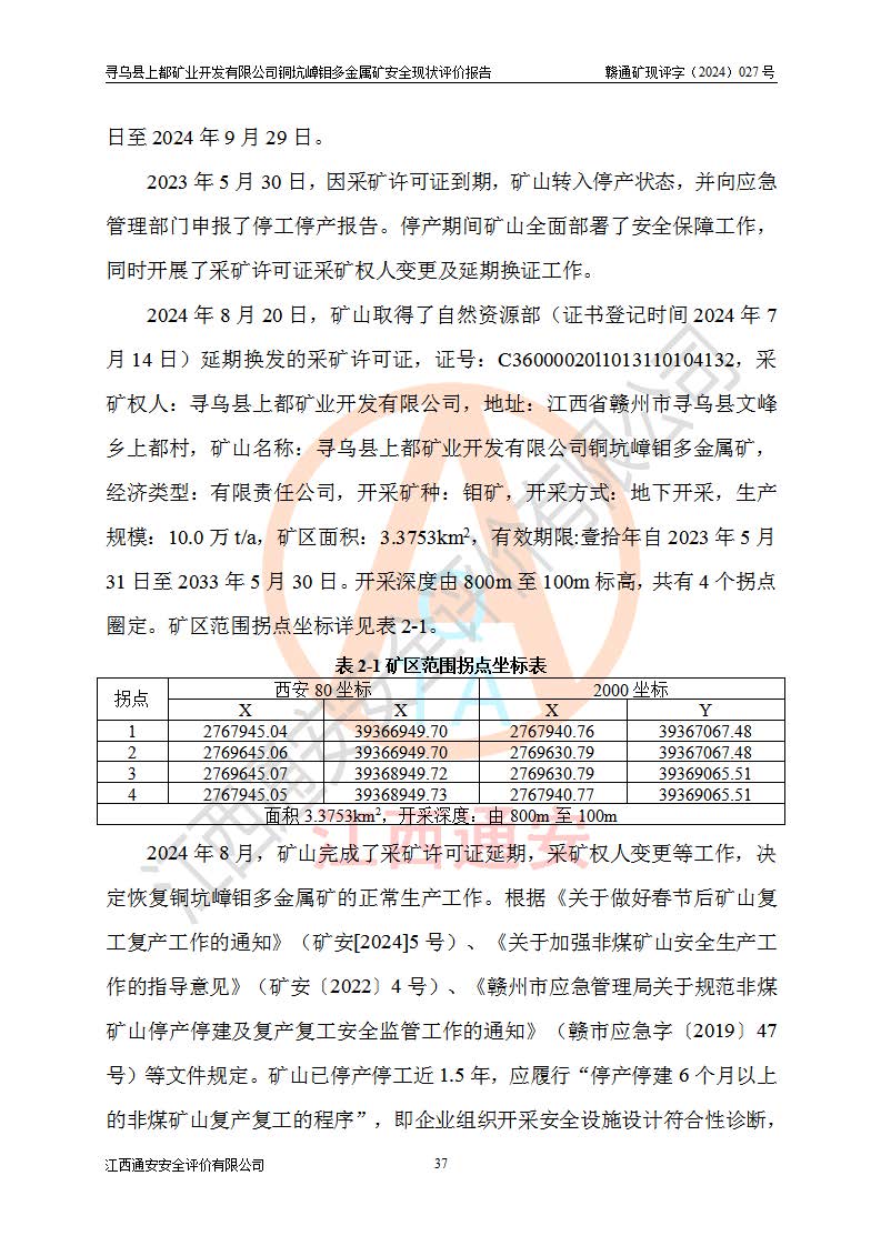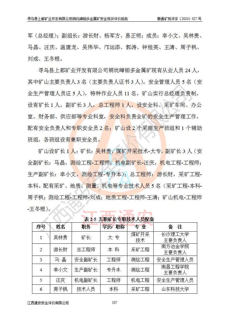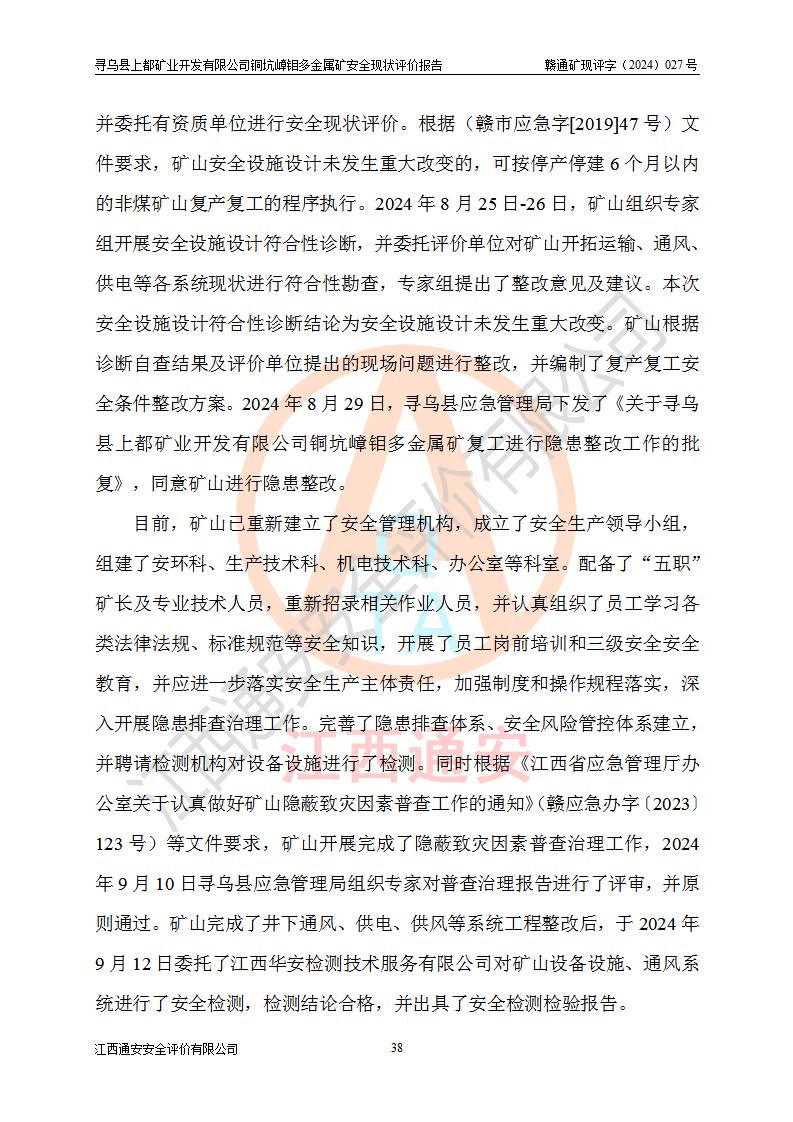 項(xiàng)目名稱 | 尋烏縣上都礦業(yè)開發(fā)有限公司銅坑嶂鉬多金屬礦安全現(xiàn)狀評價(jià)報(bào)告 | ||||