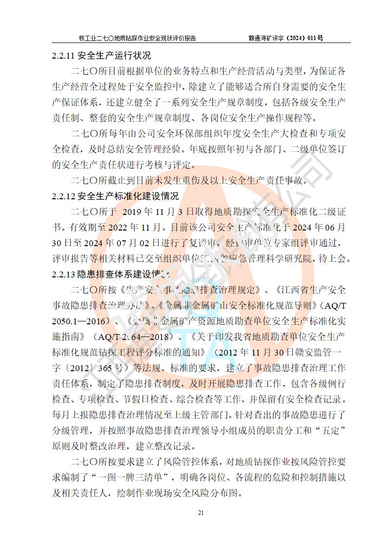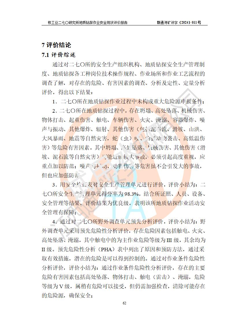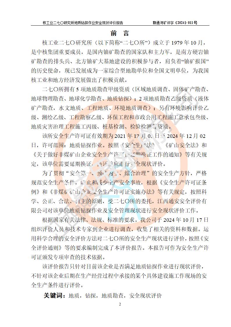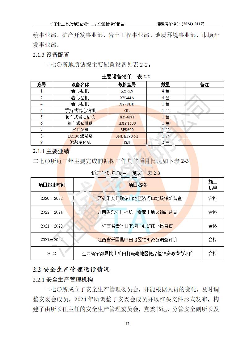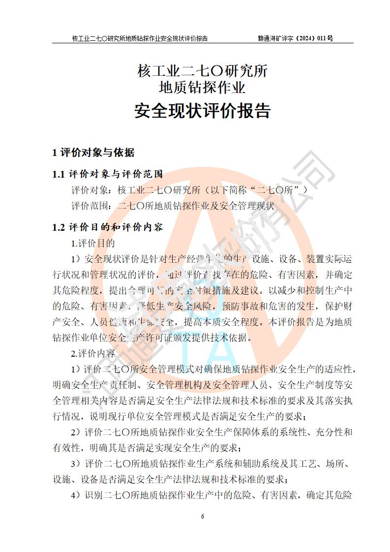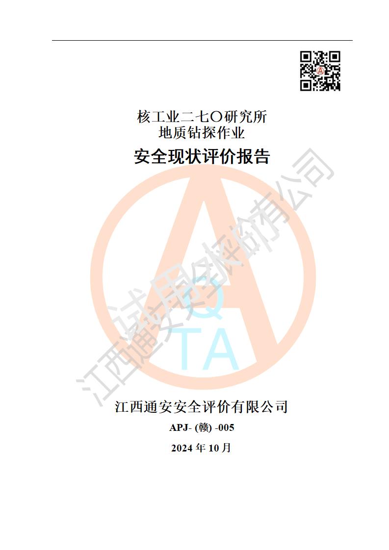 核工業(yè)二七〇研究所地質(zhì)鉆探作業(yè)安全現(xiàn)狀評價報告